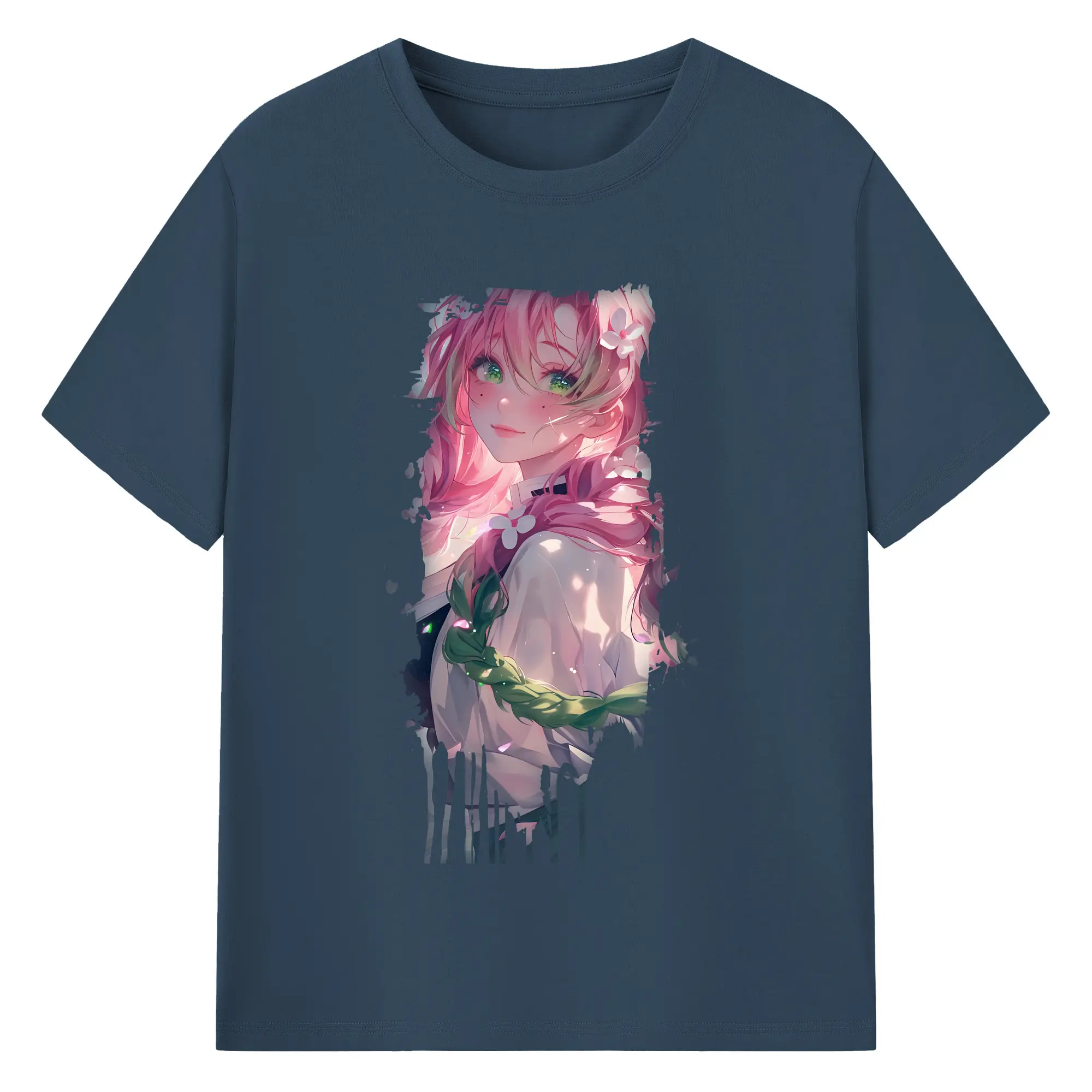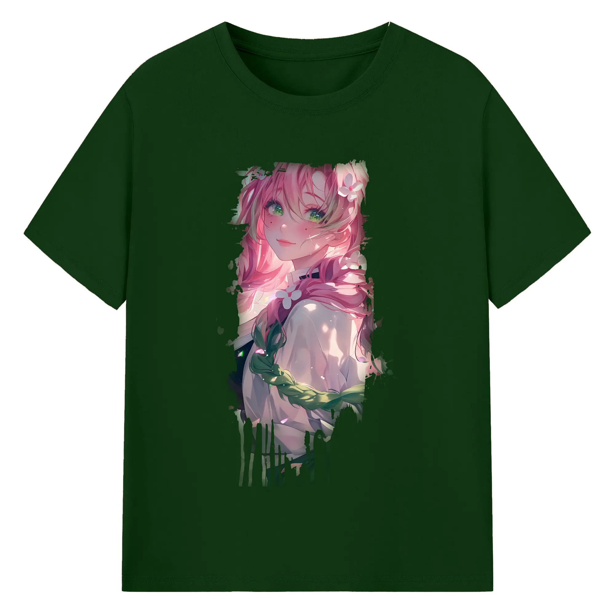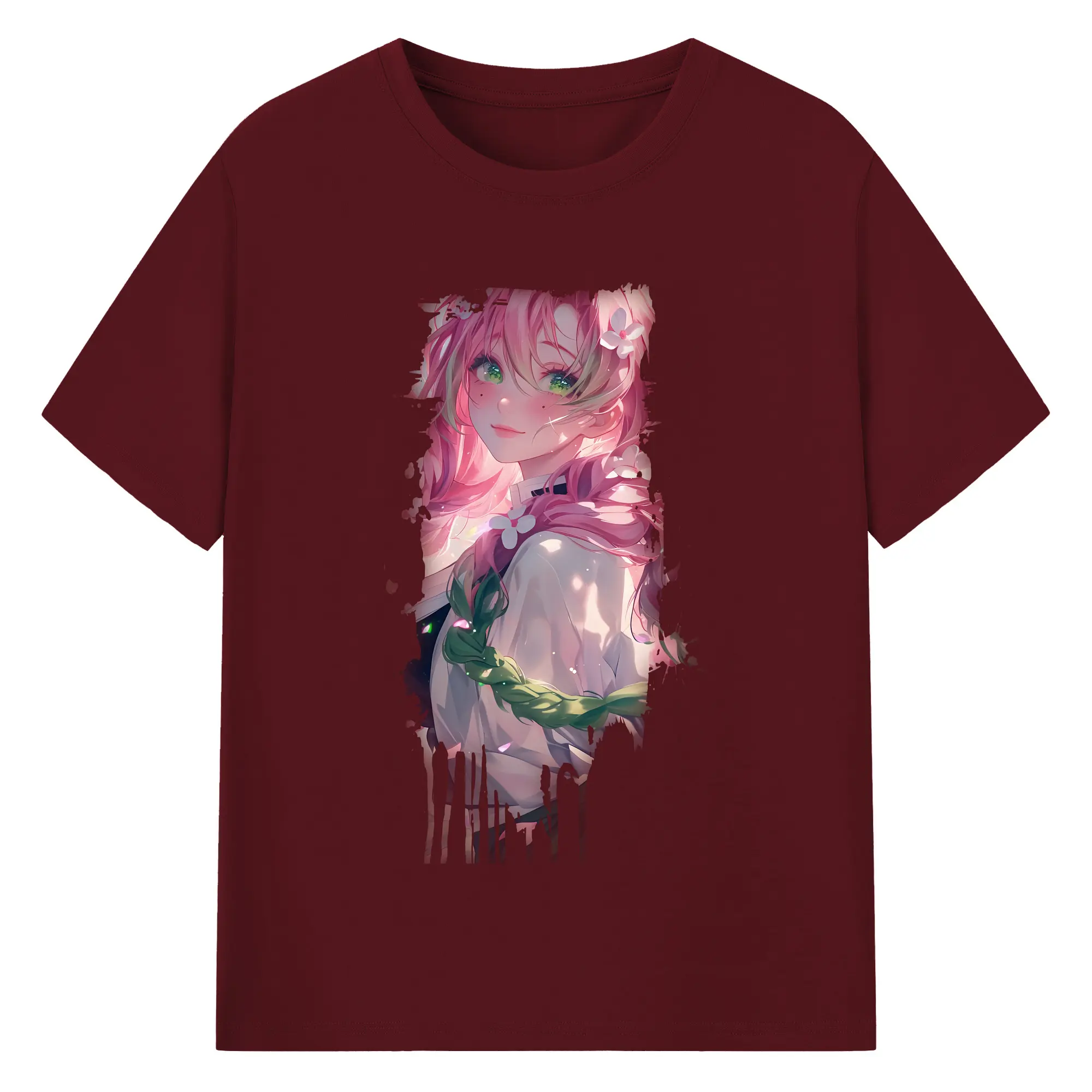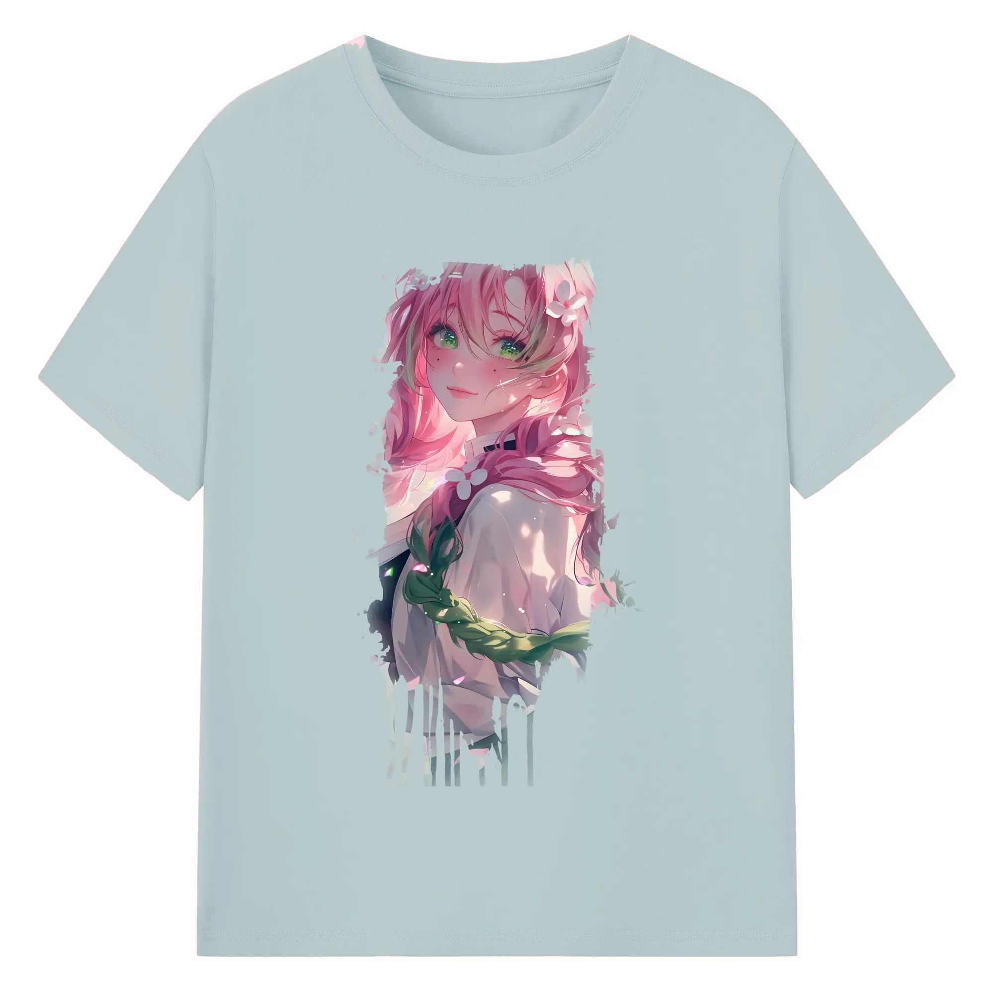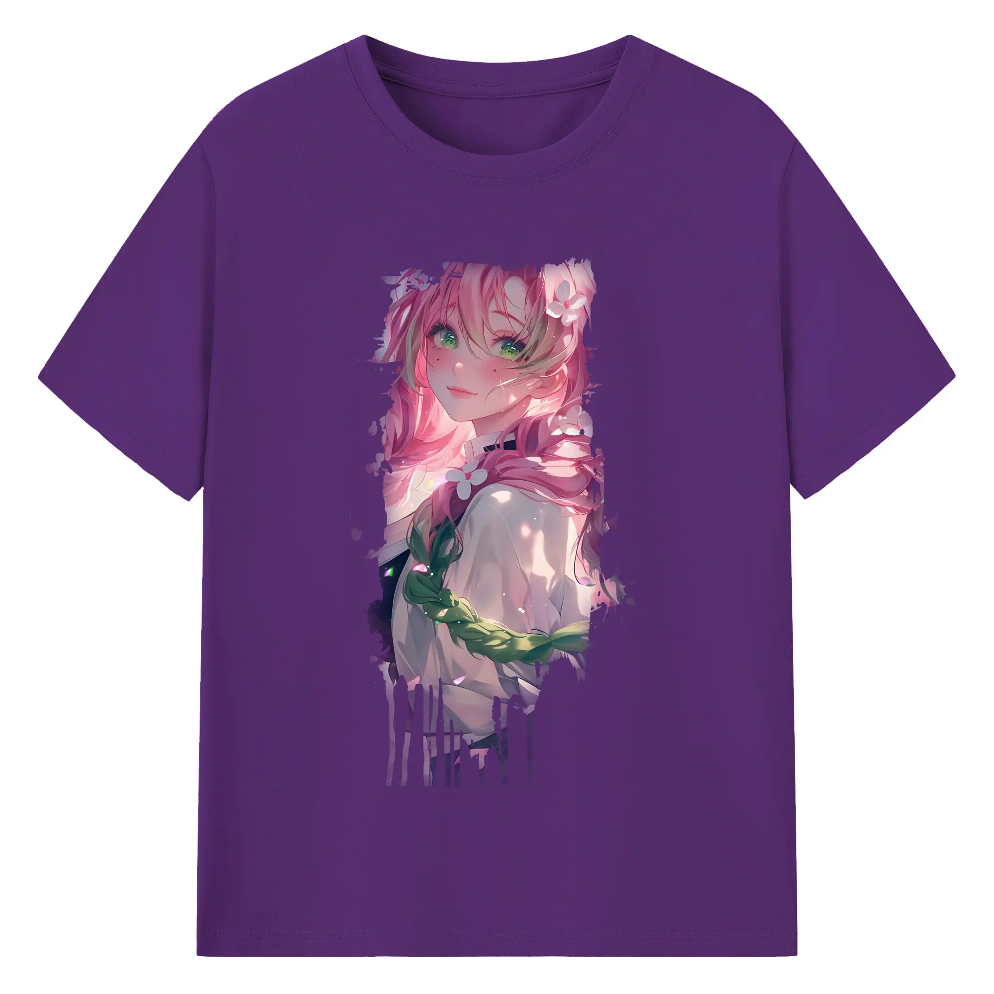 鬼滅の刃 グッズ,甘露寺 蜜璃 - 綿100% 半袖Tシャツ ・ バックプリント ・ 快適 通気性 ・ 日常使い 散歩 スポーツ用