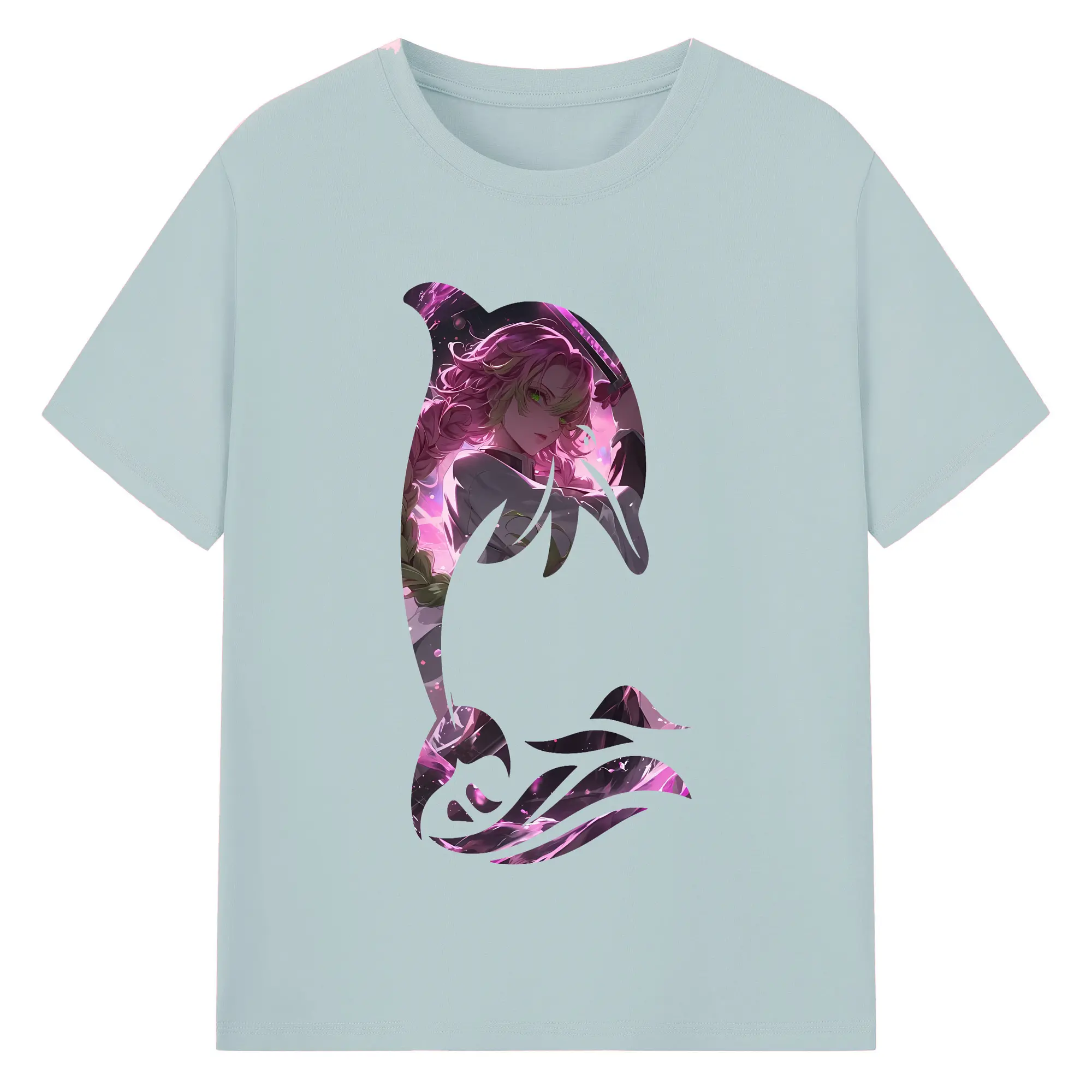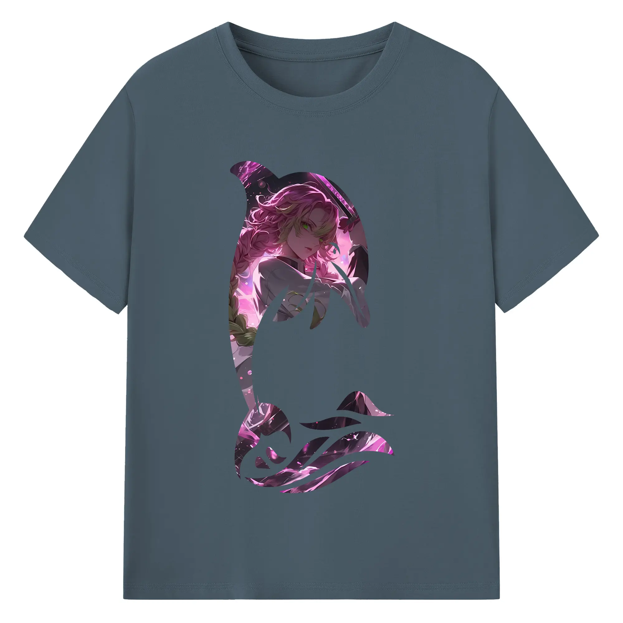 鬼滅の刃 グッズ,甘露寺 蜜璃 - 綿100% 半袖Tシャツ ・ バックプリント ・ 快適 通気性 ・ 日常使い 散歩 スポーツ用