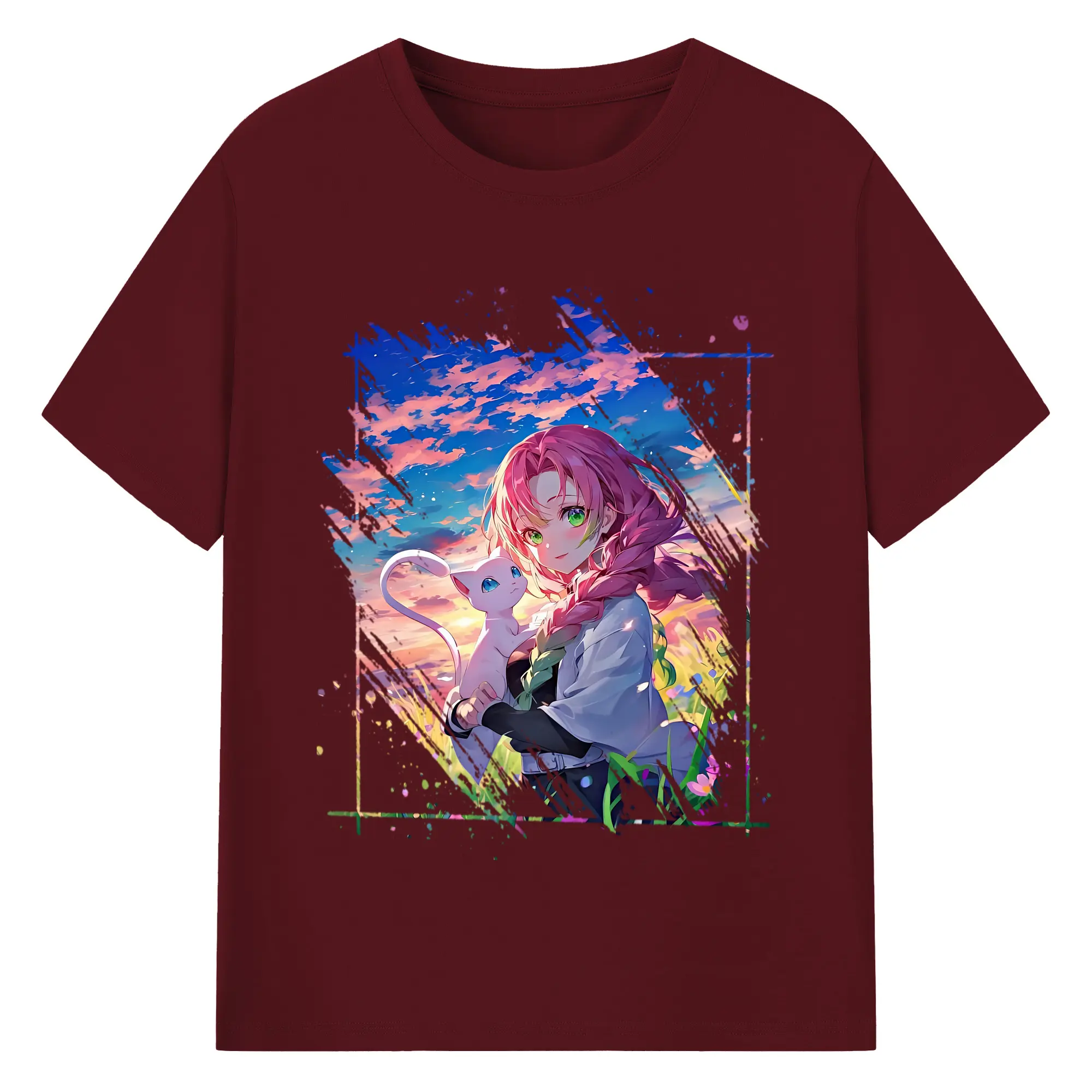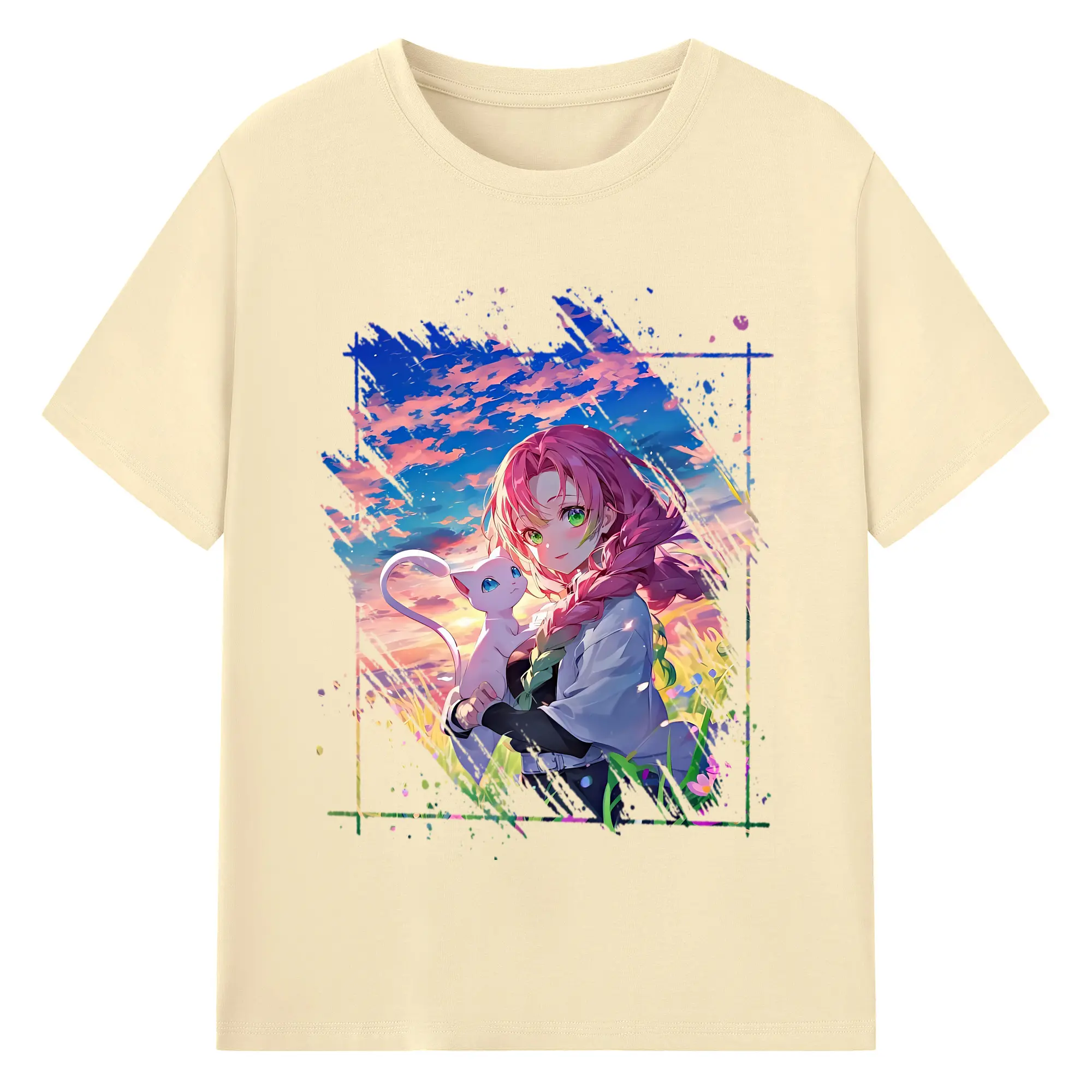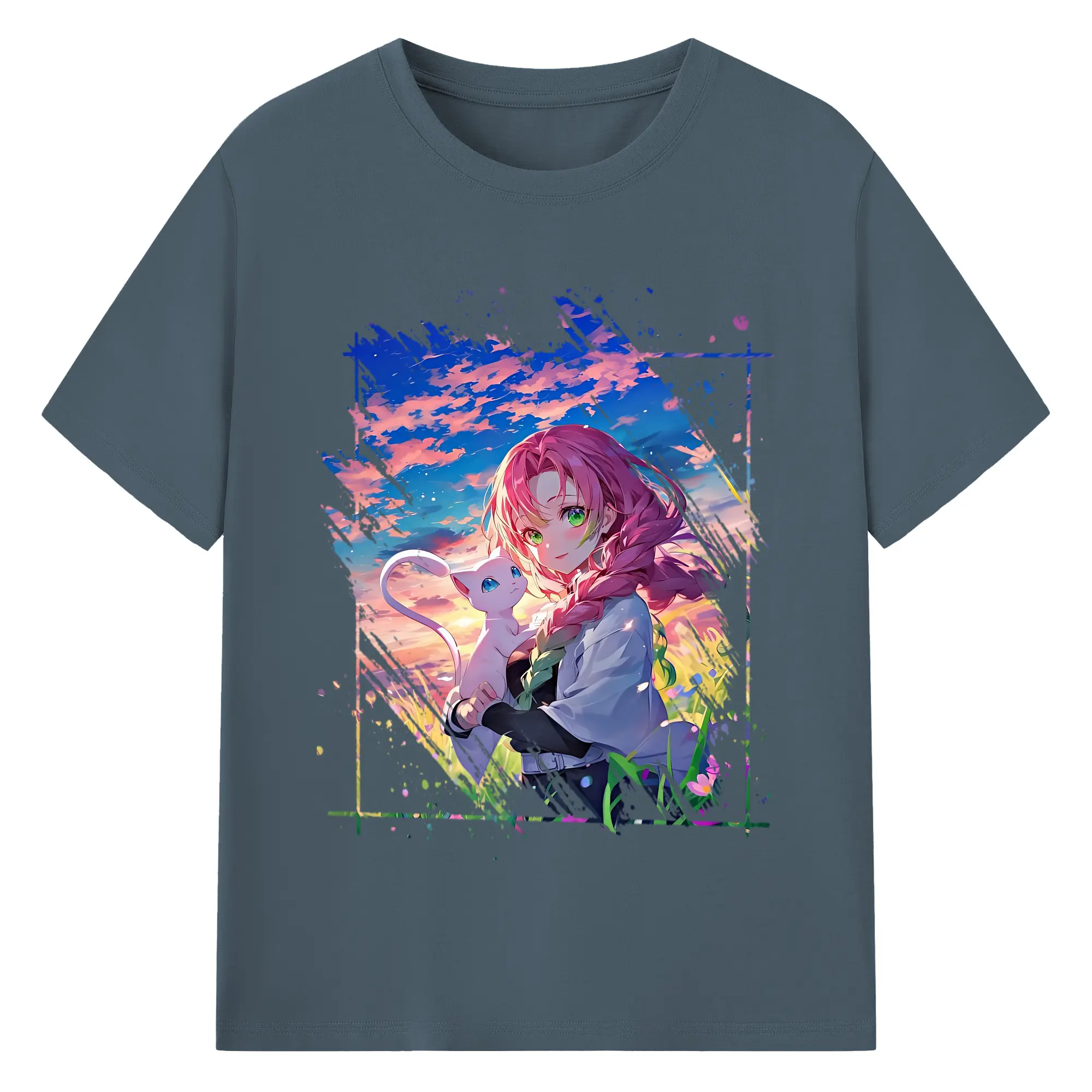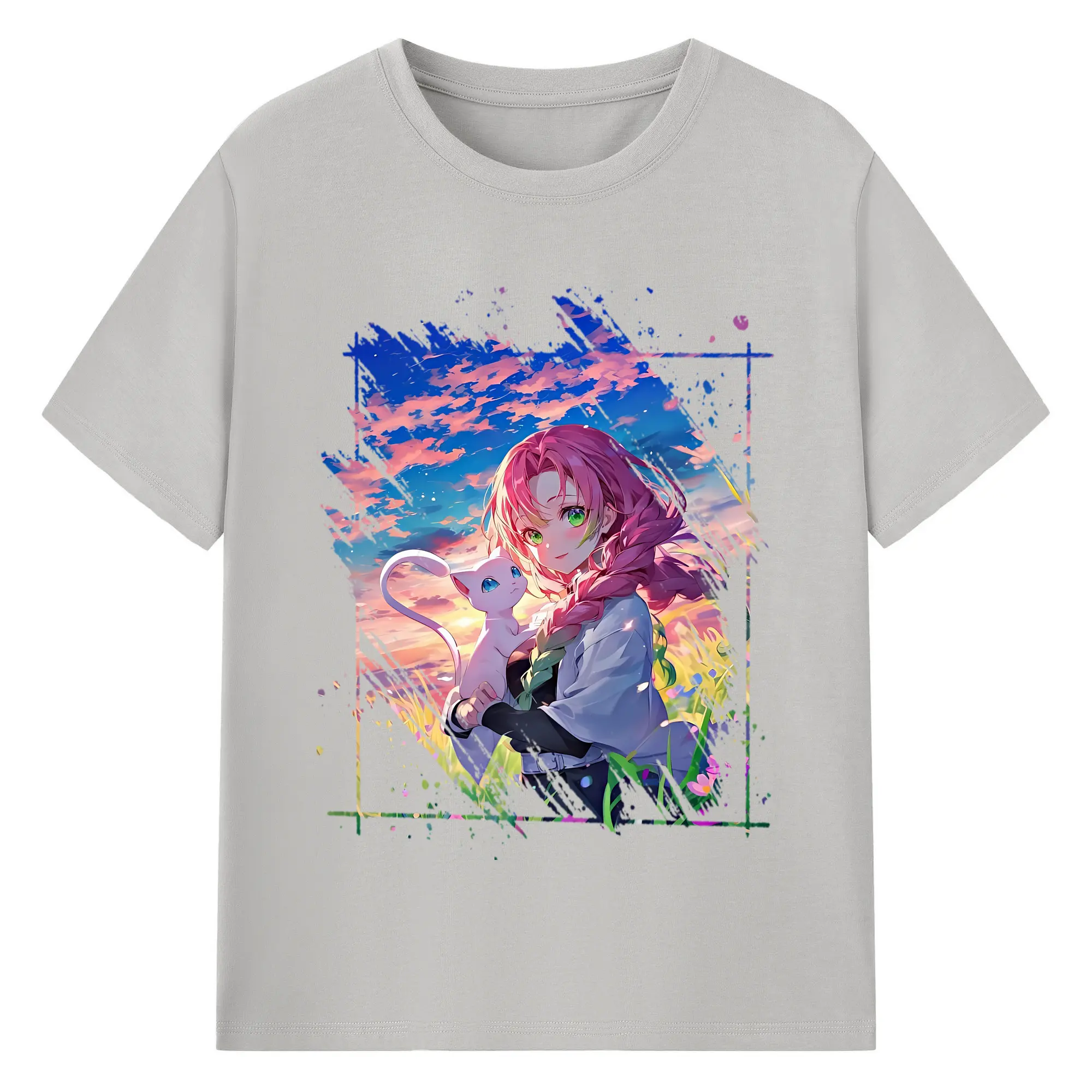 鬼滅の刃 グッズ,甘露寺 蜜璃 - 綿100% 半袖Tシャツ ・ バックプリント ・ 快適 通気性 ・ 日常使い 散歩 スポーツ用