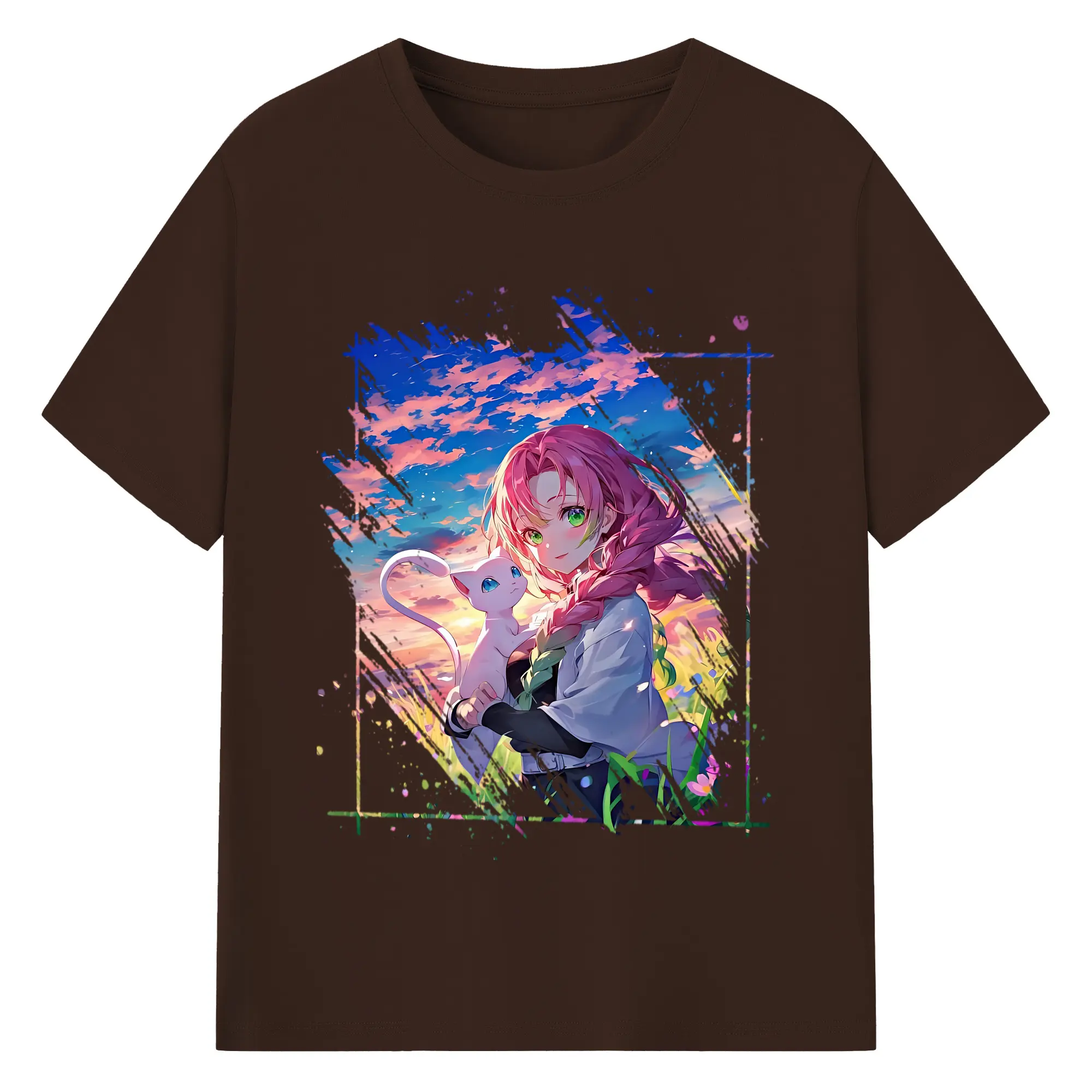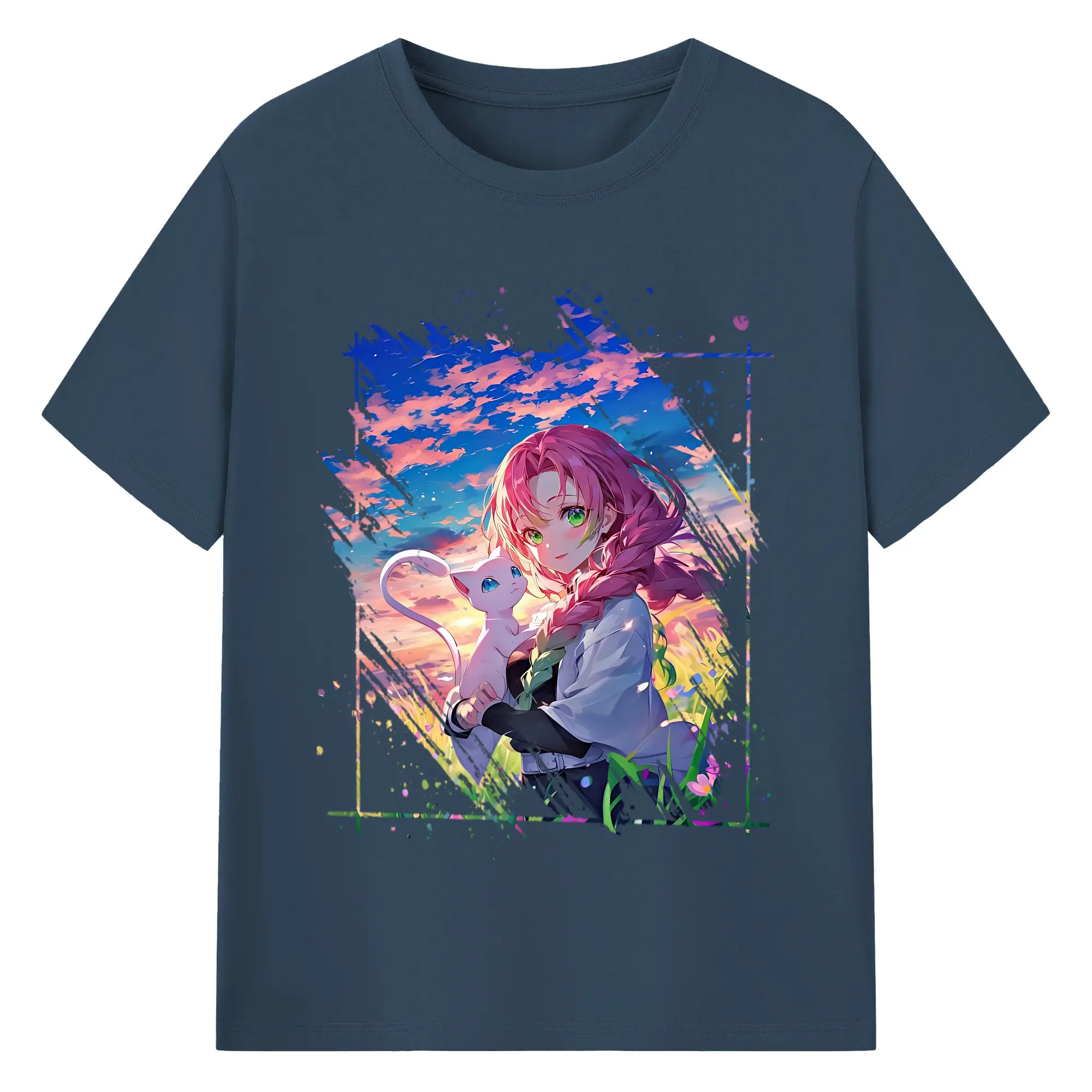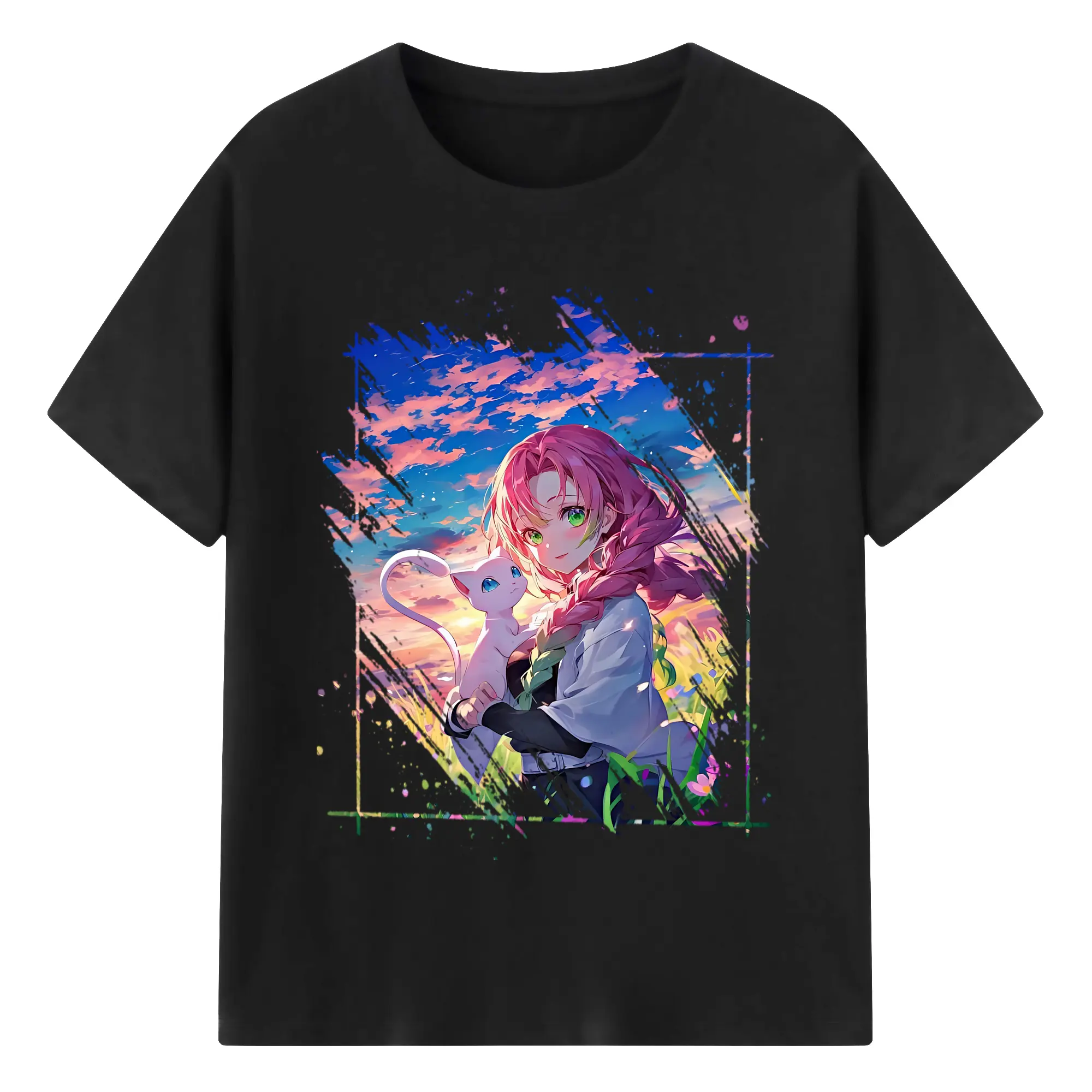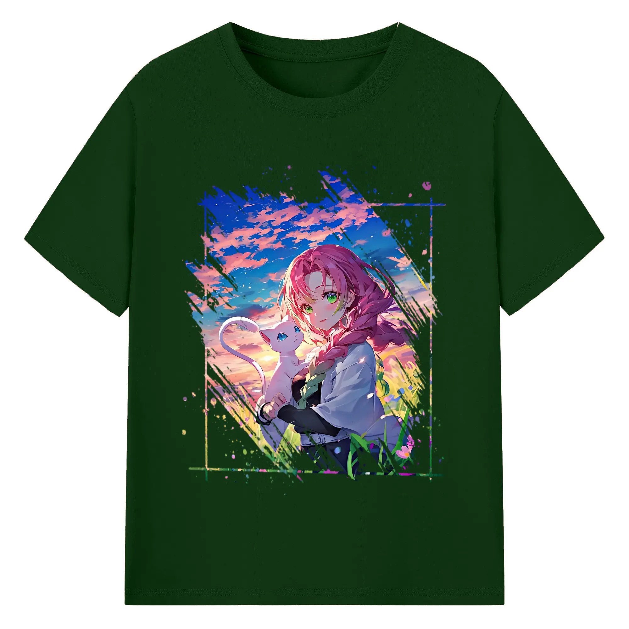 鬼滅の刃 グッズ,甘露寺 蜜璃 - 綿100% 半袖Tシャツ ・ バックプリント ・ 快適 通気性 ・ 日常使い 散歩 スポーツ用
