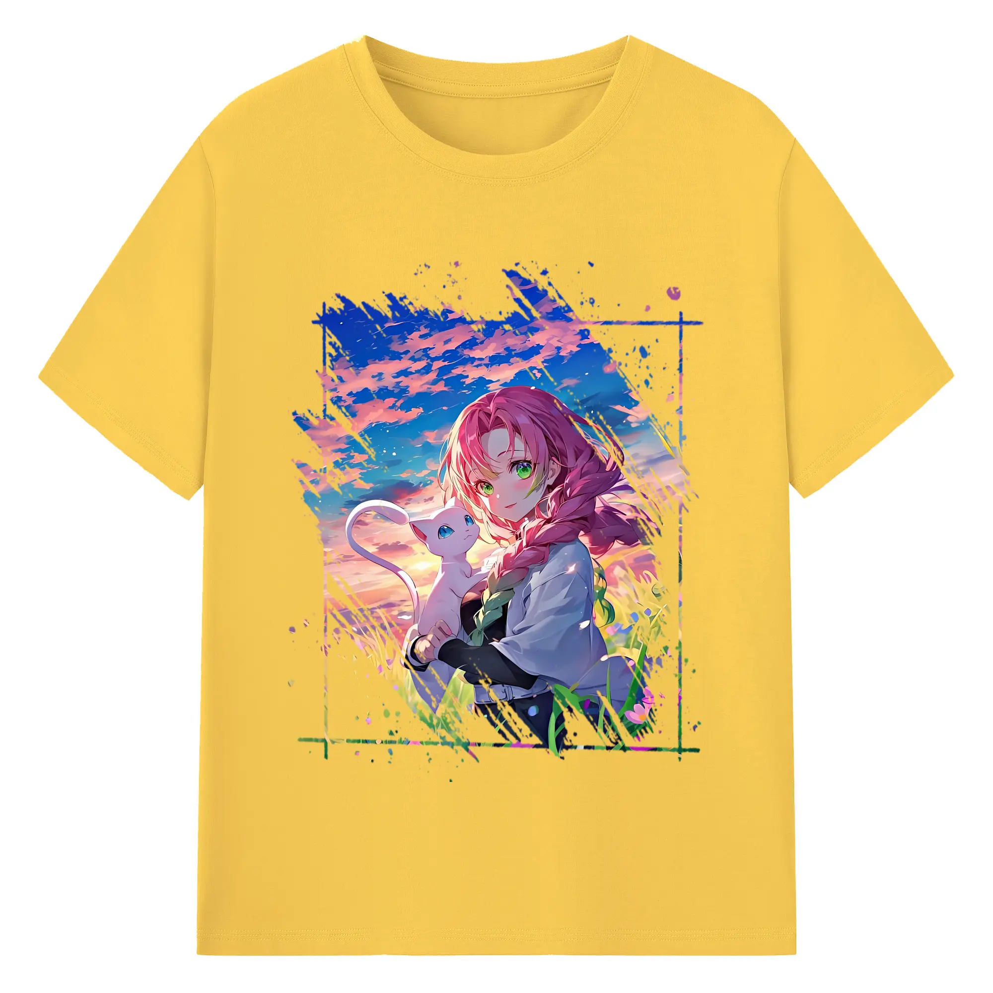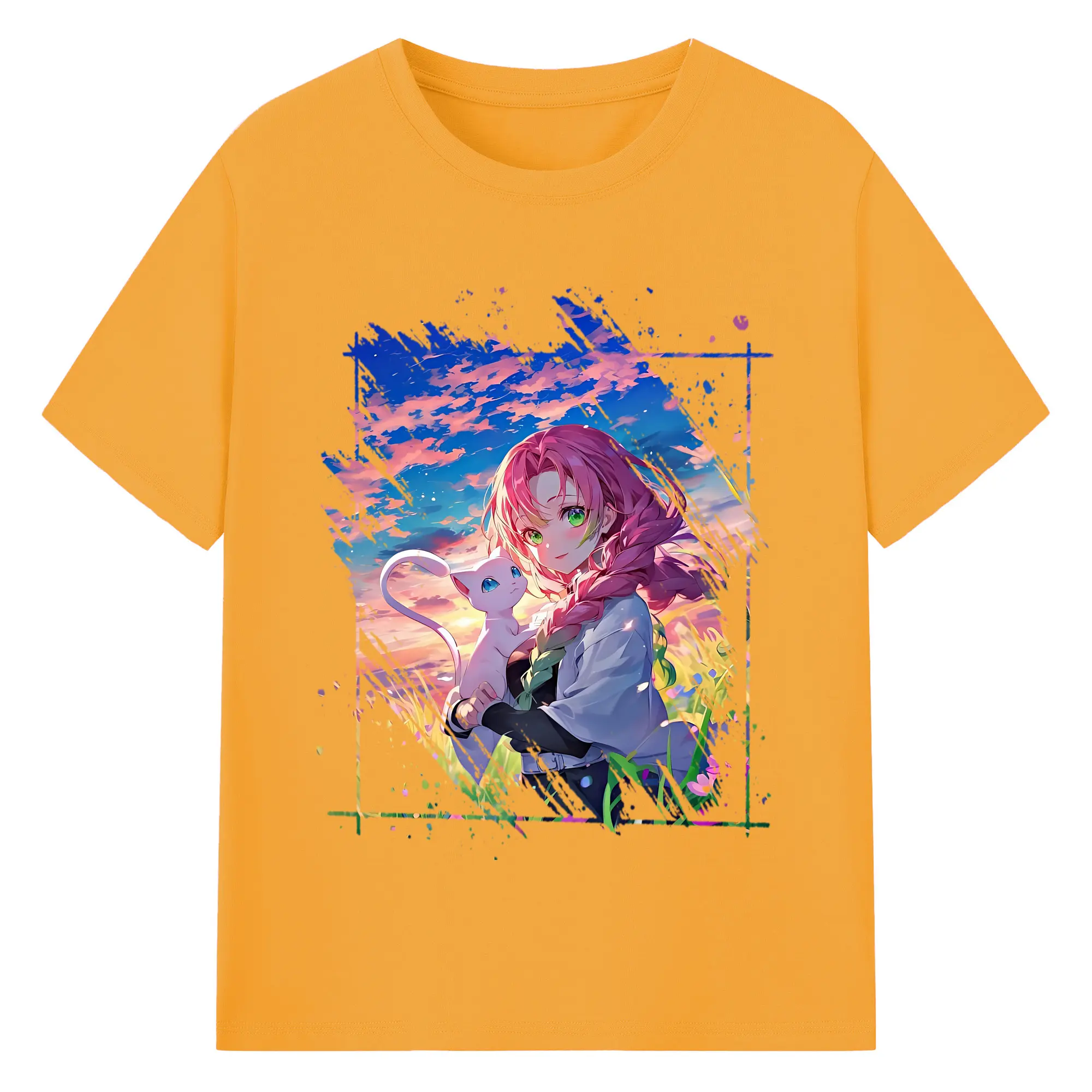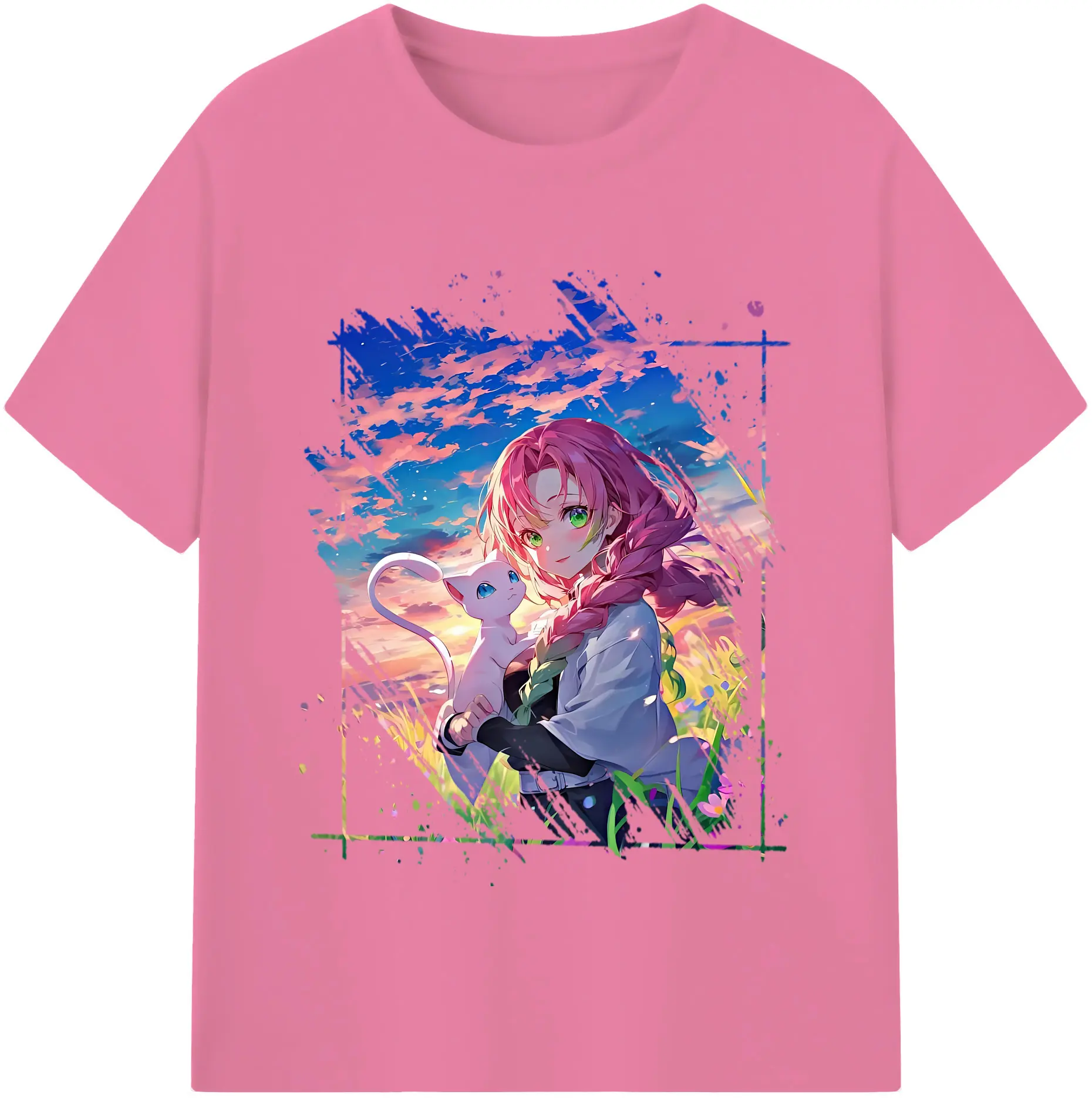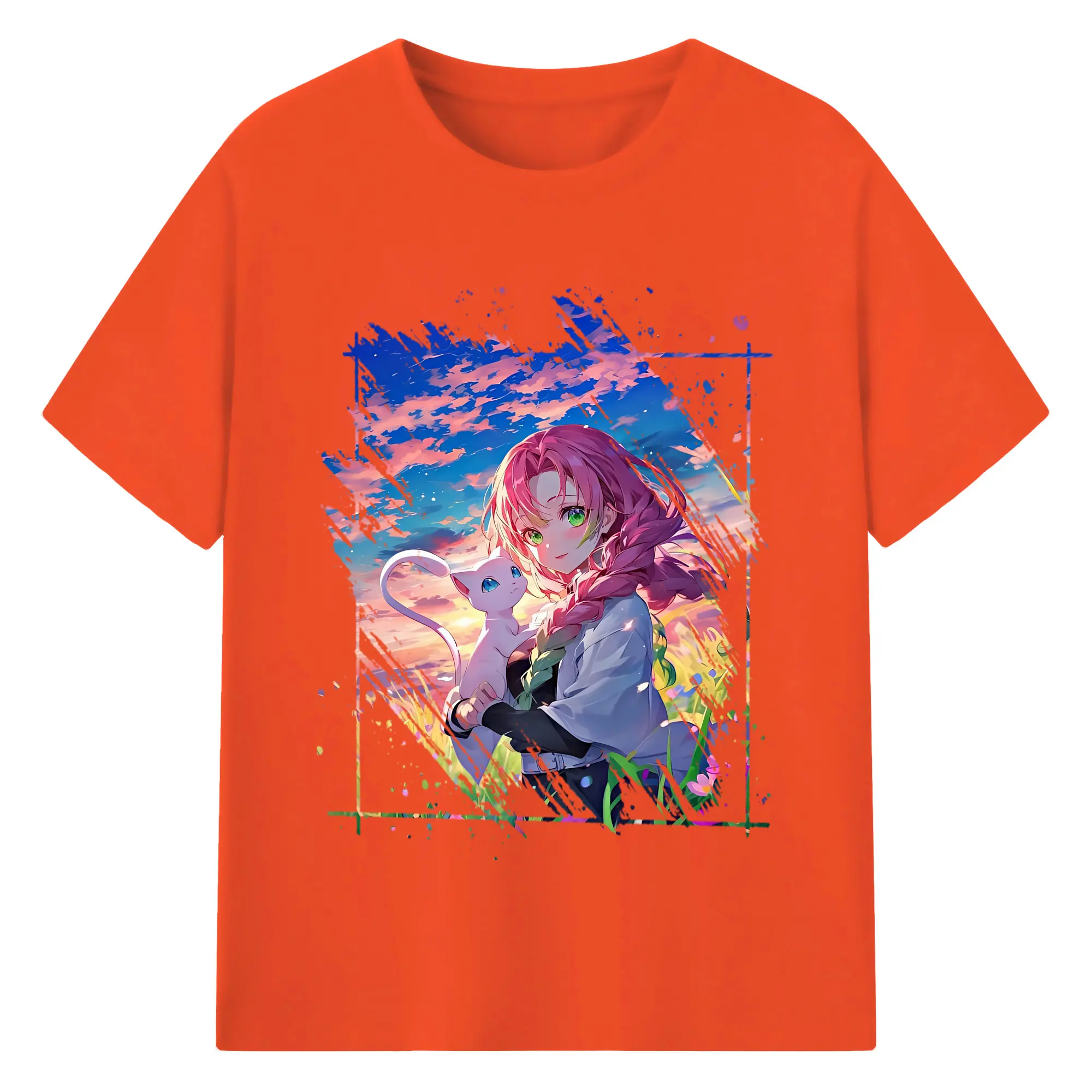 鬼滅の刃 グッズ,甘露寺 蜜璃 - 綿100% キッズTシャツ ・ フロントプリント ・ 快適 通気性 ・ スポーツ カジュアル 散歩用