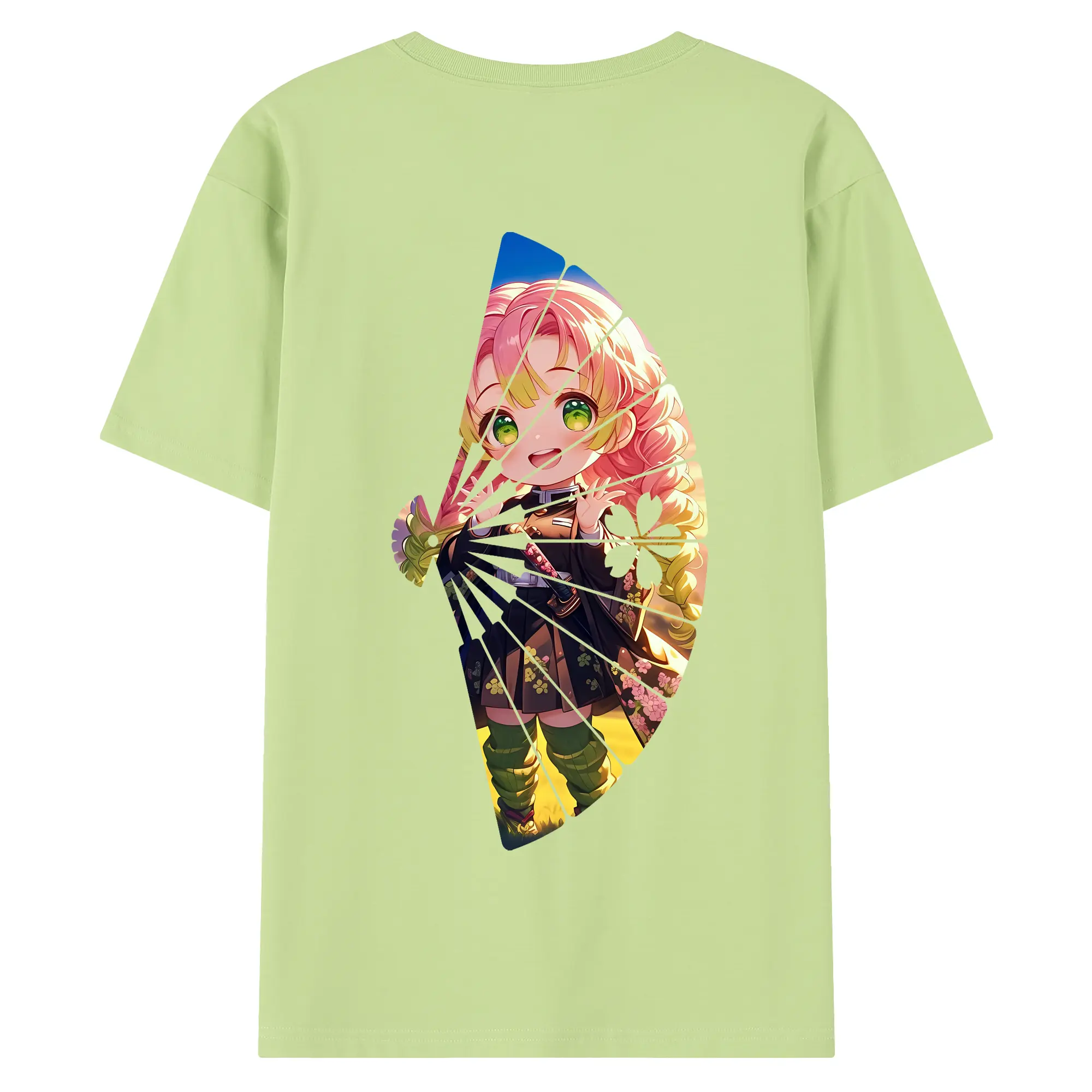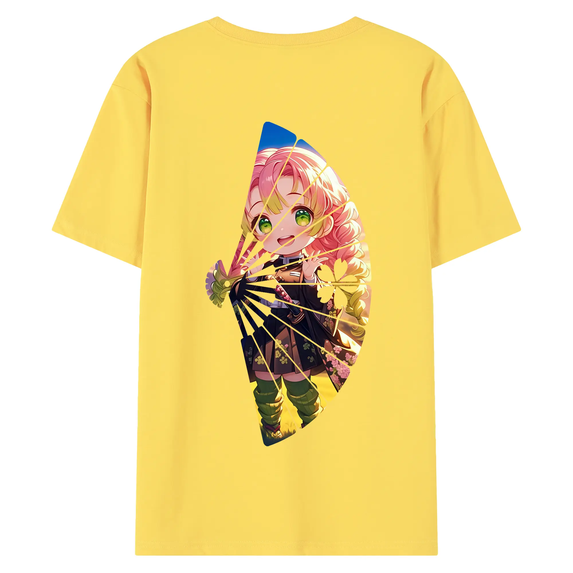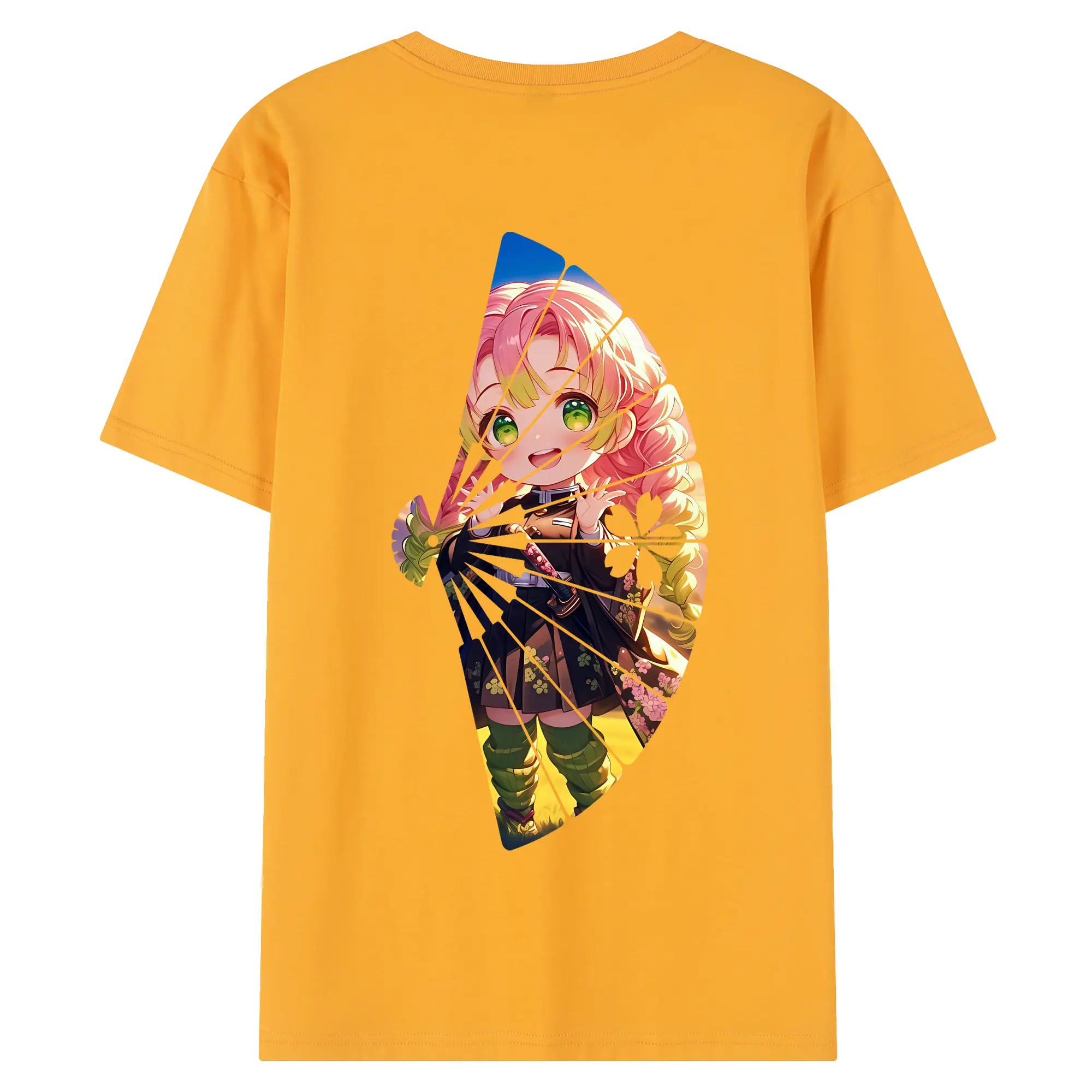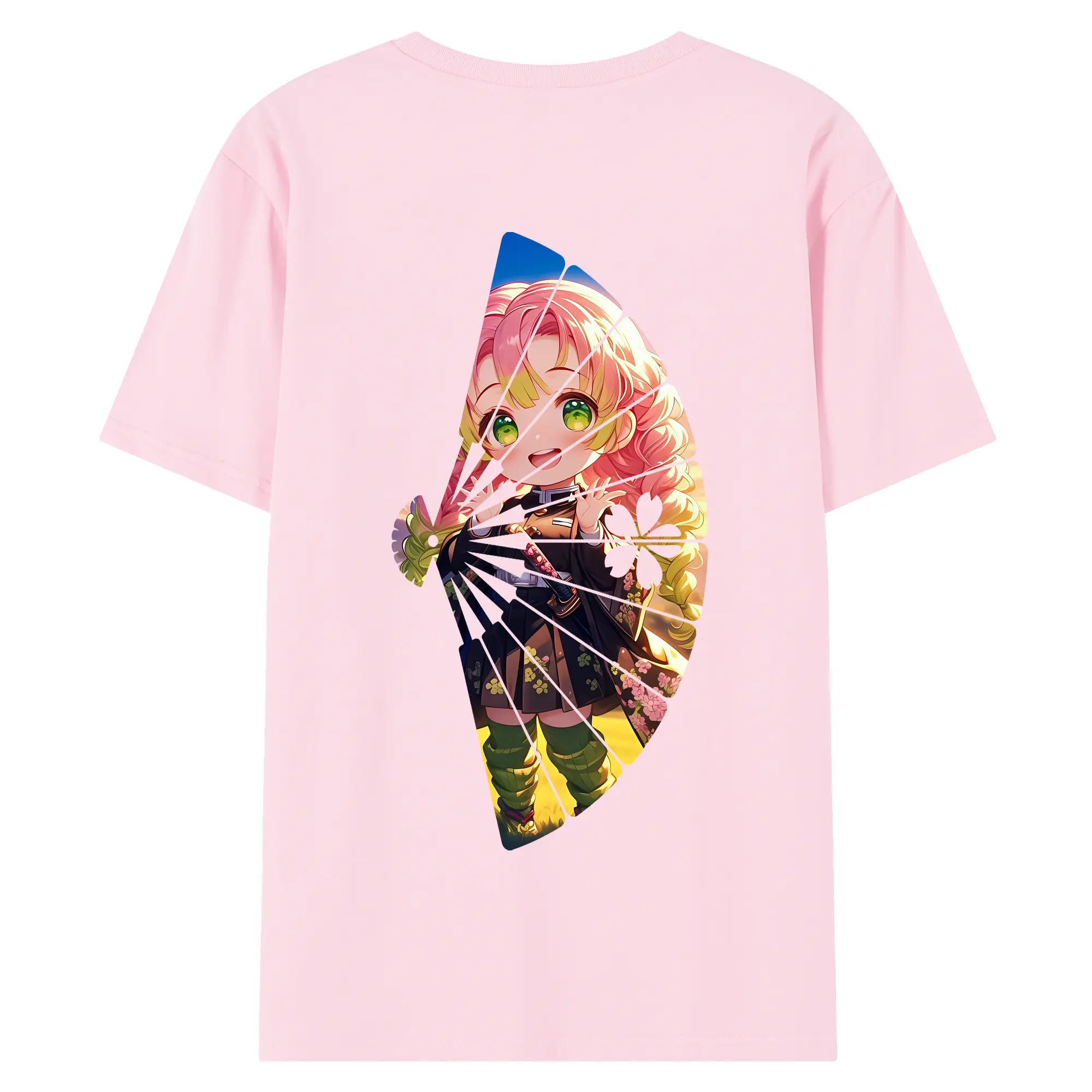 鬼滅の刃 グッズ,甘露寺 蜜璃 - 綿100% 半袖Tシャツ ・ フロントプリント ・ 快適 通気性 ・ 日常使い 散歩 スポーツ用