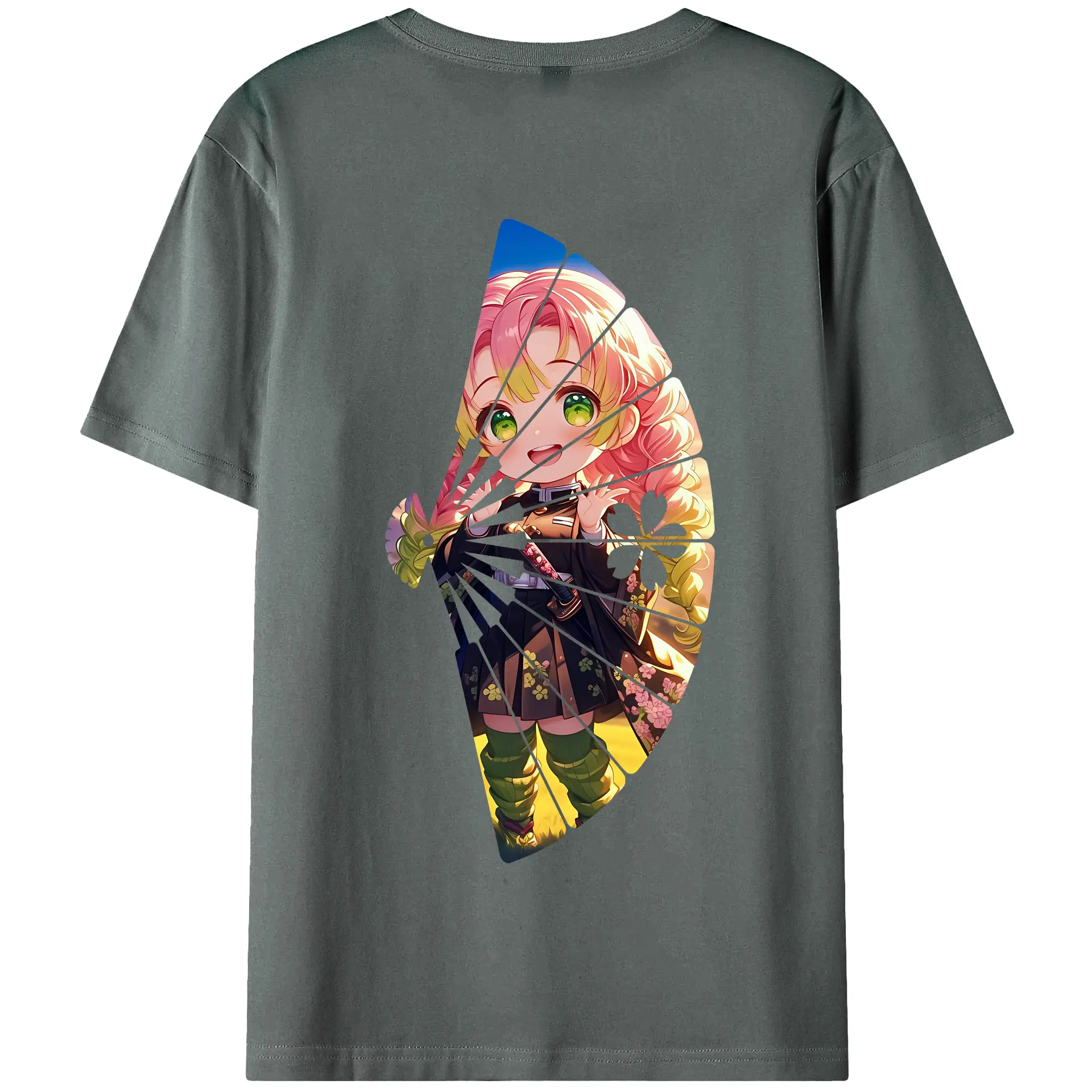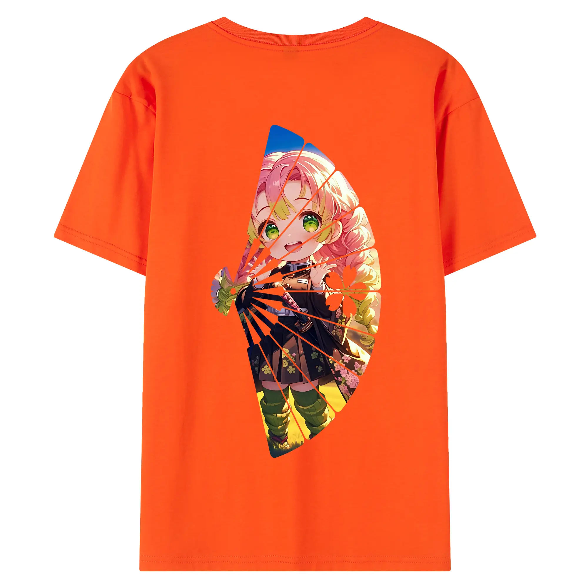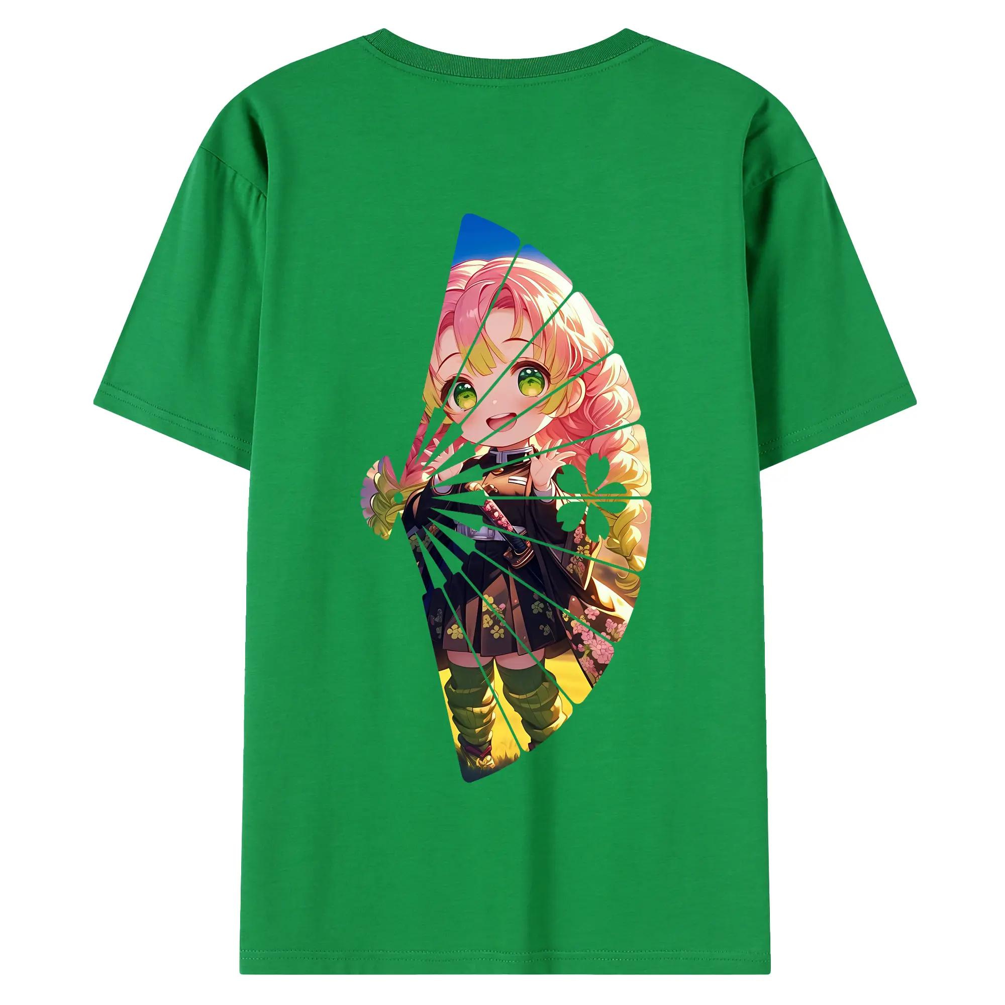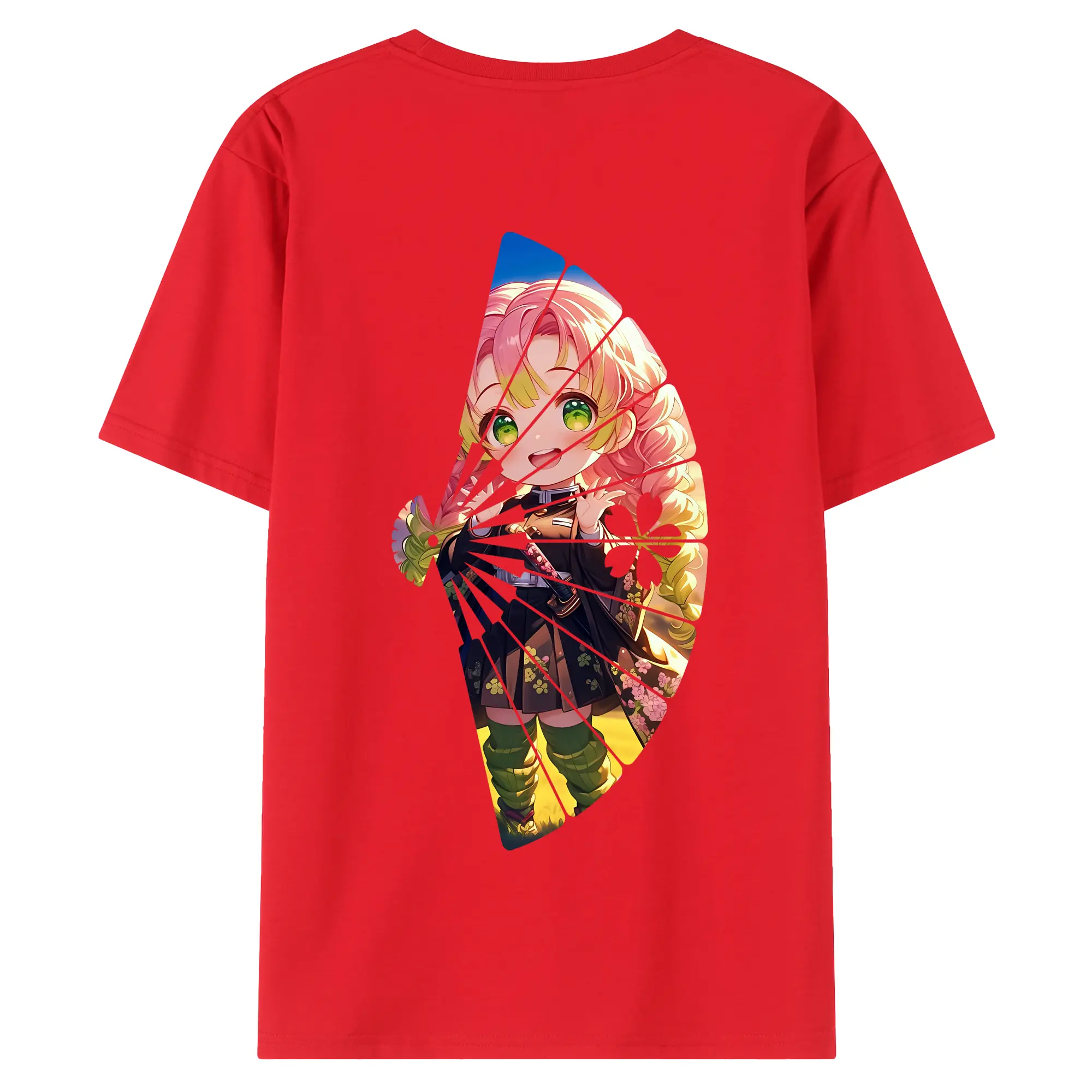 鬼滅の刃 グッズ,甘露寺 蜜璃 - 綿100% 半袖Tシャツ ・ フロントプリント ・ 快適 通気性 ・ 日常使い 散歩 スポーツ用
