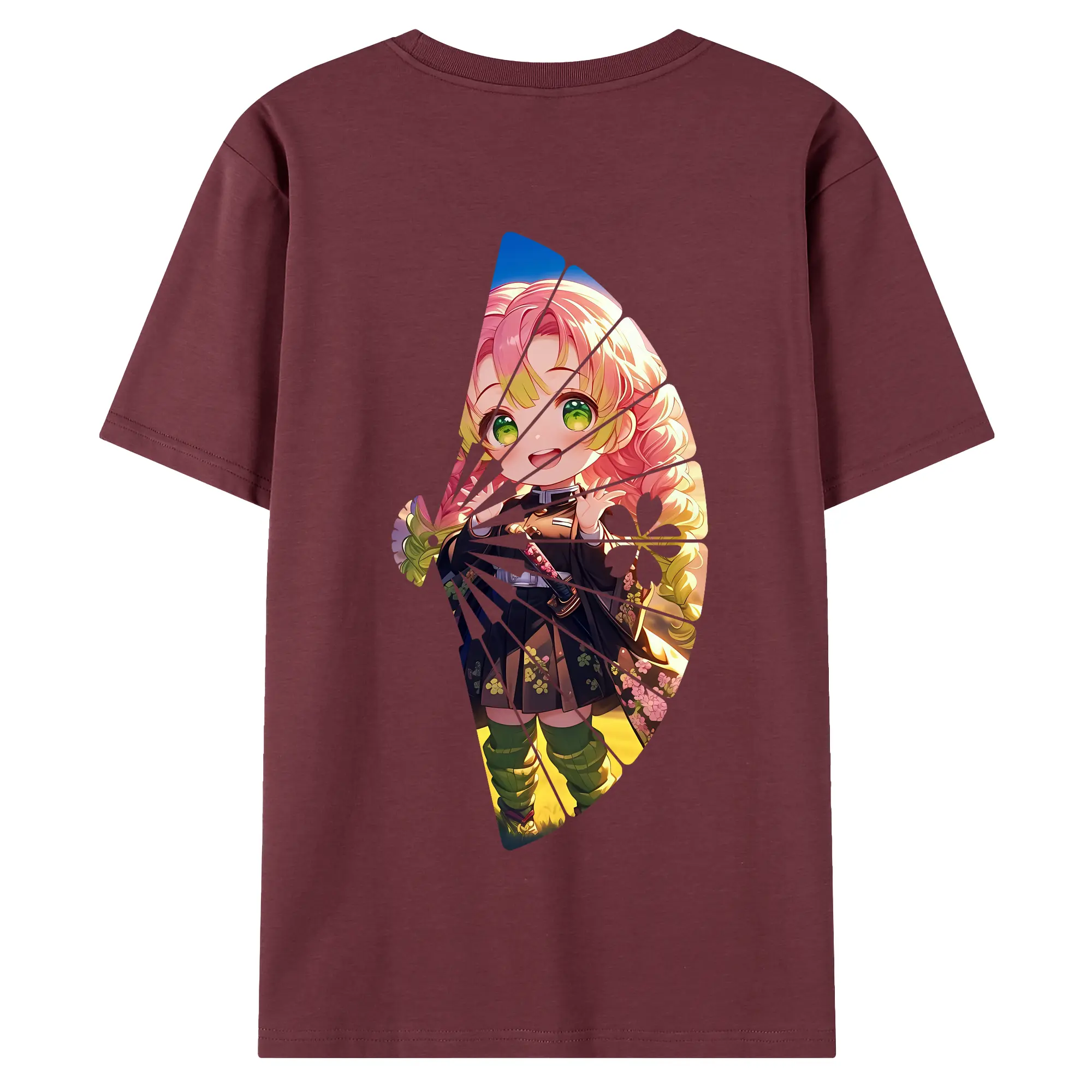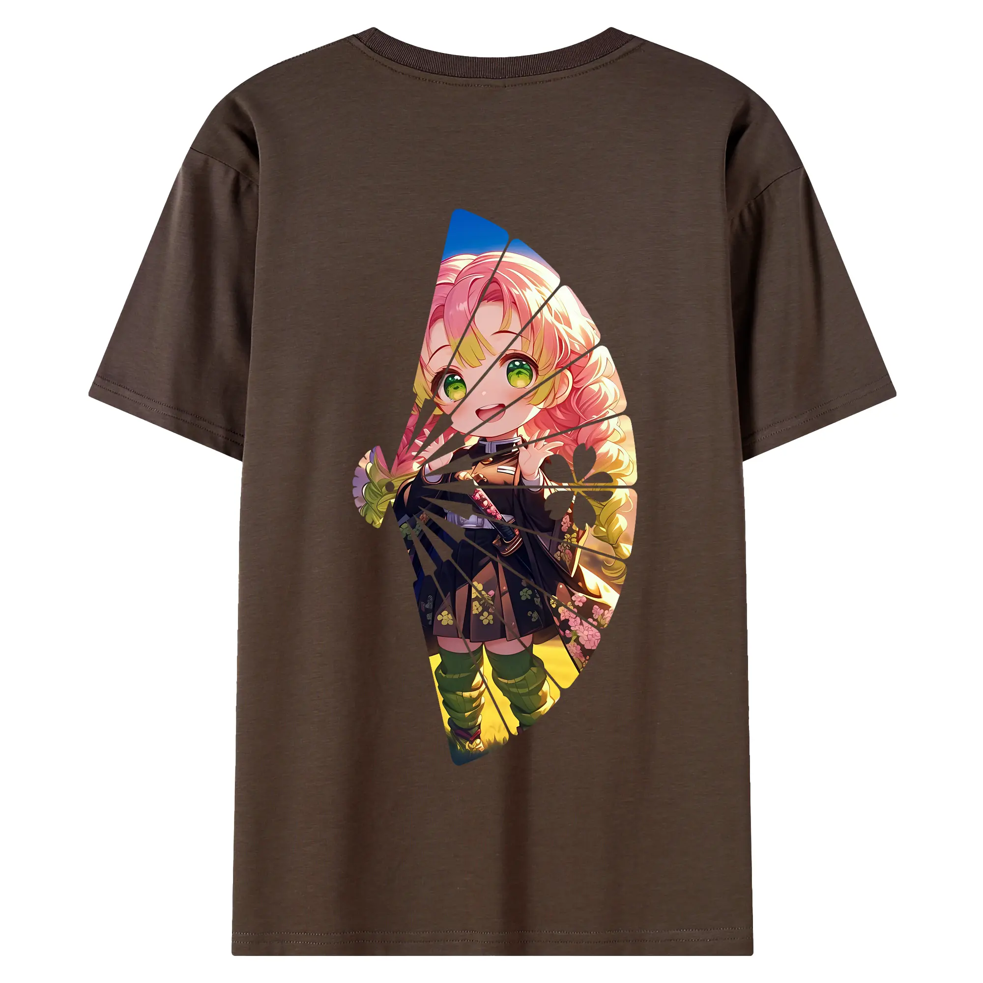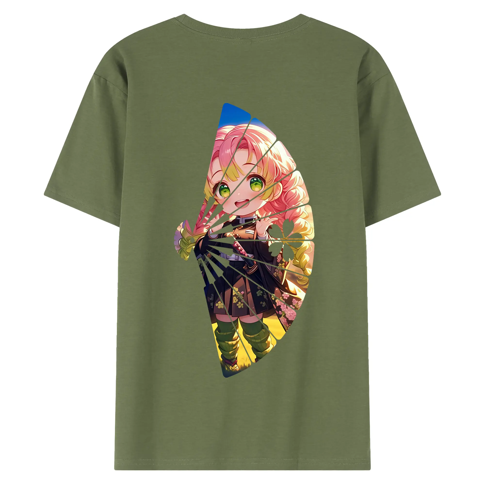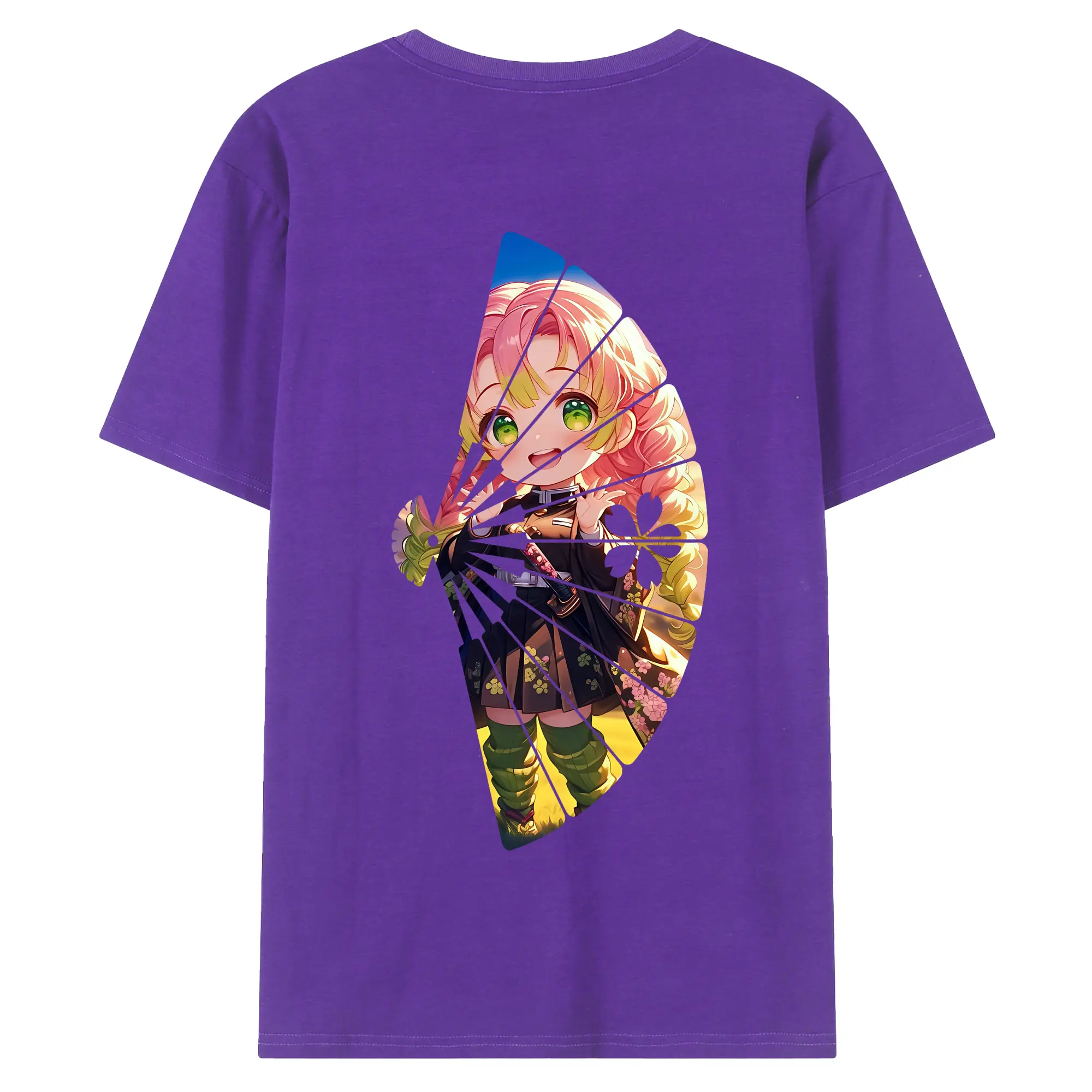 鬼滅の刃 グッズ,甘露寺 蜜璃 - 綿100% 半袖Tシャツ ・ フロントプリント ・ 快適 通気性 ・ 日常使い 散歩 スポーツ用