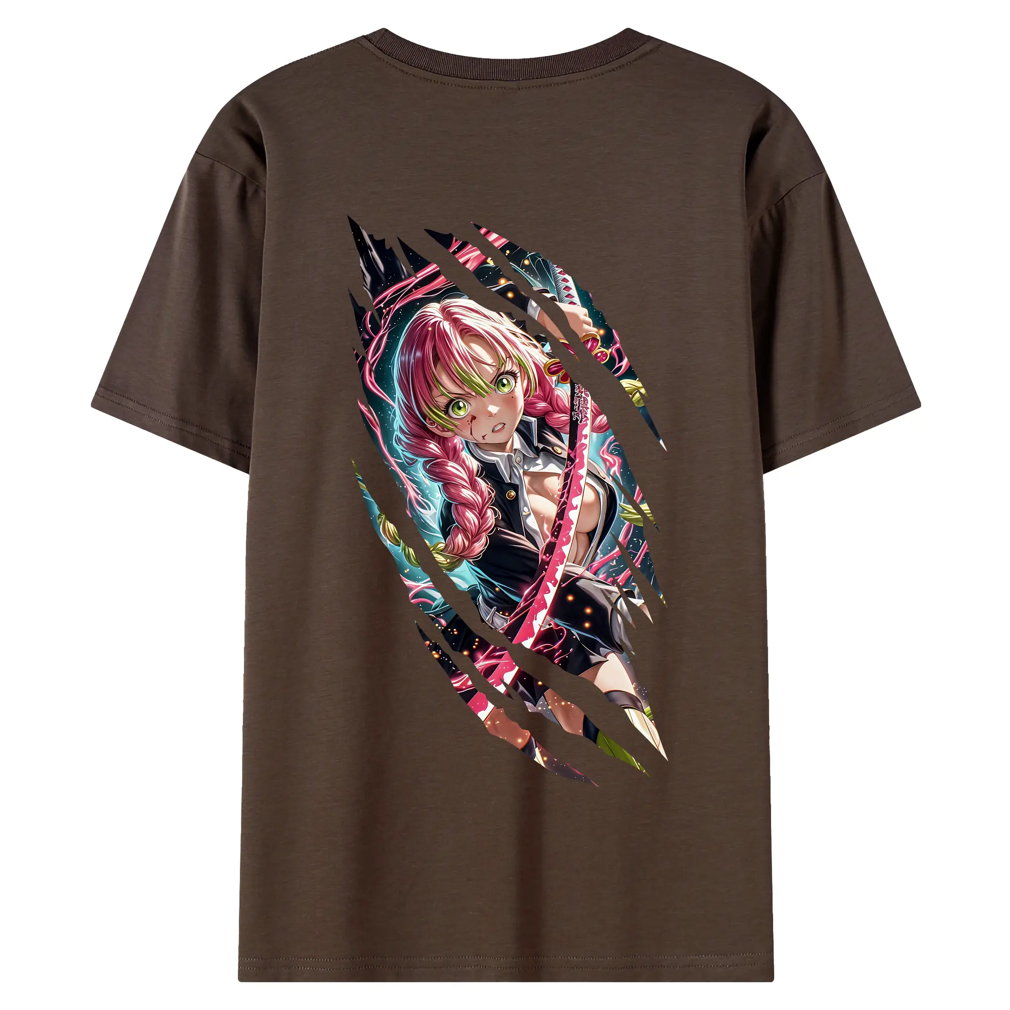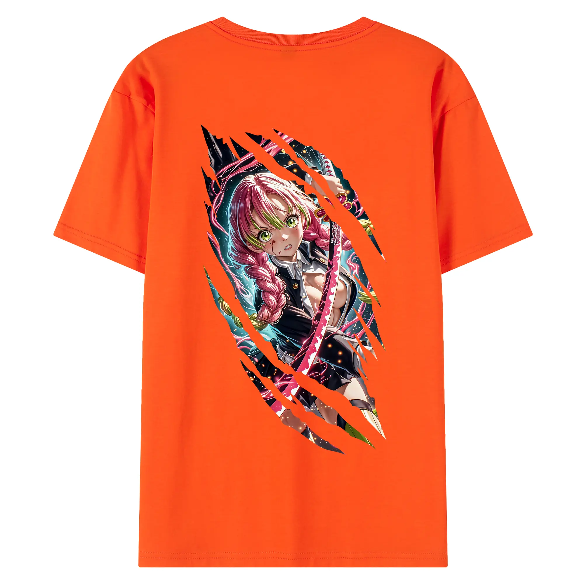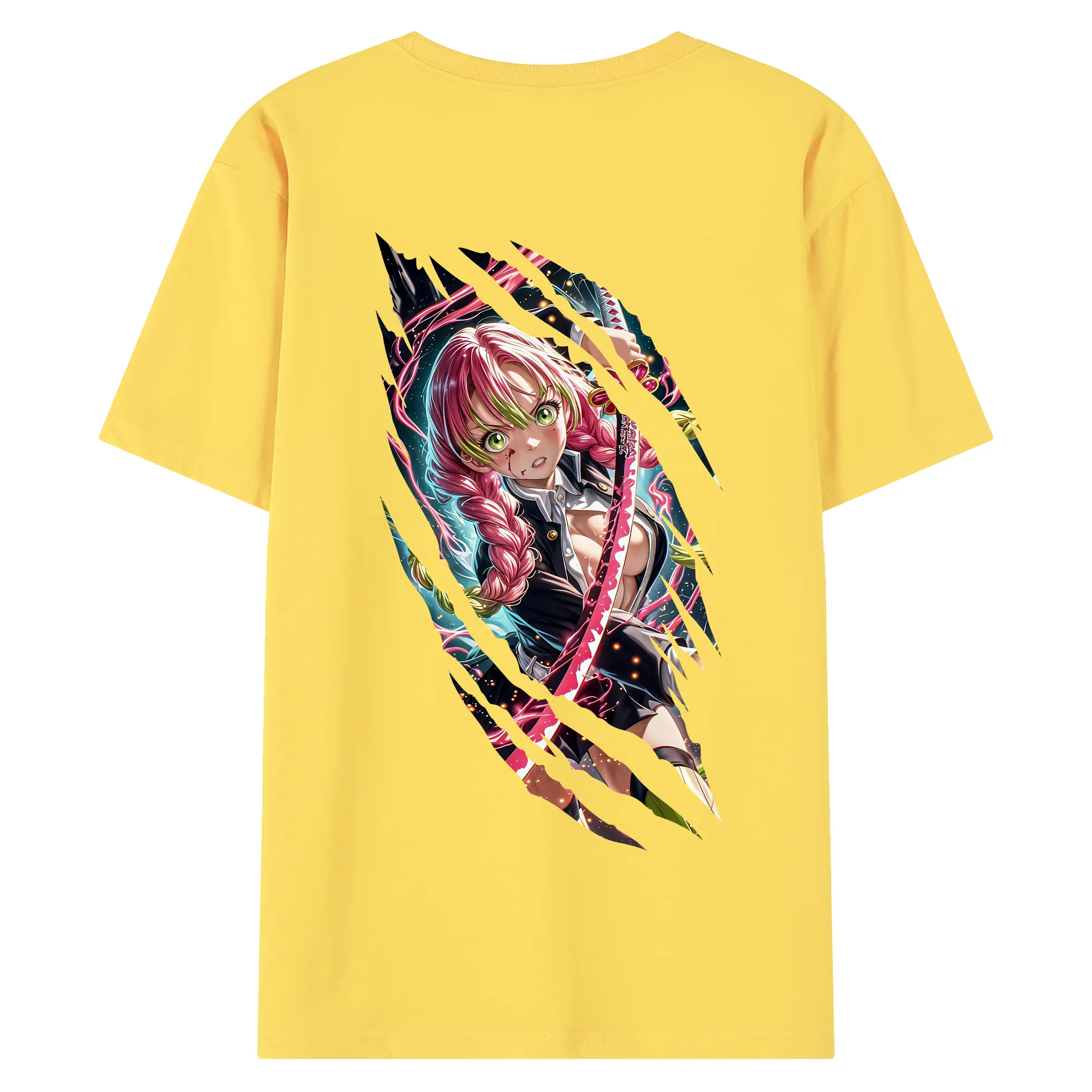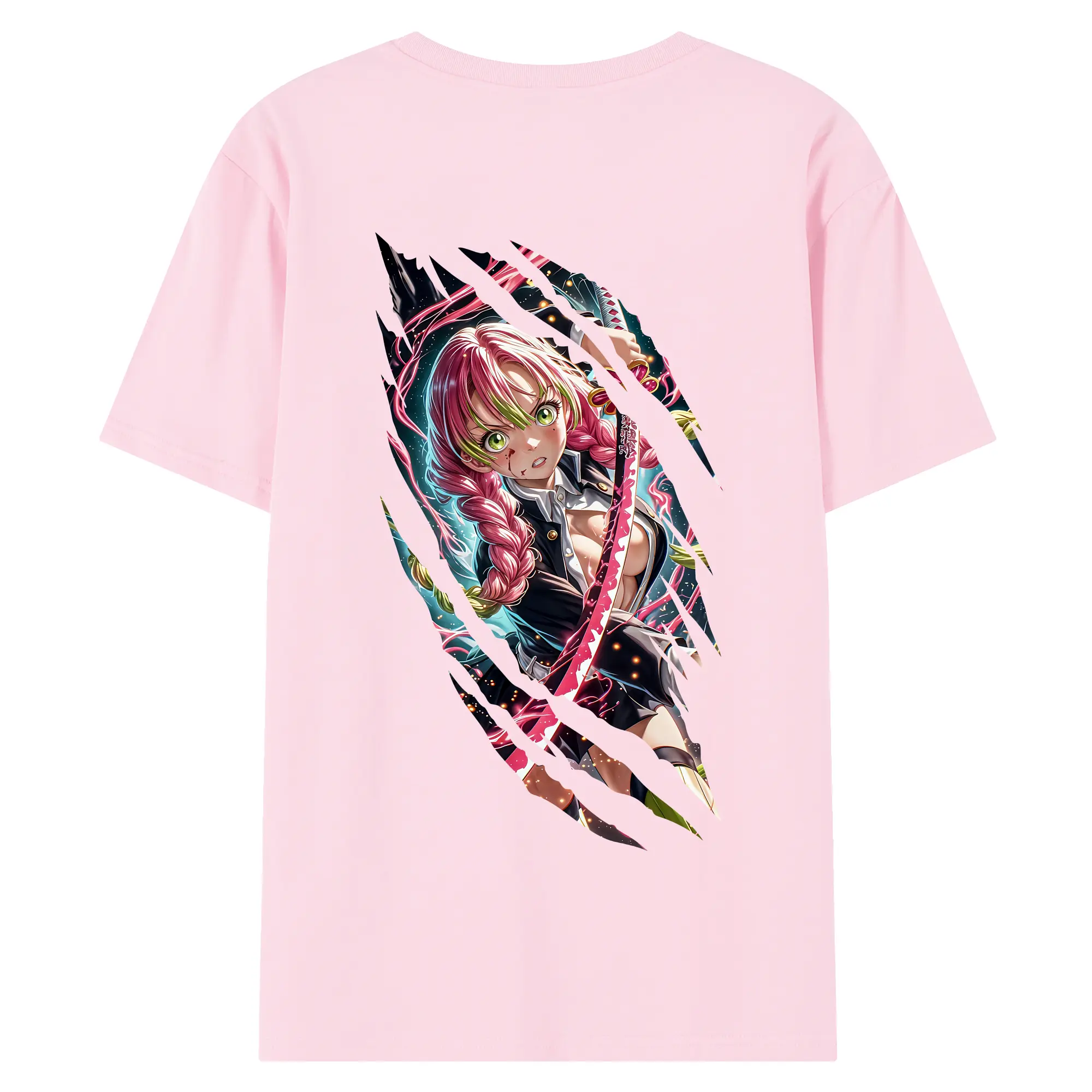 鬼滅の刃 グッズ,甘露寺 蜜璃 - 綿100% 半袖Tシャツ ・ フロントプリント ・ 快適 通気性 ・ 日常使い 散歩 スポーツ用