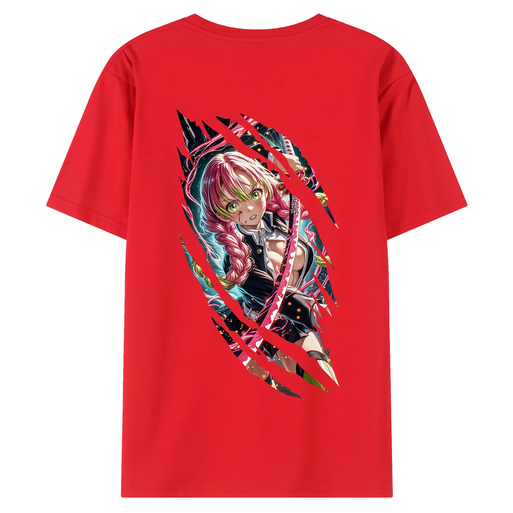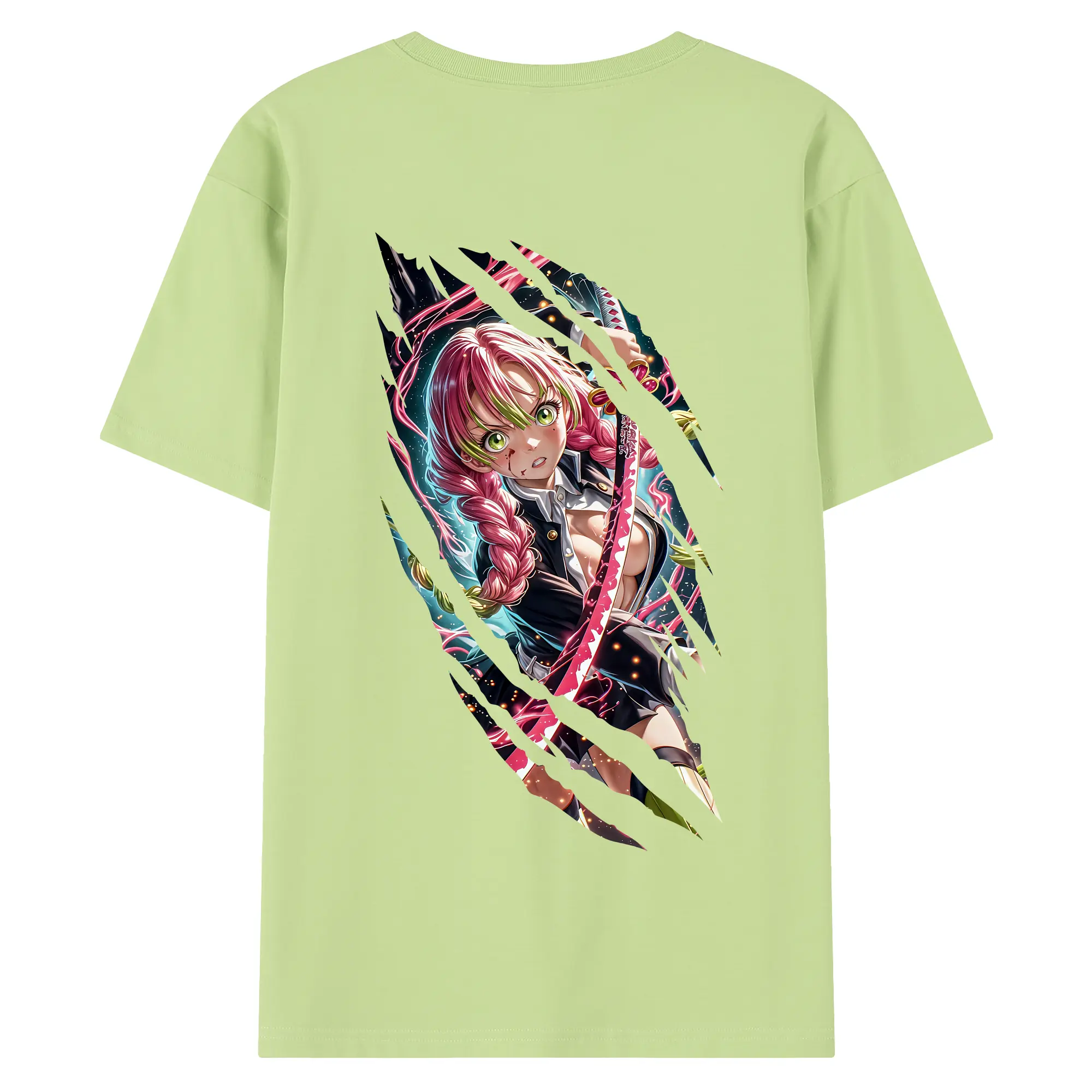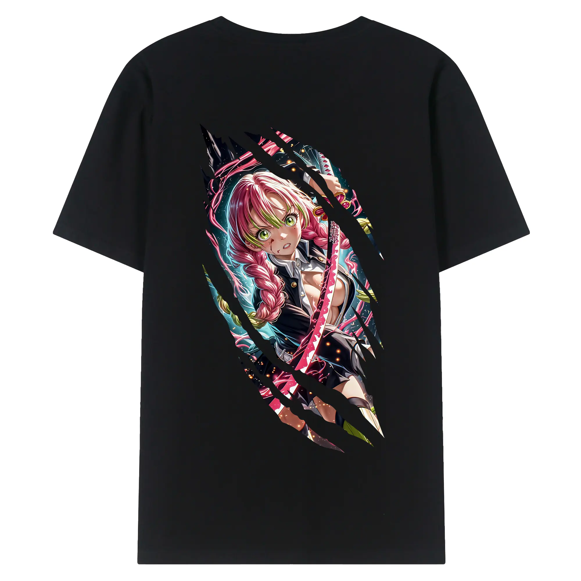鬼滅の刃 グッズ,甘露寺 蜜璃 - 綿100% 半袖Tシャツ ・ フロントプリント ・ 快適 通気性 ・ 日常使い 散歩 スポーツ用
