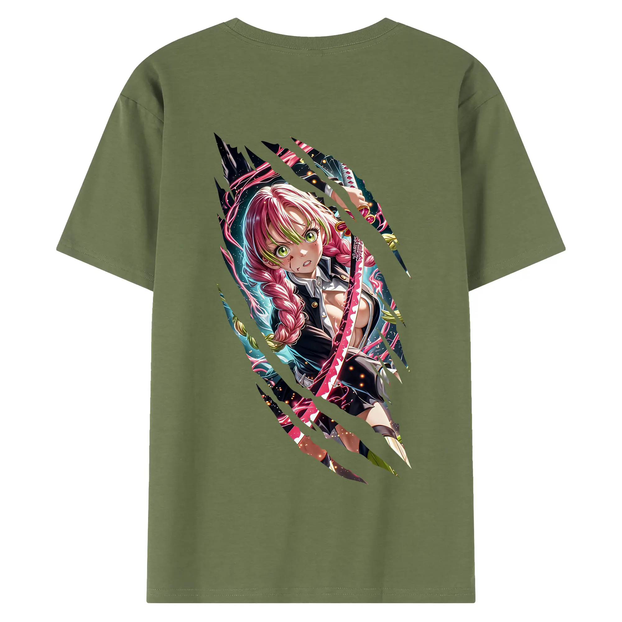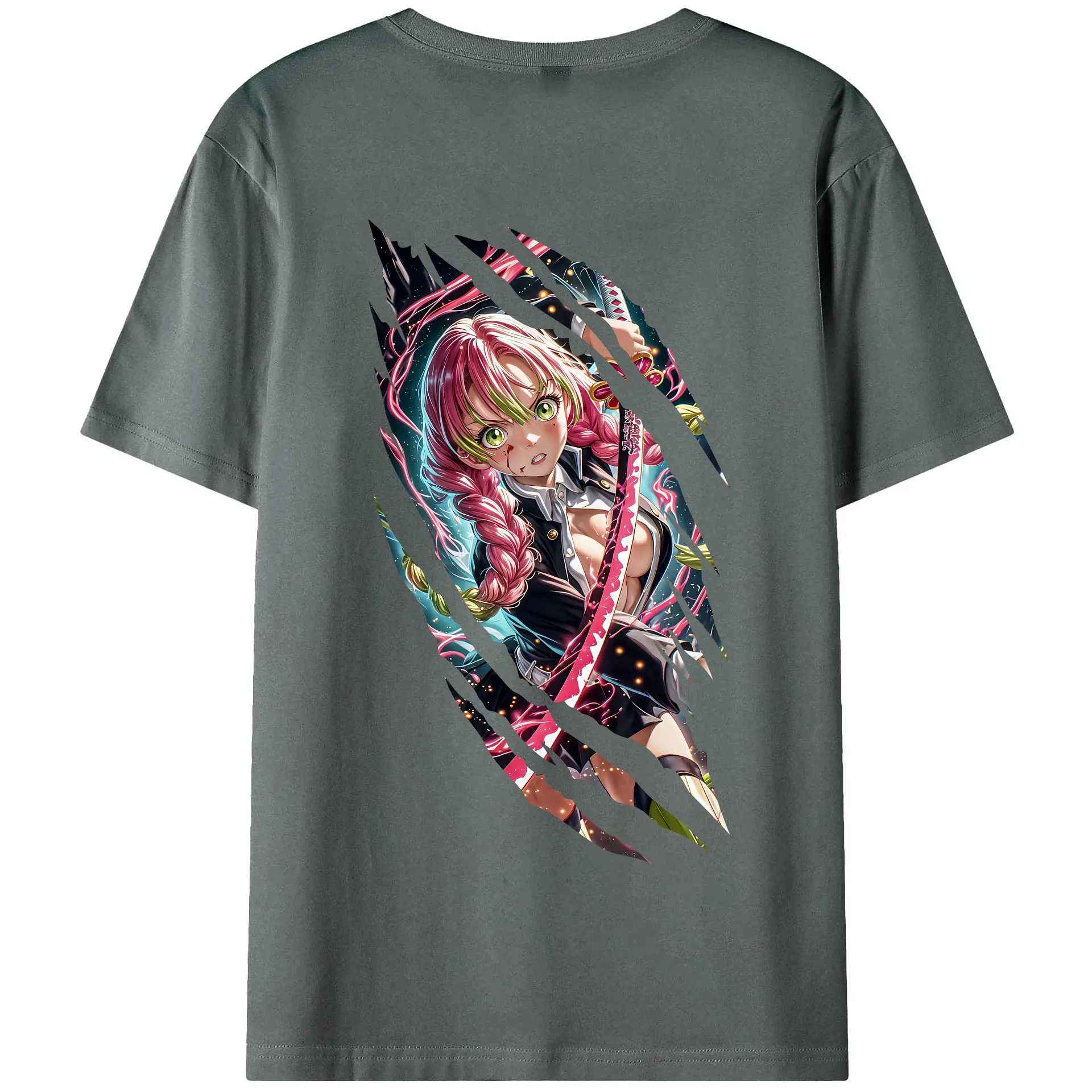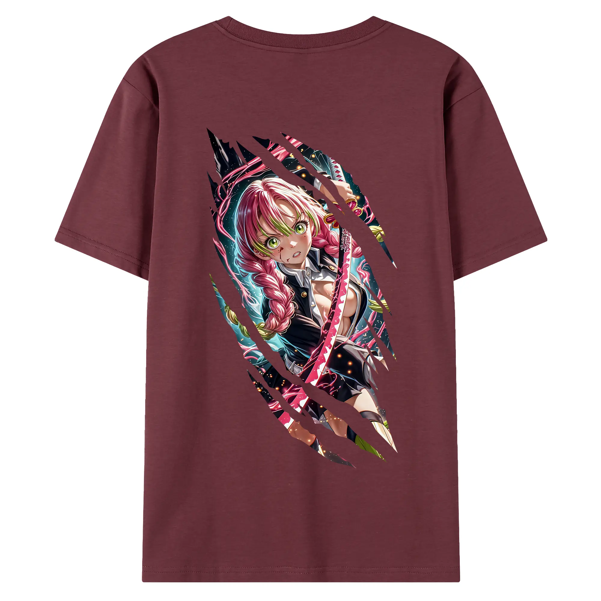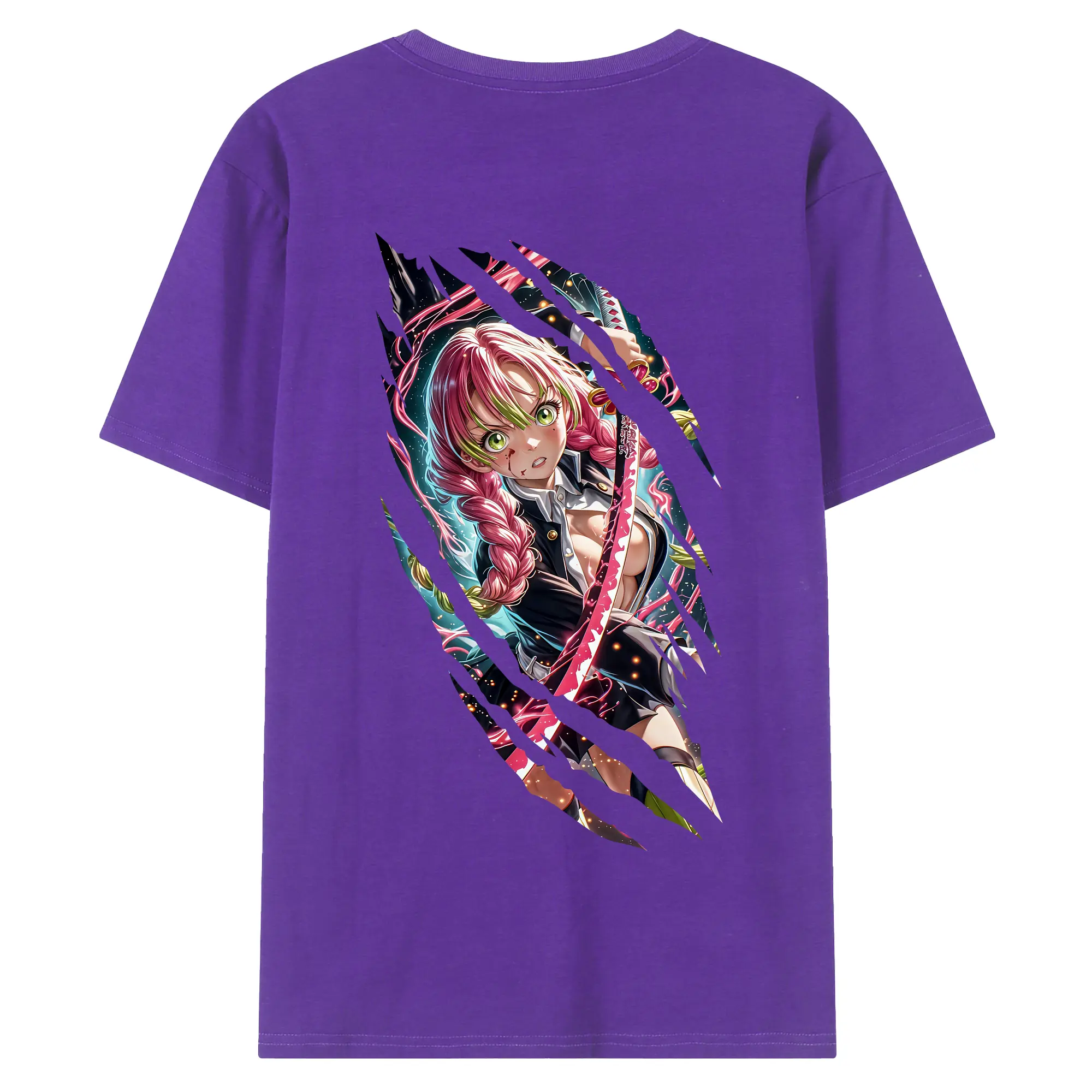 鬼滅の刃 グッズ,甘露寺 蜜璃 - 綿100% 半袖Tシャツ ・ フロントプリント ・ 快適 通気性 ・ 日常使い 散歩 スポーツ用