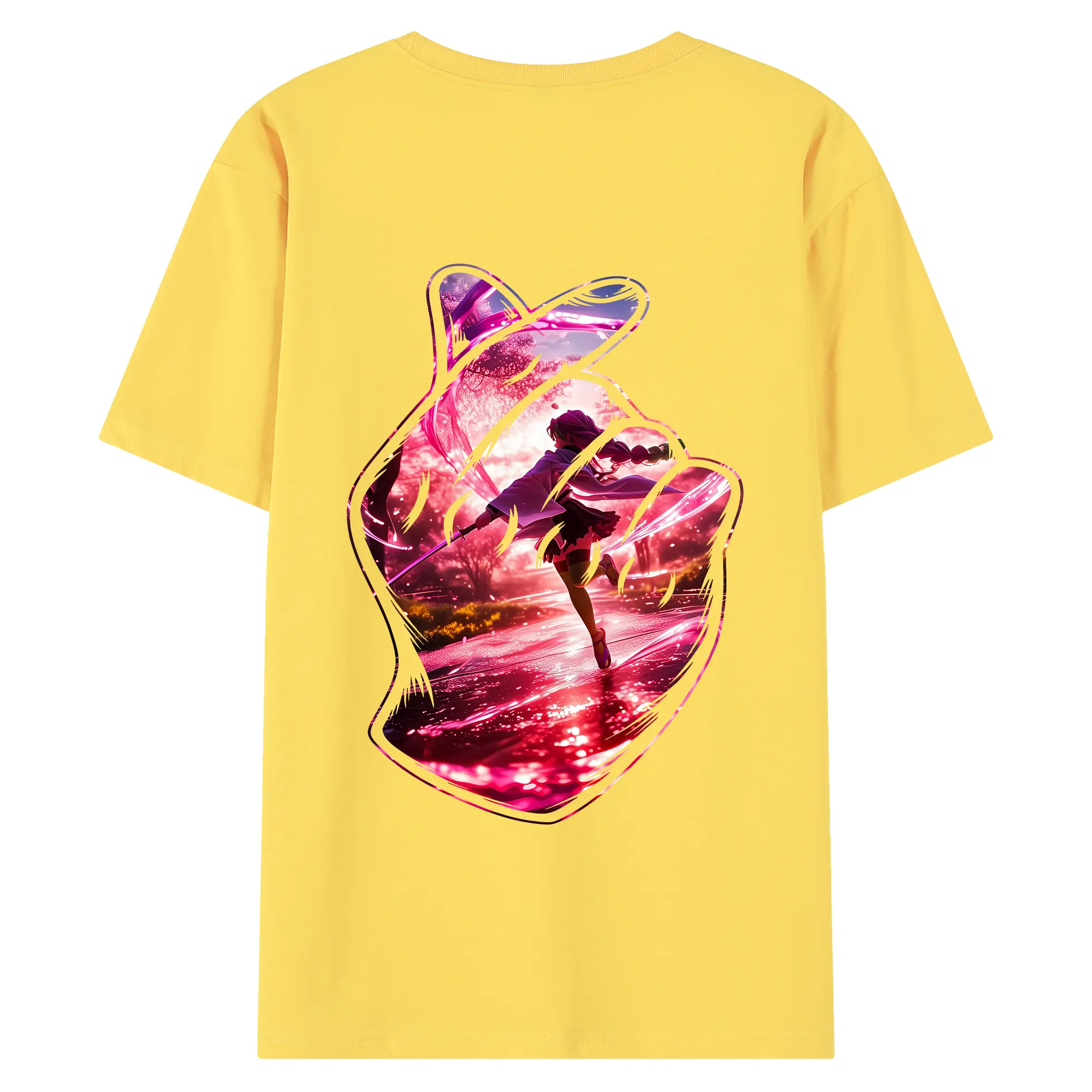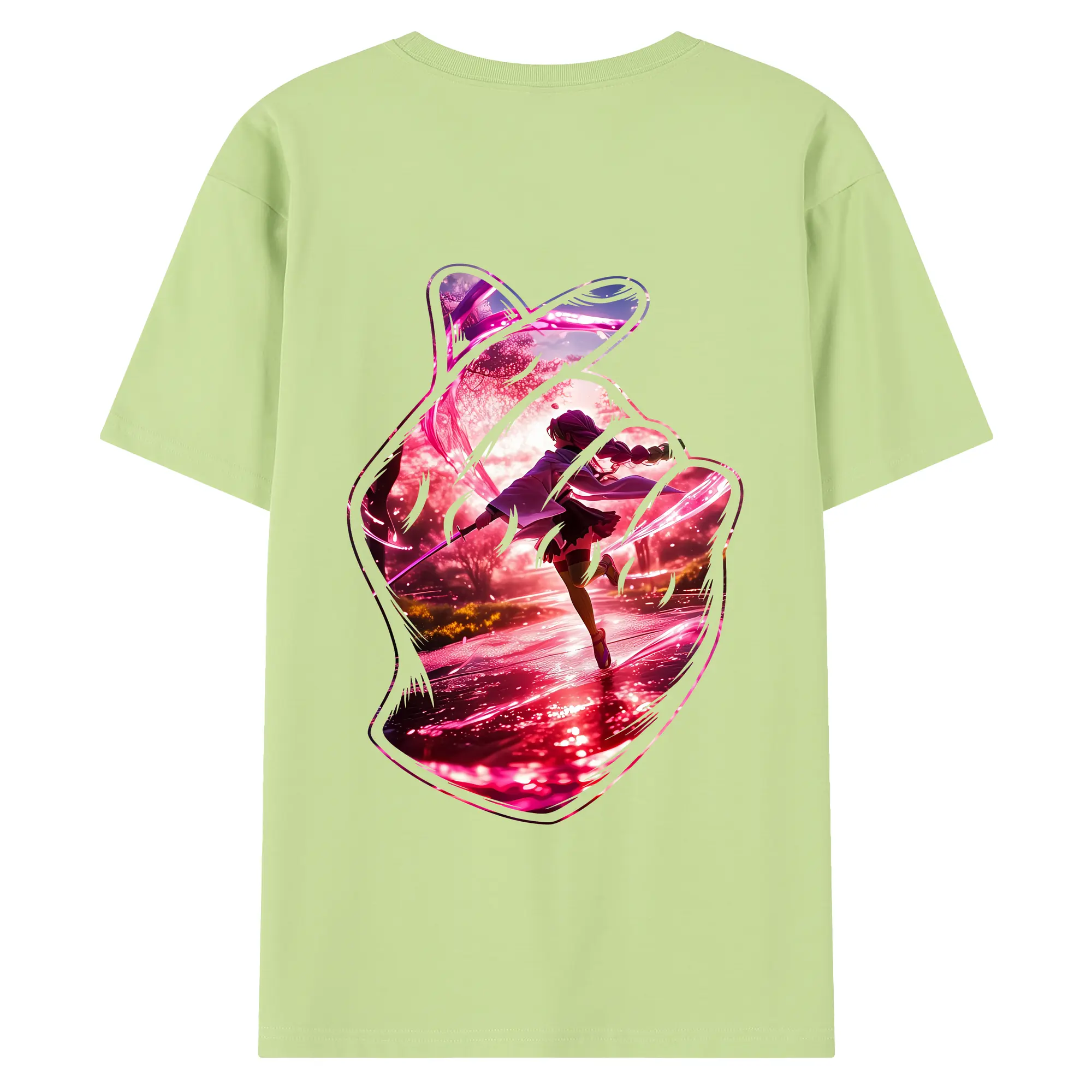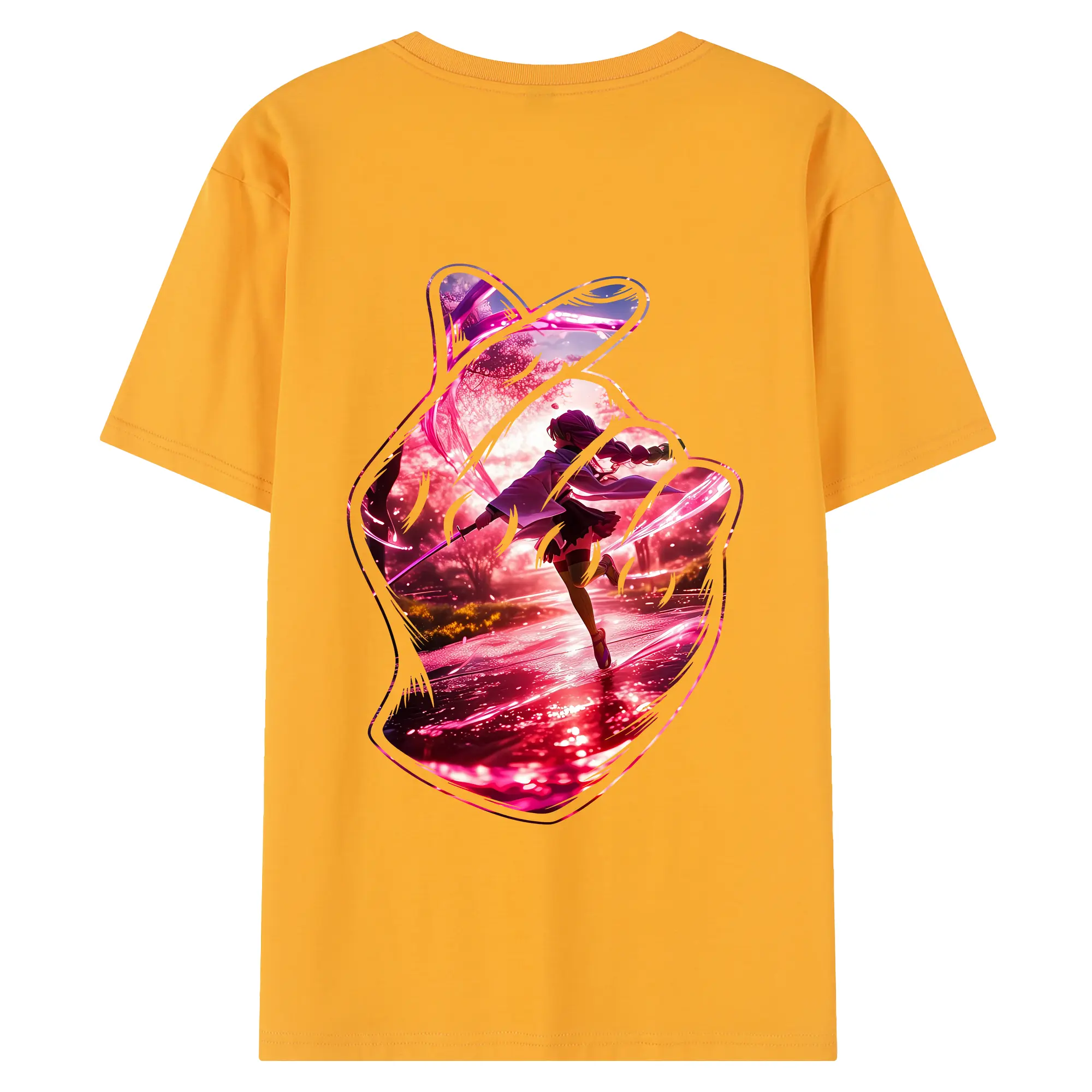 鬼滅の刃 グッズ,甘露寺 蜜璃 - 綿100% 半袖Tシャツ ・ フロントプリント ・ 快適 通気性 ・ 日常使い 散歩 スポーツ用