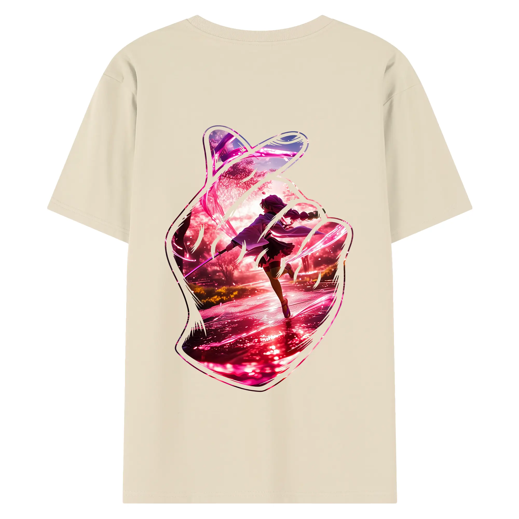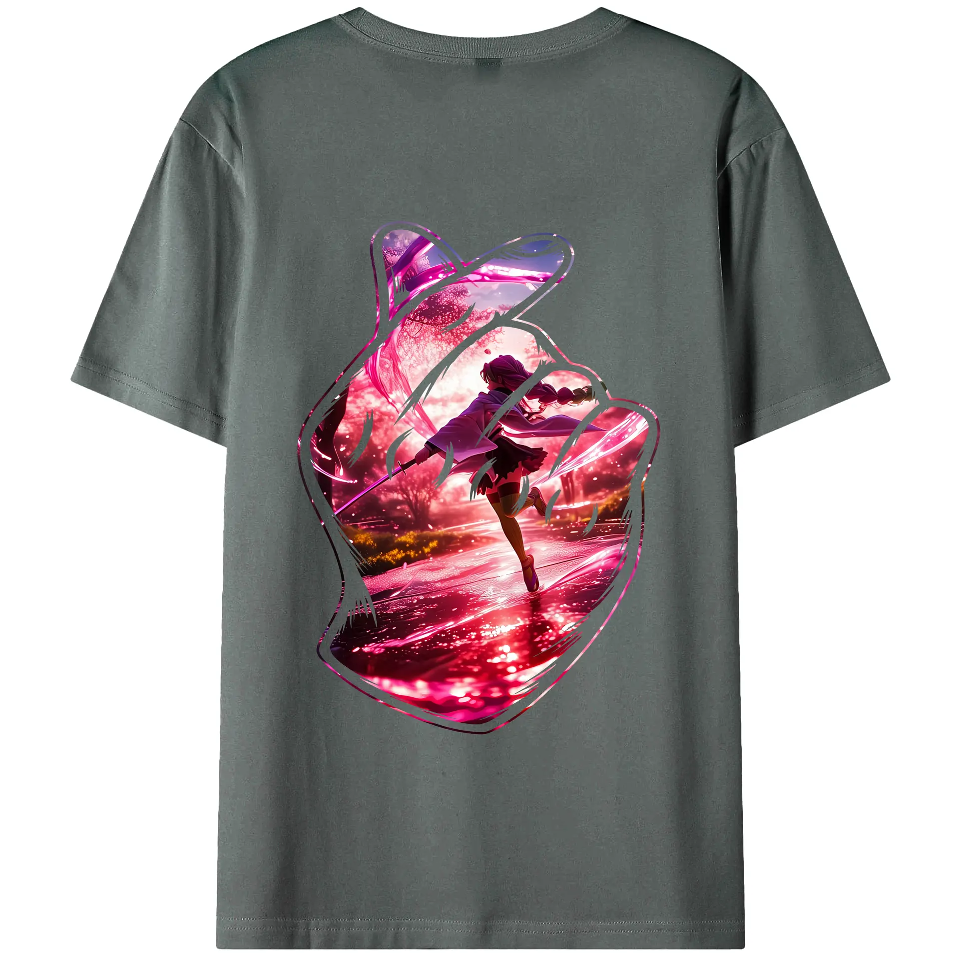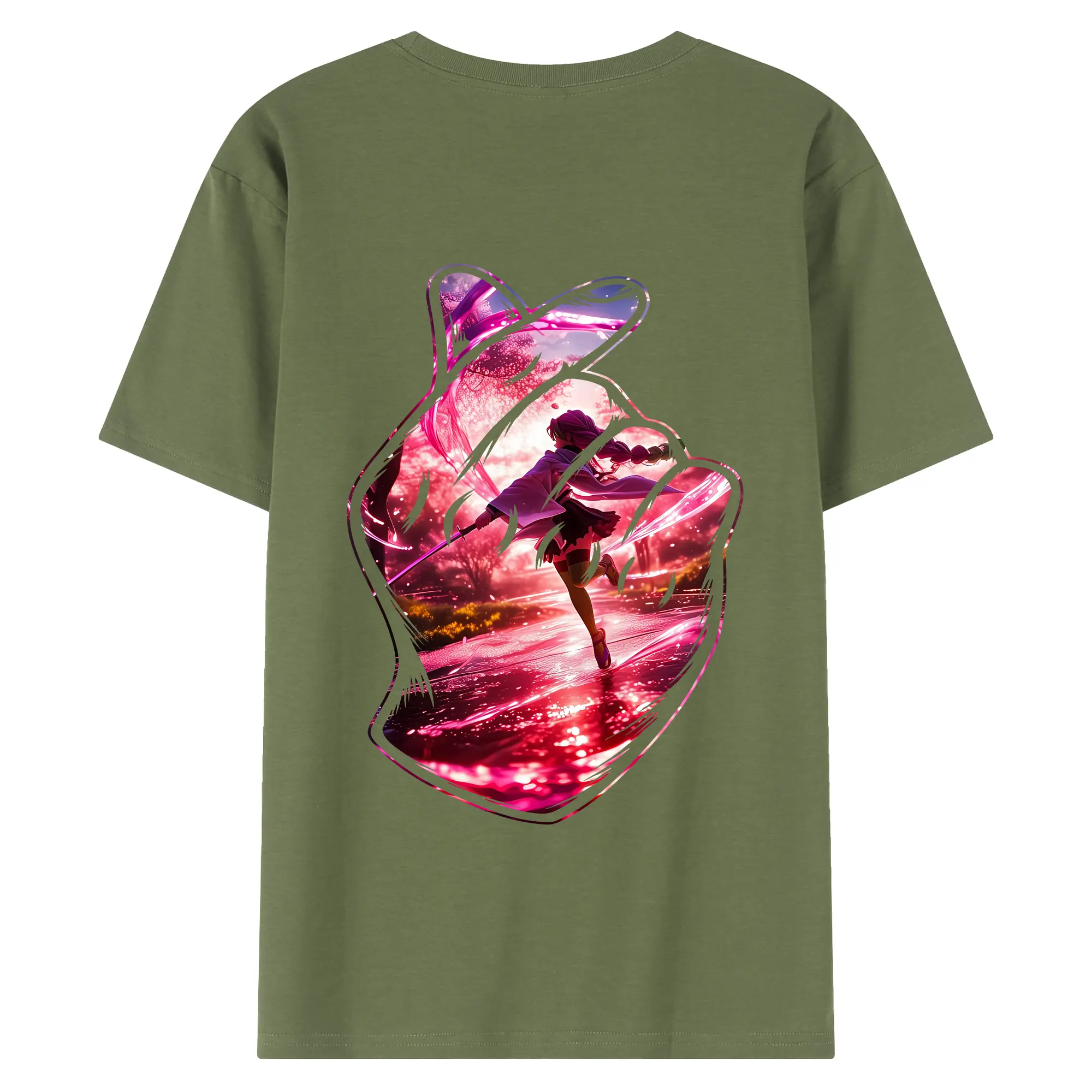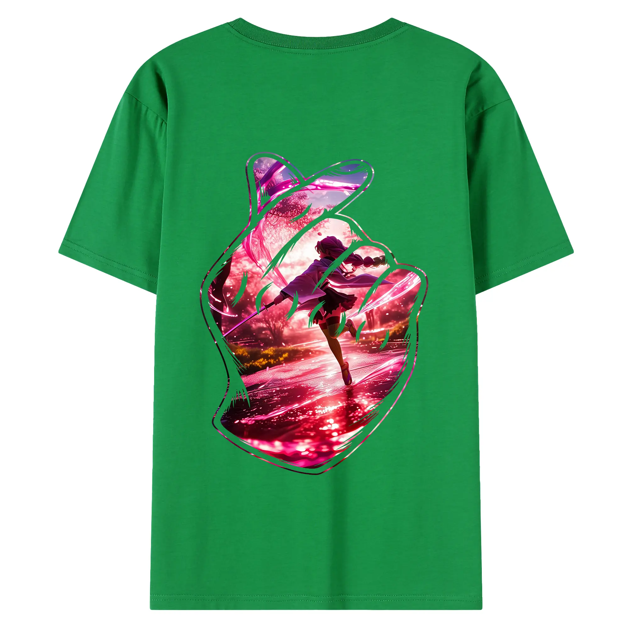 鬼滅の刃 グッズ,甘露寺 蜜璃 - 綿100% 半袖Tシャツ ・ フロントプリント ・ 快適 通気性 ・ 日常使い 散歩 スポーツ用