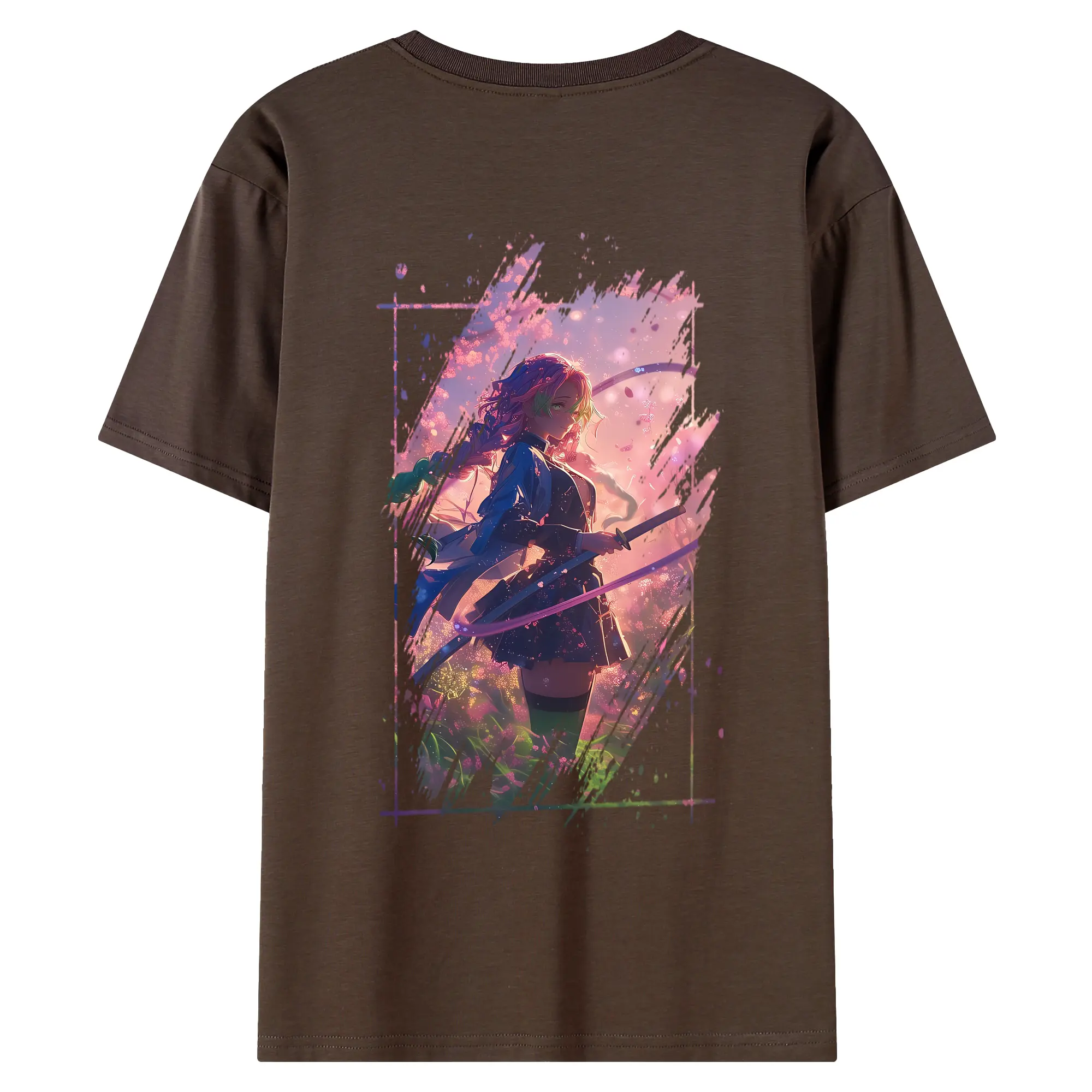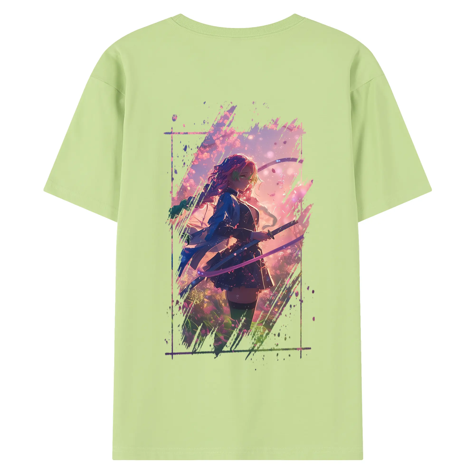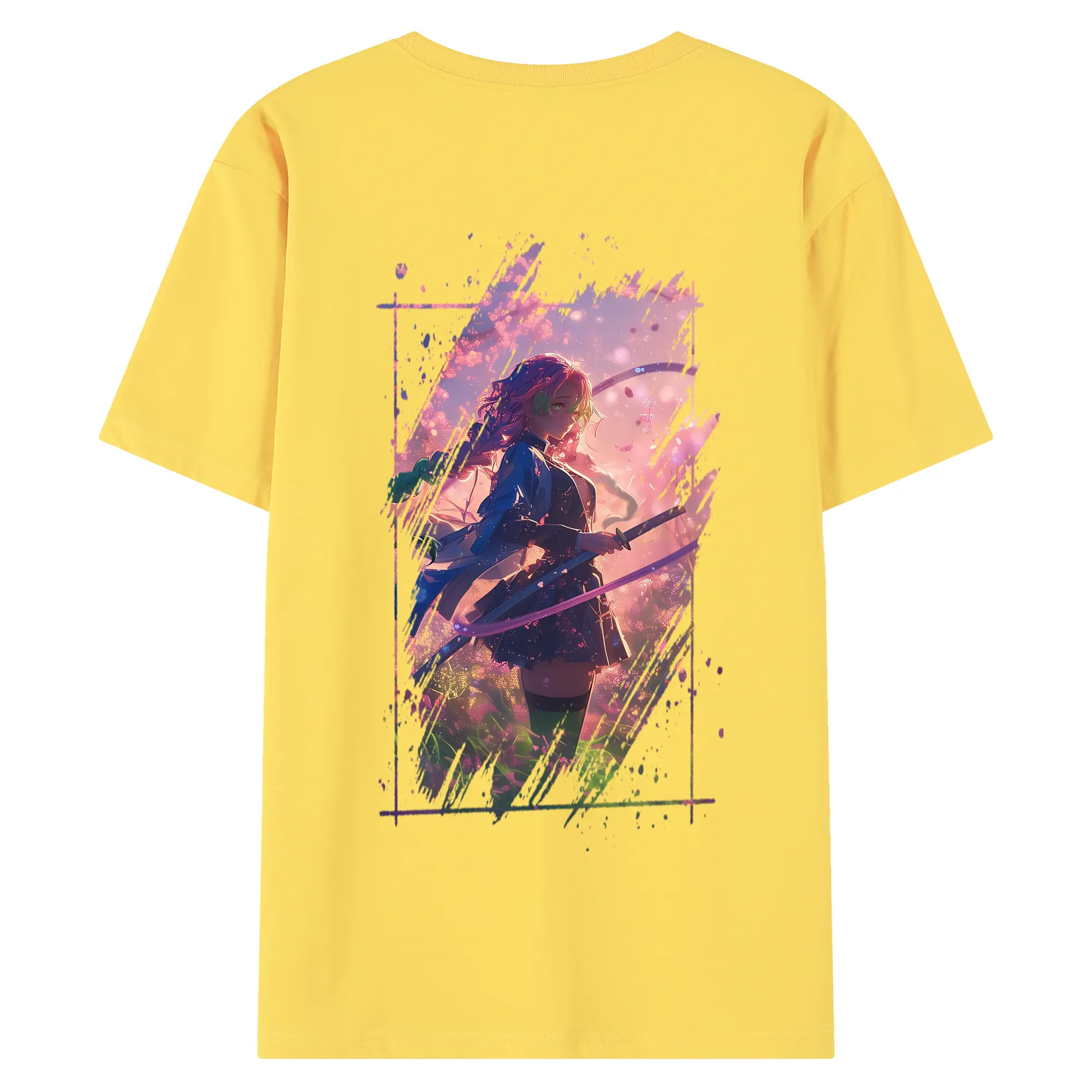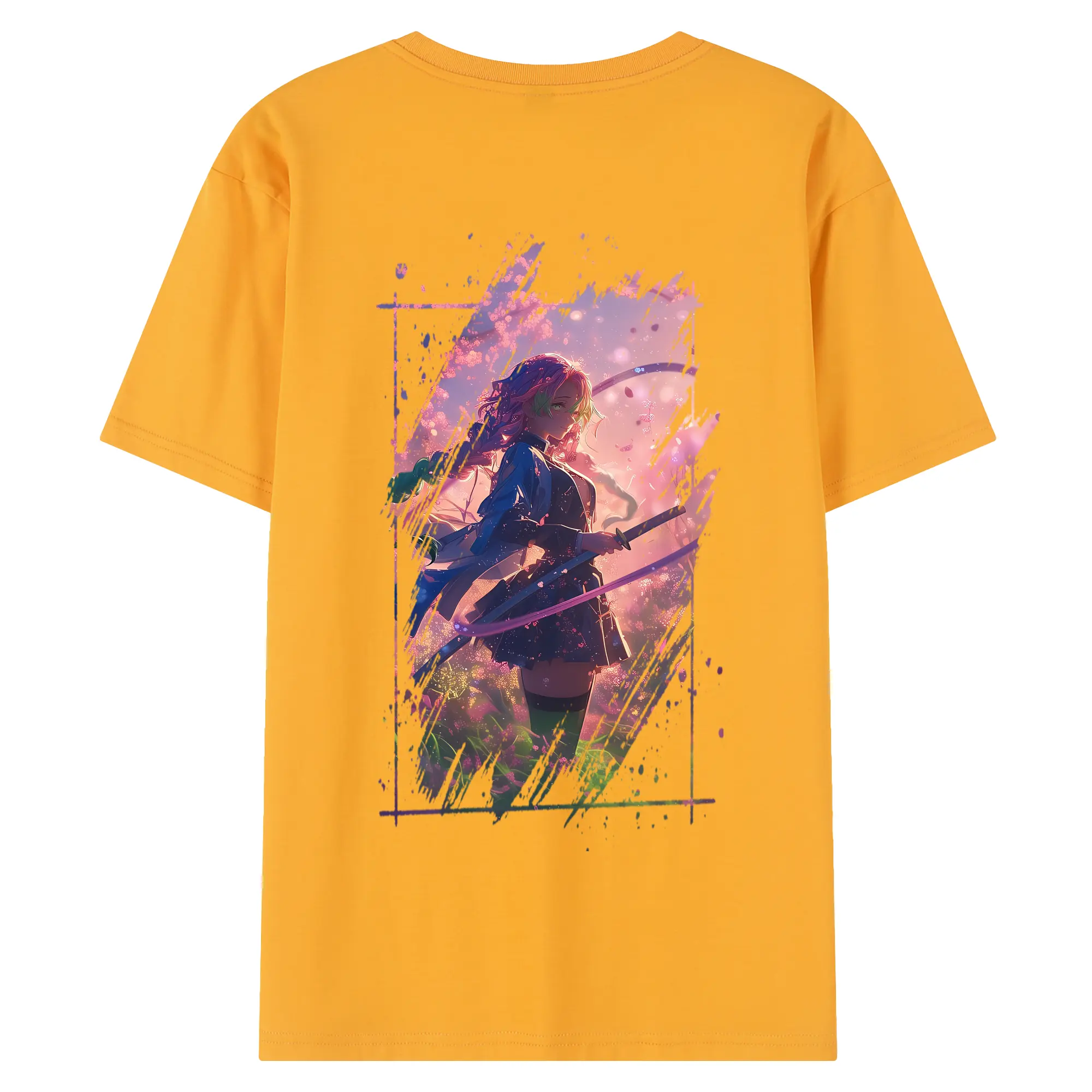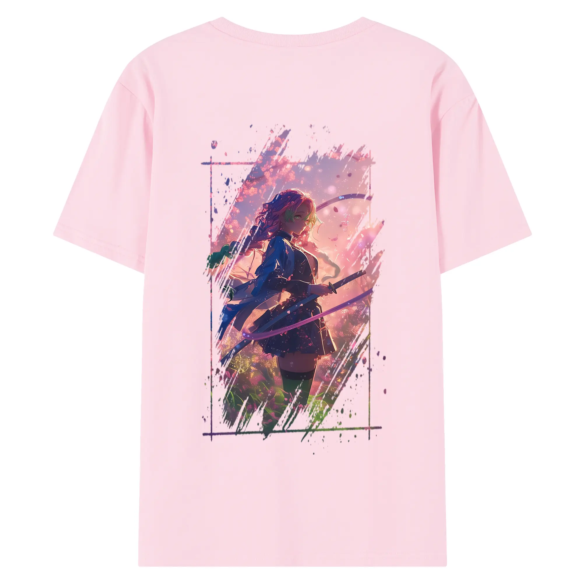 鬼滅の刃 グッズ,甘露寺 蜜璃 - 綿100% 半袖Tシャツ ・ フロントプリント ・ 快適 通気性 ・ 日常使い 散歩 スポーツ用