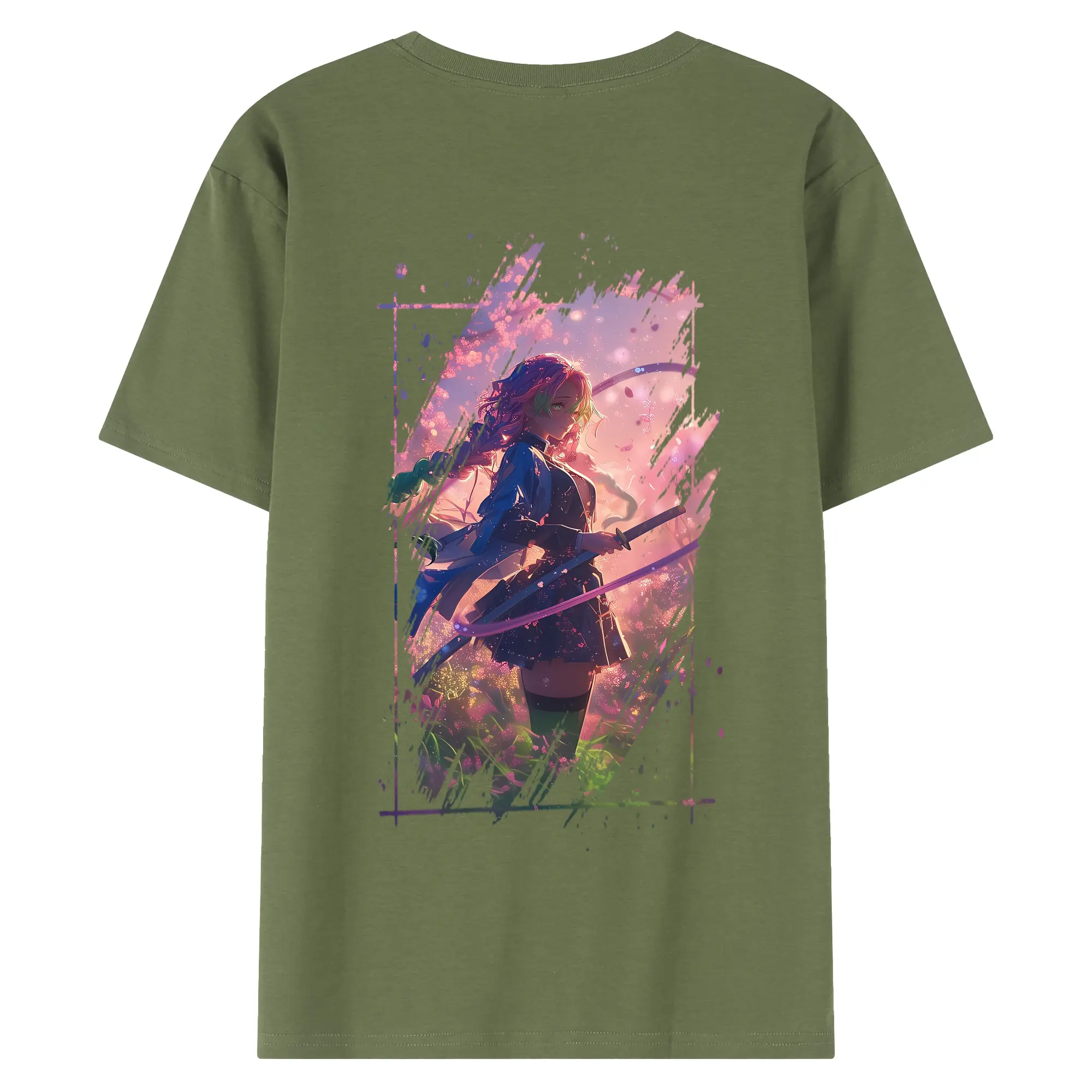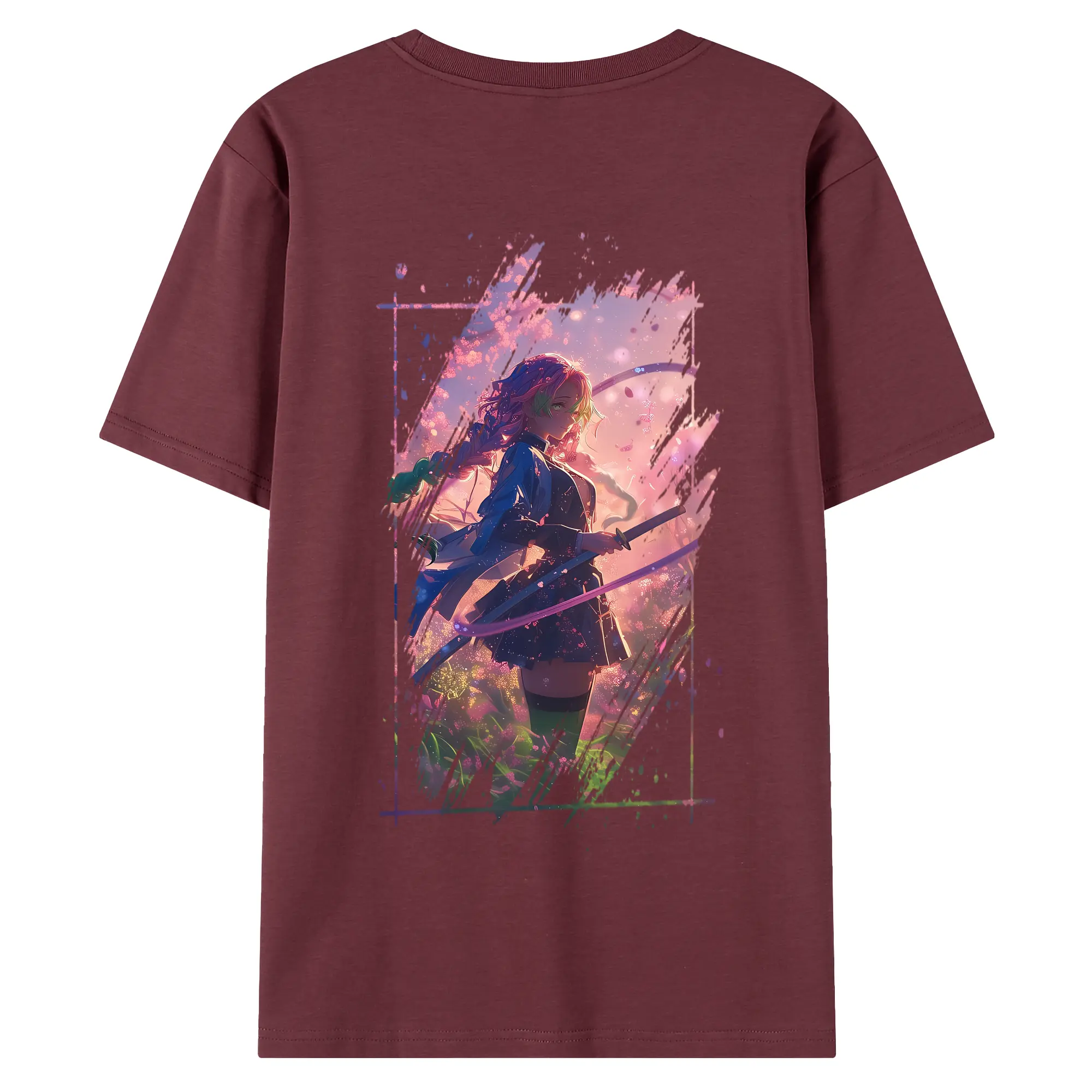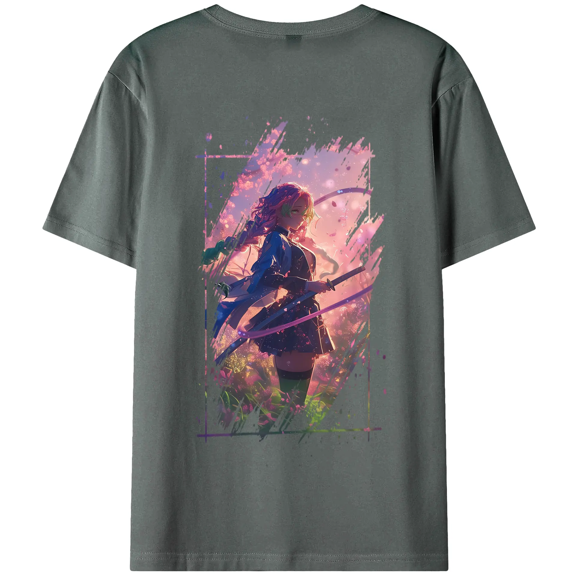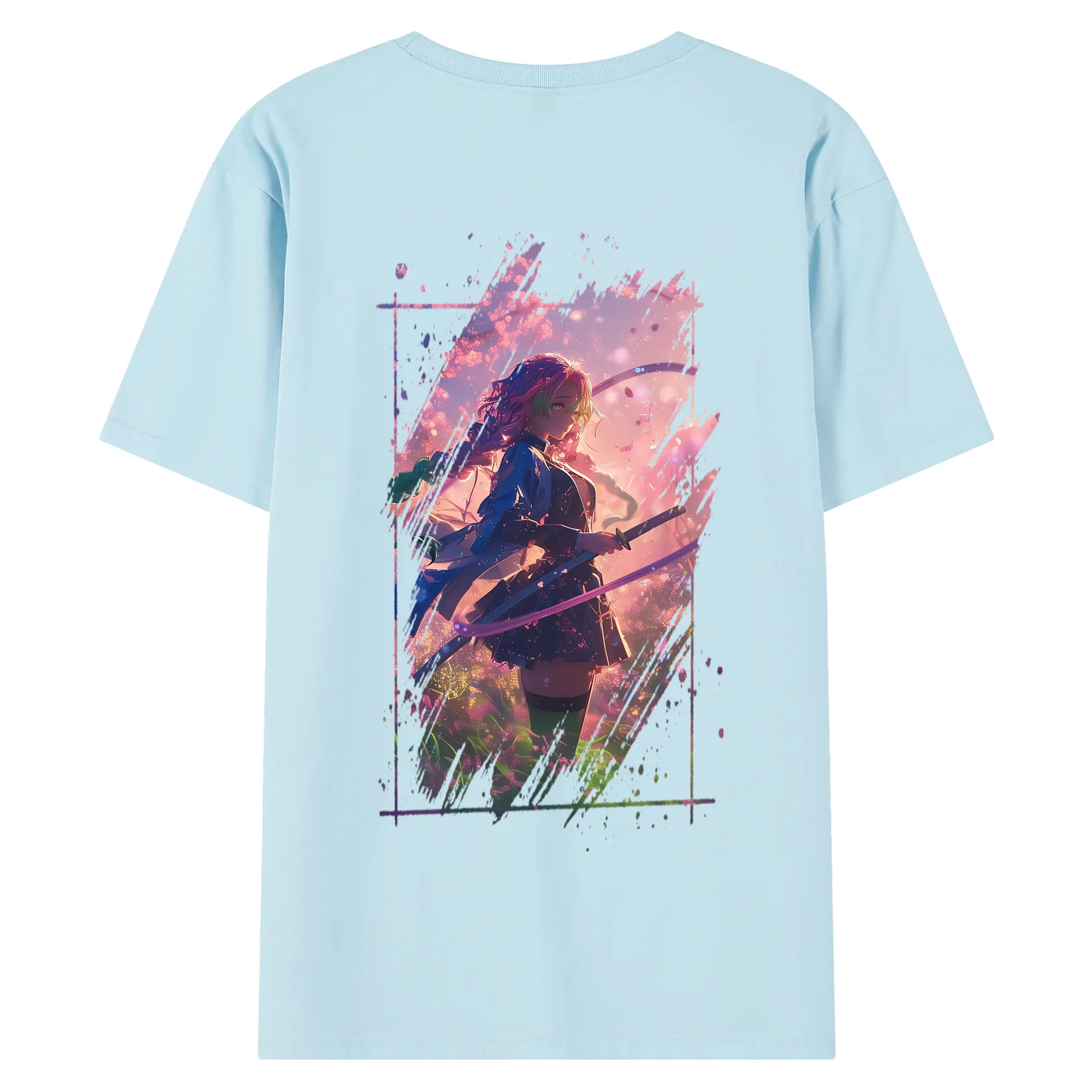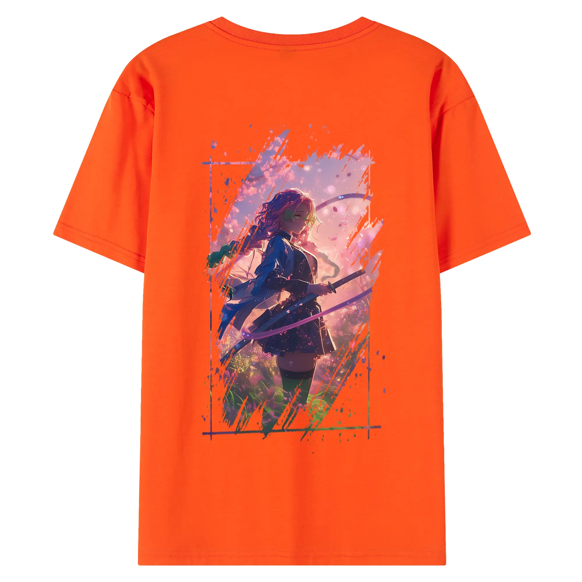 鬼滅の刃 グッズ,甘露寺 蜜璃 - 綿100% 半袖Tシャツ ・ フロントプリント ・ 快適 通気性 ・ 日常使い 散歩 スポーツ用