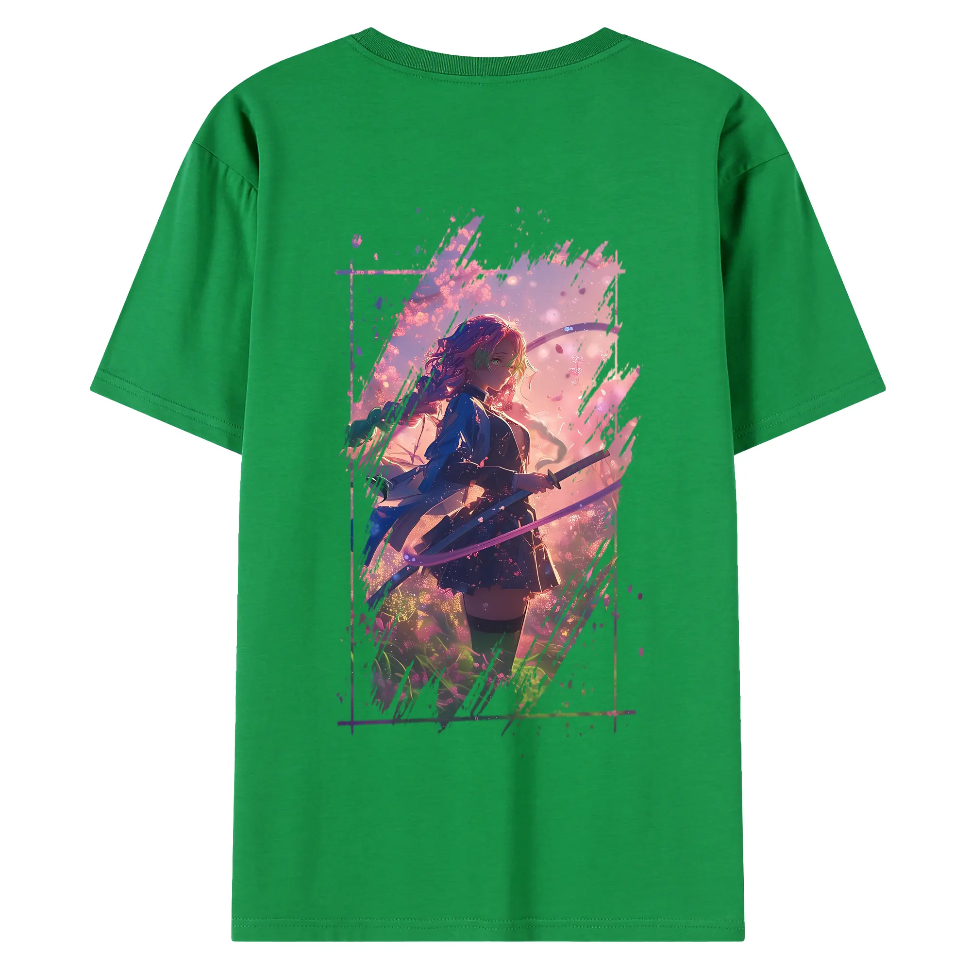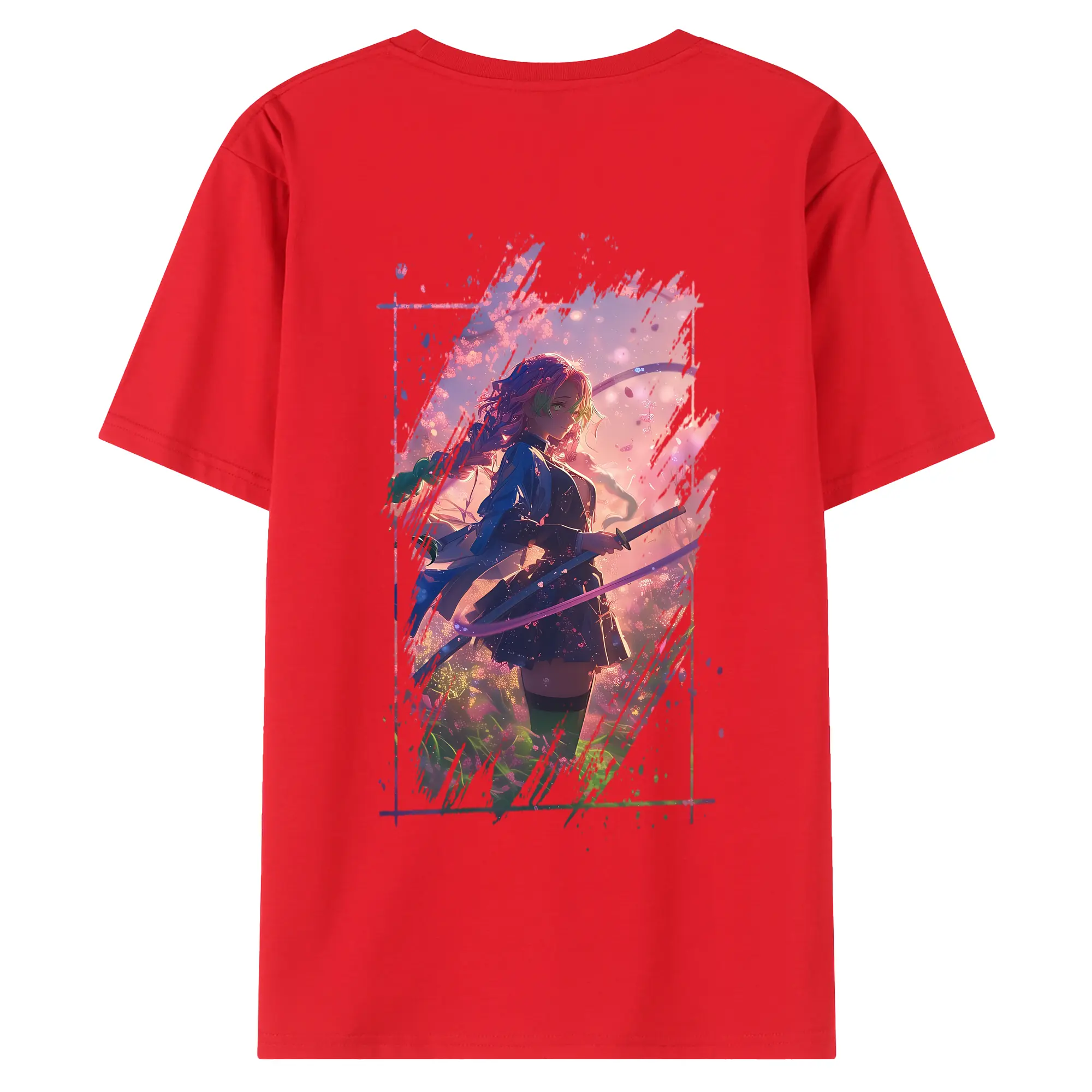 フェアリーテイル グッズ エルザ・スカーレット - 綿100% 半袖Tシャツ ・ バックプリント ・ 快適 通気性 ・ 日常使い 散歩 スポーツ用