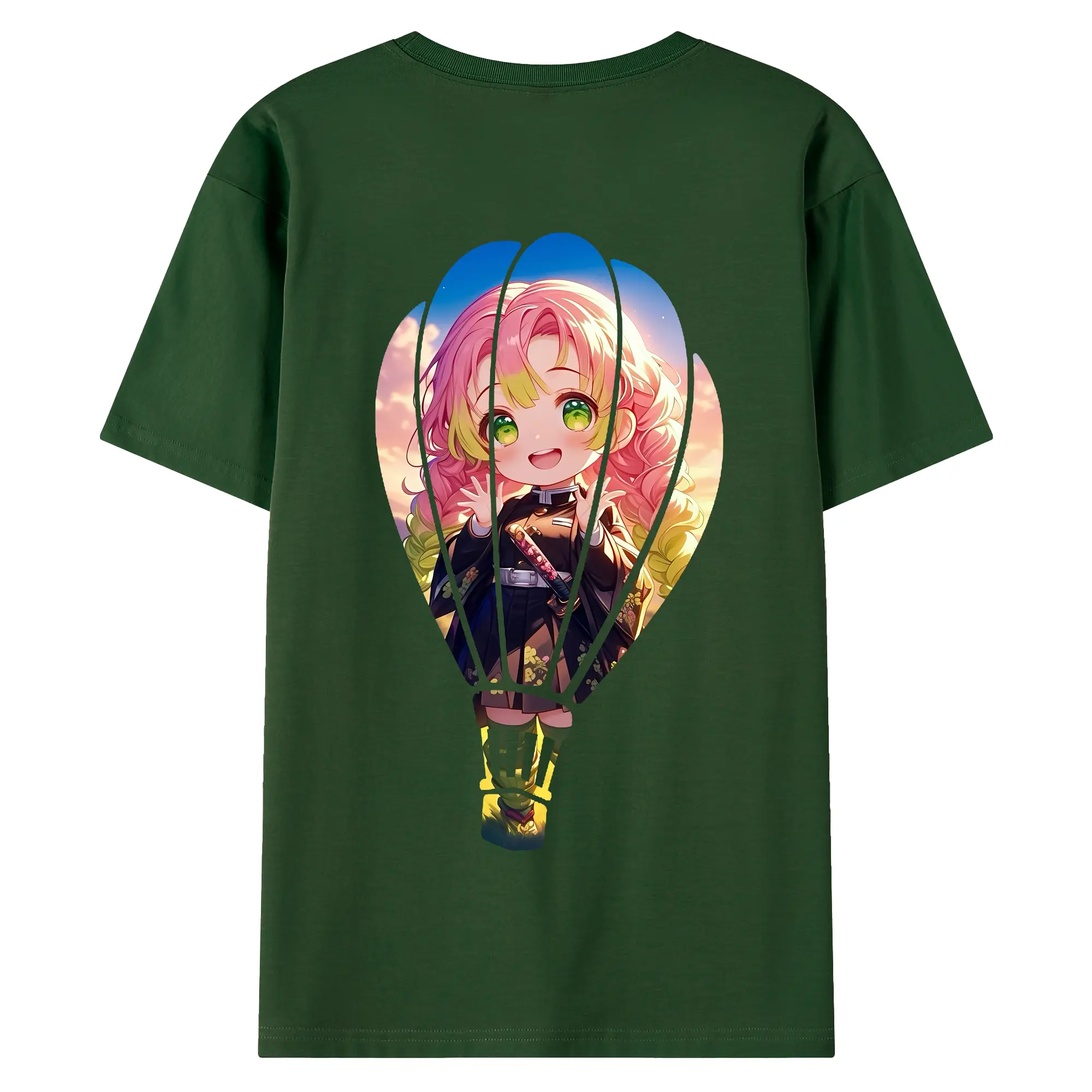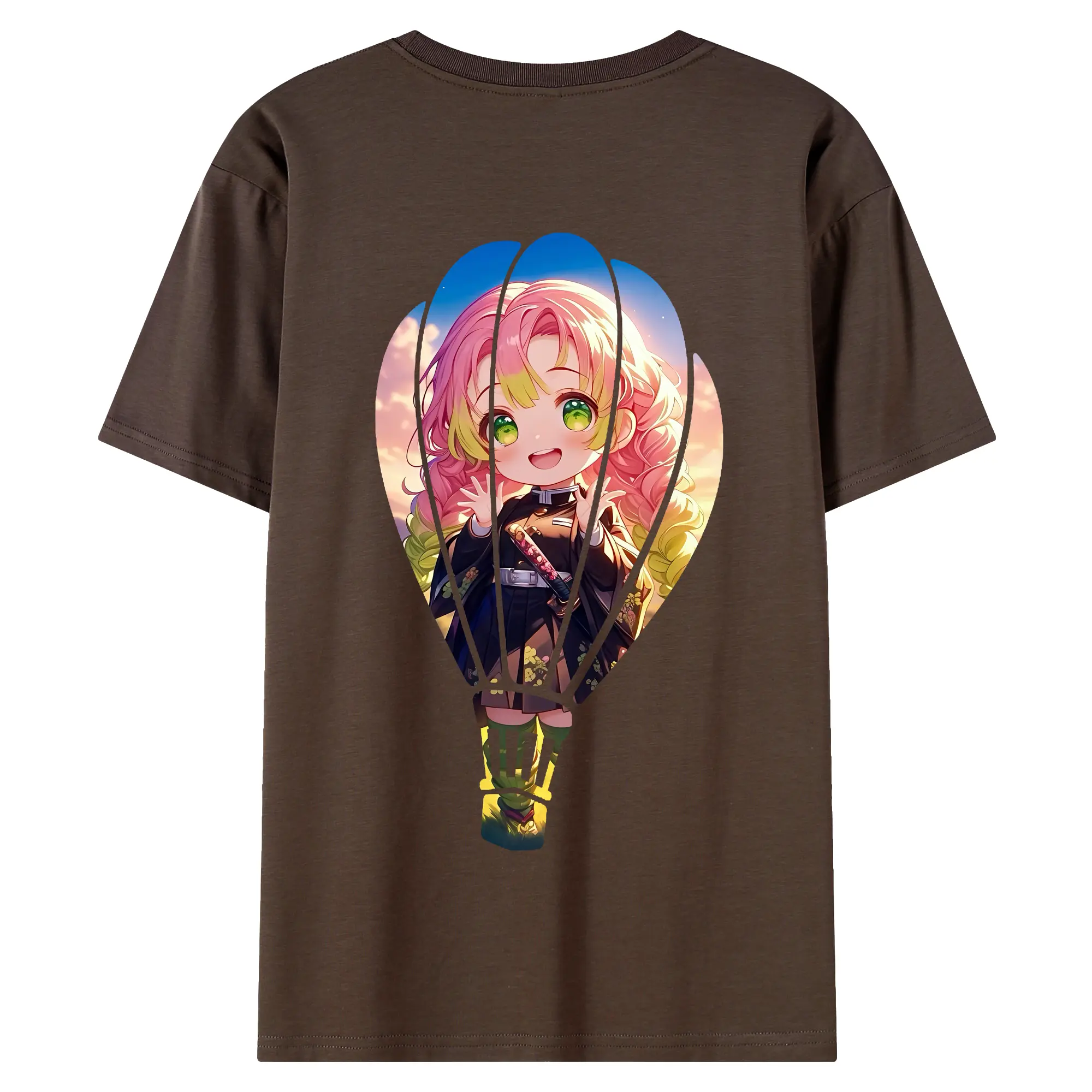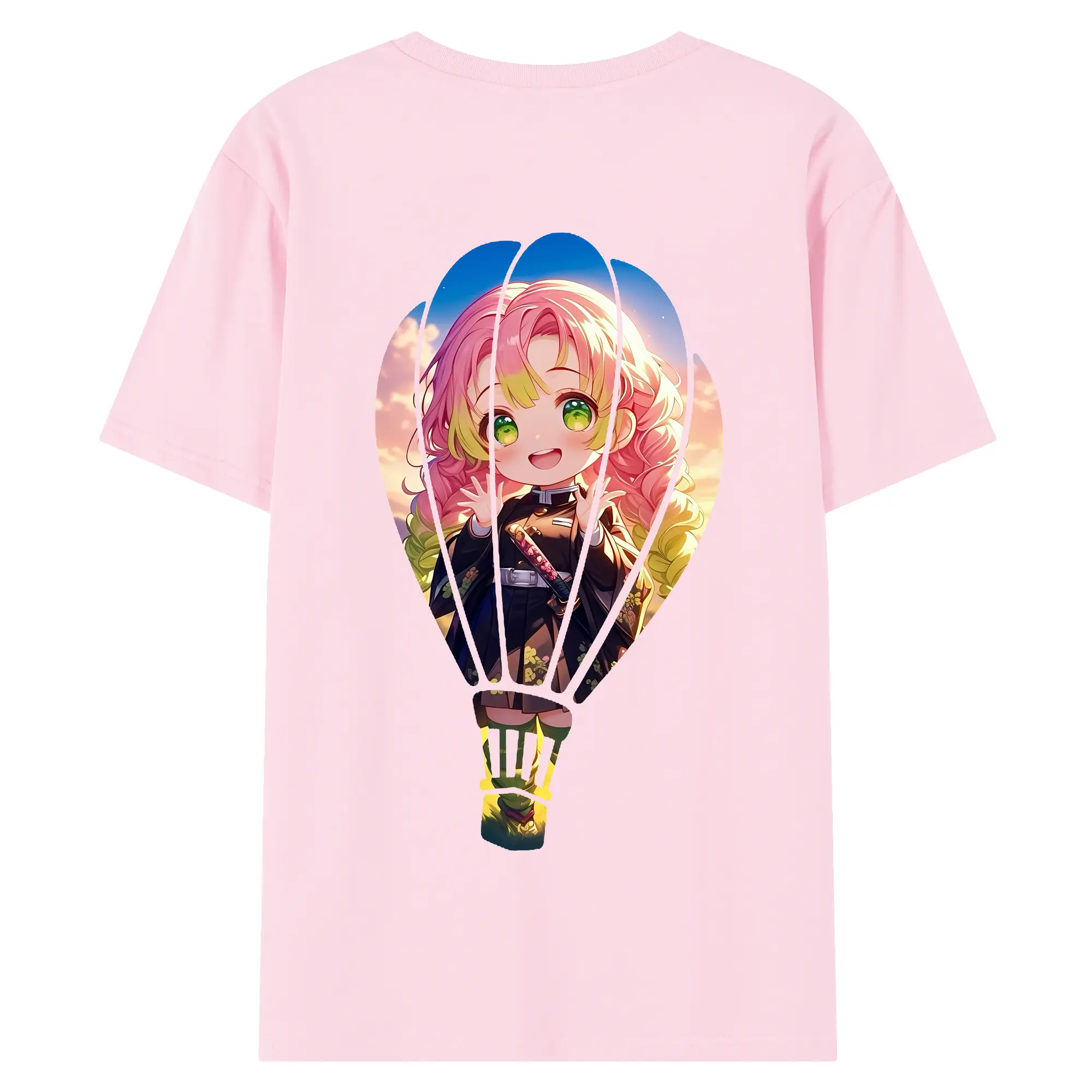 鬼滅の刃 グッズ,甘露寺 蜜璃 - 綿100% 半袖Tシャツ ・ フロントプリント ・ 快適 通気性 ・ 日常使い 散歩 スポーツ用