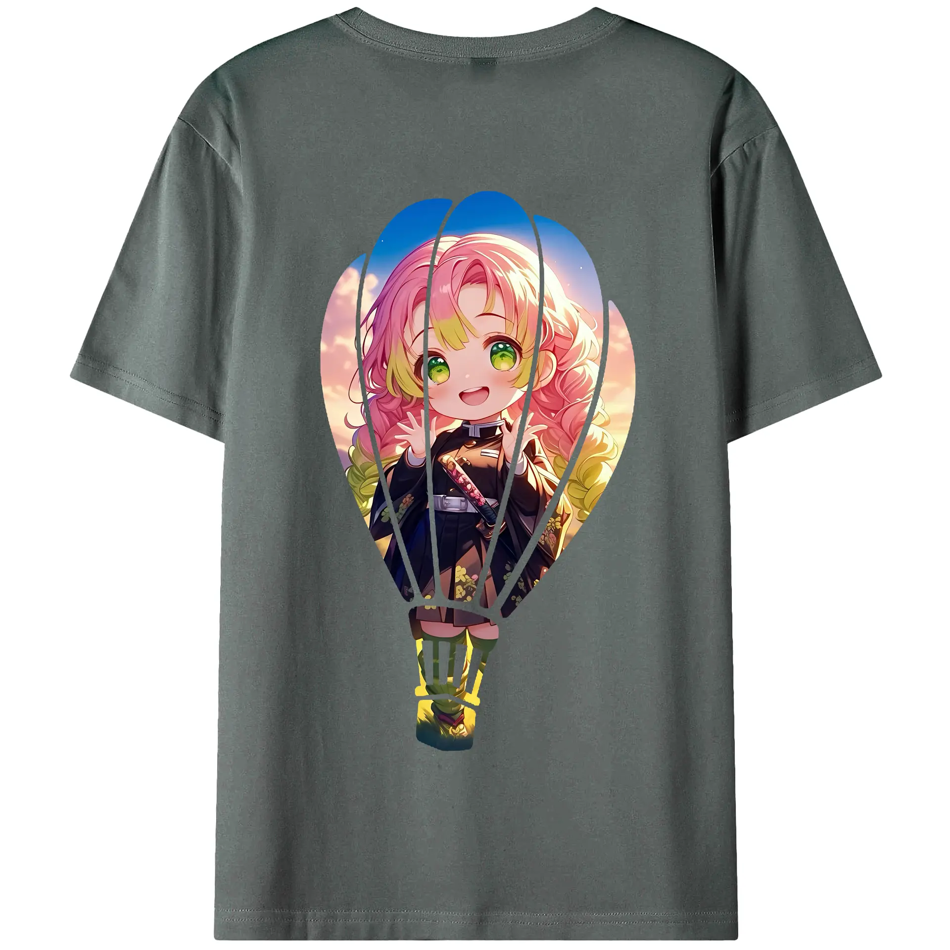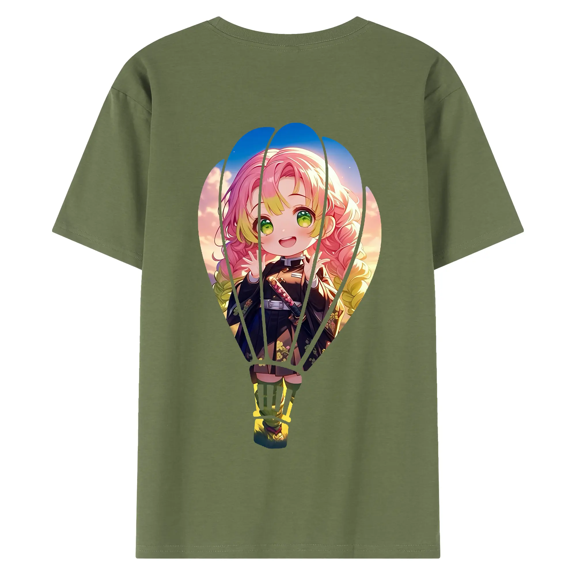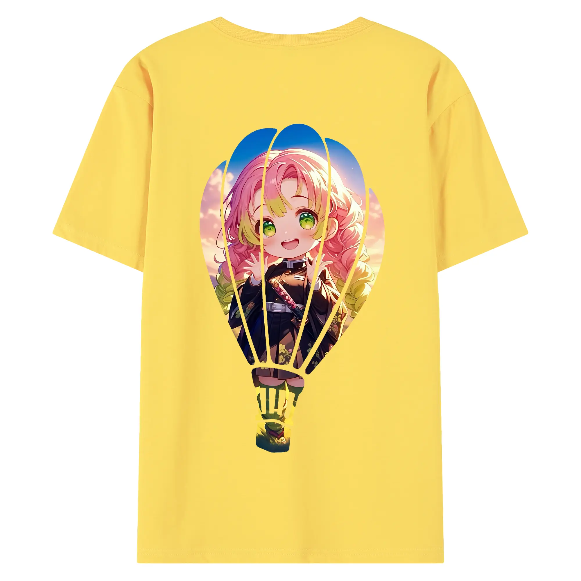 鬼滅の刃 グッズ,甘露寺 蜜璃 - 綿100% 半袖Tシャツ ・ フロントプリント ・ 快適 通気性 ・ 日常使い 散歩 スポーツ用