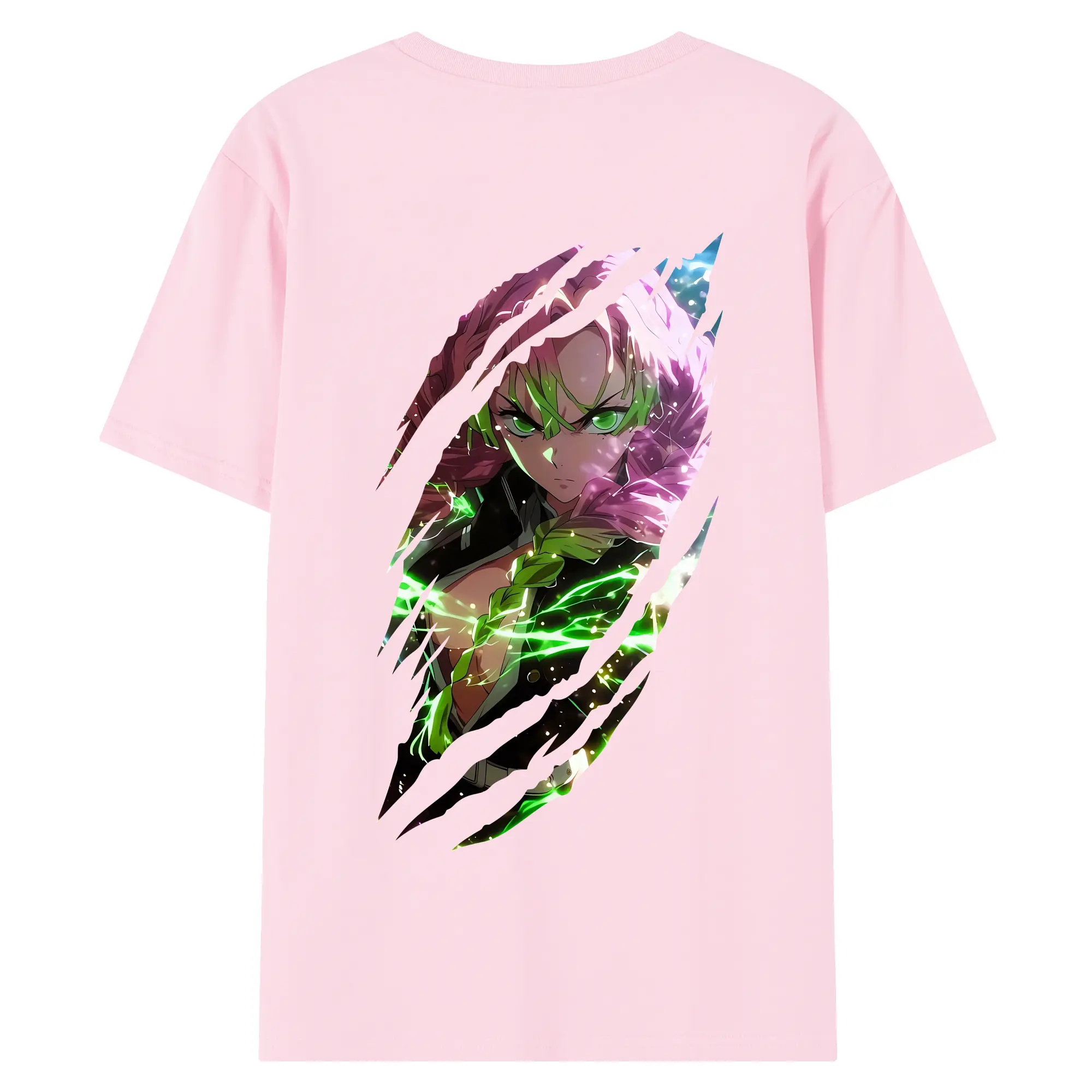 鬼滅の刃 グッズ,甘露寺 蜜璃 - 綿100% 半袖Tシャツ ・ フロントプリント ・ 快適 通気性 ・ 日常使い 散歩 スポーツ用