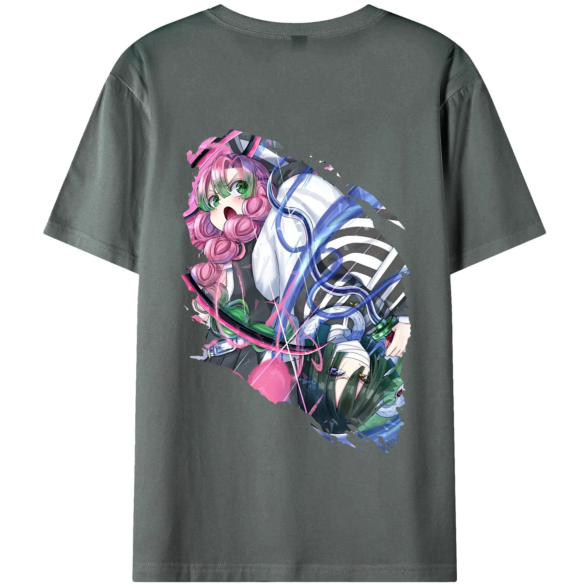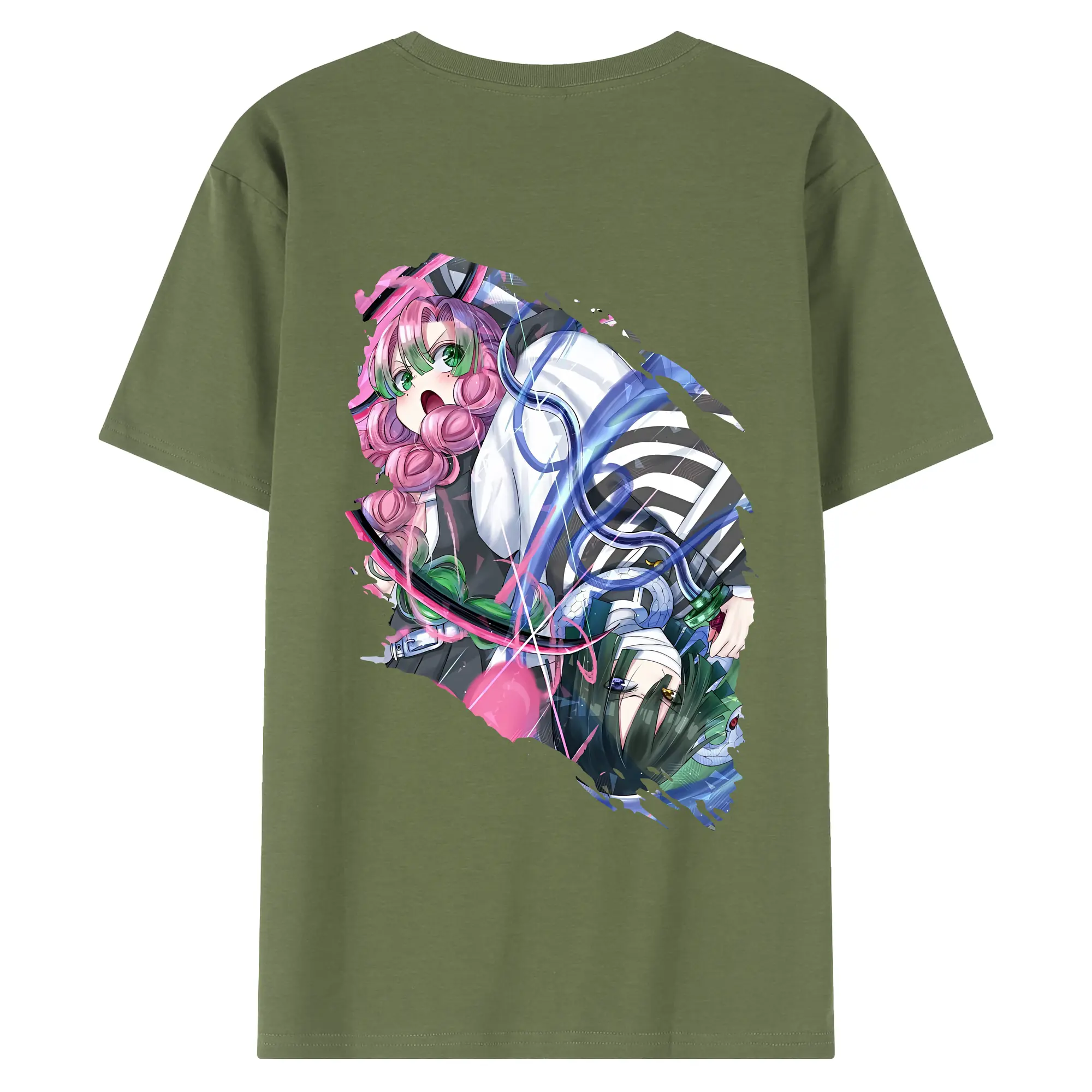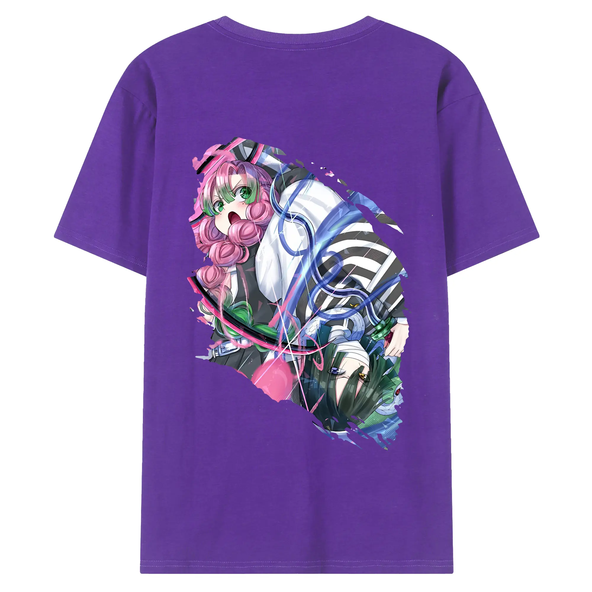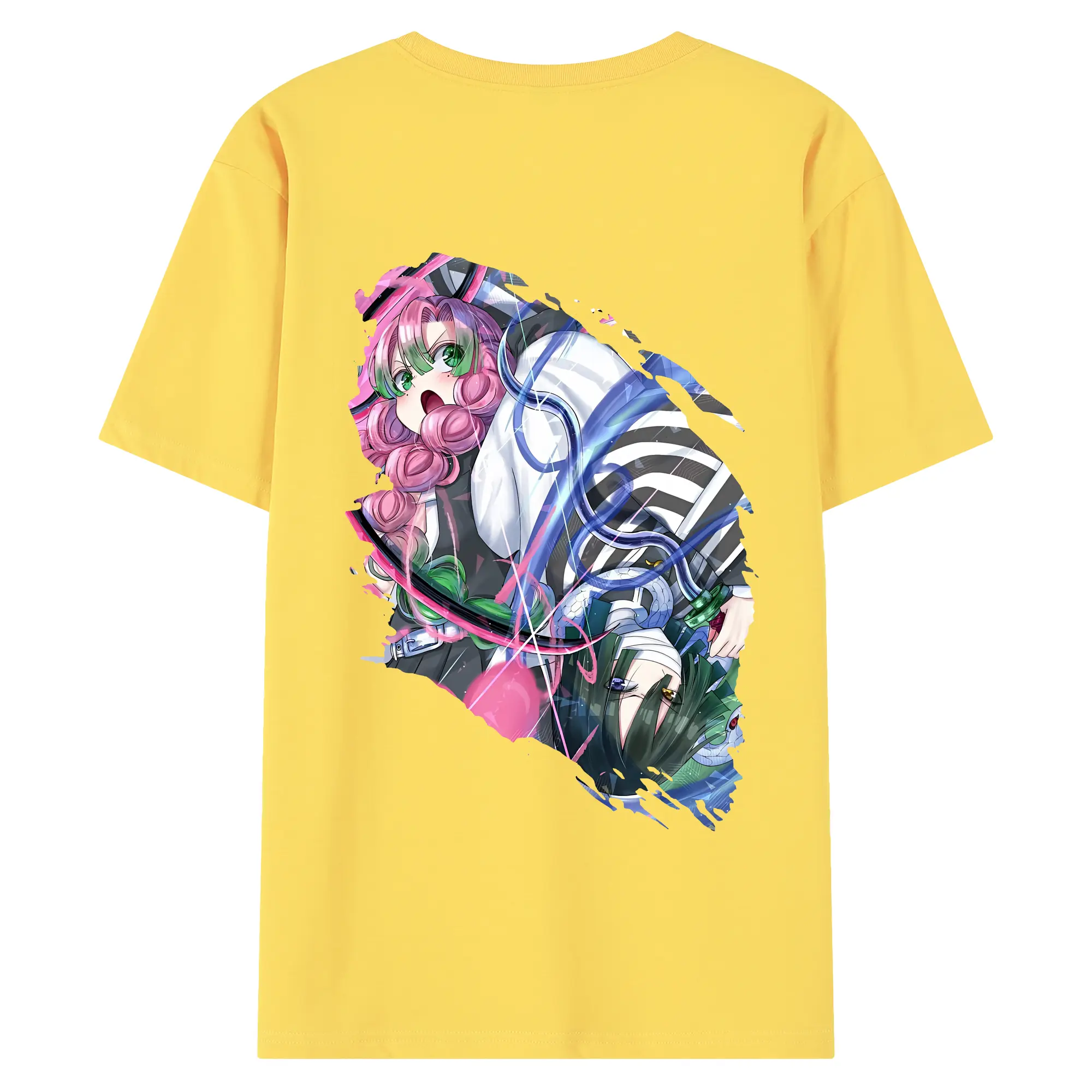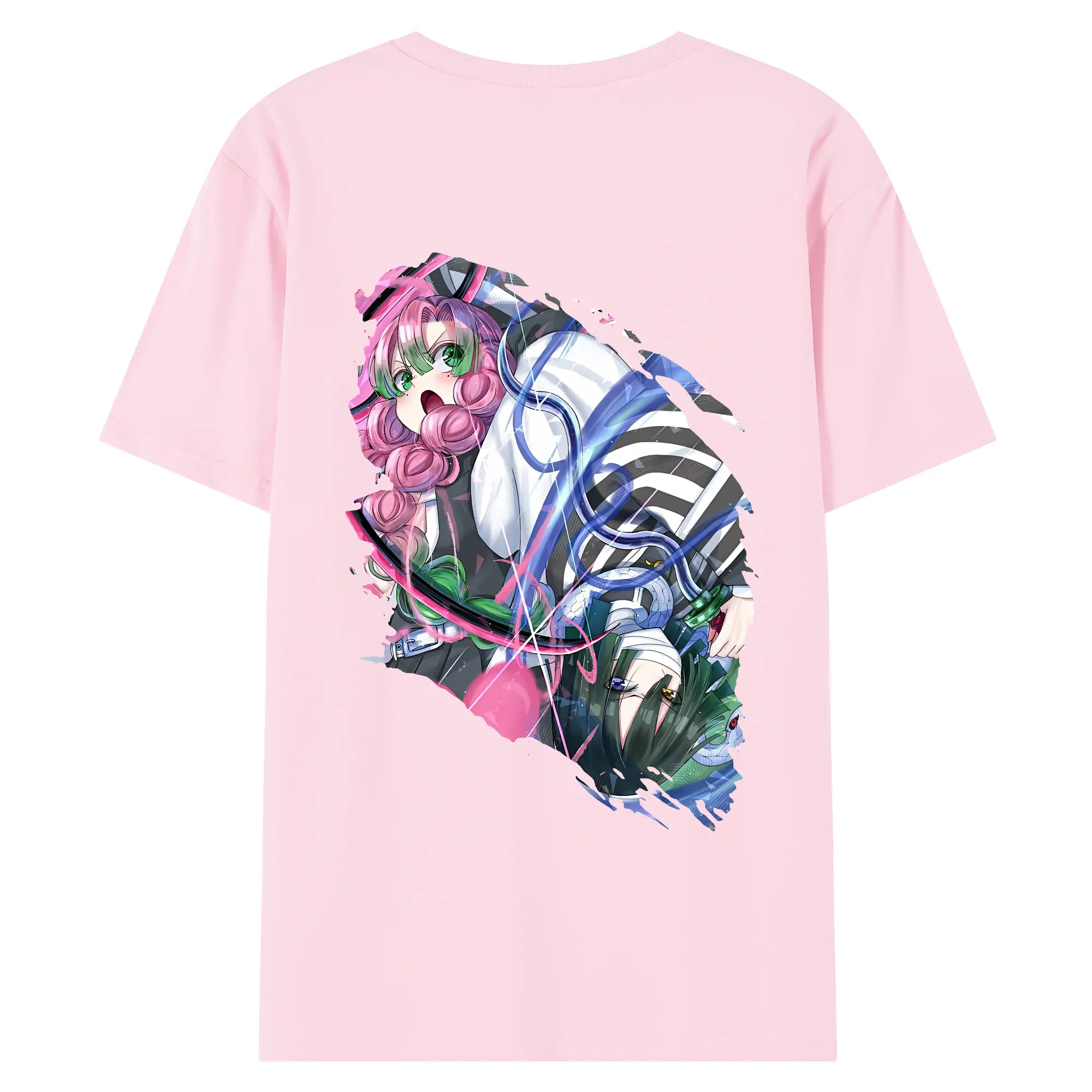 鬼滅の刃 グッズ,甘露寺 蜜璃 - 綿100% 半袖Tシャツ ・ フロントプリント ・ 快適 通気性 ・ 日常使い 散歩 スポーツ用