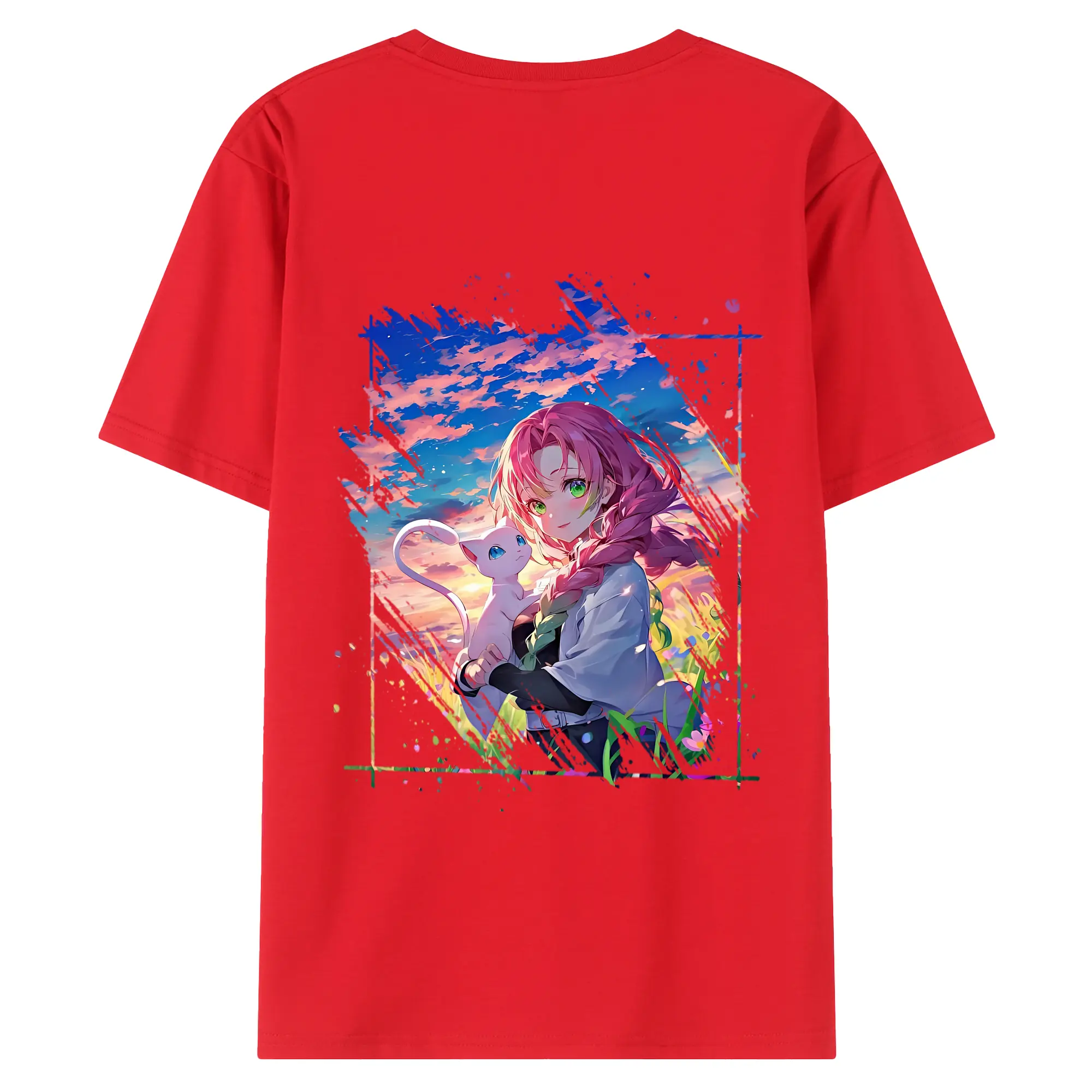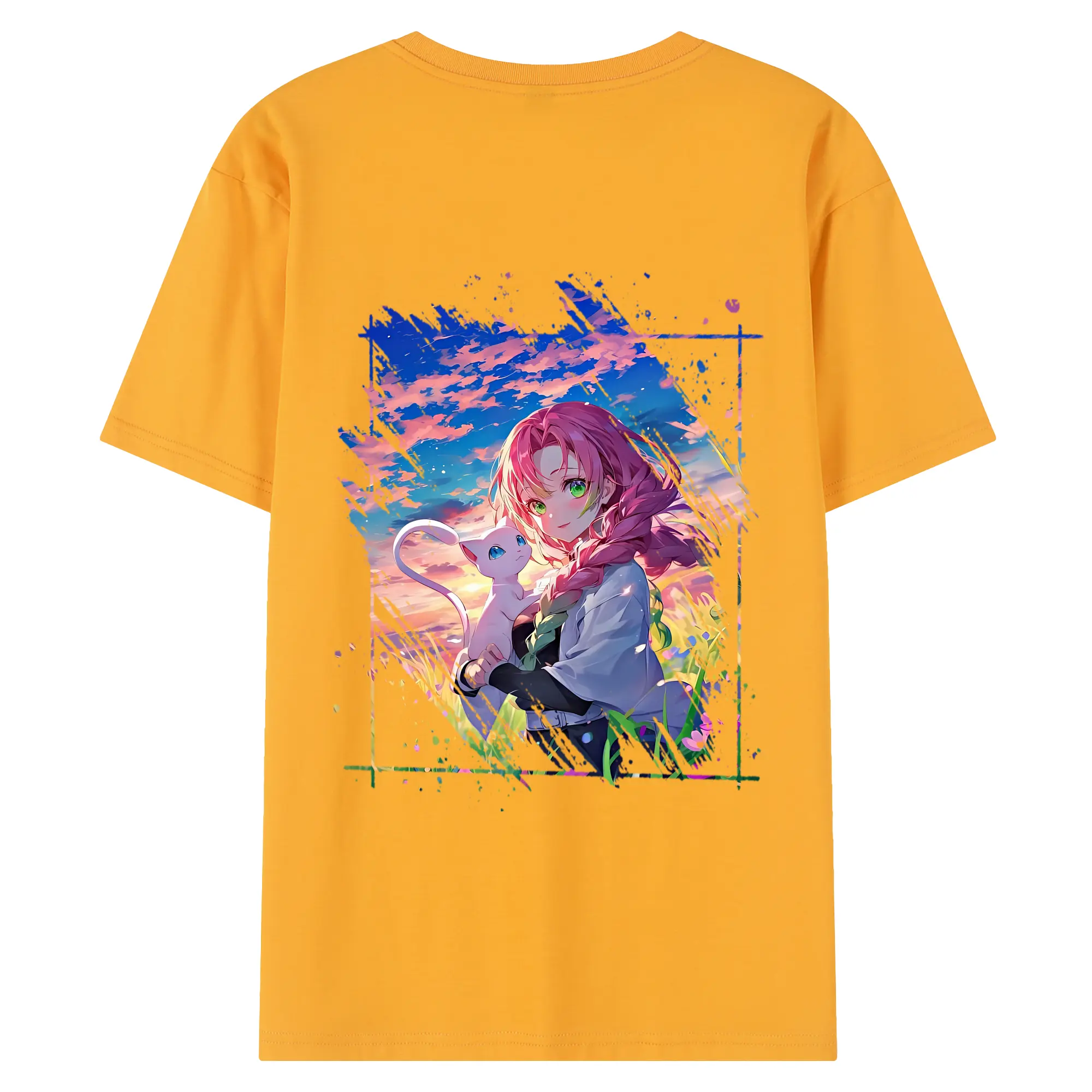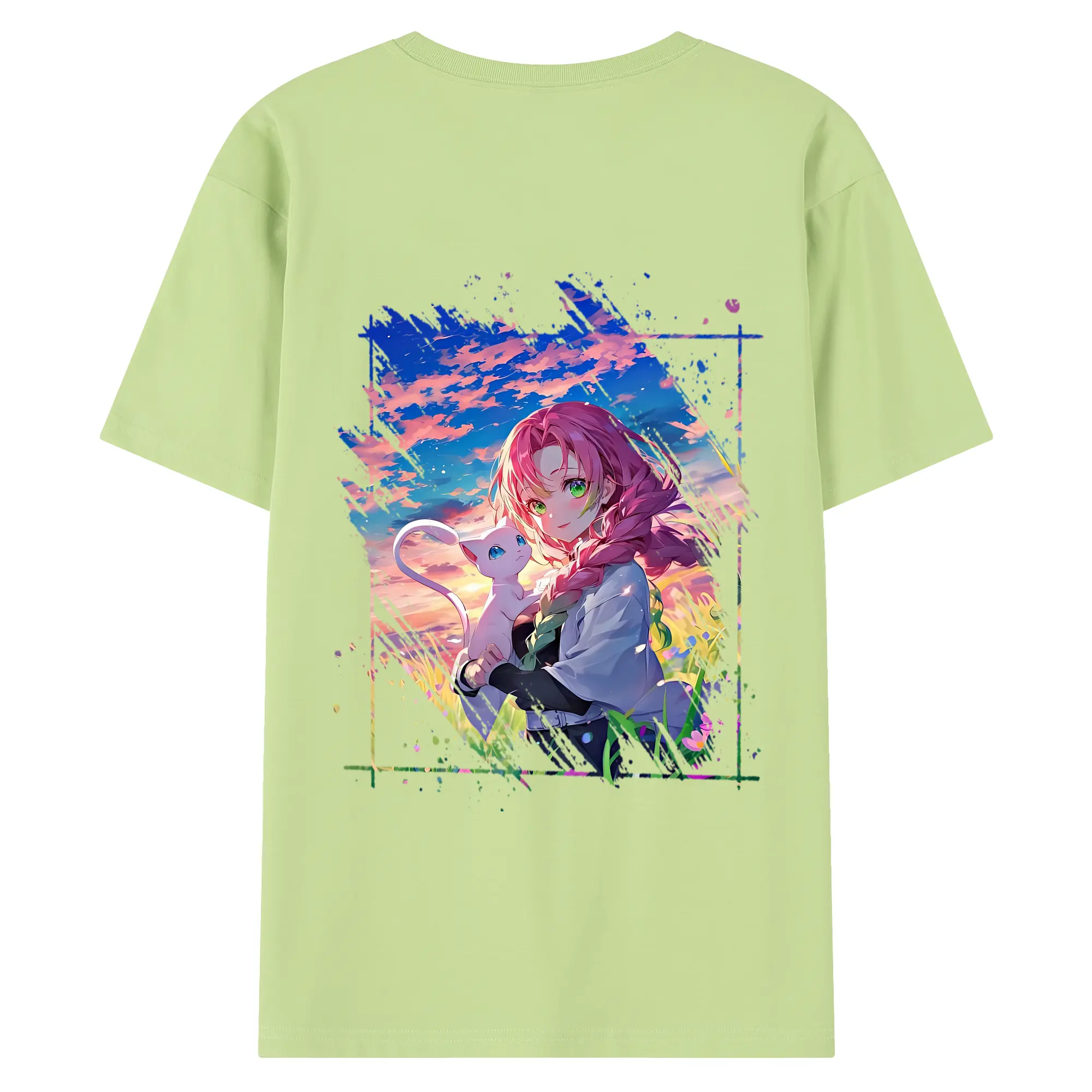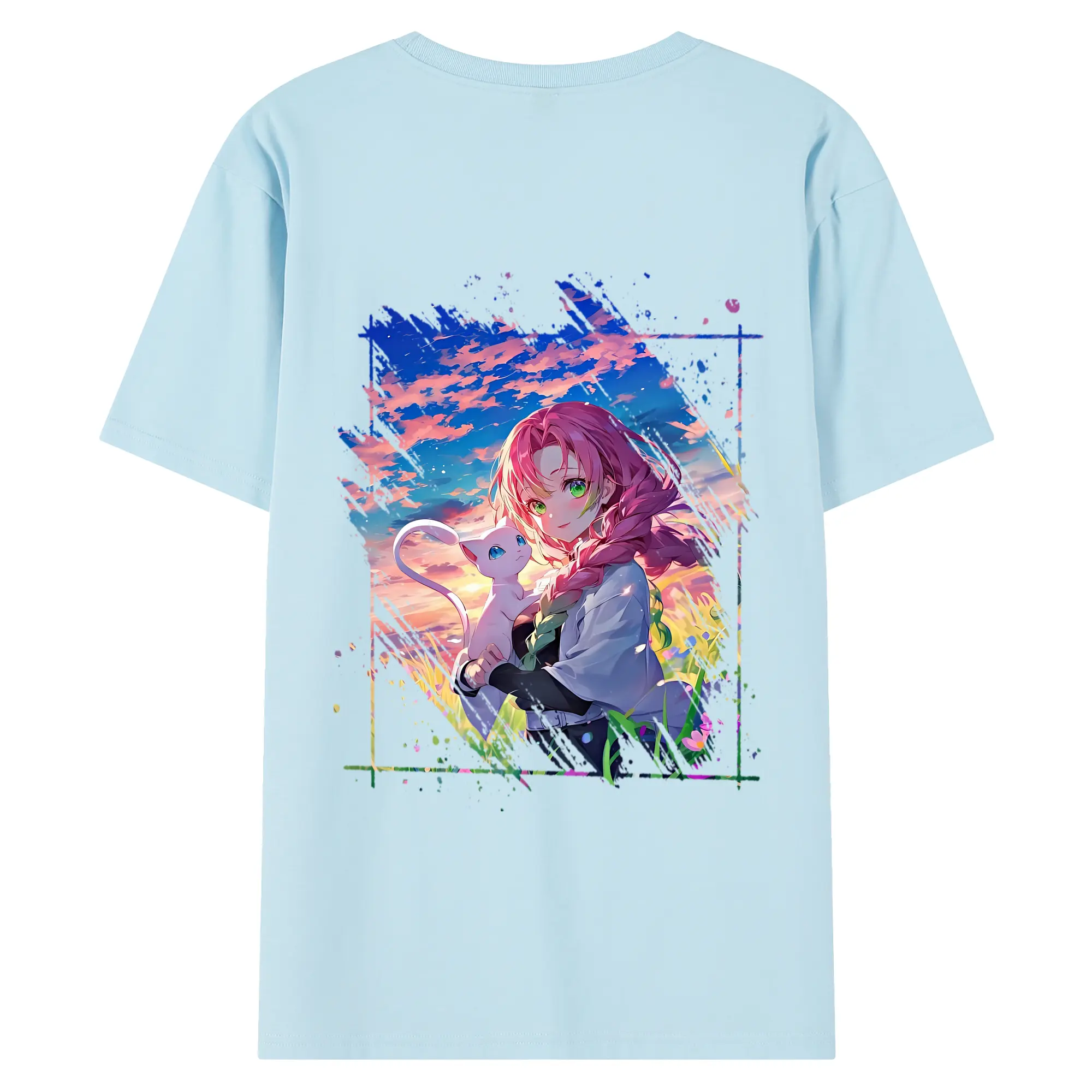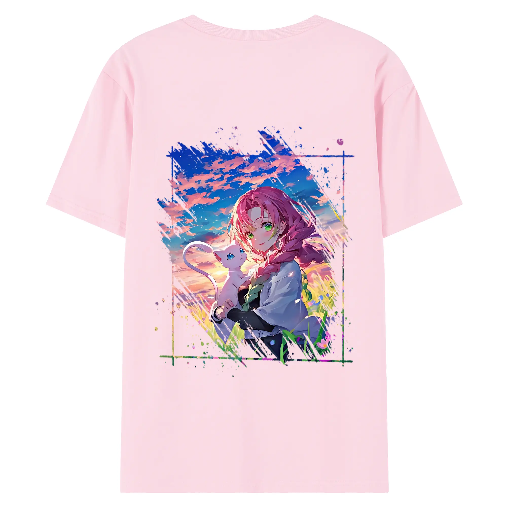 鬼滅の刃 グッズ,甘露寺 蜜璃 - 綿100% 半袖Tシャツ ・ フロントプリント ・ 快適 通気性 ・ 日常使い 散歩 スポーツ用