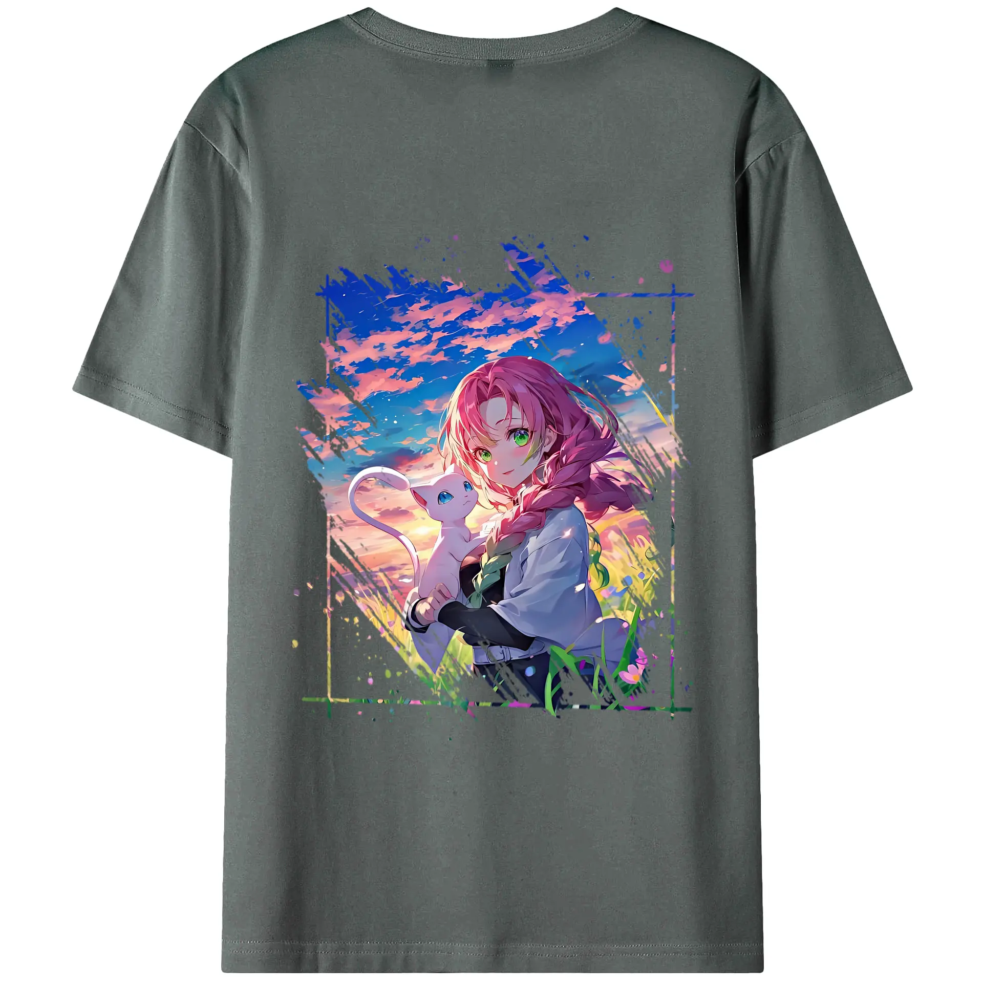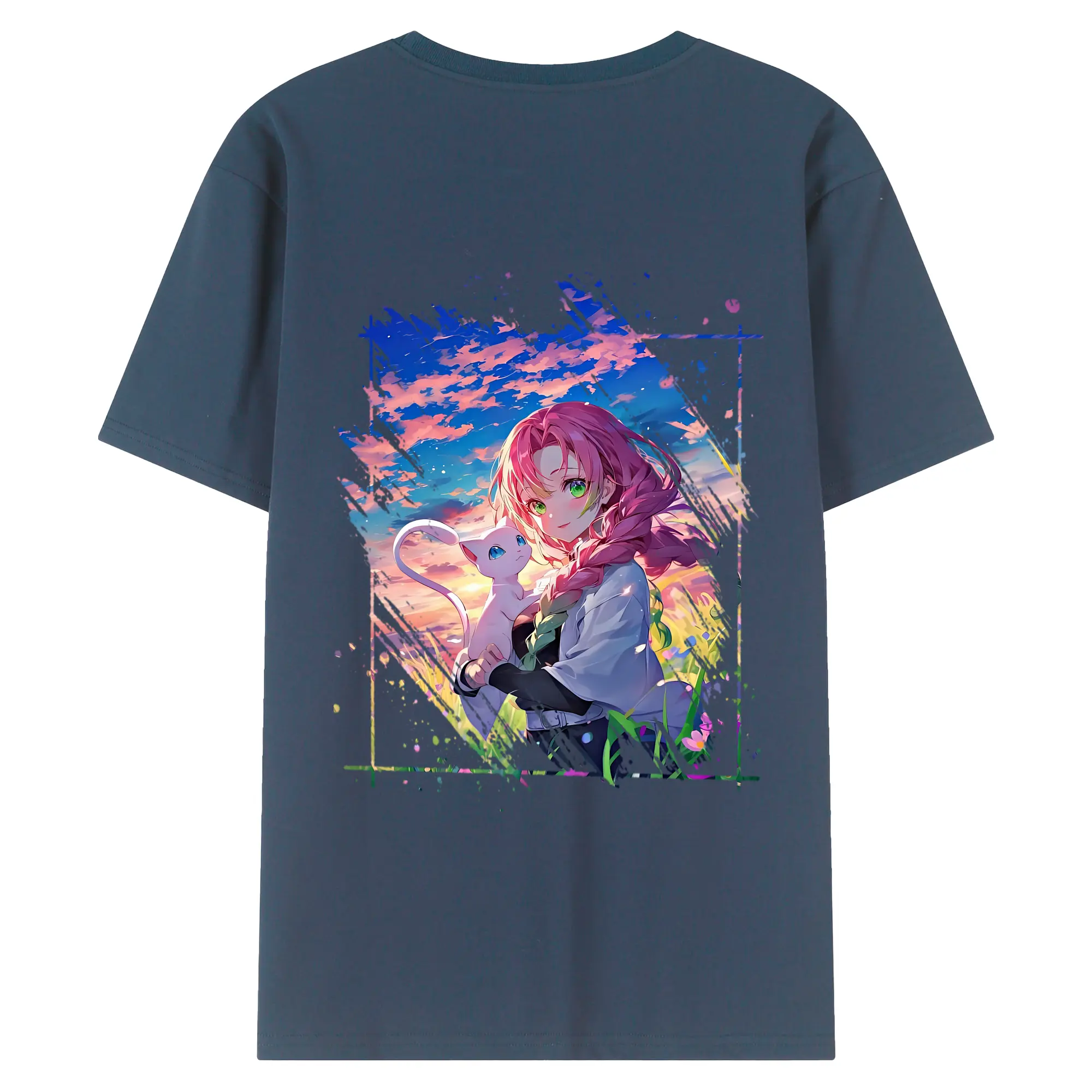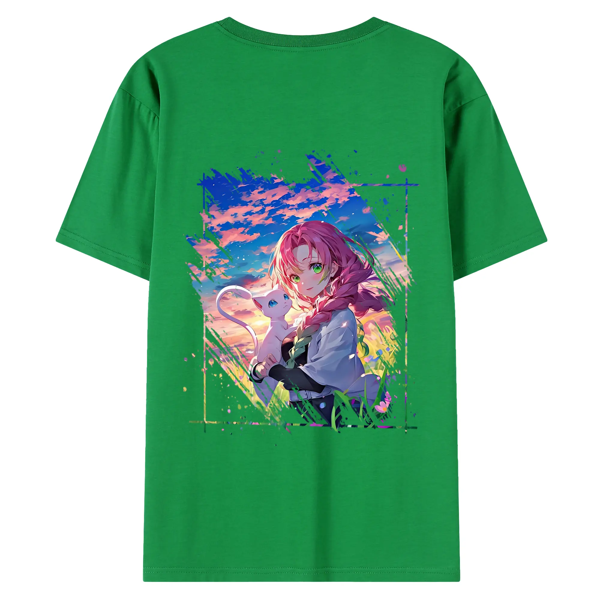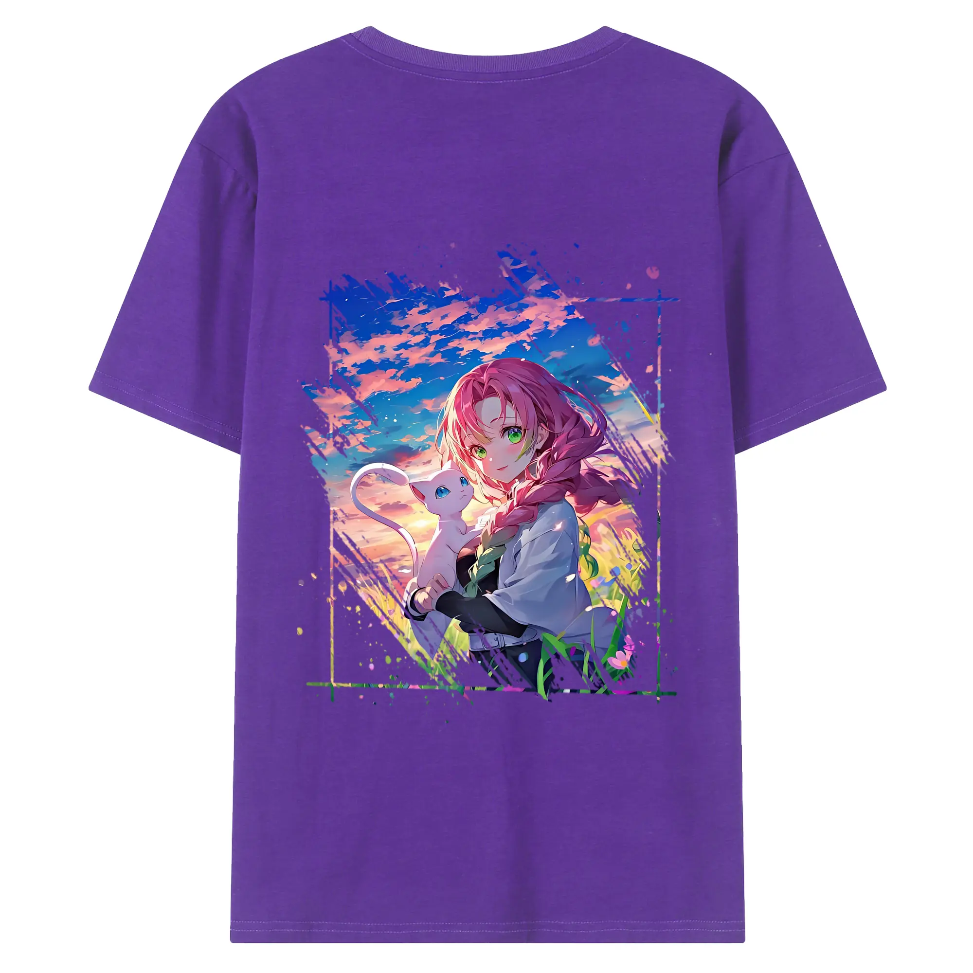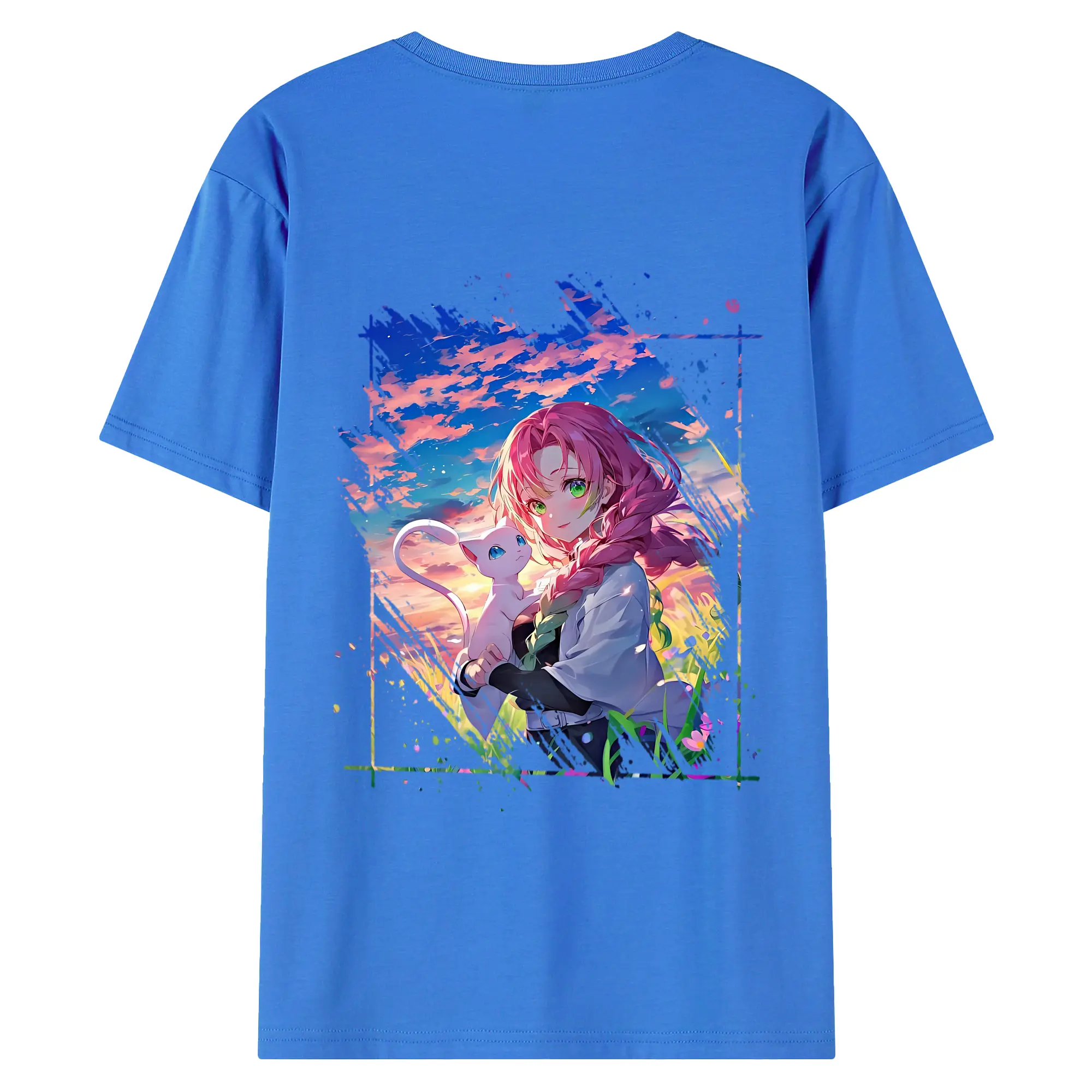鬼滅の刃 グッズ,甘露寺 蜜璃 - 綿100% 半袖Tシャツ ・ フロントプリント ・ 快適 通気性 ・ 日常使い 散歩 スポーツ用