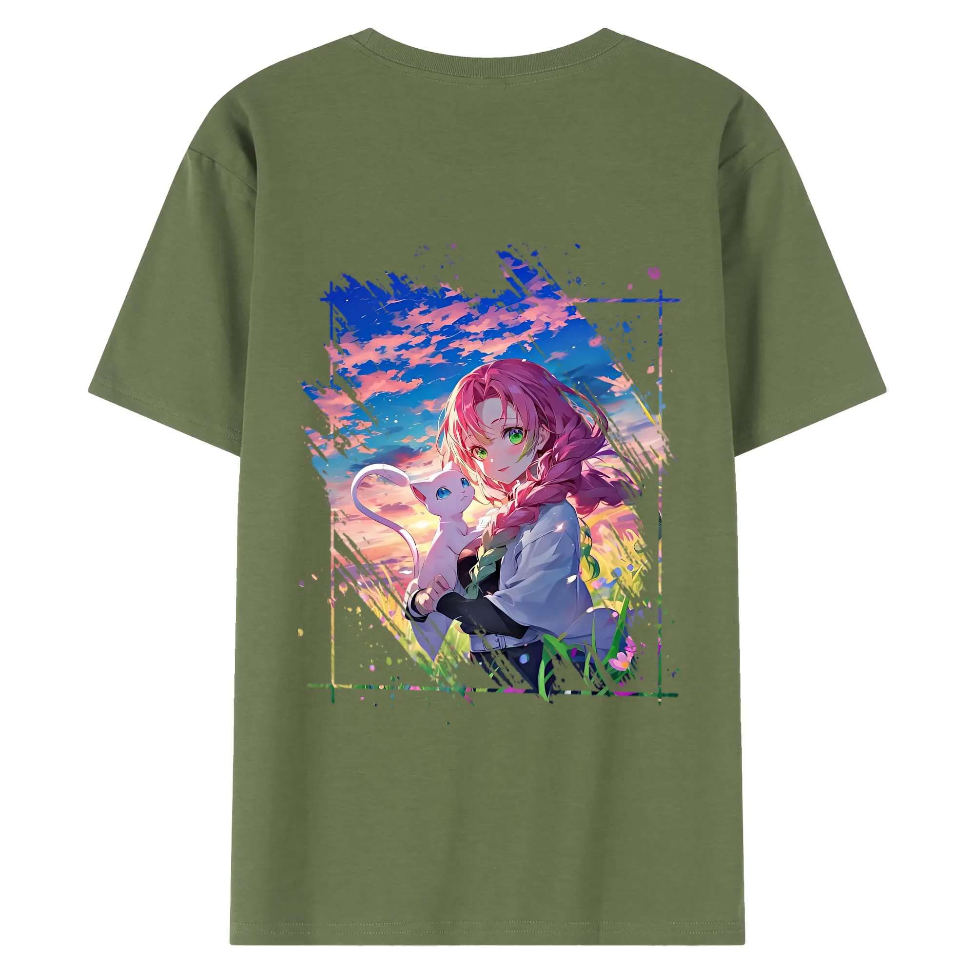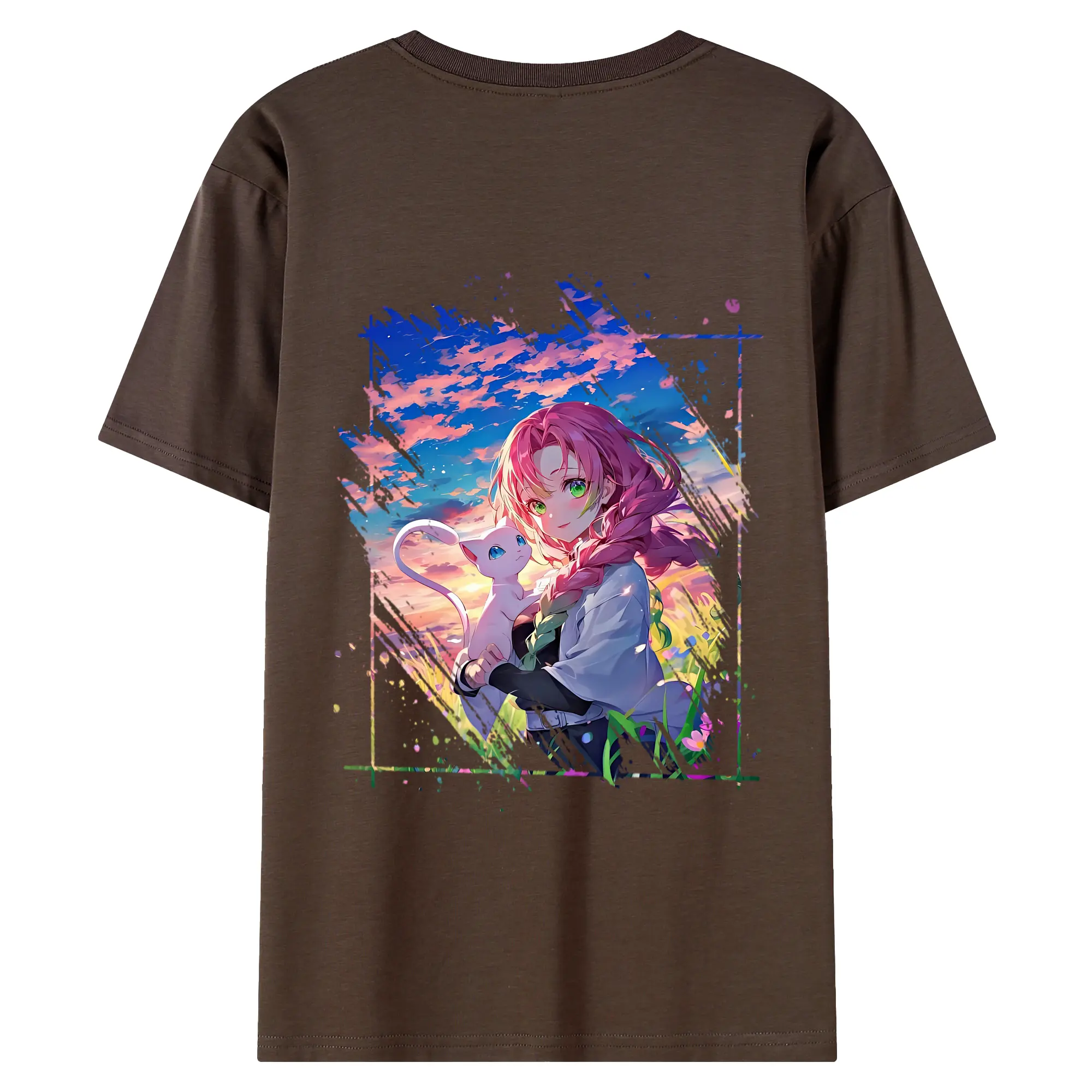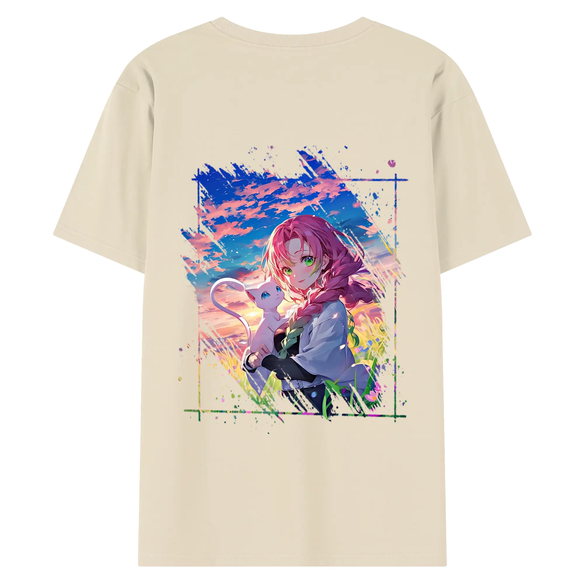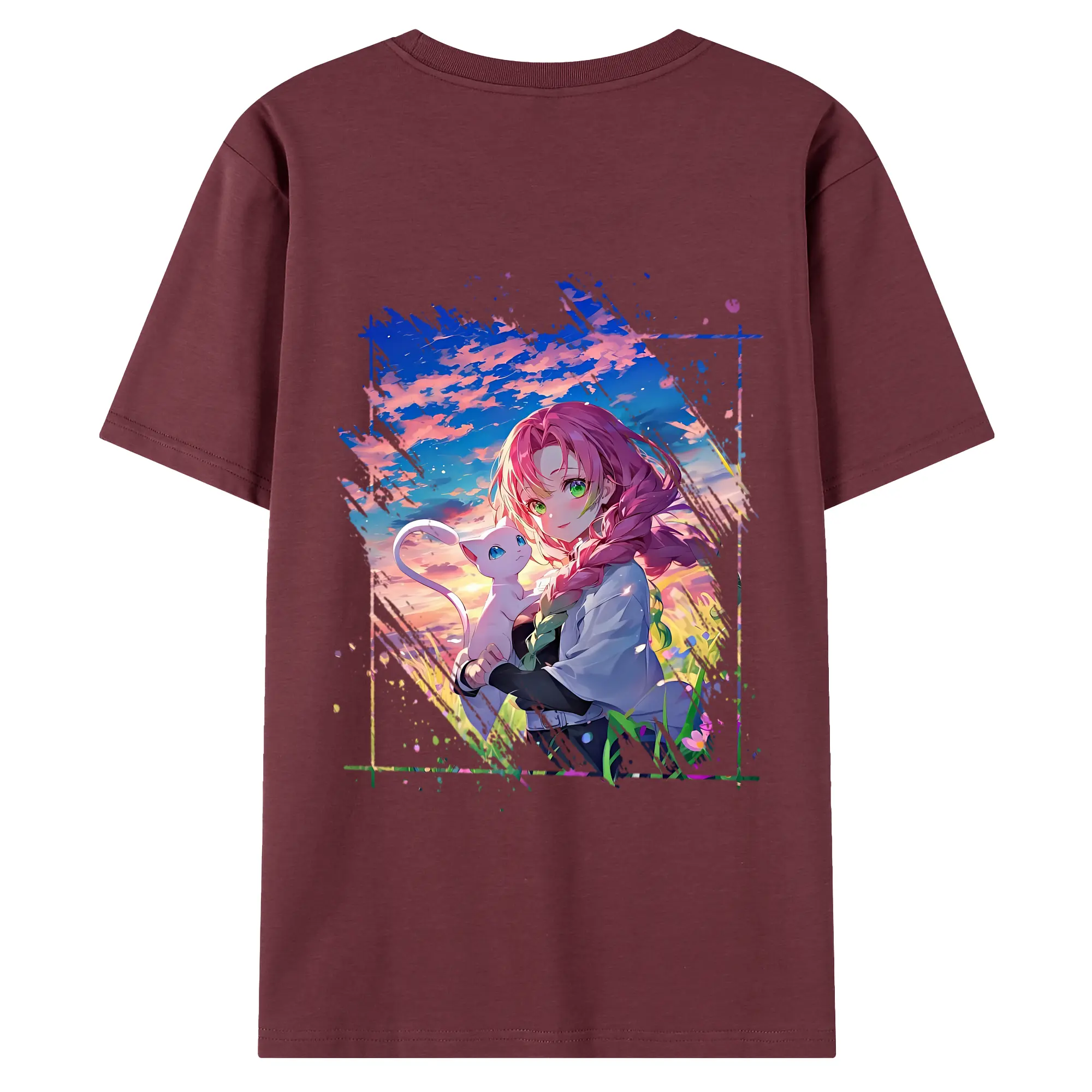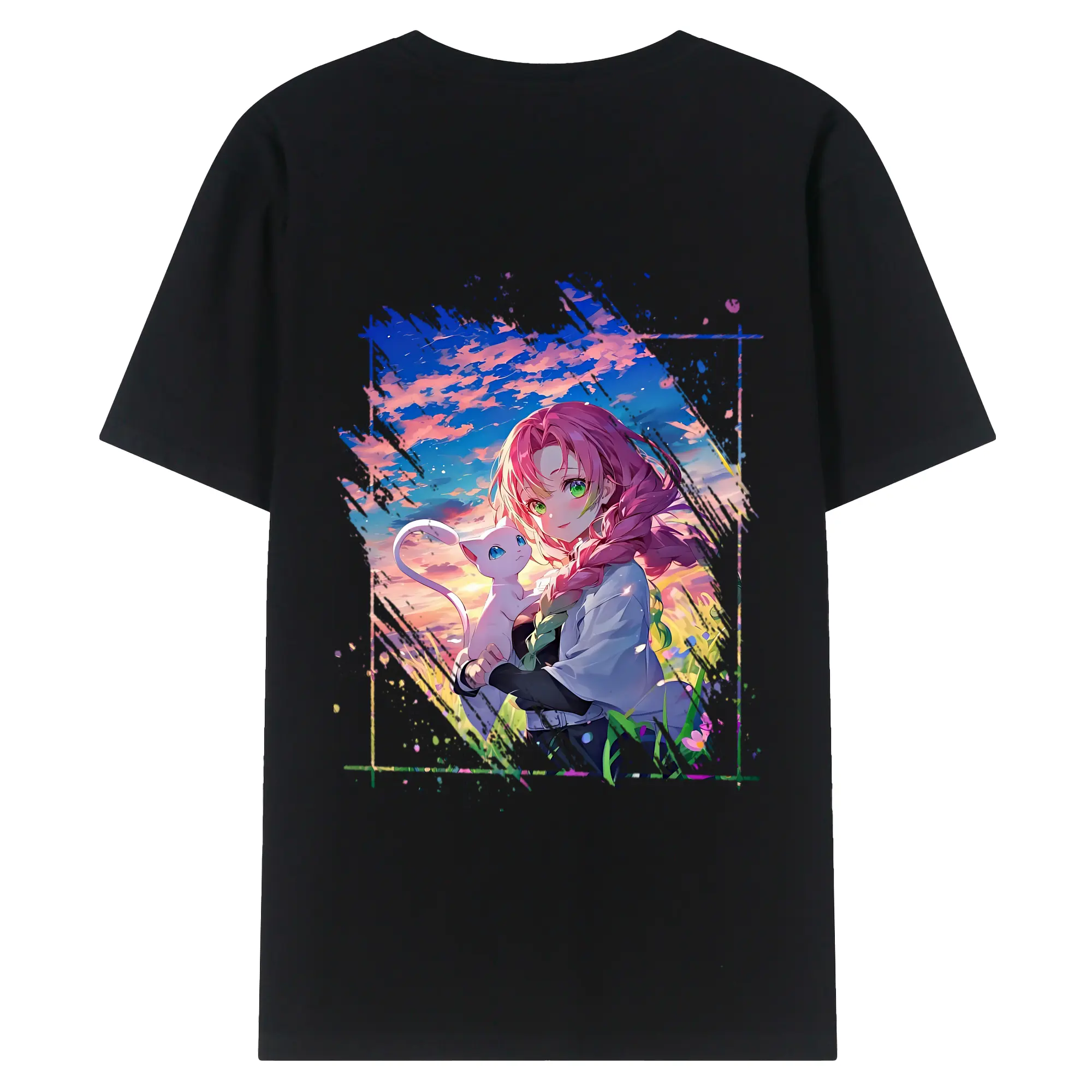 鬼滅の刃 グッズ,甘露寺 蜜璃 - 綿100% 半袖Tシャツ ・ フロントプリント ・ 快適 通気性 ・ 日常使い 散歩 スポーツ用