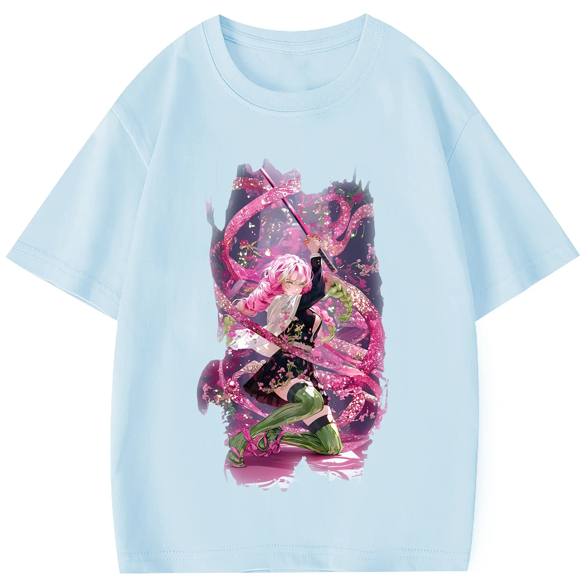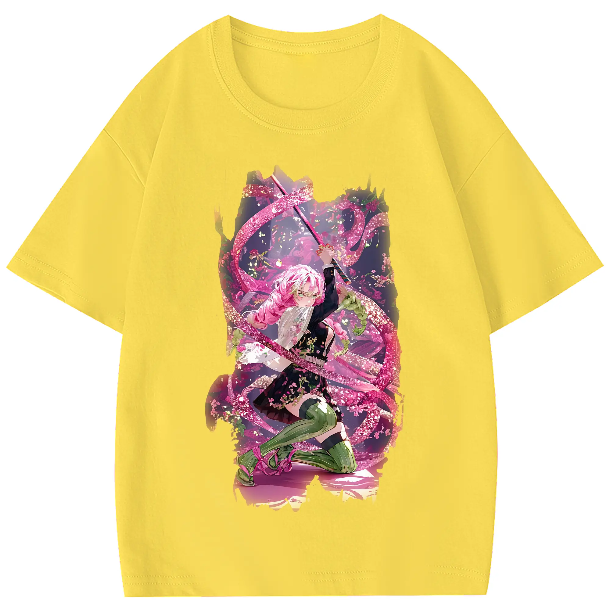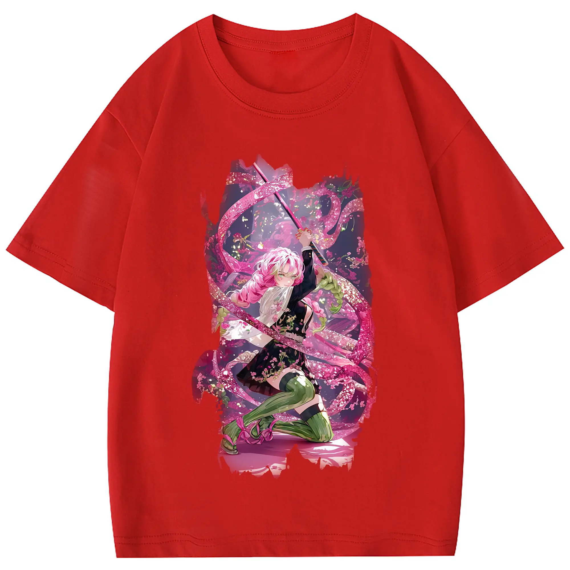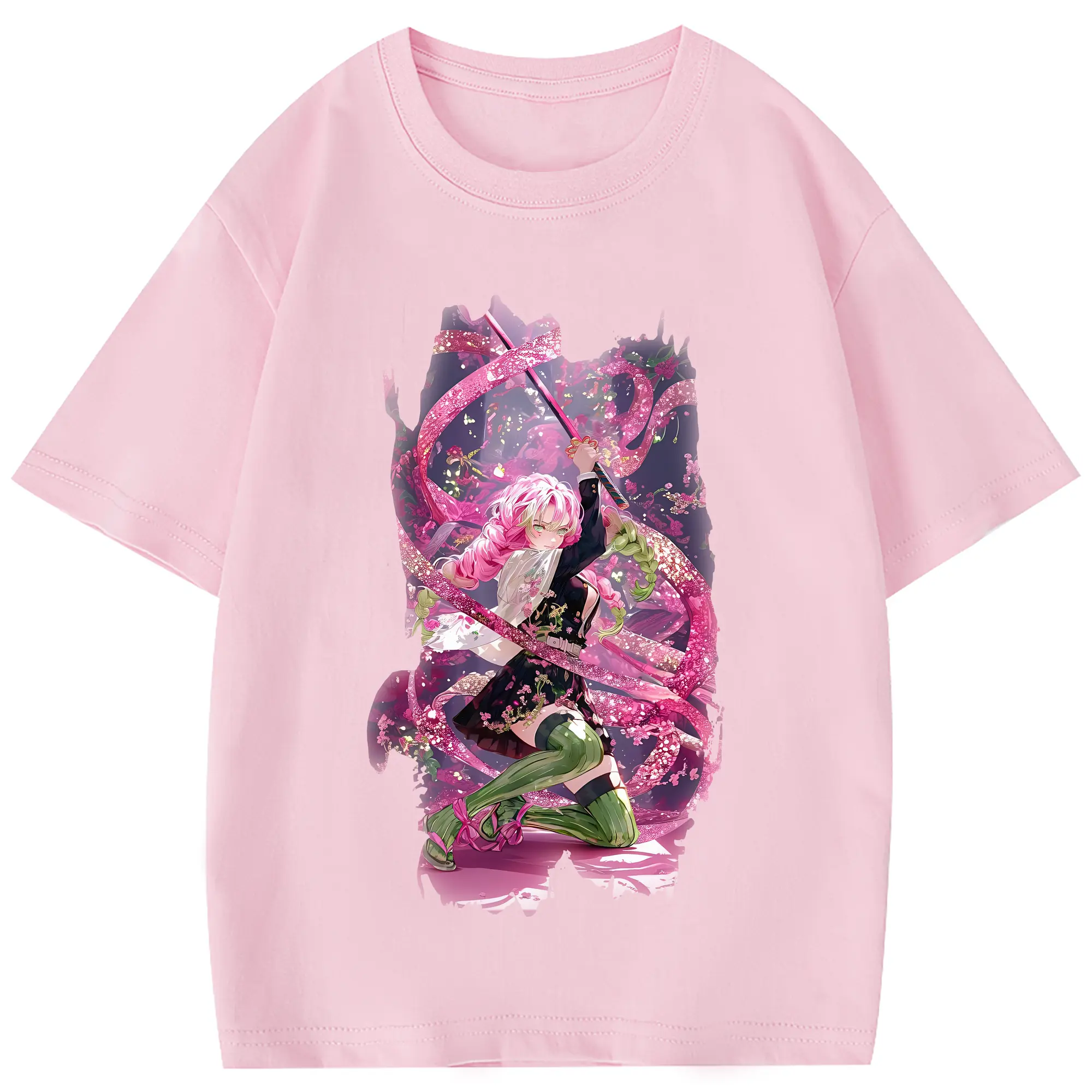 鬼滅の刃 グッズ,甘露寺 蜜璃 - 綿100% 半袖Tシャツ ・ フロントプリント ・ 快適 通気性 ・ 日常使い 散歩 スポーツ用