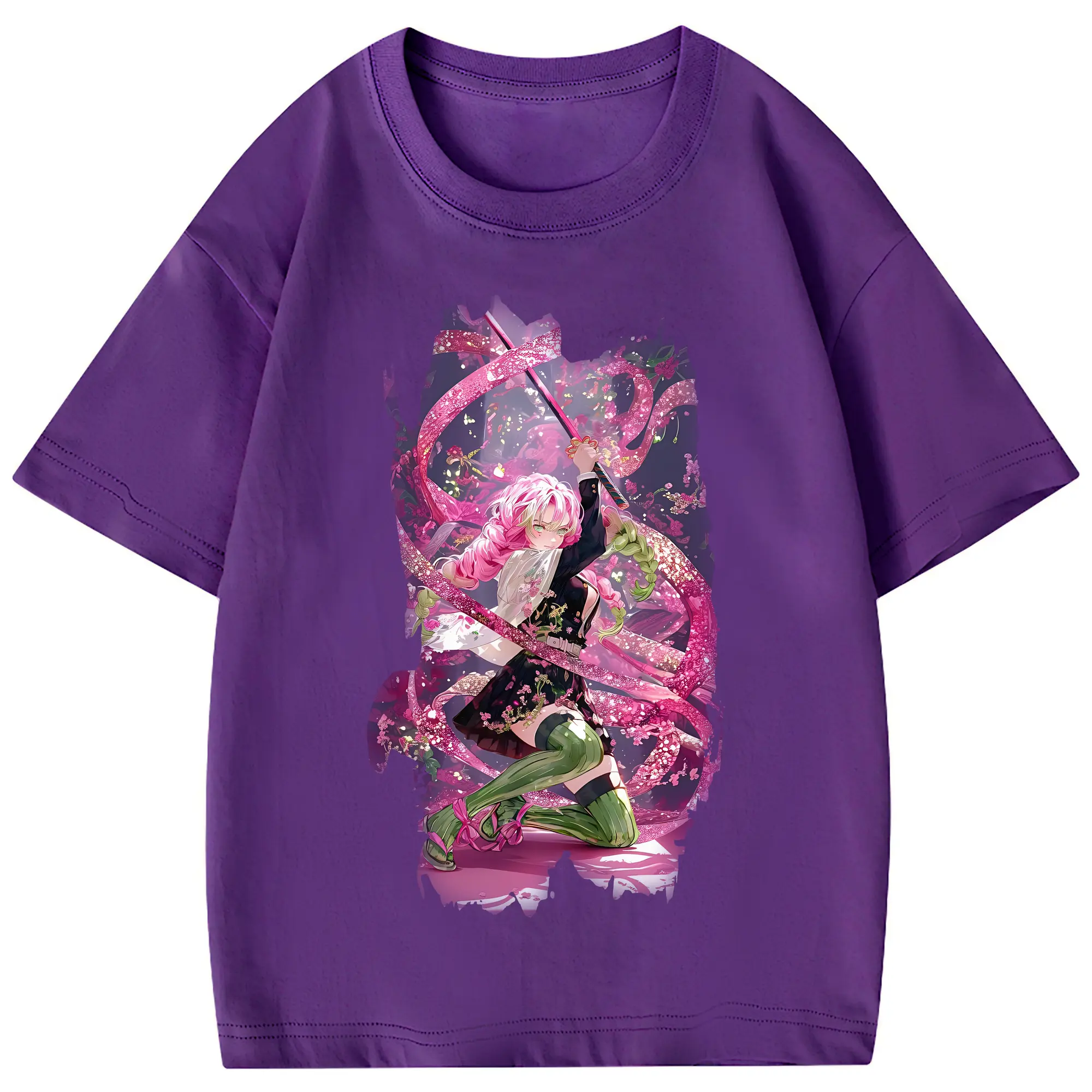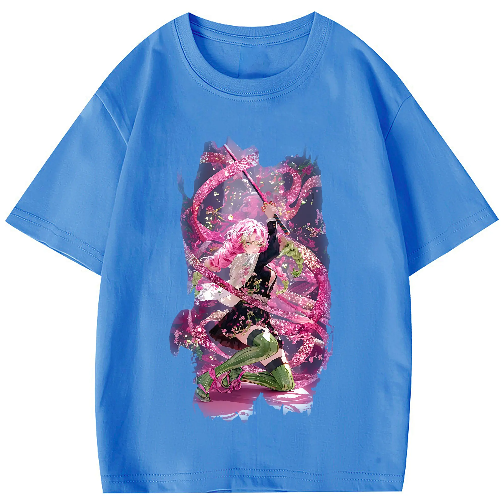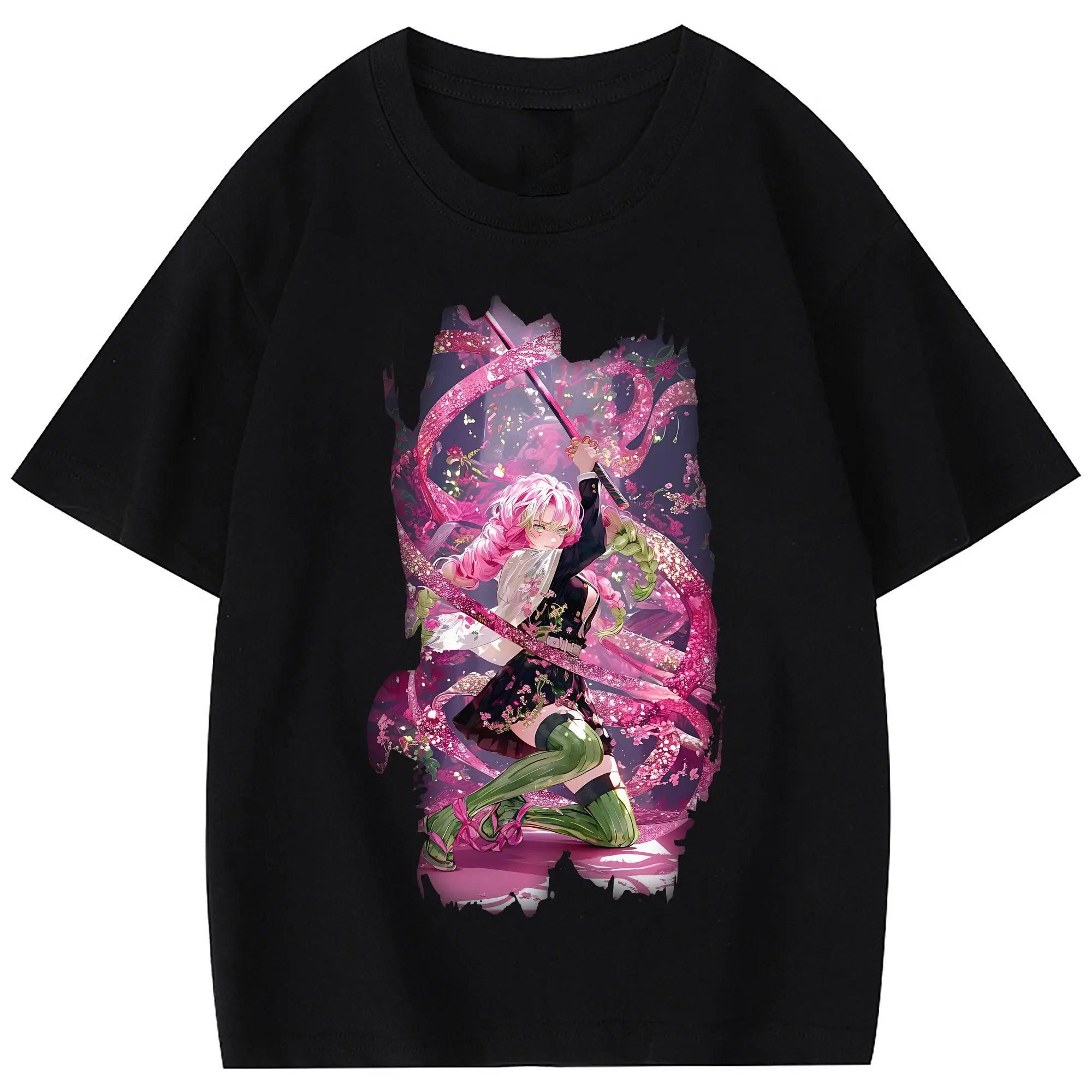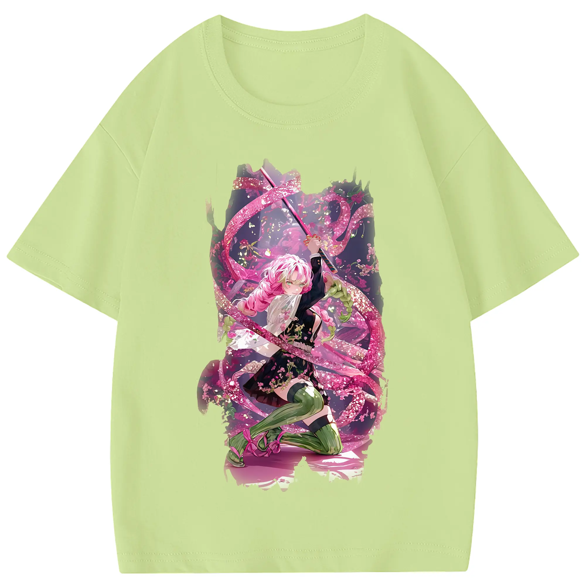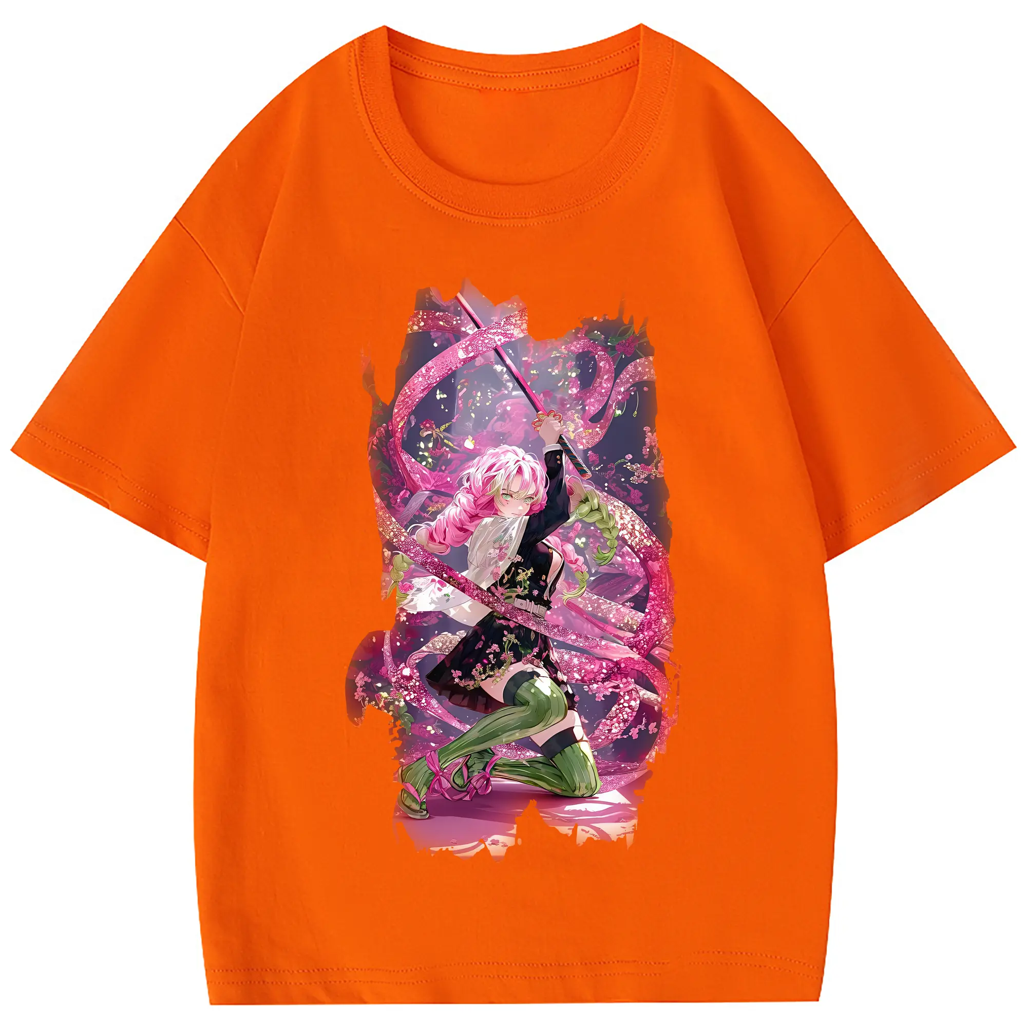 鬼滅の刃 グッズ,甘露寺 蜜璃 - 綿100% 半袖Tシャツ ・ フロントプリント ・ 快適 通気性 ・ 日常使い 散歩 スポーツ用