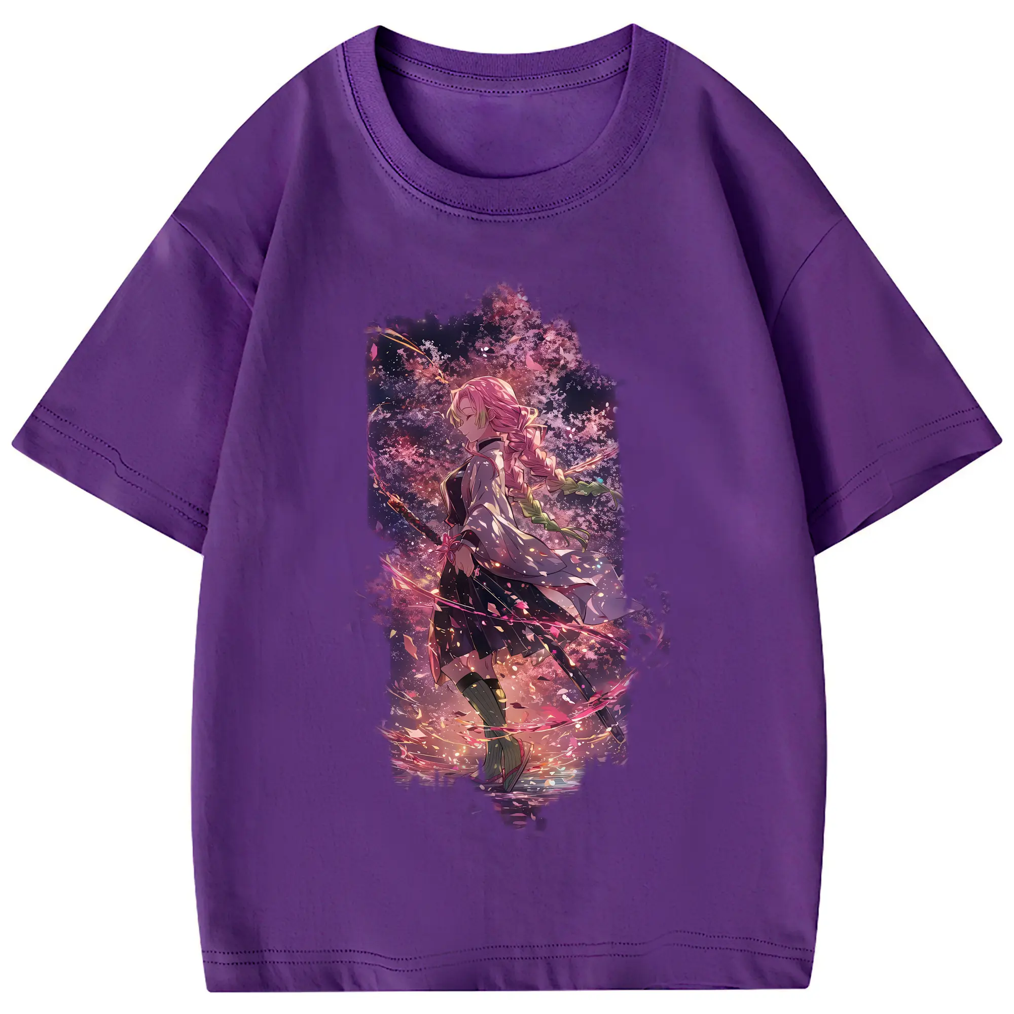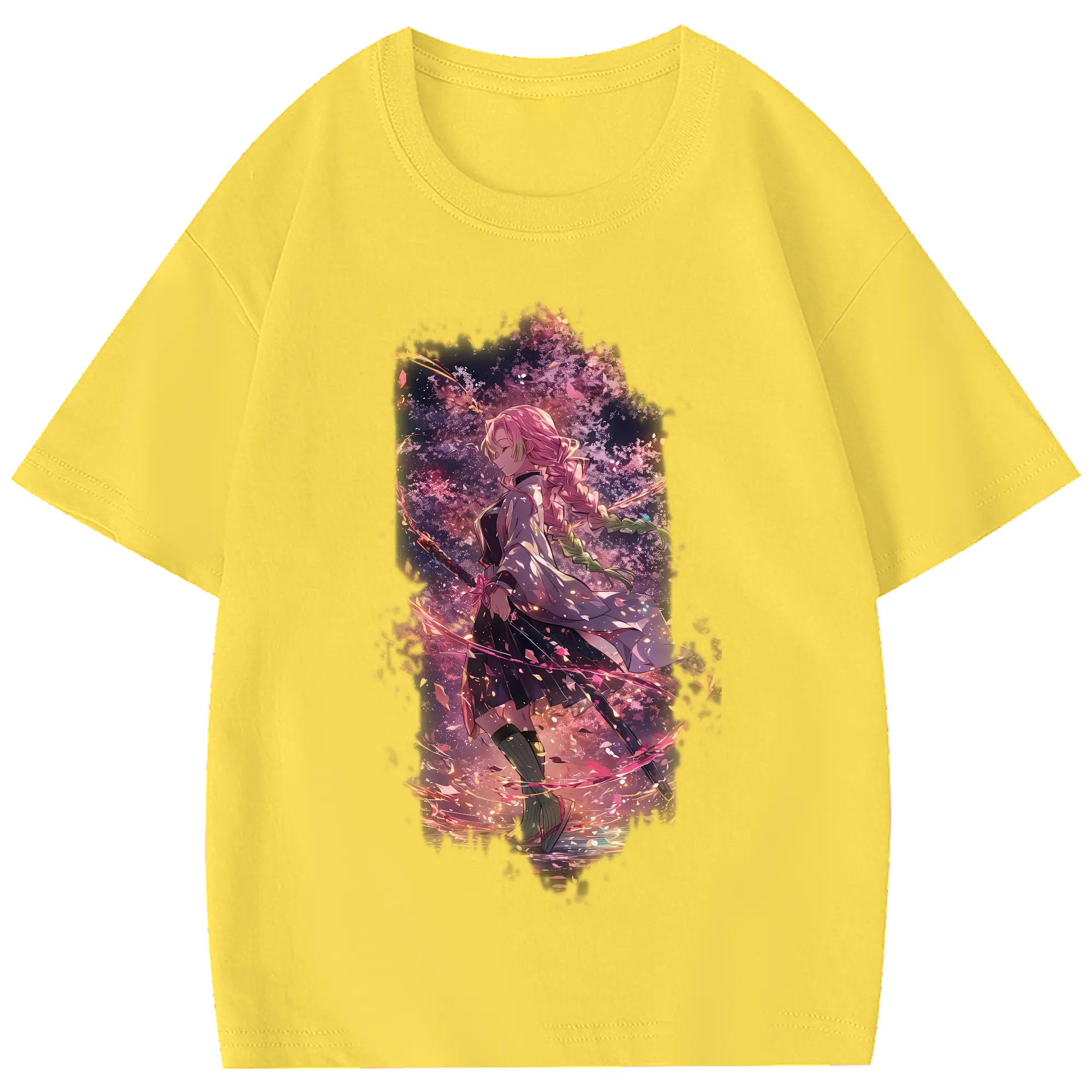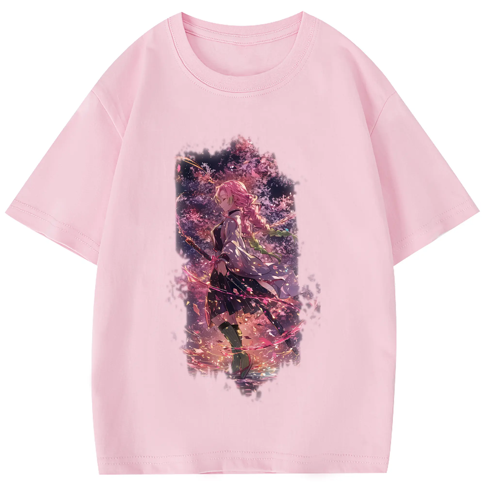 鬼滅の刃 グッズ,甘露寺 蜜璃 - 綿100% 半袖Tシャツ ・ フロントプリント ・ 快適 通気性 ・ 日常使い 散歩 スポーツ用