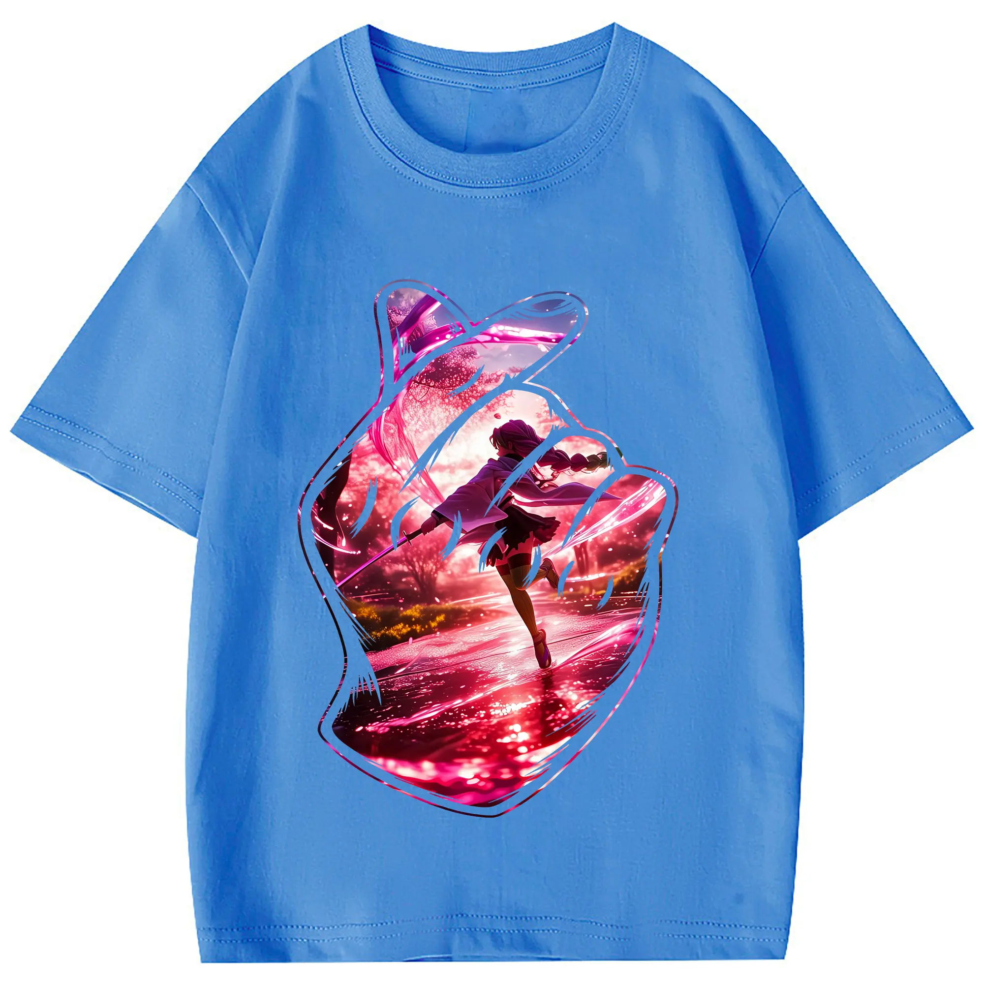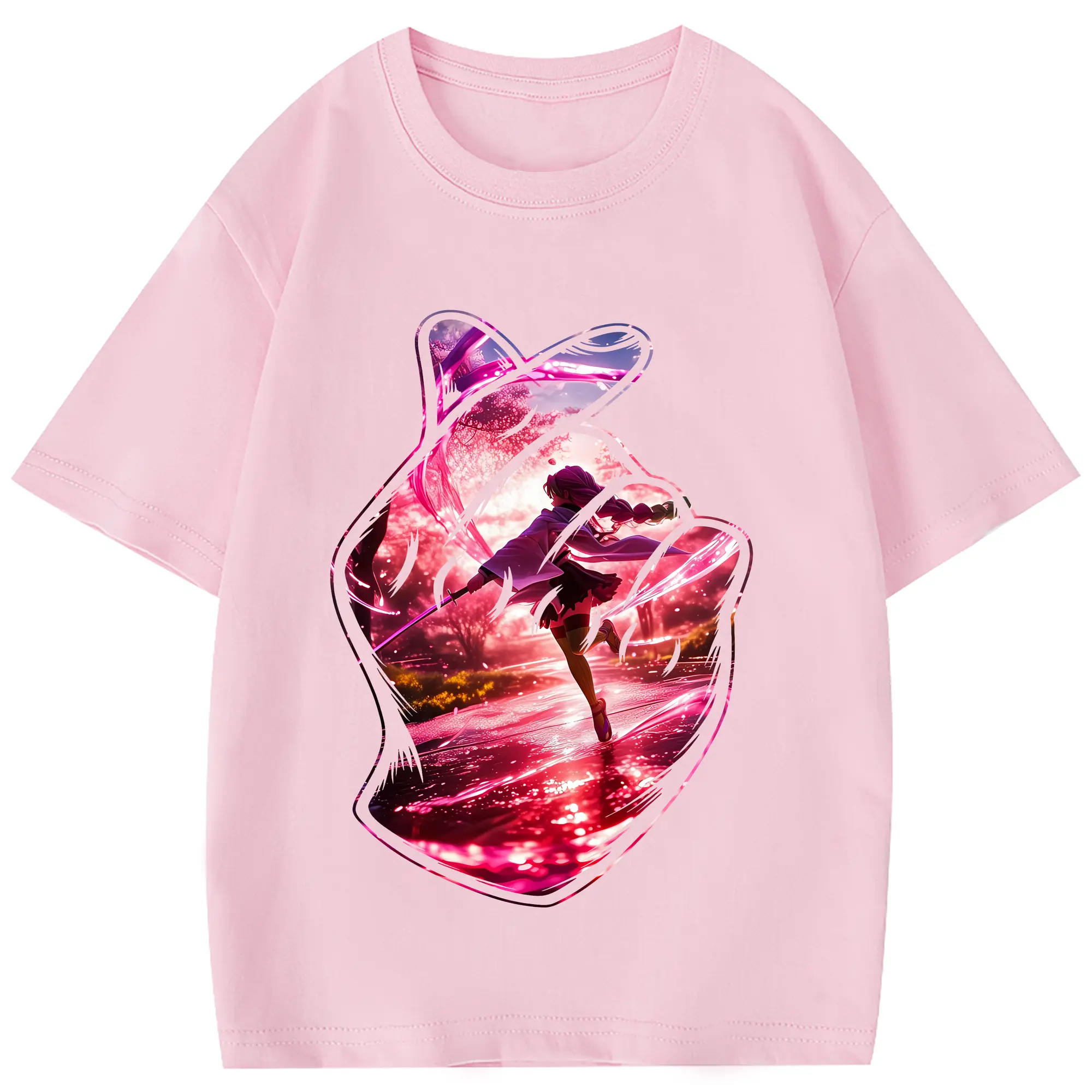 鬼滅の刃 グッズ,甘露寺 蜜璃 - 綿100% 半袖Tシャツ ・ フロントプリント ・ 快適 通気性 ・ 日常使い 散歩 スポーツ用