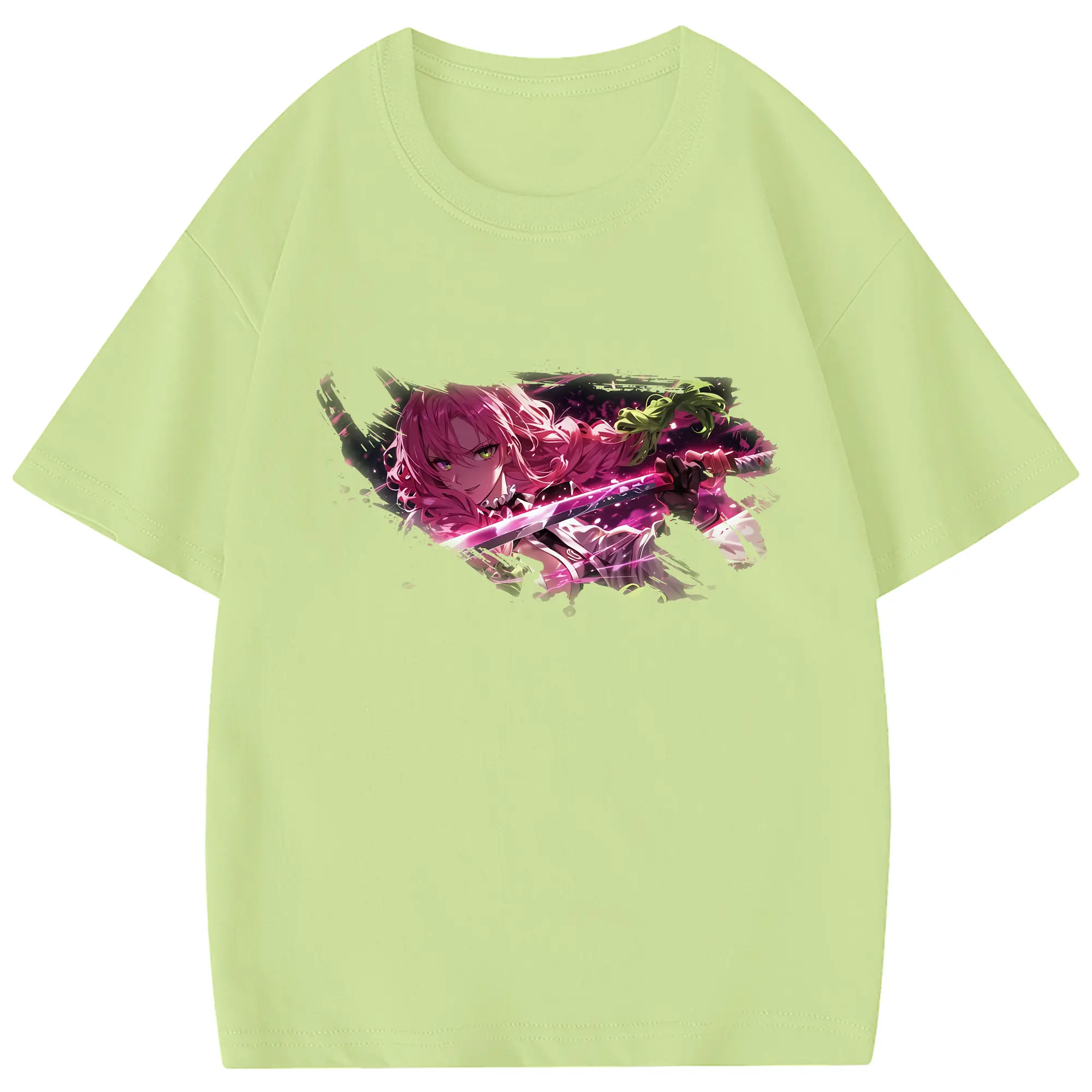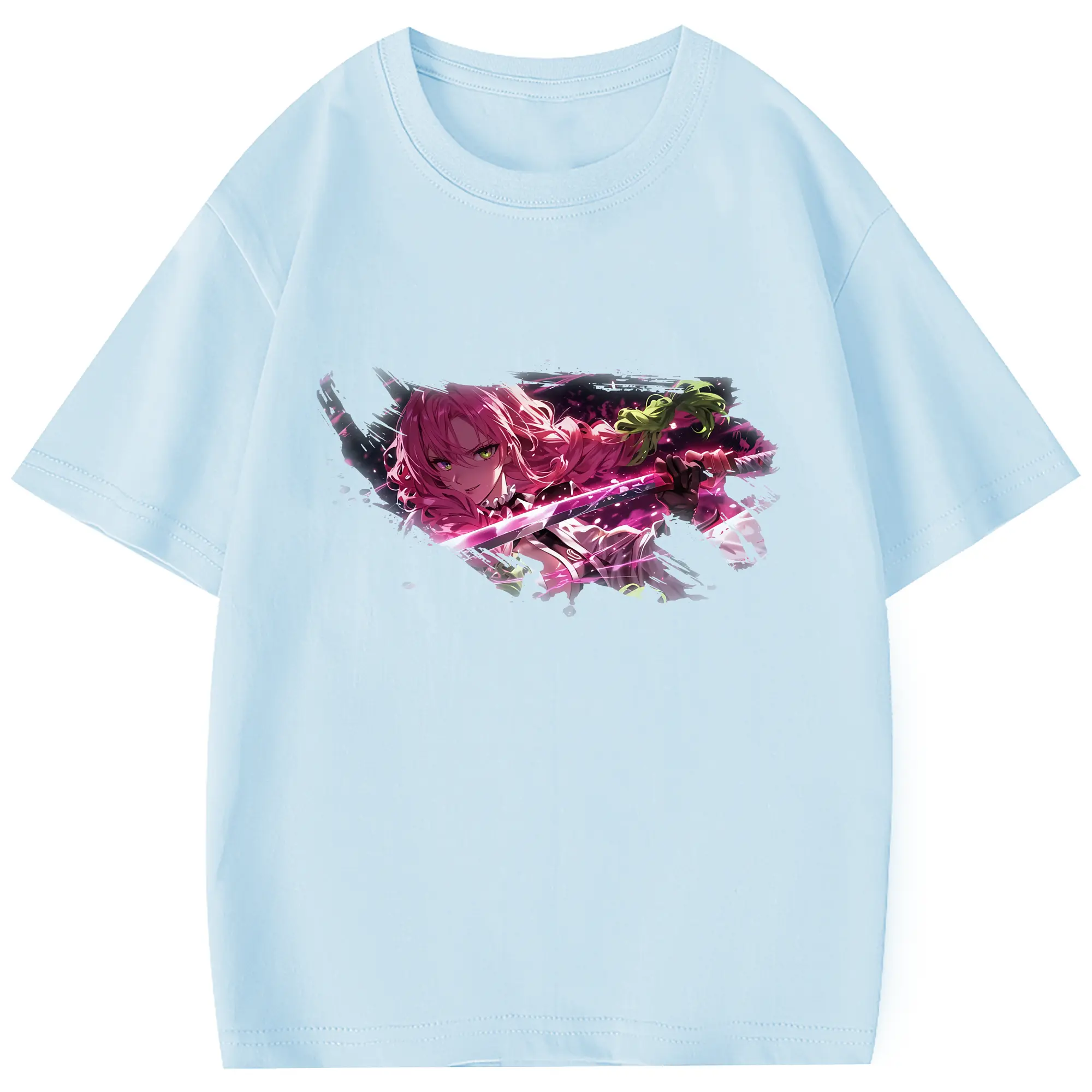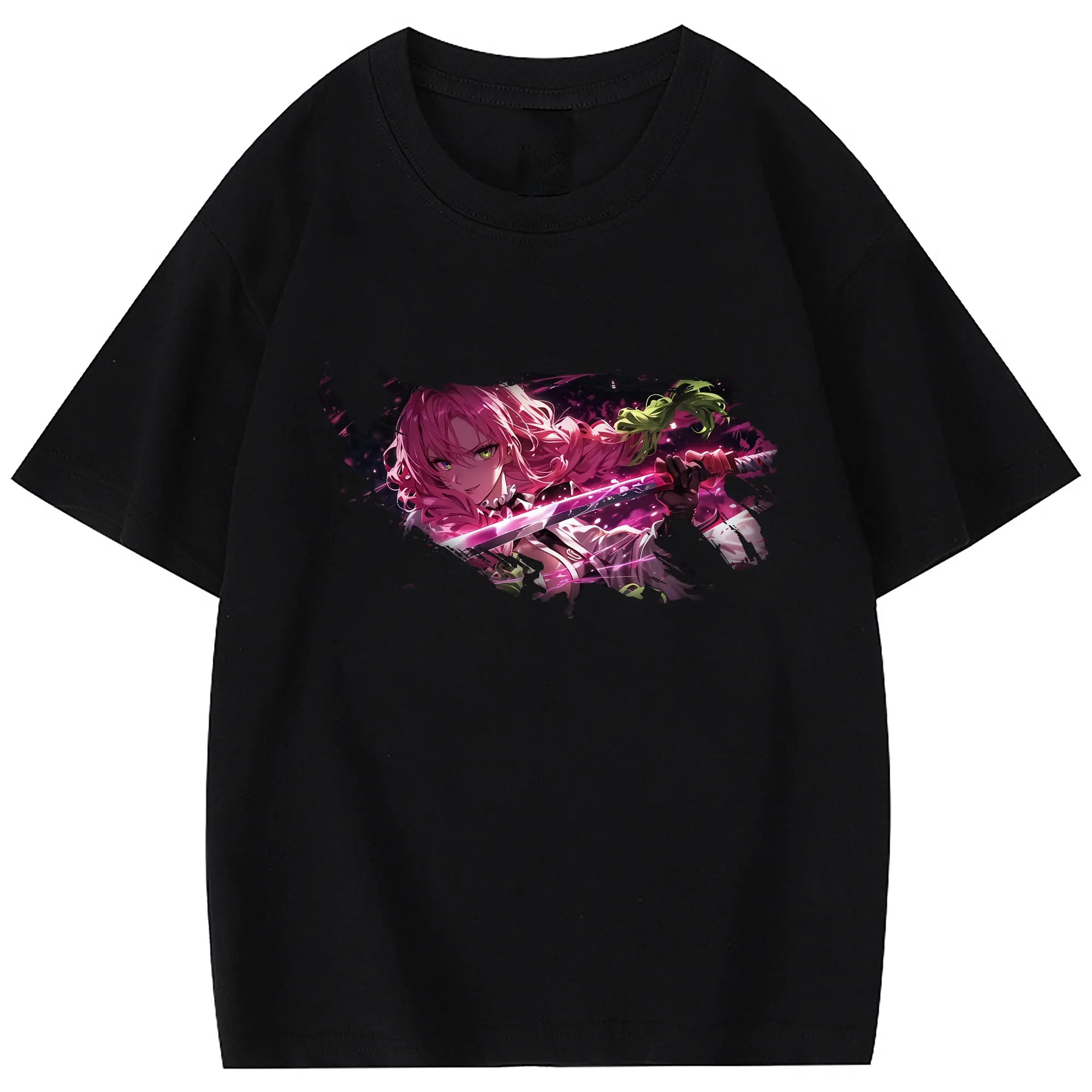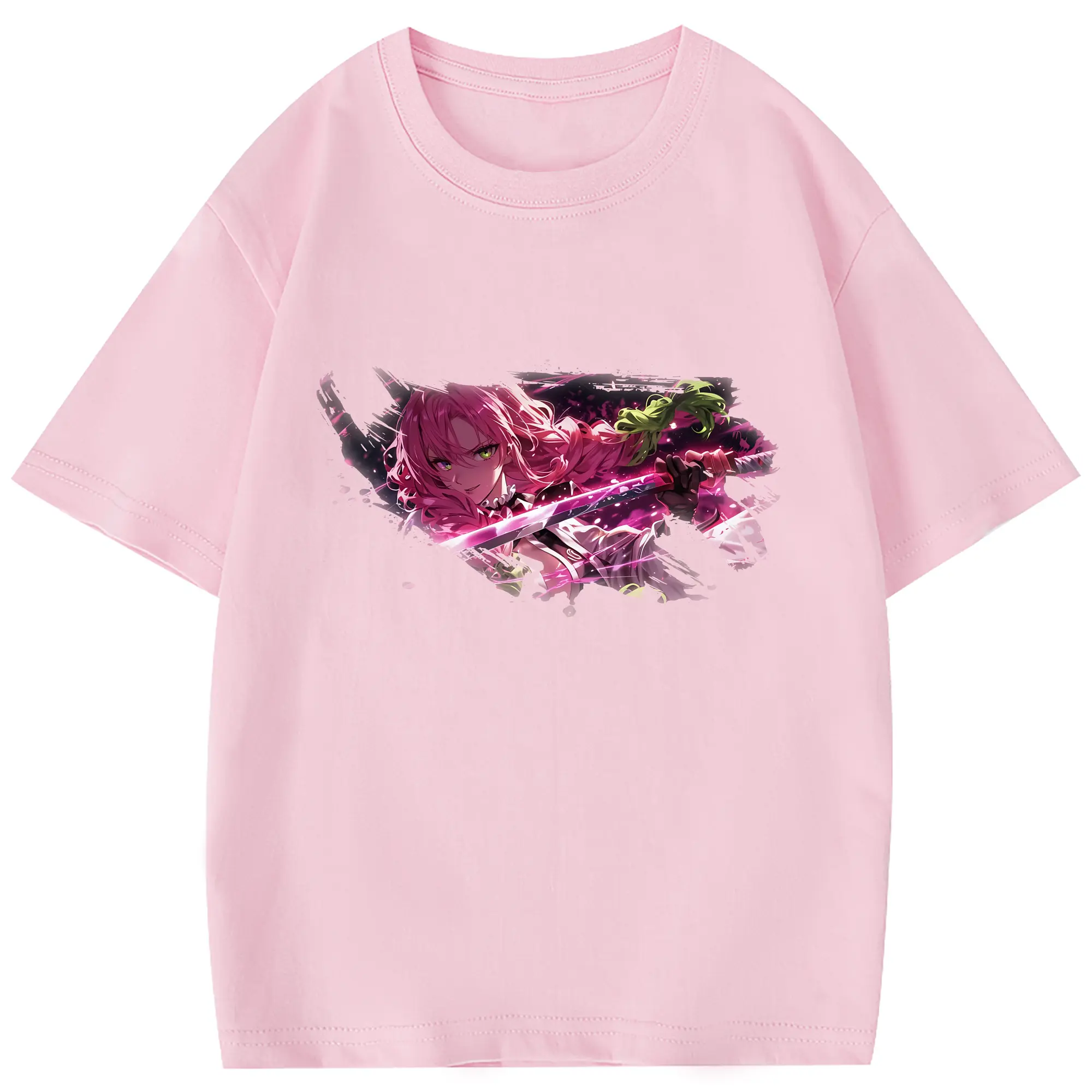 鬼滅の刃 グッズ,甘露寺 蜜璃 - 綿100% 半袖Tシャツ ・ フロントプリント ・ 快適 通気性 ・ 日常使い 散歩 スポーツ用