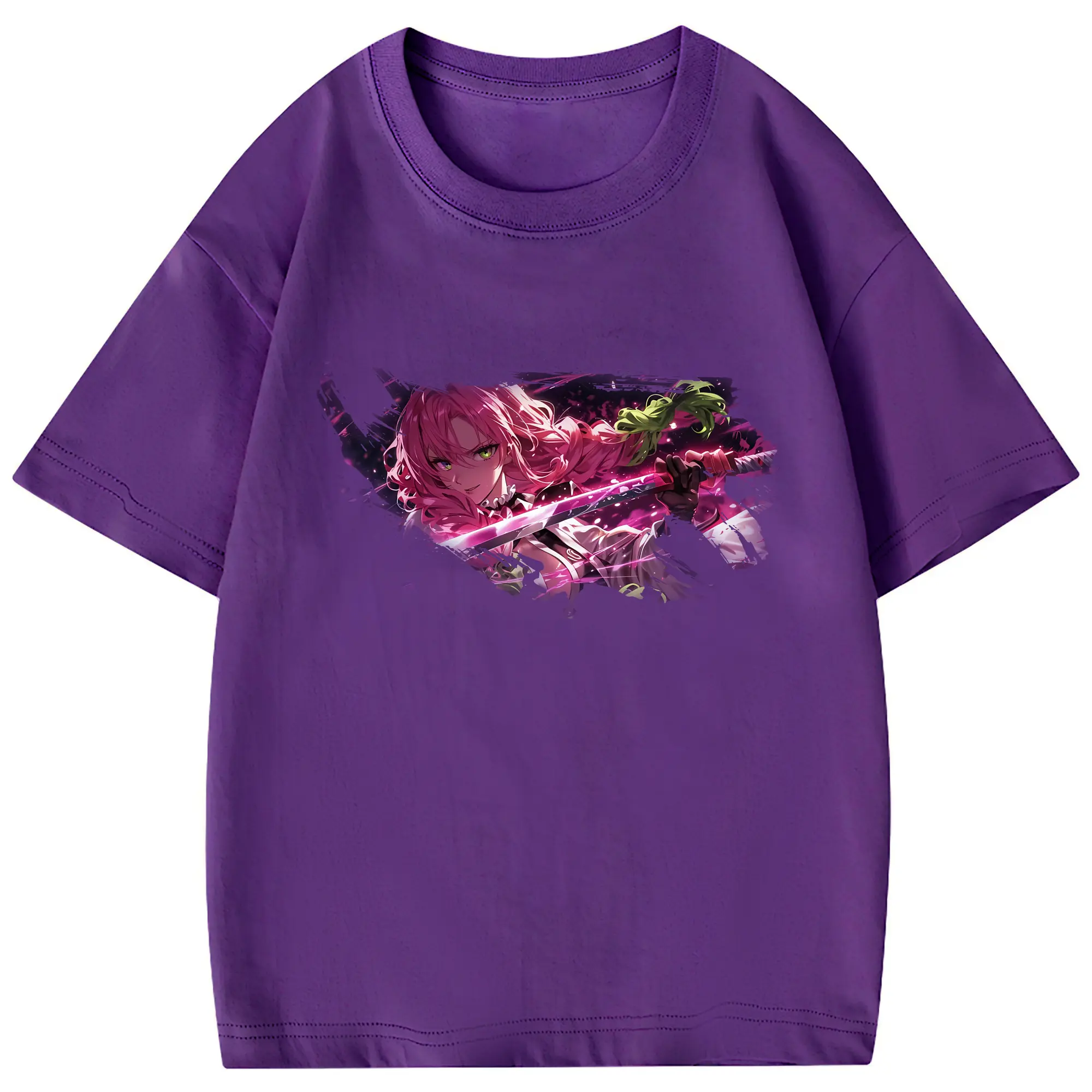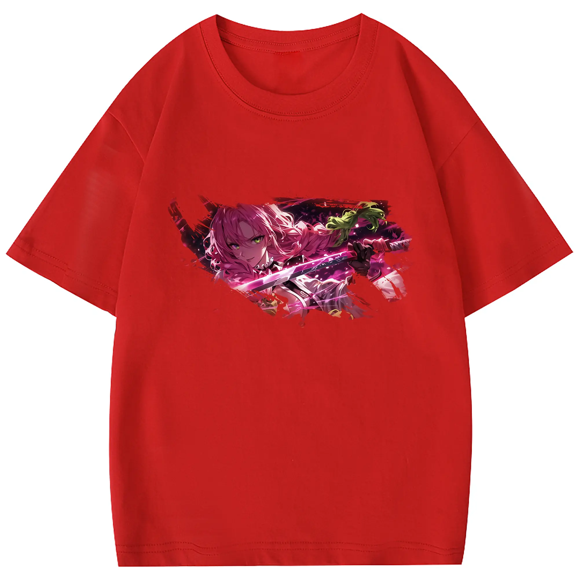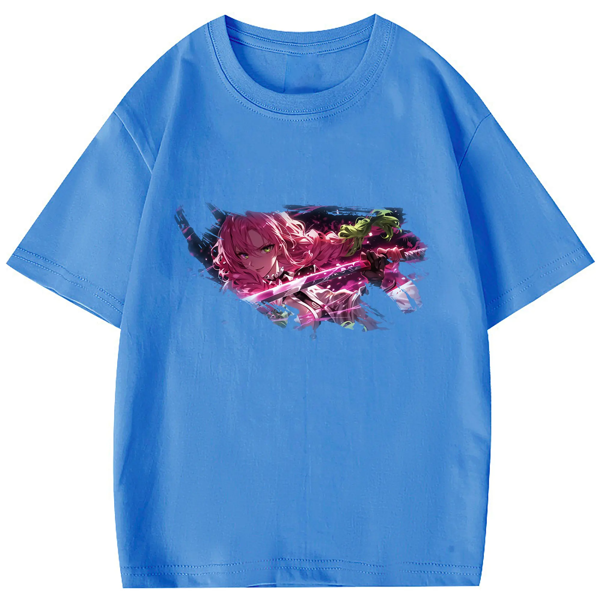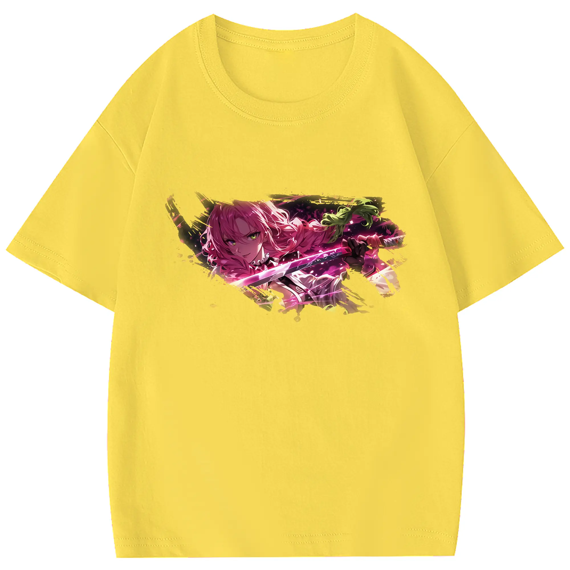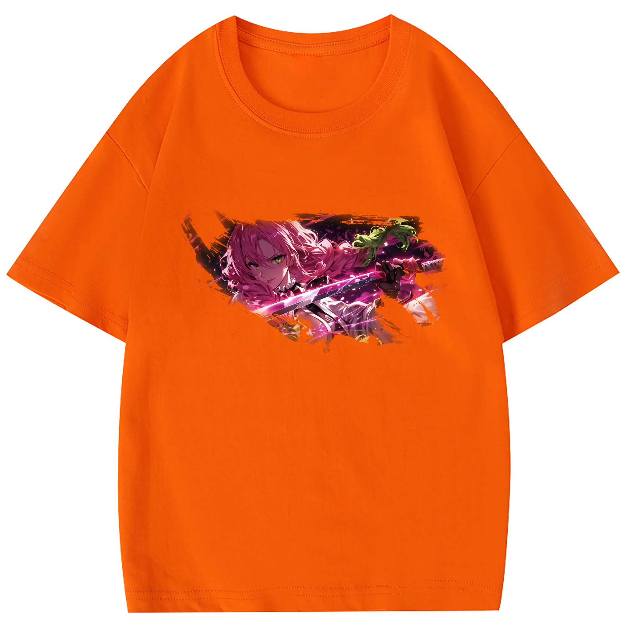 鬼滅の刃 グッズ,甘露寺 蜜璃 - 綿100% 半袖Tシャツ ・ フロントプリント ・ 快適 通気性 ・ 日常使い 散歩 スポーツ用