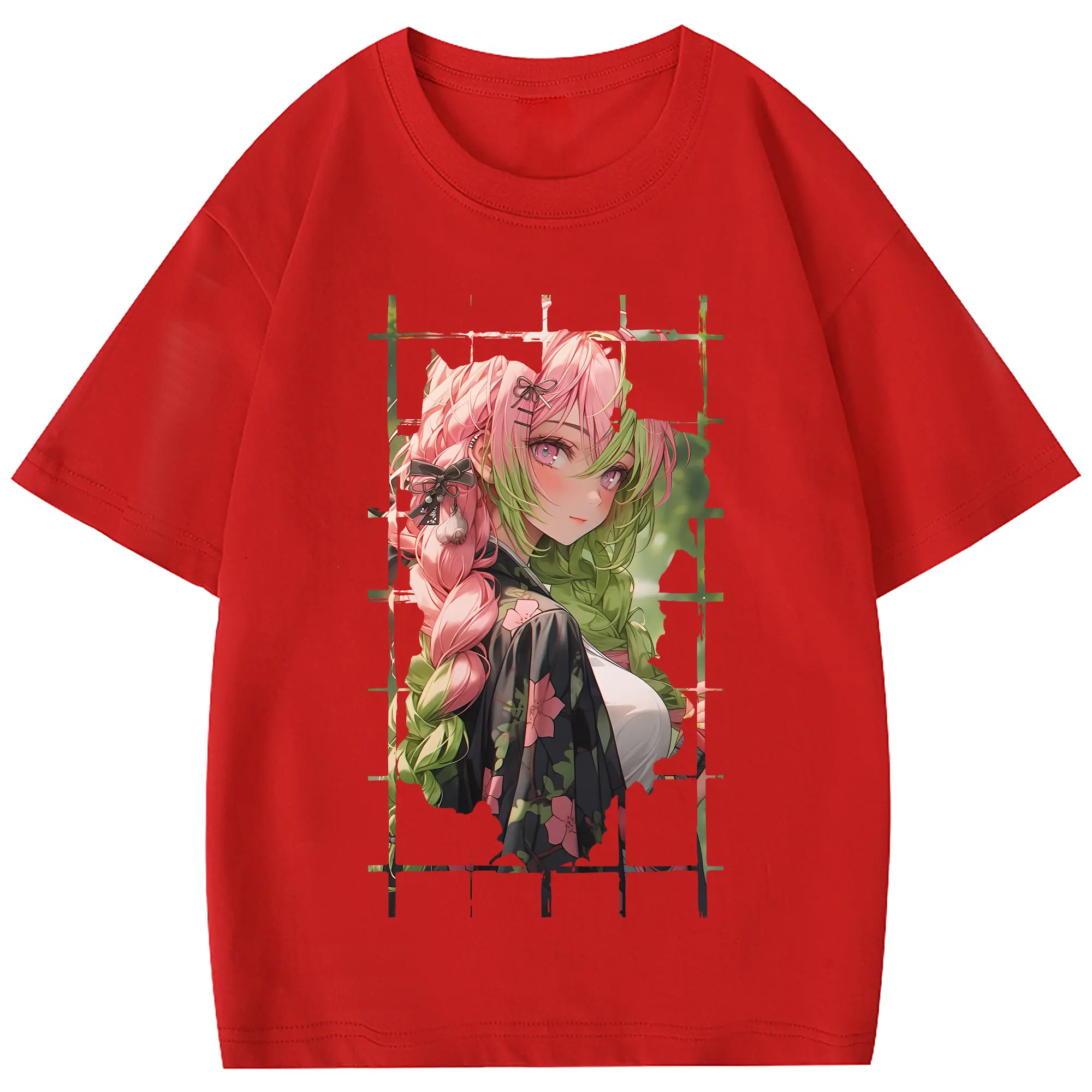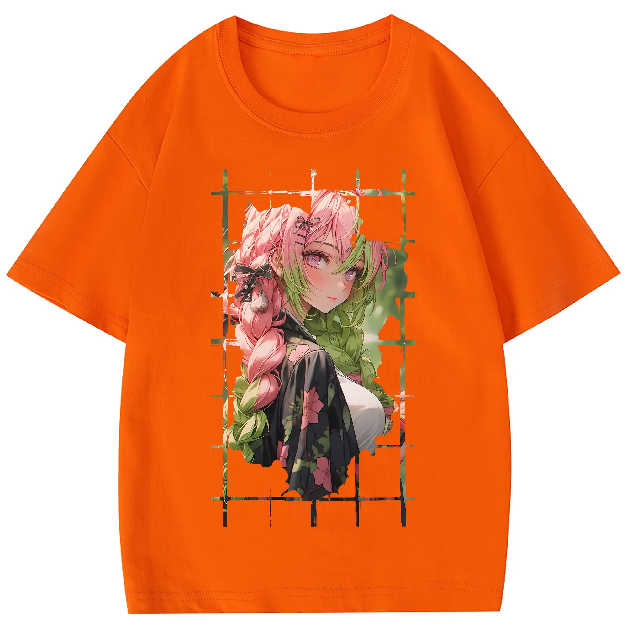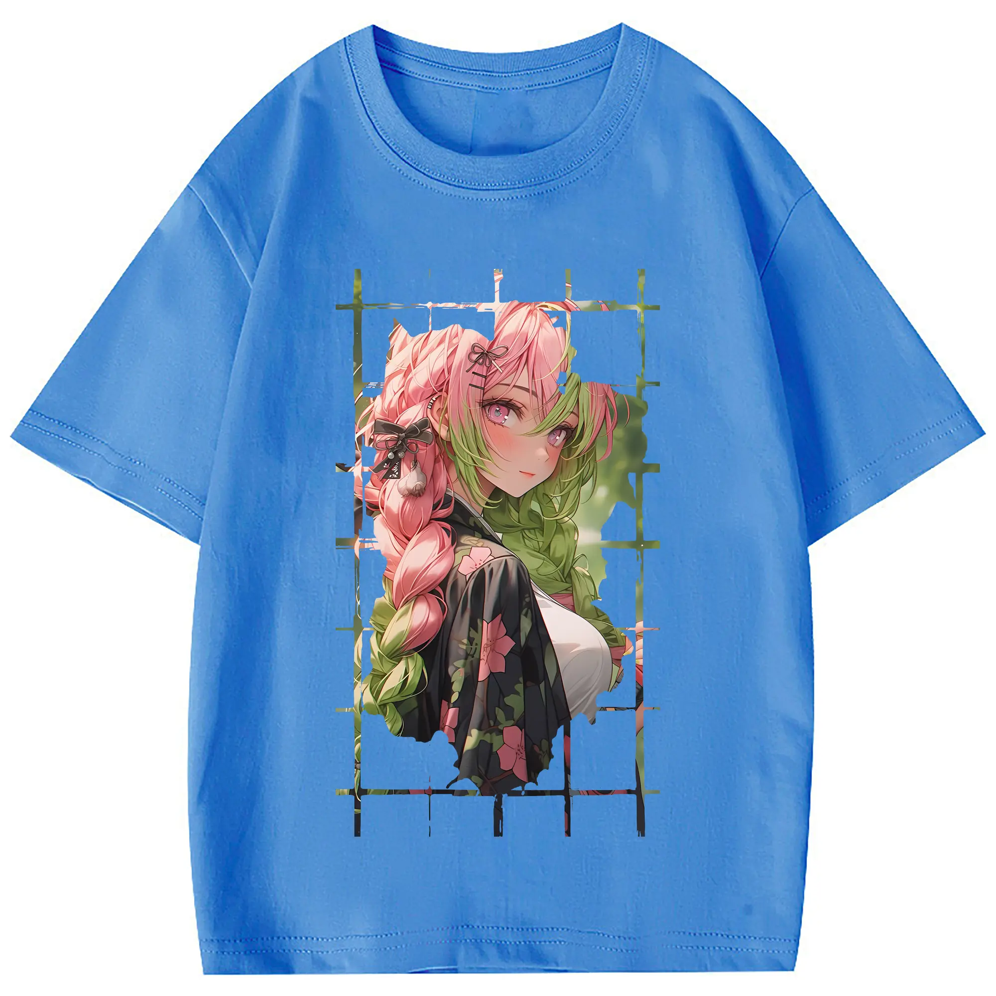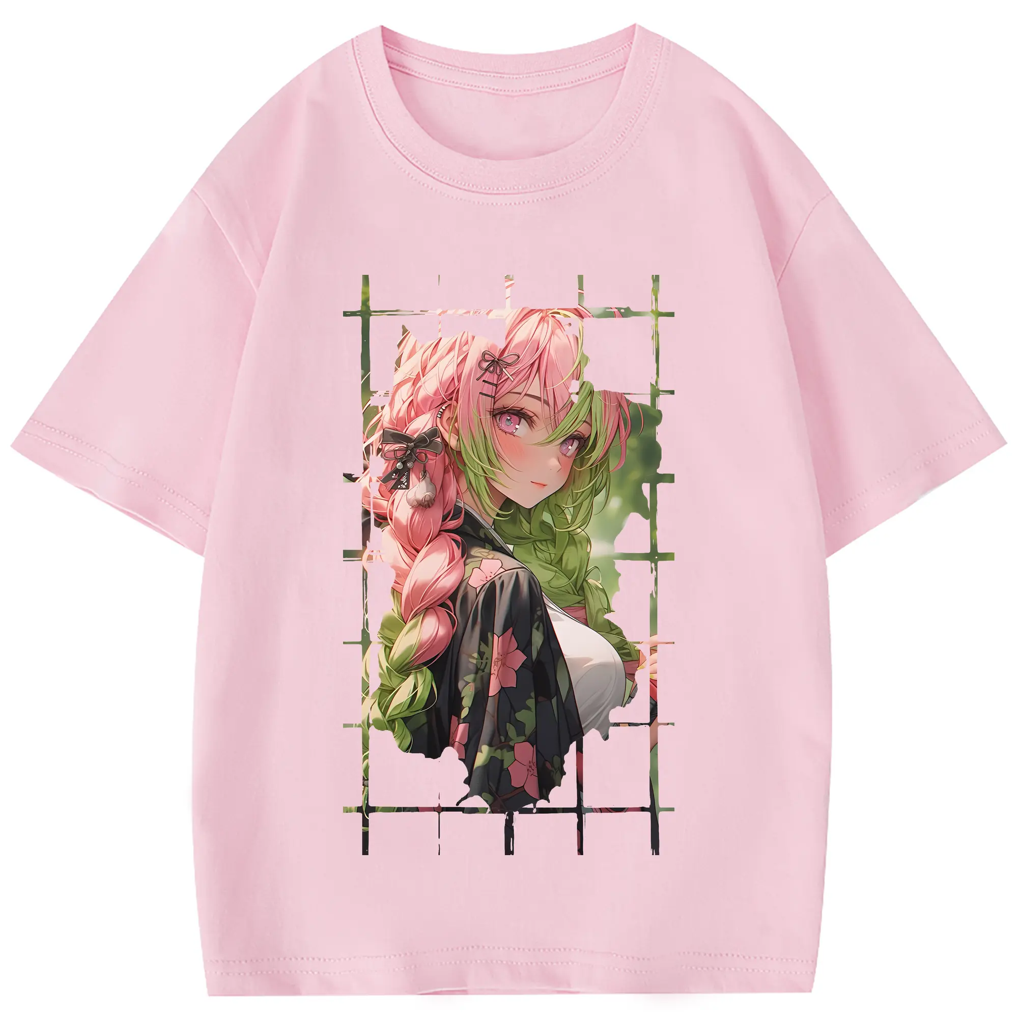 鬼滅の刃 グッズ,甘露寺 蜜璃 - 綿100% 半袖Tシャツ ・ フロントプリント ・ 快適 通気性 ・ 日常使い 散歩 スポーツ用