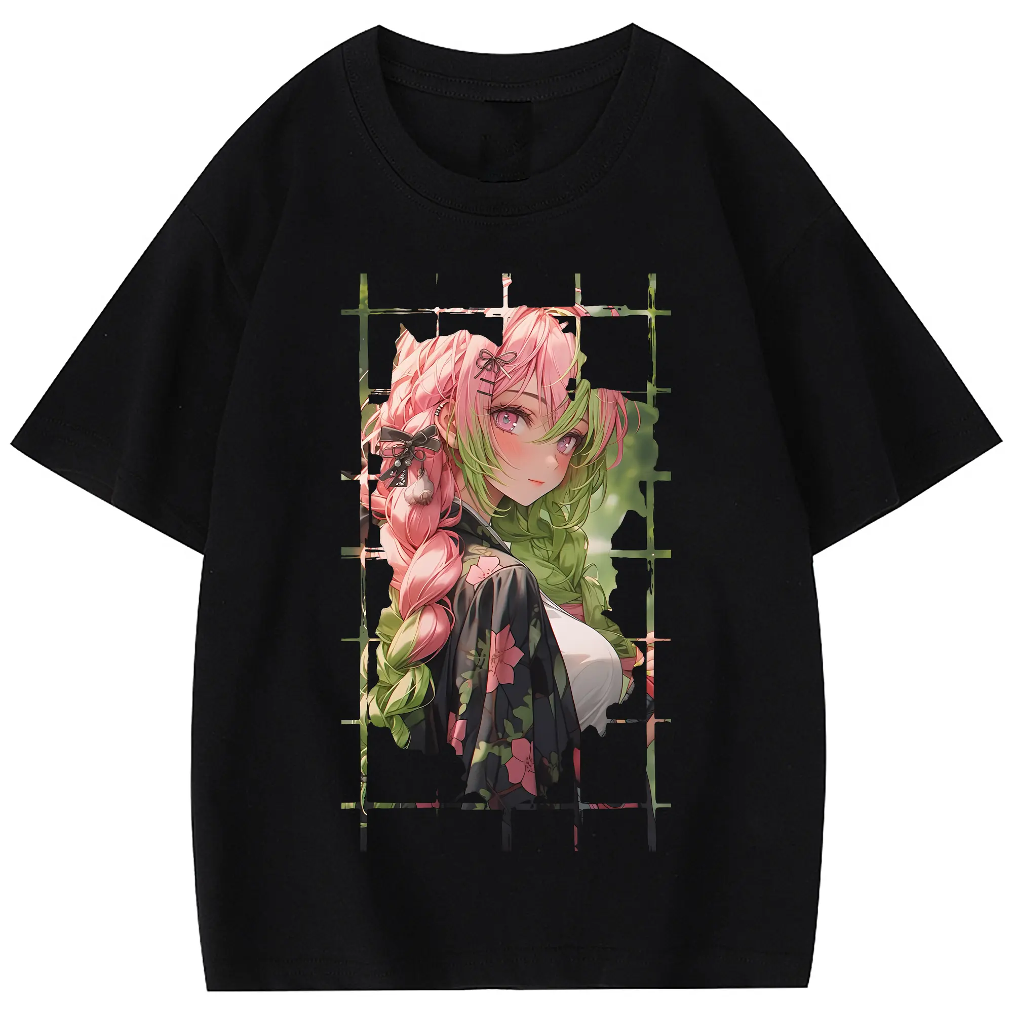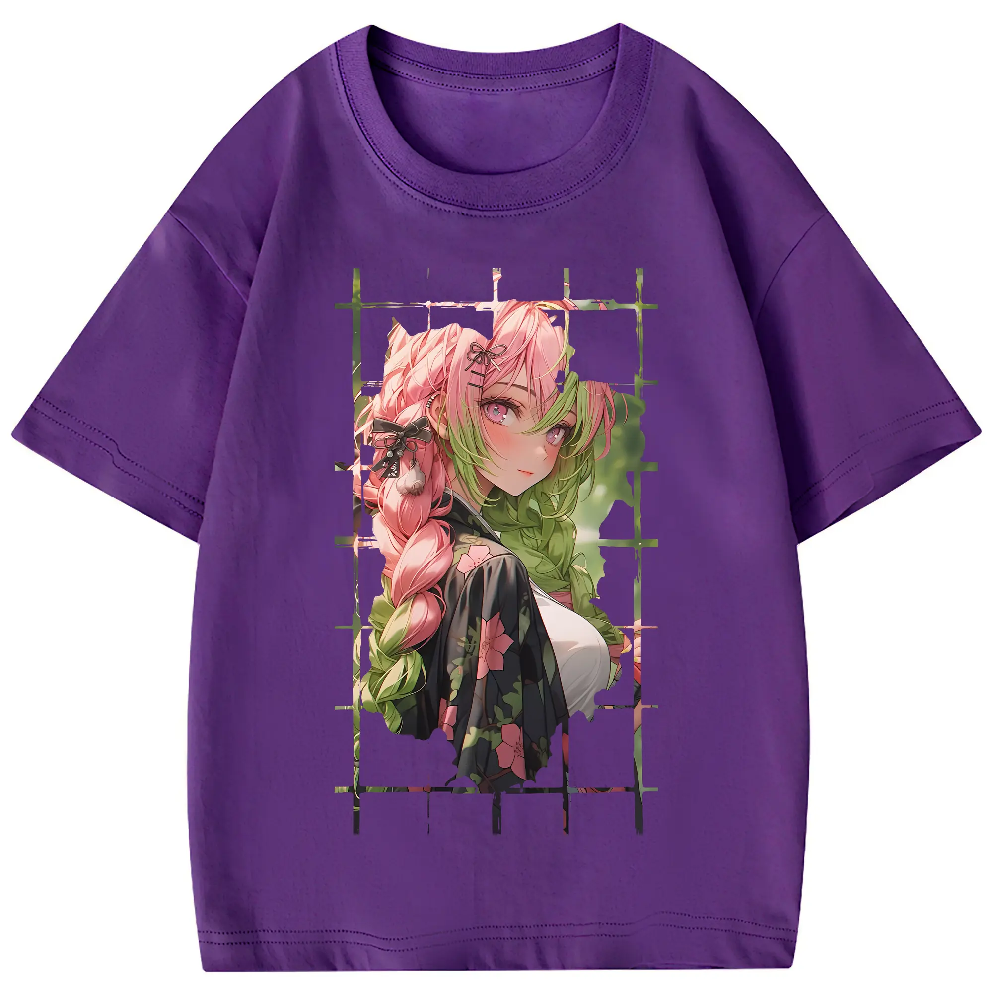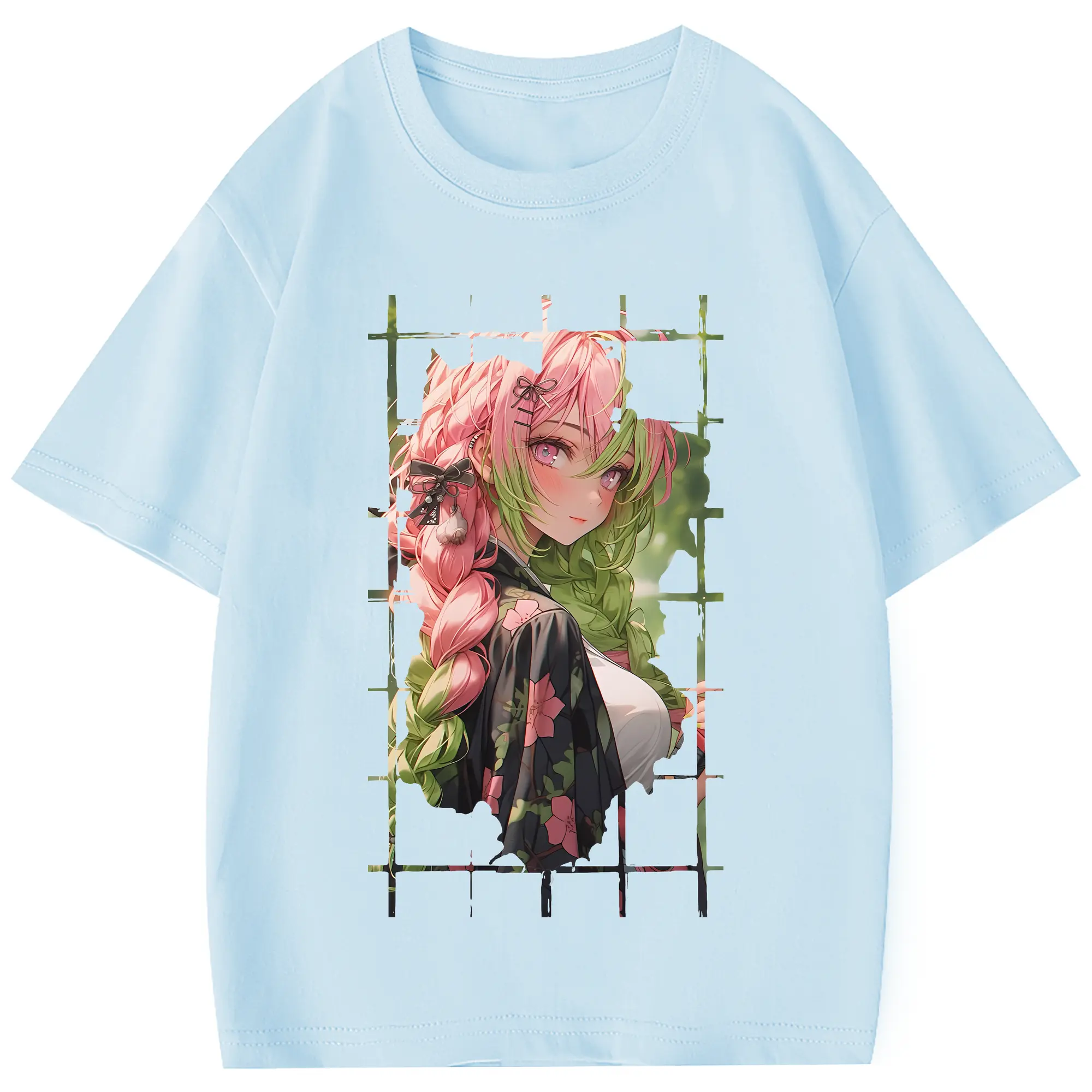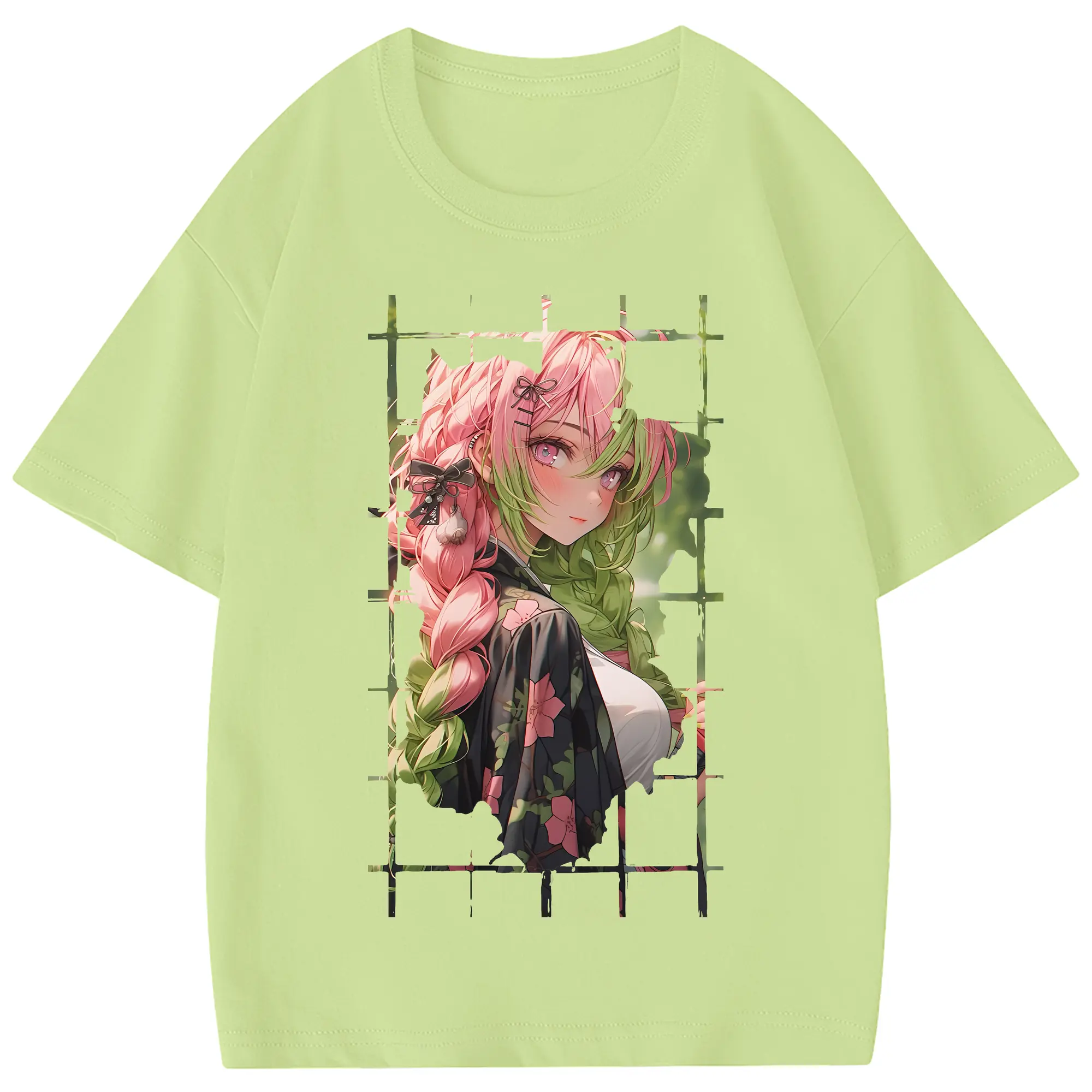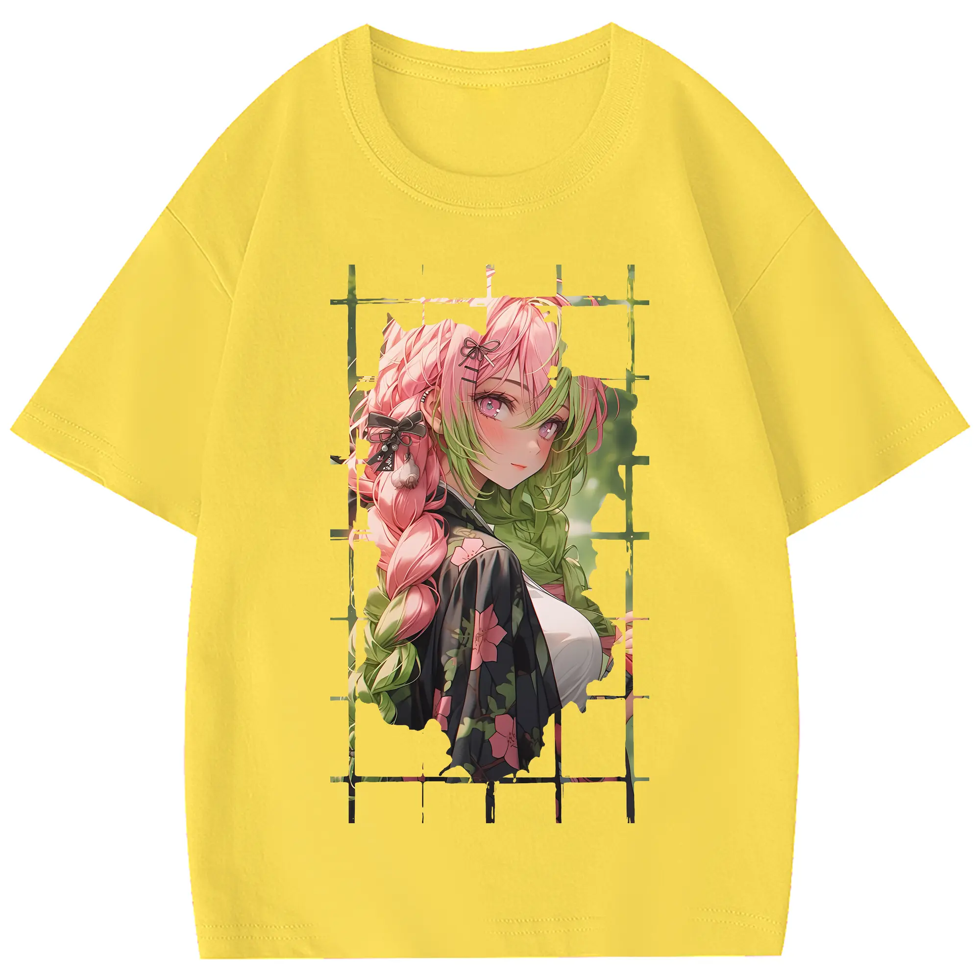 鬼滅の刃 グッズ,甘露寺 蜜璃 - 綿100% 半袖Tシャツ ・ フロントプリント ・ 快適 通気性 ・ 日常使い 散歩 スポーツ用