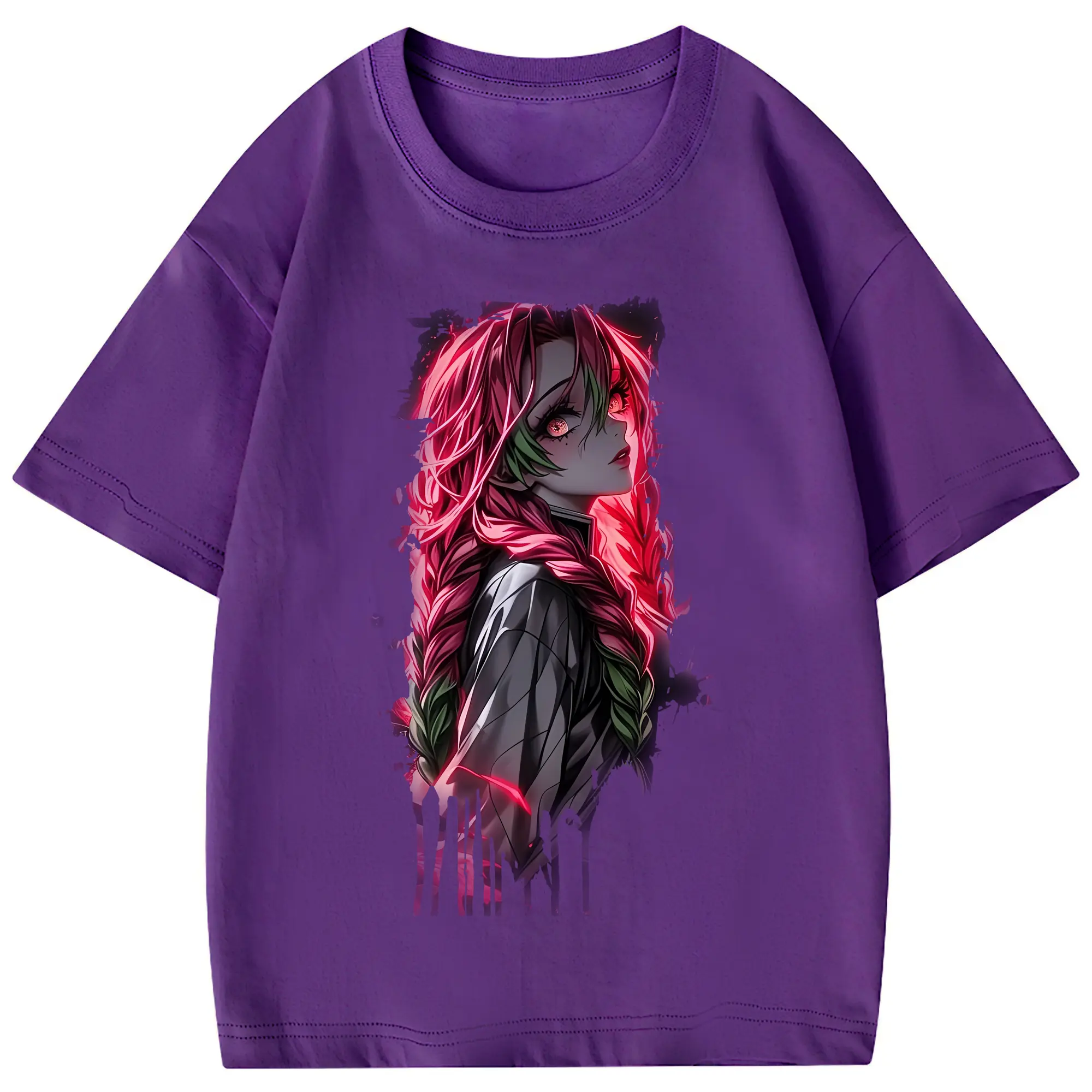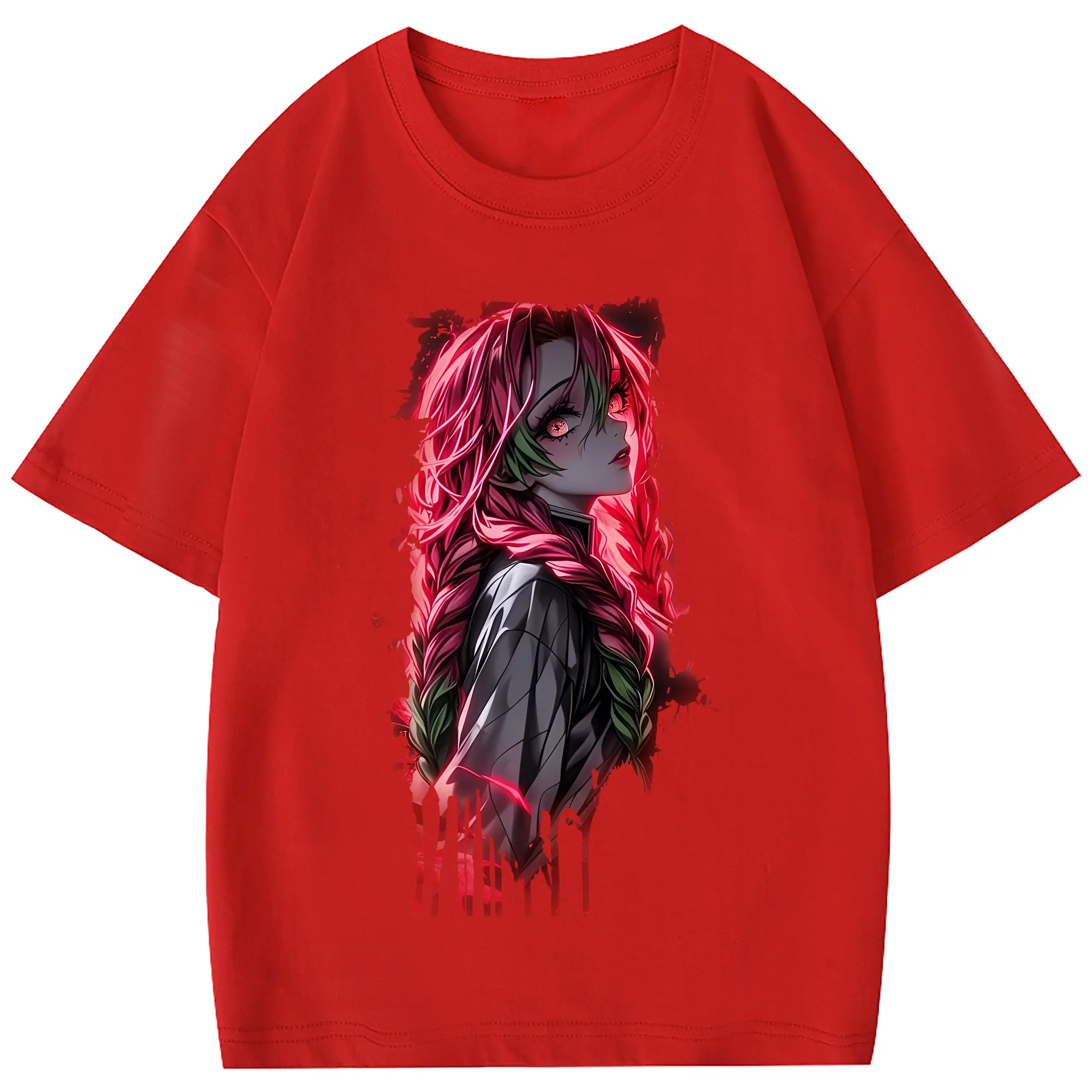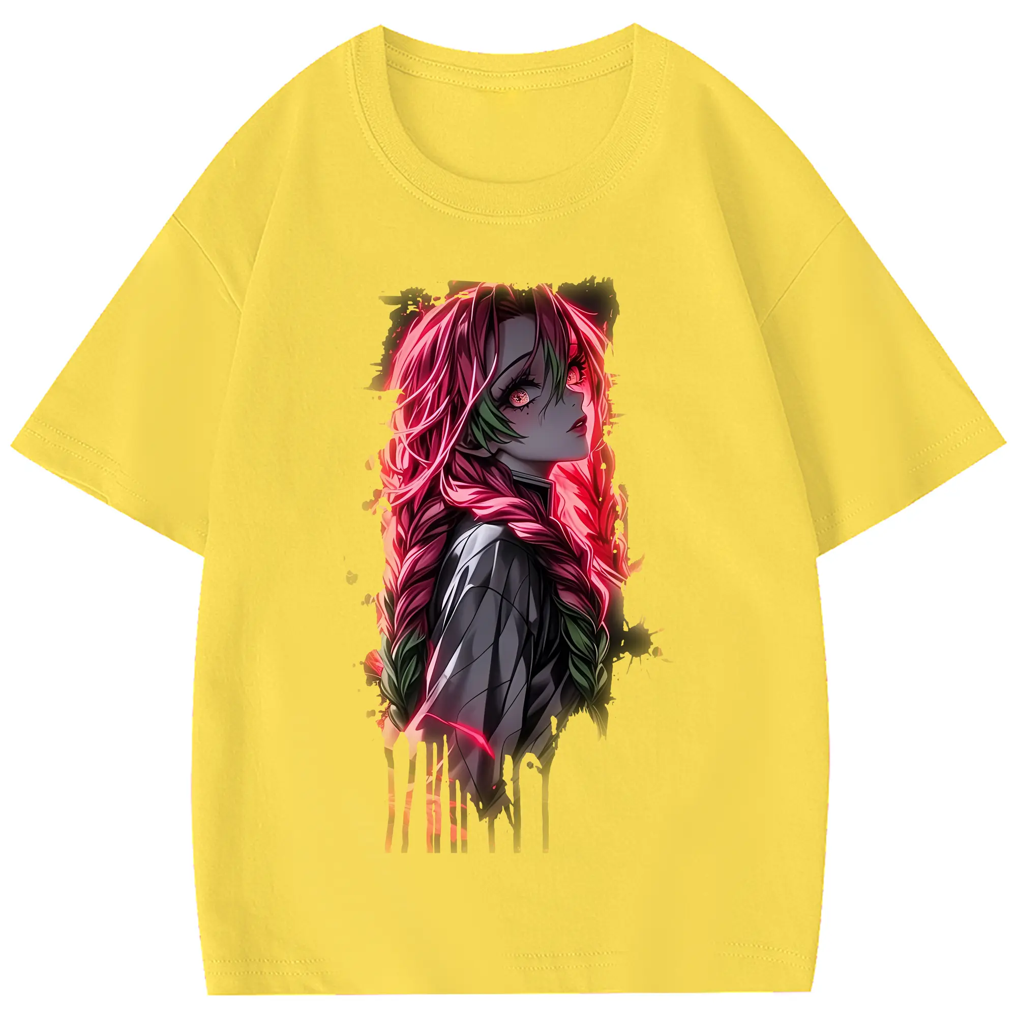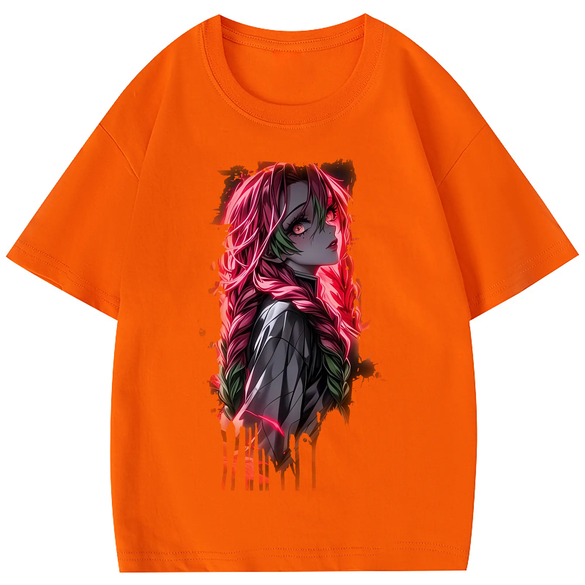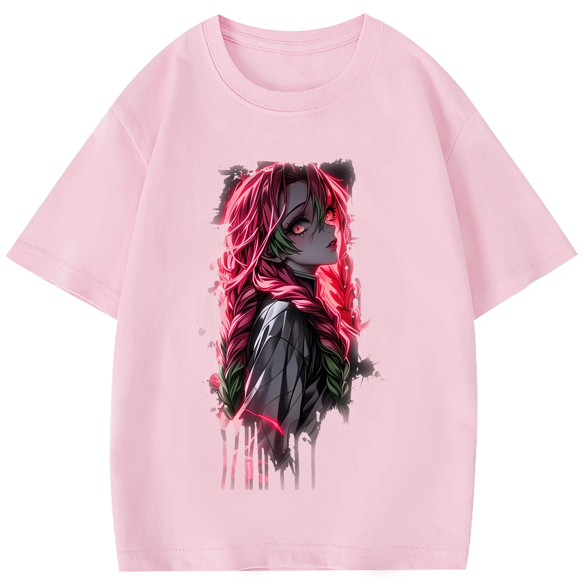 鬼滅の刃 グッズ,甘露寺 蜜璃 - 綿100% 半袖Tシャツ ・ フロントプリント ・ 快適 通気性 ・ 日常使い 散歩 スポーツ用
