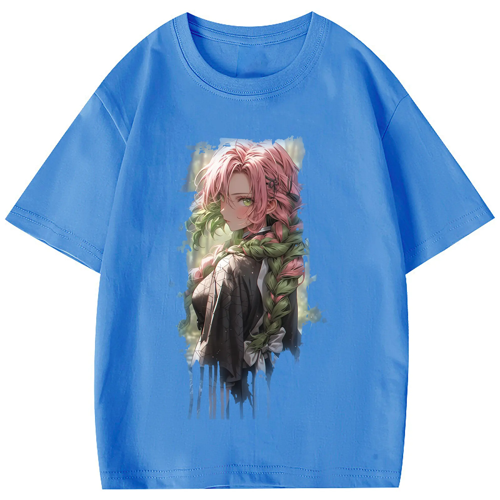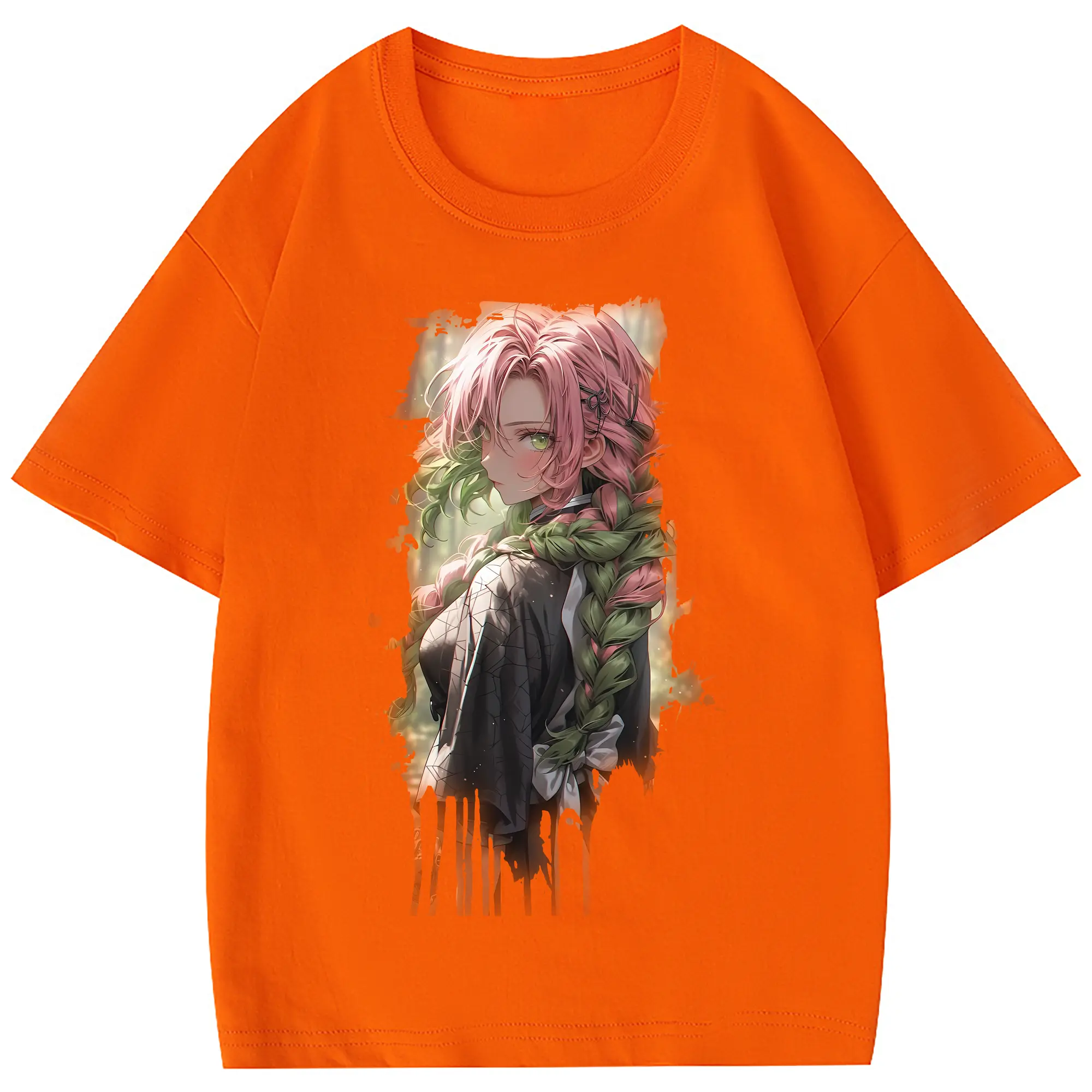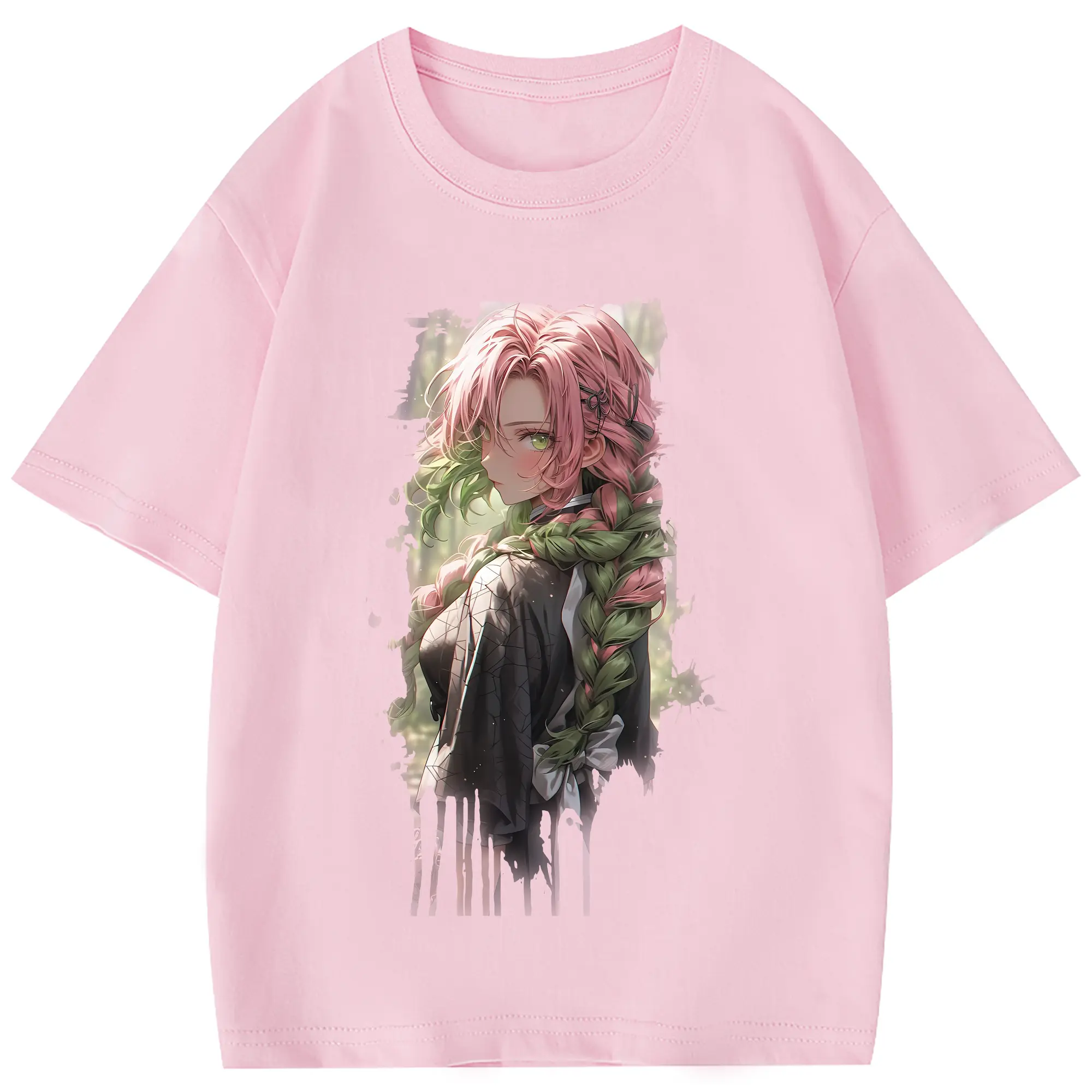鬼滅の刃 グッズ,甘露寺 蜜璃 - 綿100% 半袖Tシャツ ・ フロントプリント ・ 快適 通気性 ・ 日常使い 散歩 スポーツ用