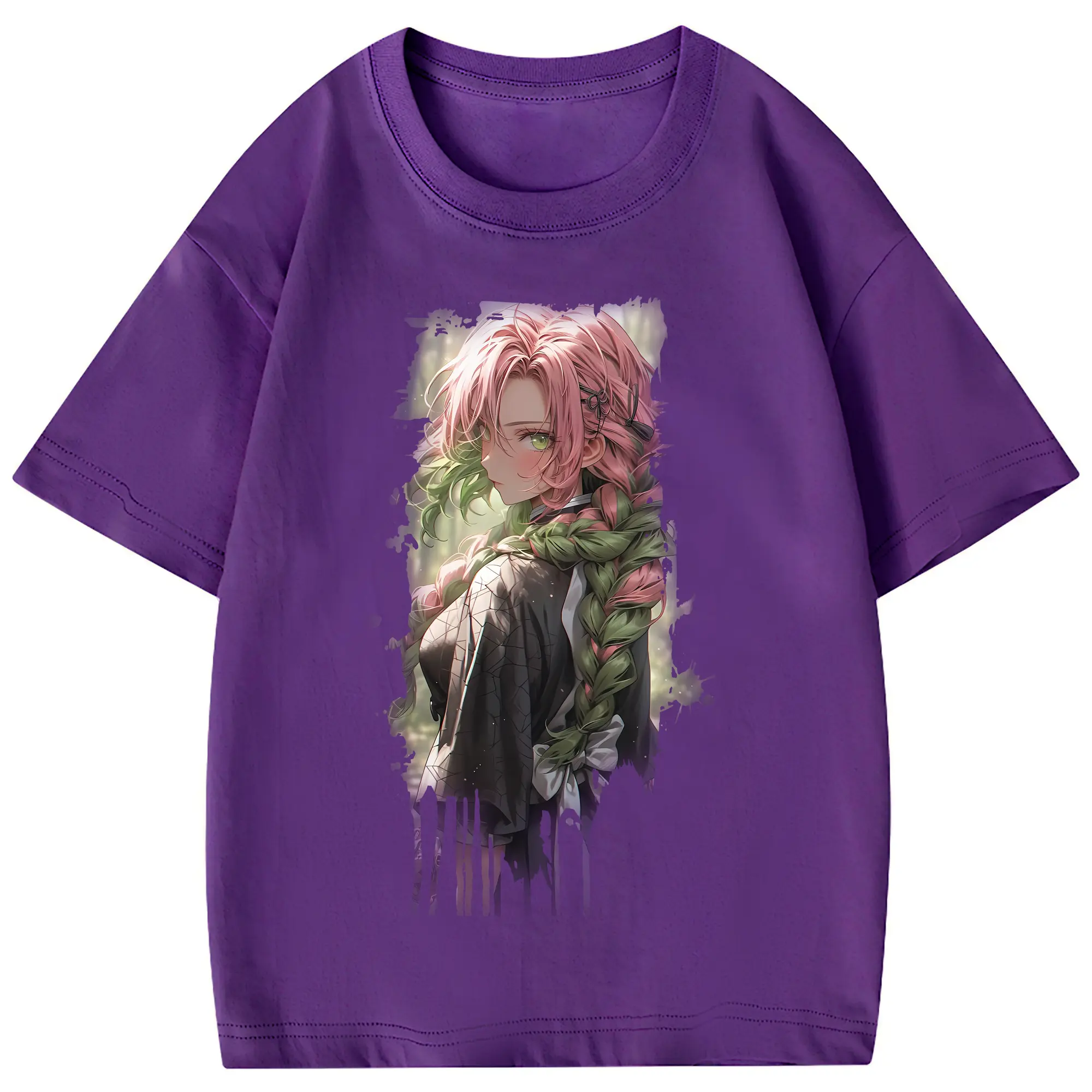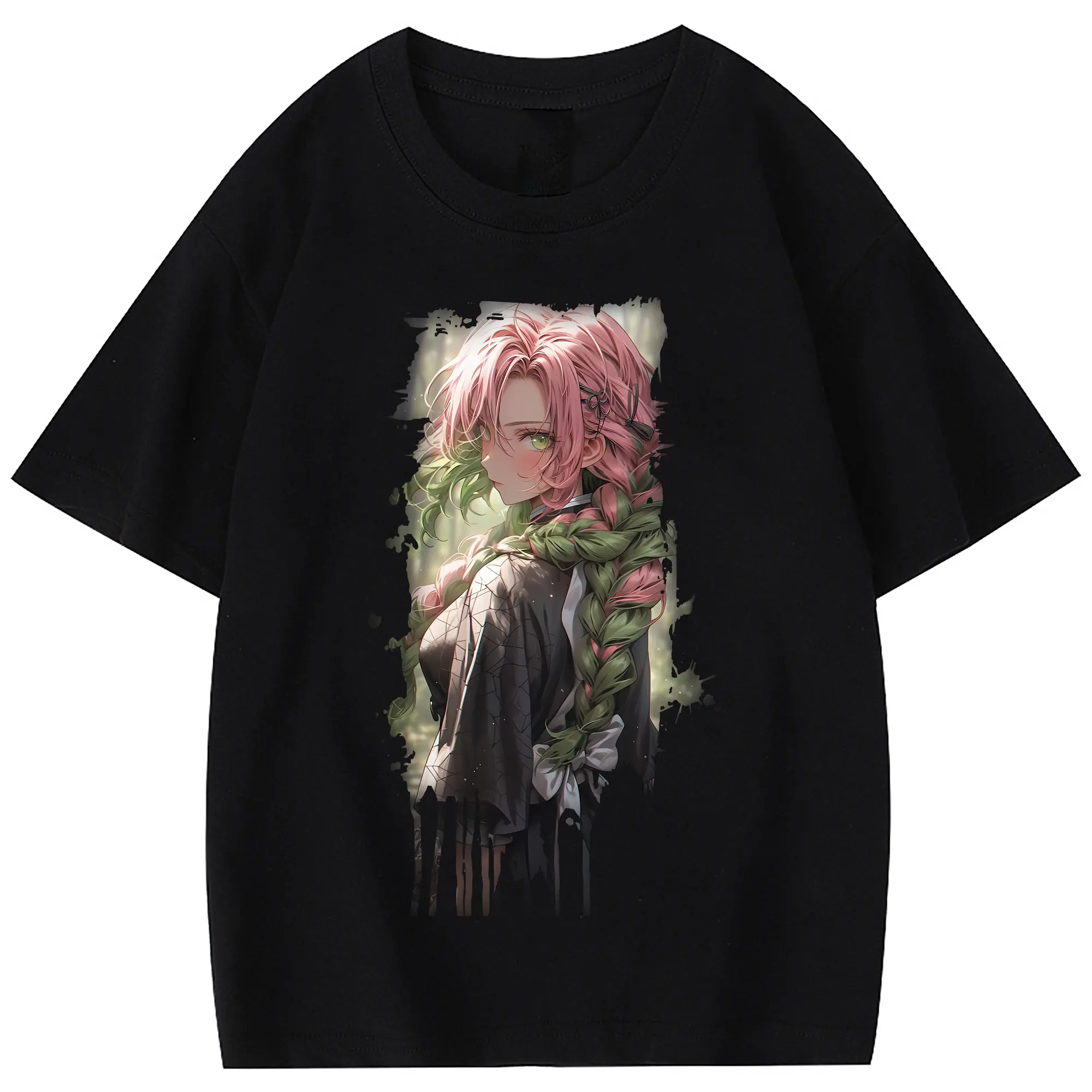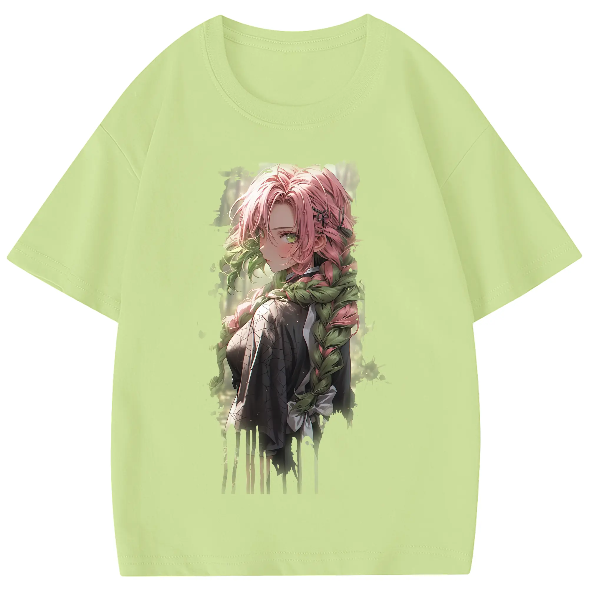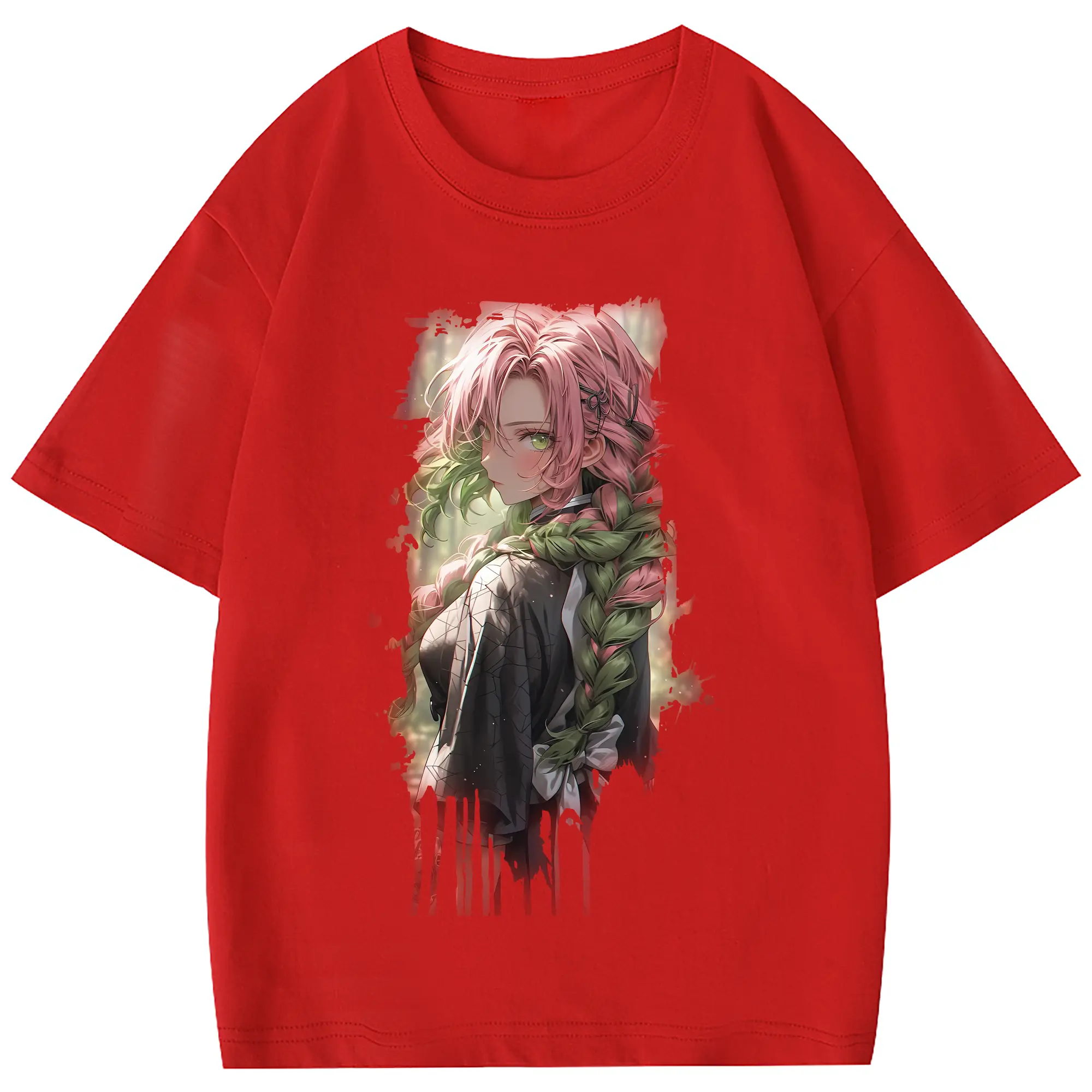 鬼滅の刃 グッズ,甘露寺 蜜璃 - 綿100% 半袖Tシャツ ・ フロントプリント ・ 快適 通気性 ・ 日常使い 散歩 スポーツ用