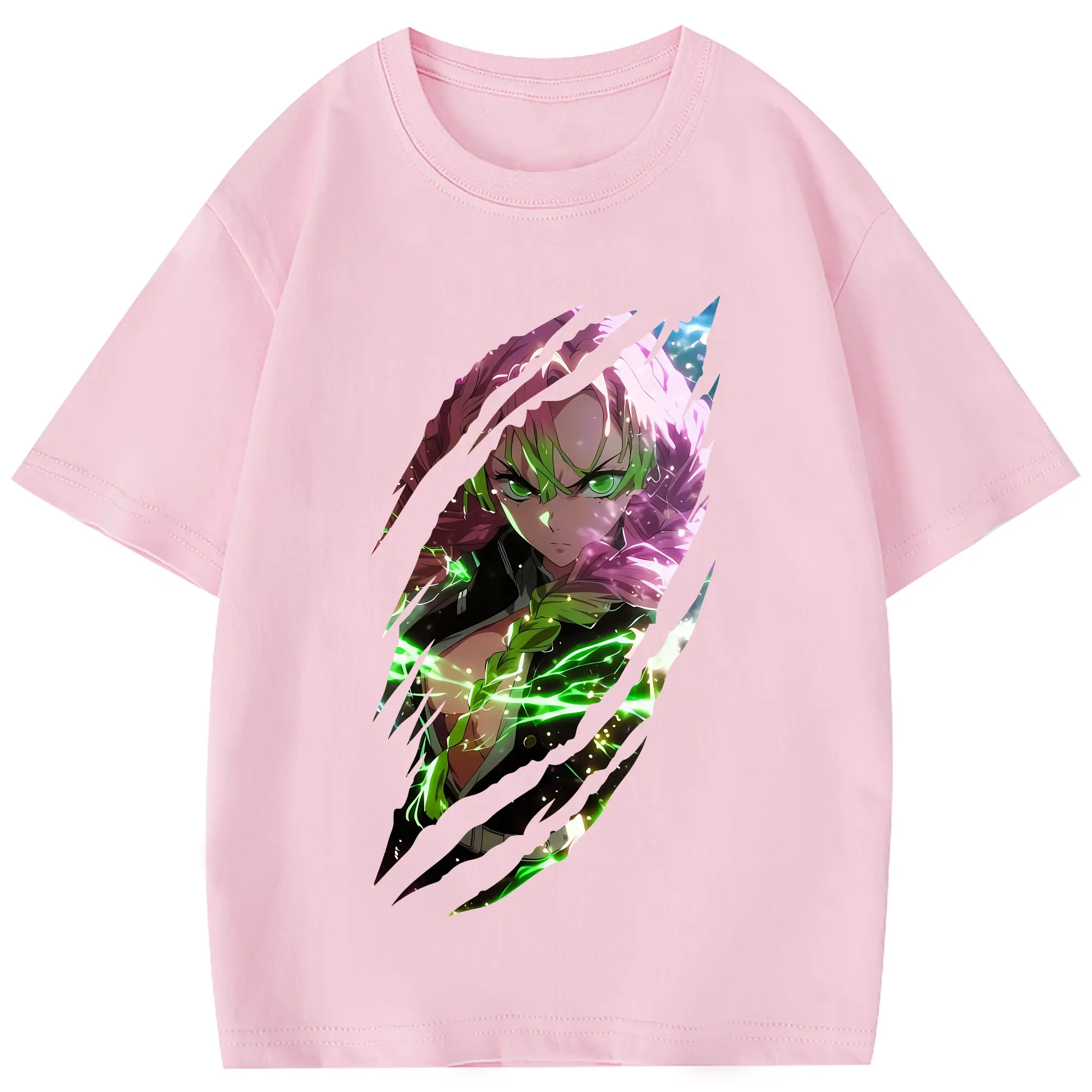 鬼滅の刃 グッズ,甘露寺 蜜璃 - 綿100% 半袖Tシャツ ・ フロントプリント ・ 快適 通気性 ・ 日常使い 散歩 スポーツ用