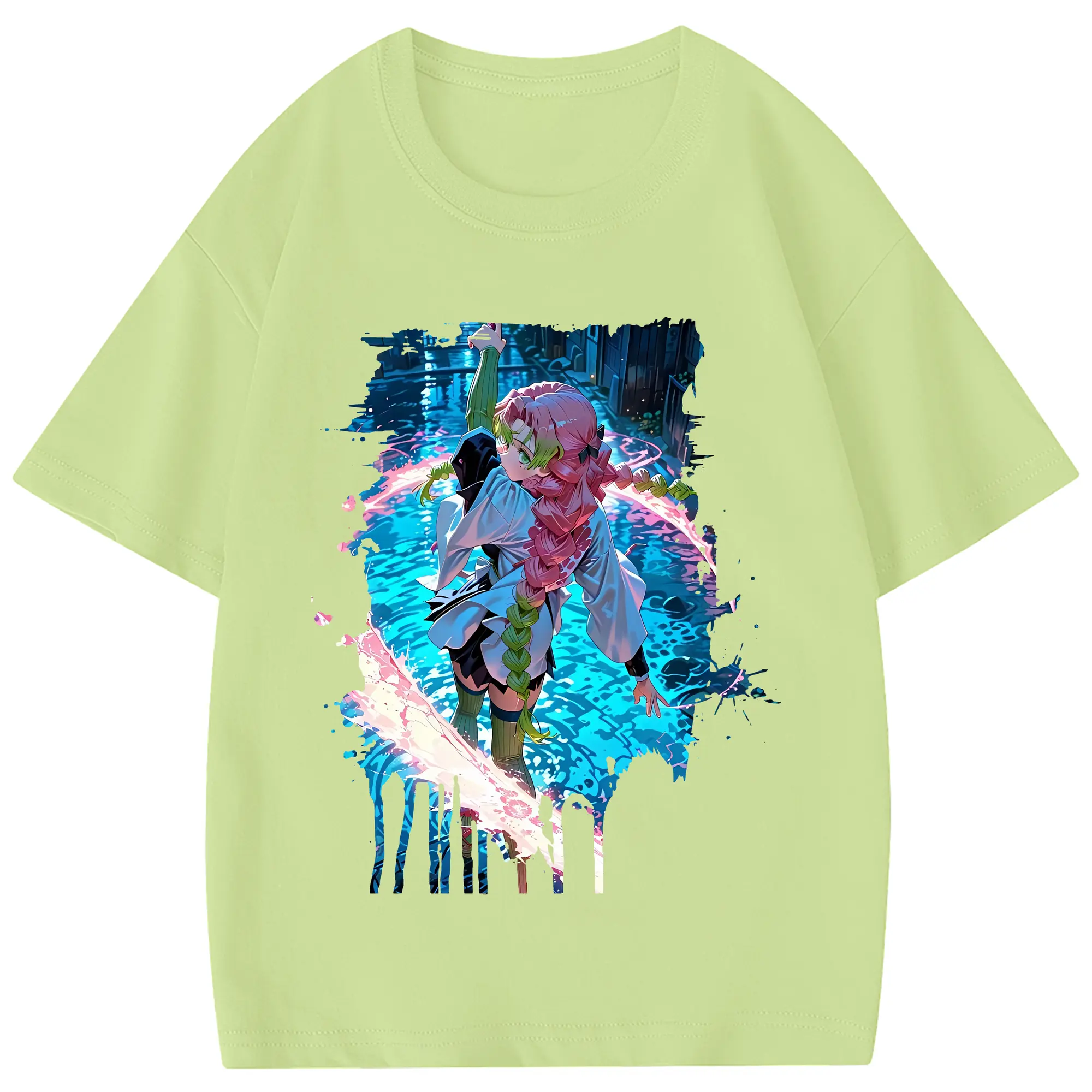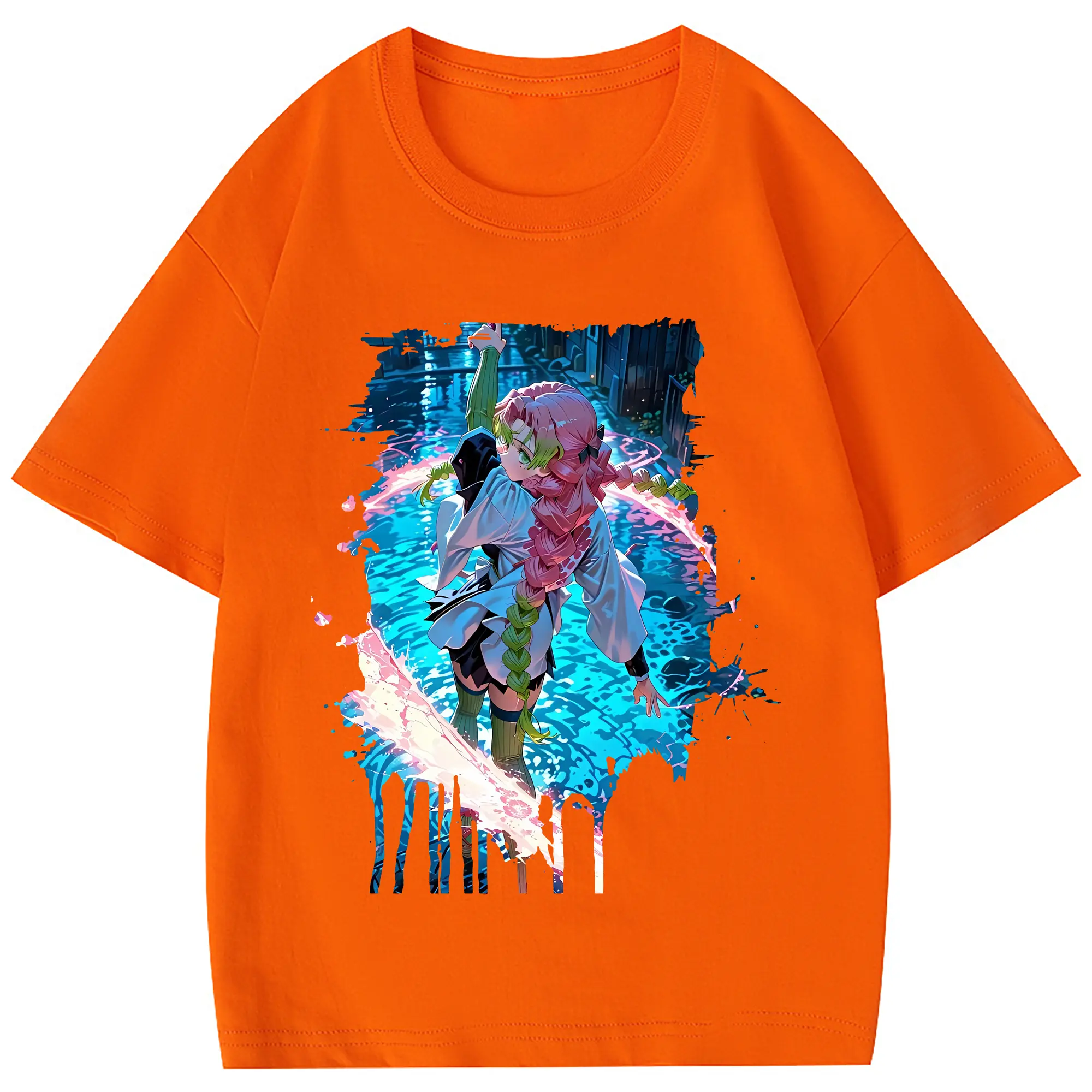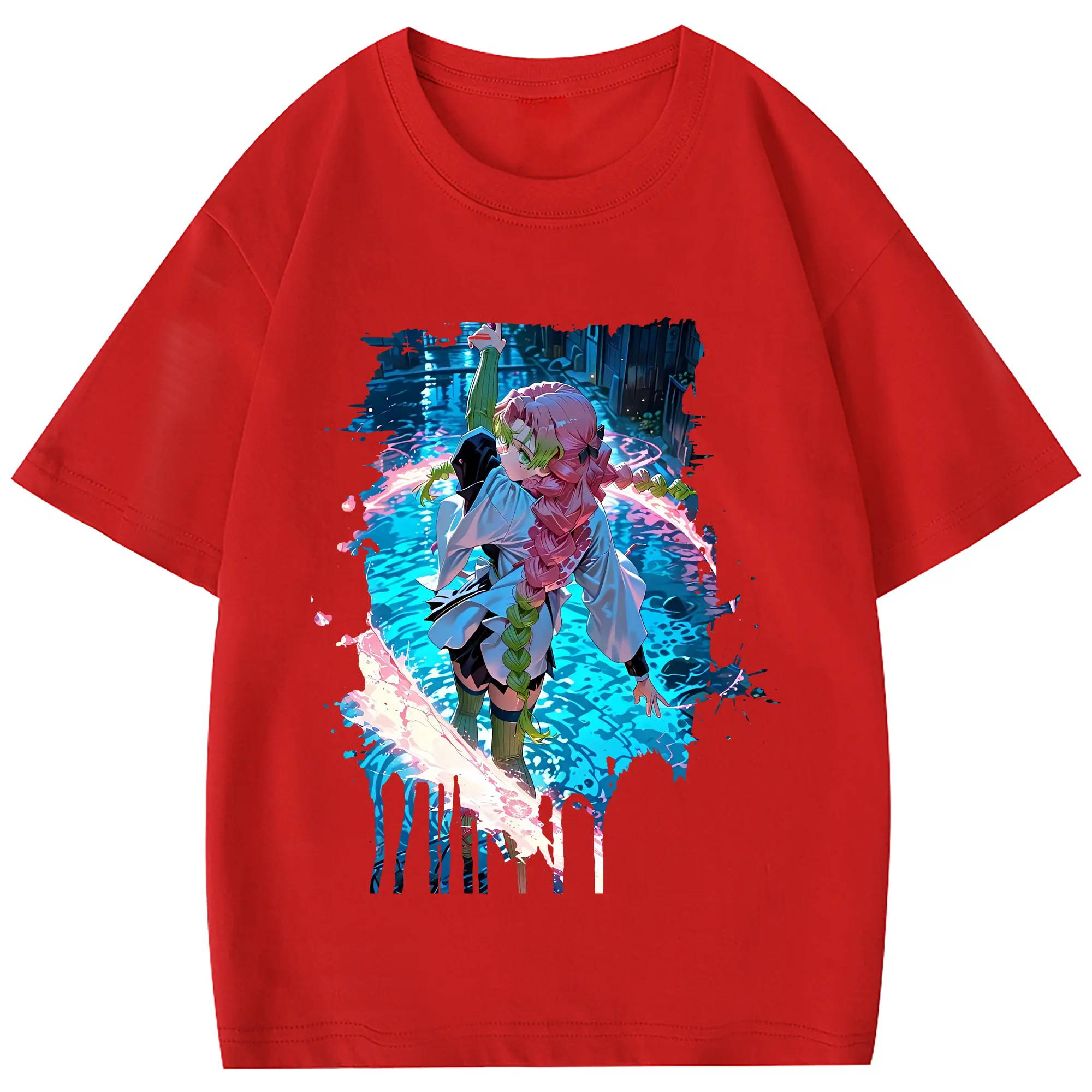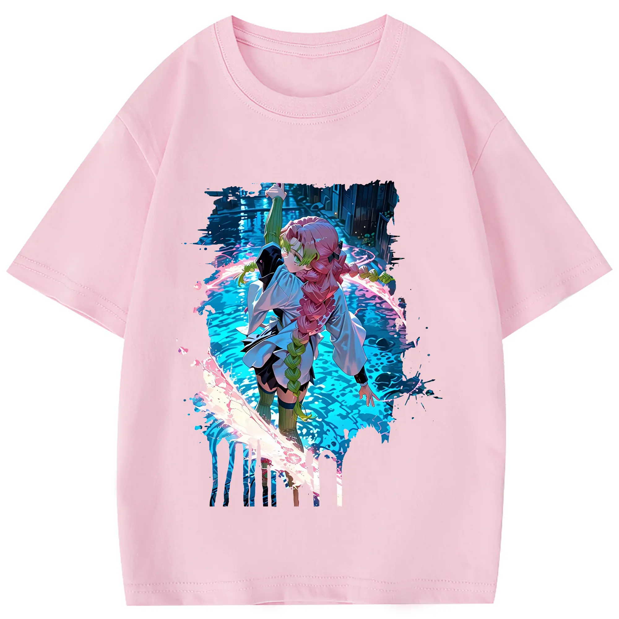 鬼滅の刃 グッズ,甘露寺 蜜璃 - 綿100% 半袖Tシャツ ・ フロントプリント ・ 快適 通気性 ・ 日常使い 散歩 スポーツ用