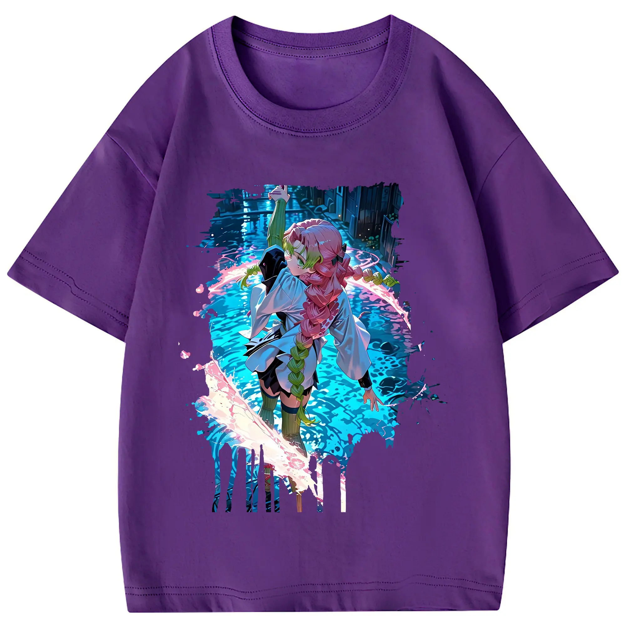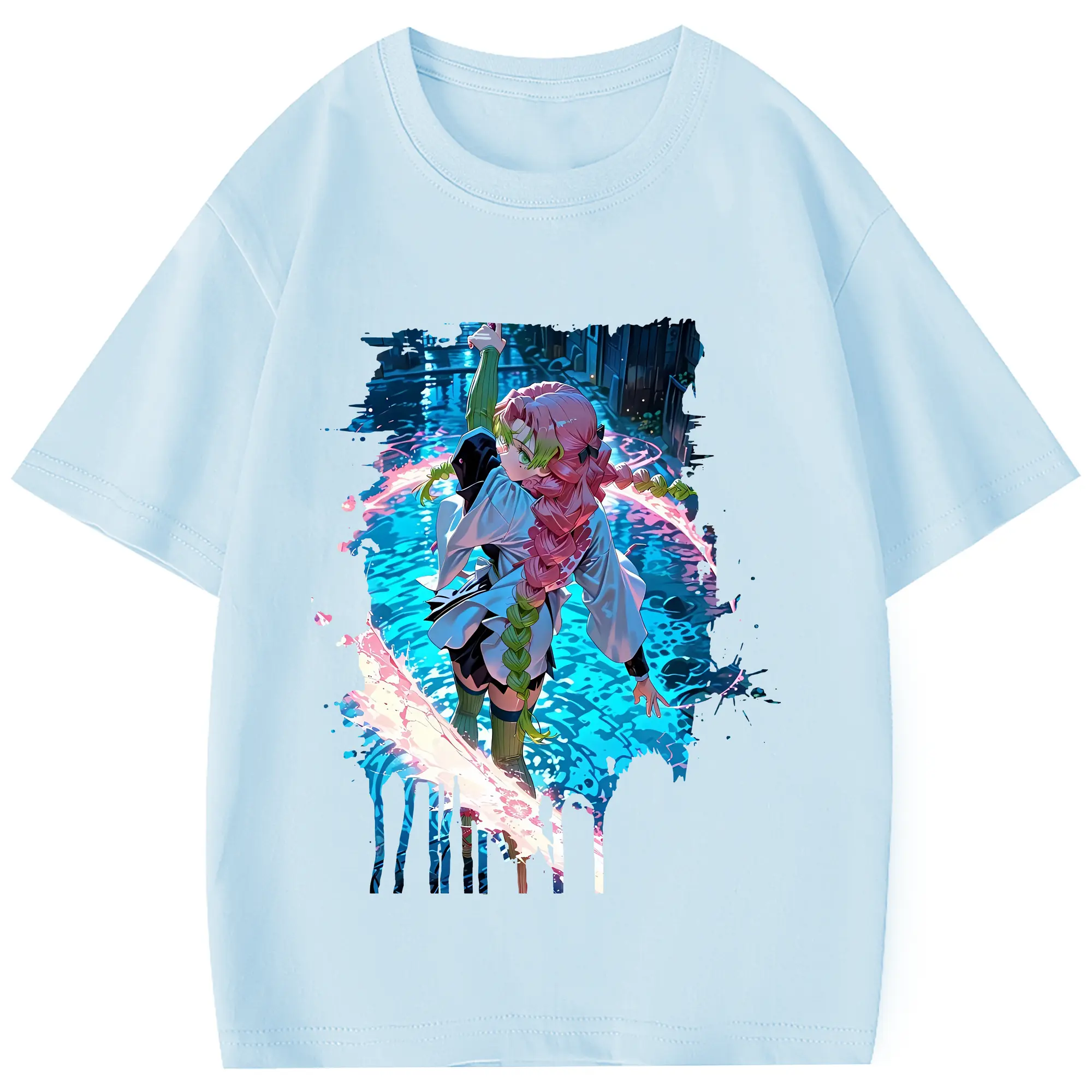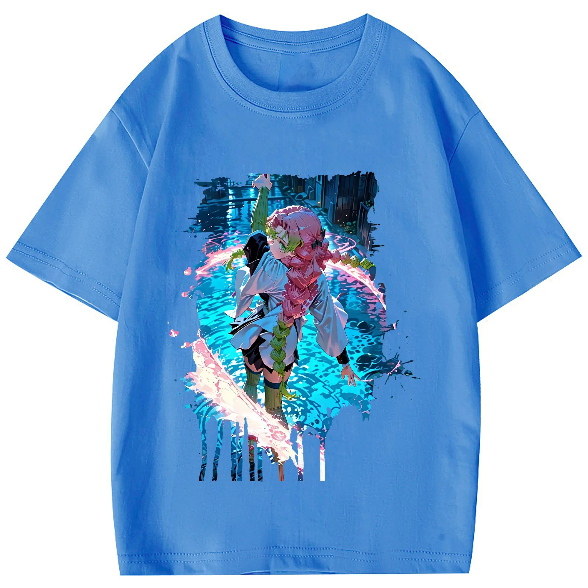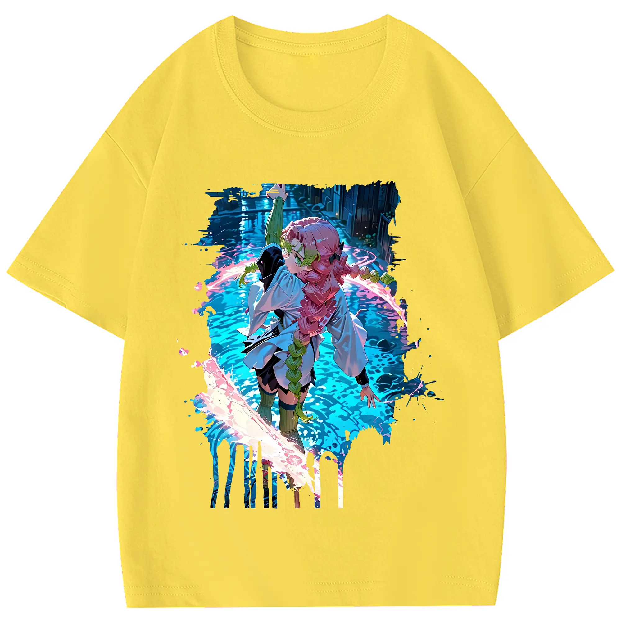 鬼滅の刃 グッズ,甘露寺 蜜璃 - 綿100% 半袖Tシャツ ・ フロントプリント ・ 快適 通気性 ・ 日常使い 散歩 スポーツ用