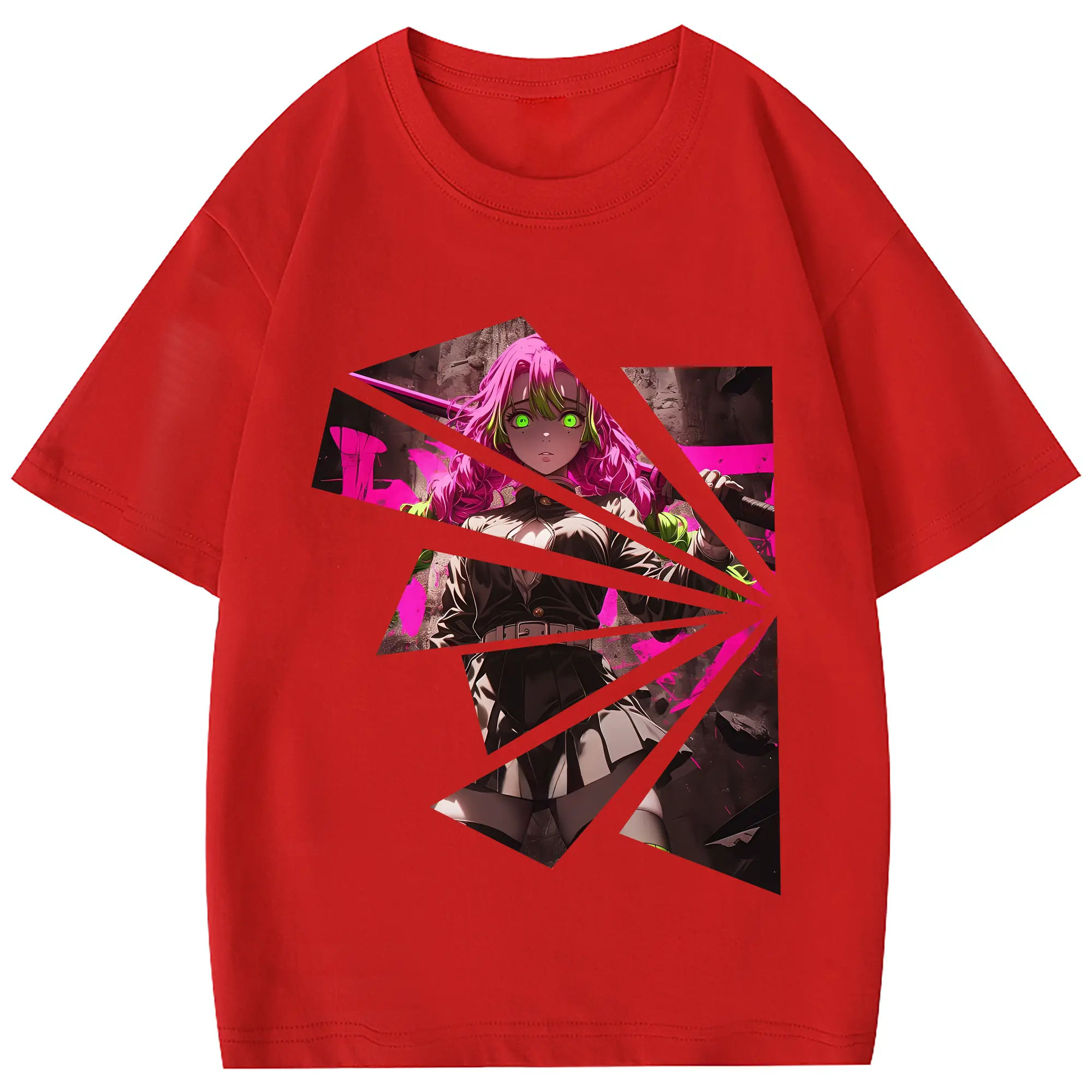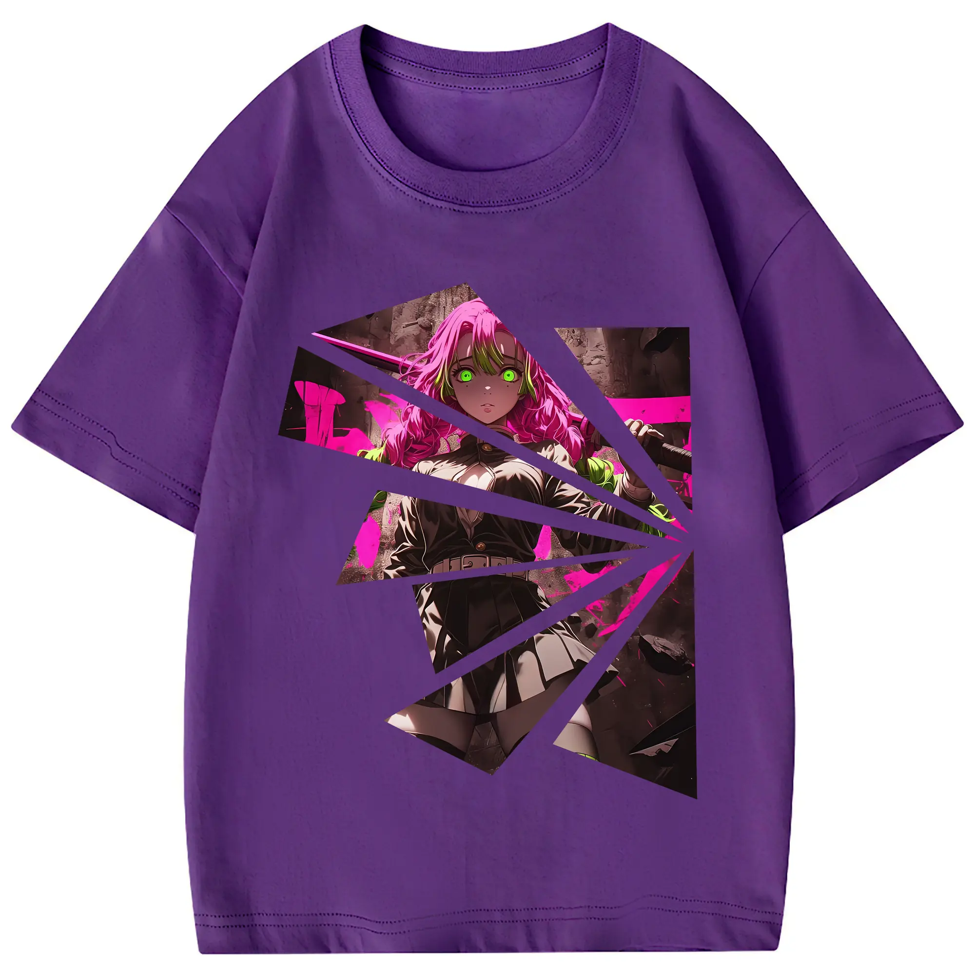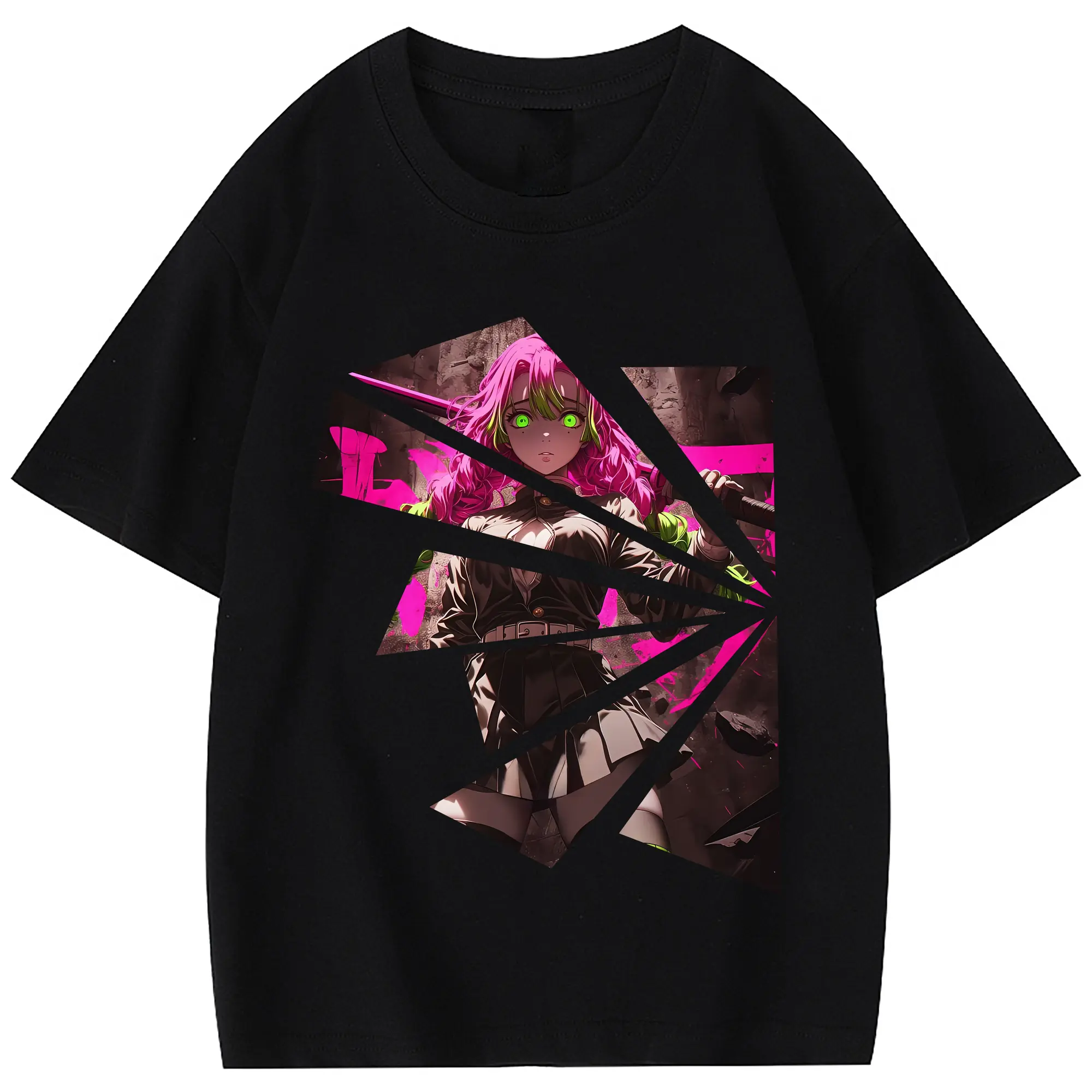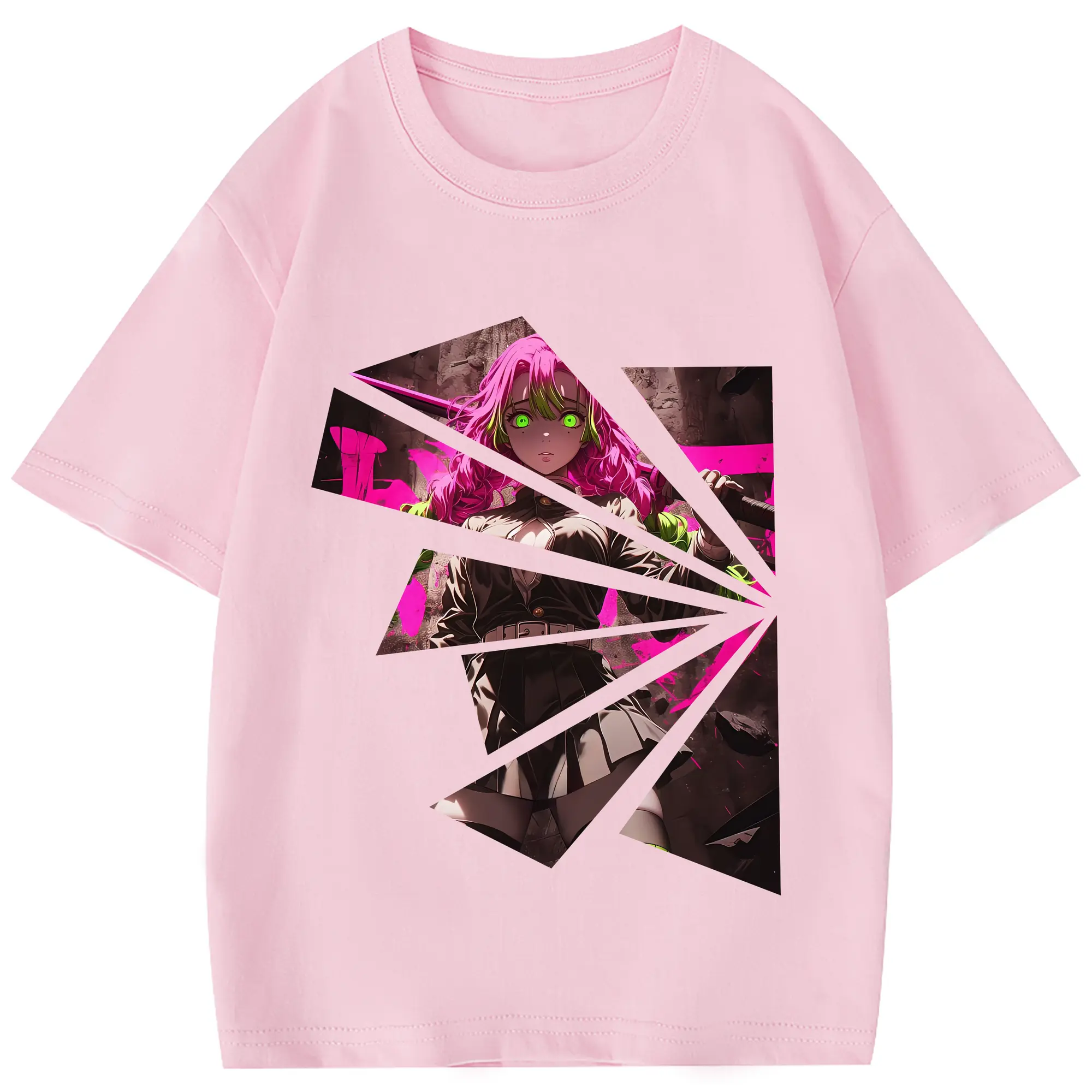 鬼滅の刃 グッズ,甘露寺 蜜璃 - 綿100% 半袖Tシャツ ・ フロントプリント ・ 快適 通気性 ・ 日常使い 散歩 スポーツ用