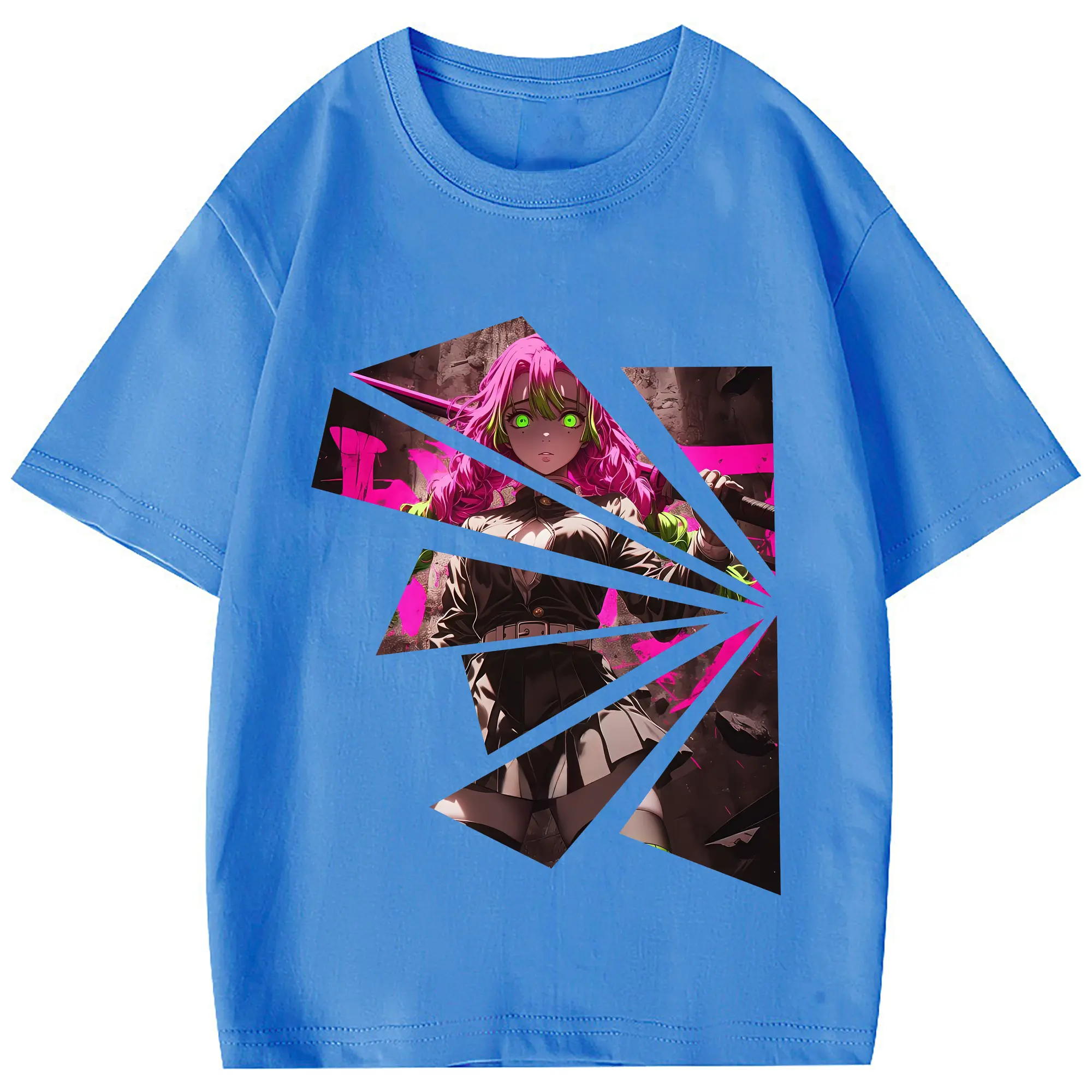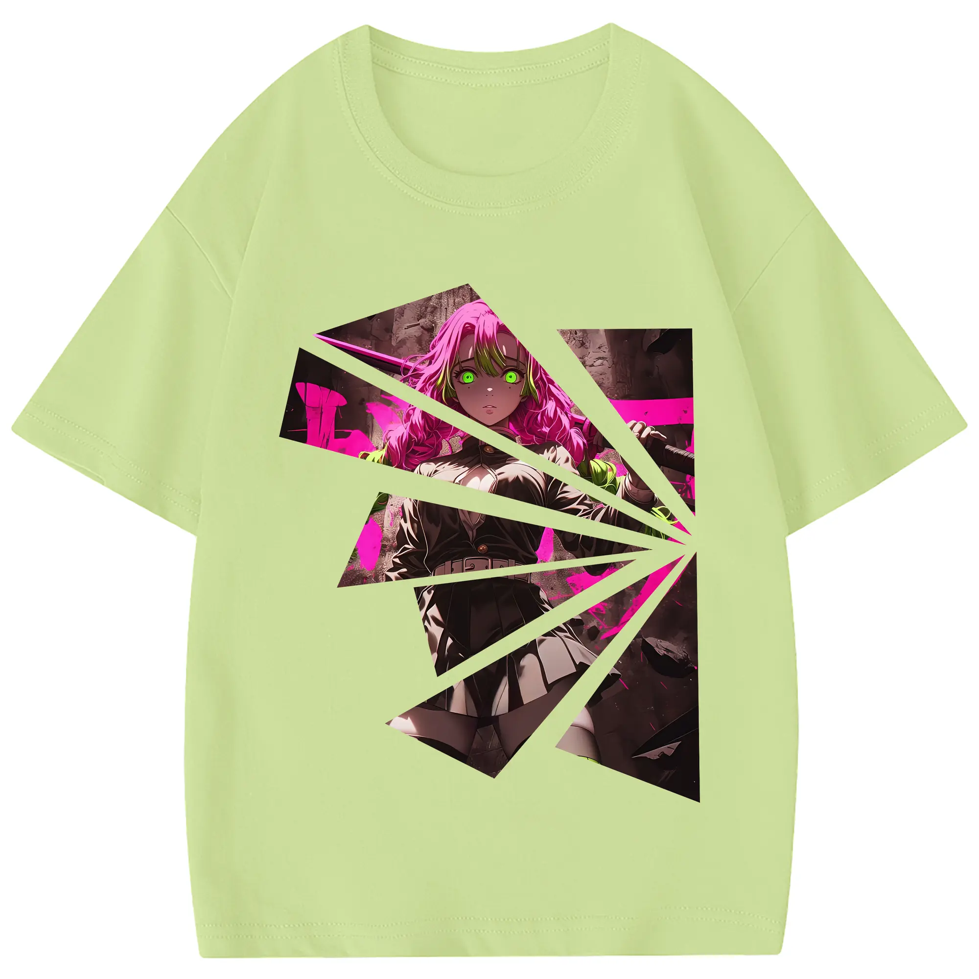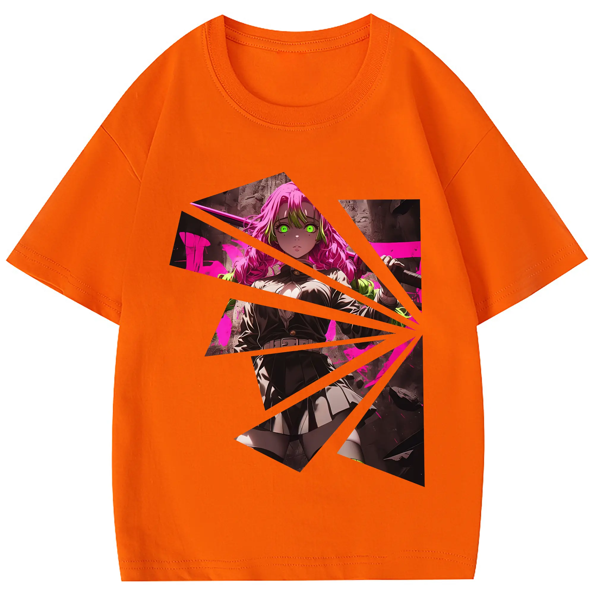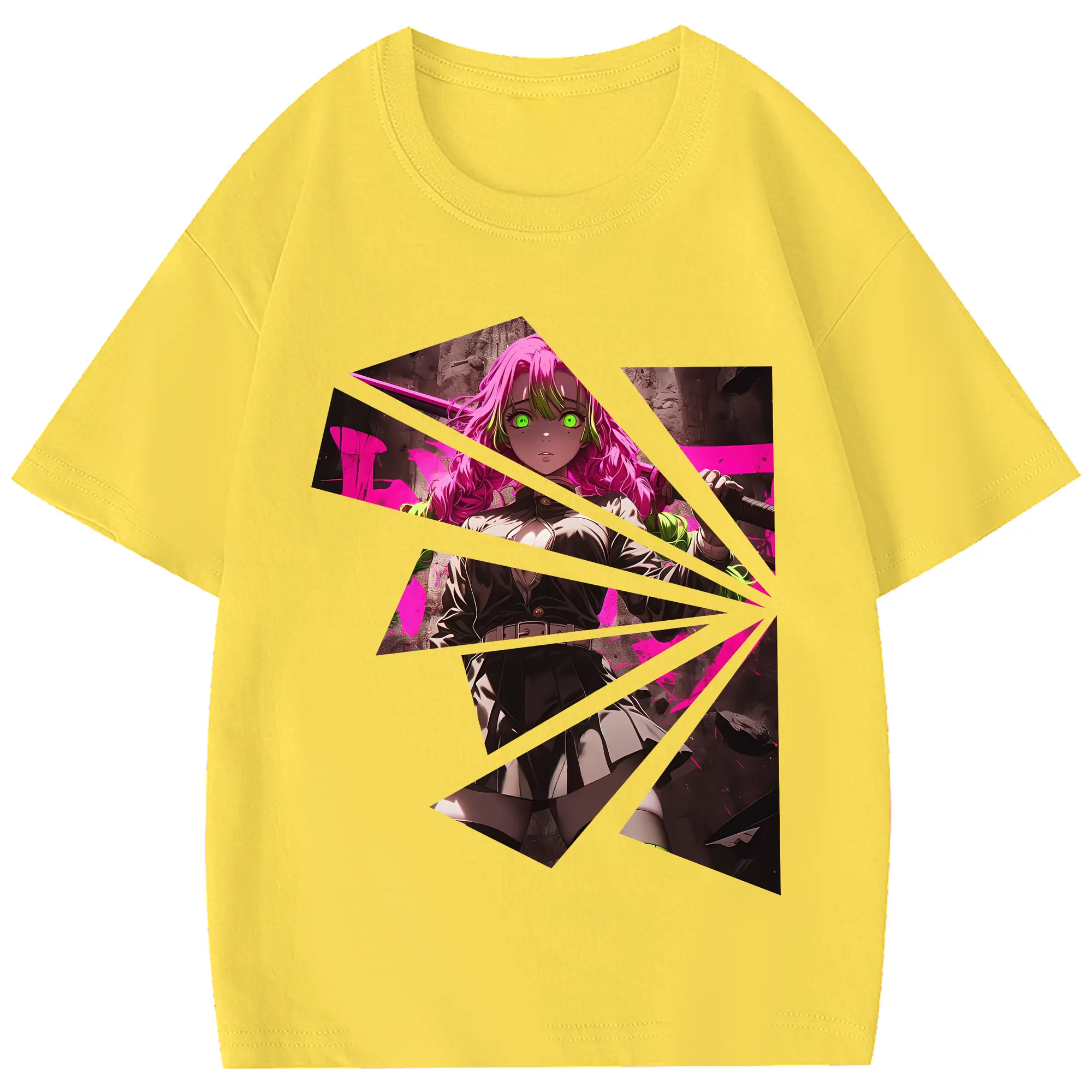 鬼滅の刃 グッズ,甘露寺 蜜璃 - 綿100% 半袖Tシャツ ・ フロントプリント ・ 快適 通気性 ・ 日常使い 散歩 スポーツ用