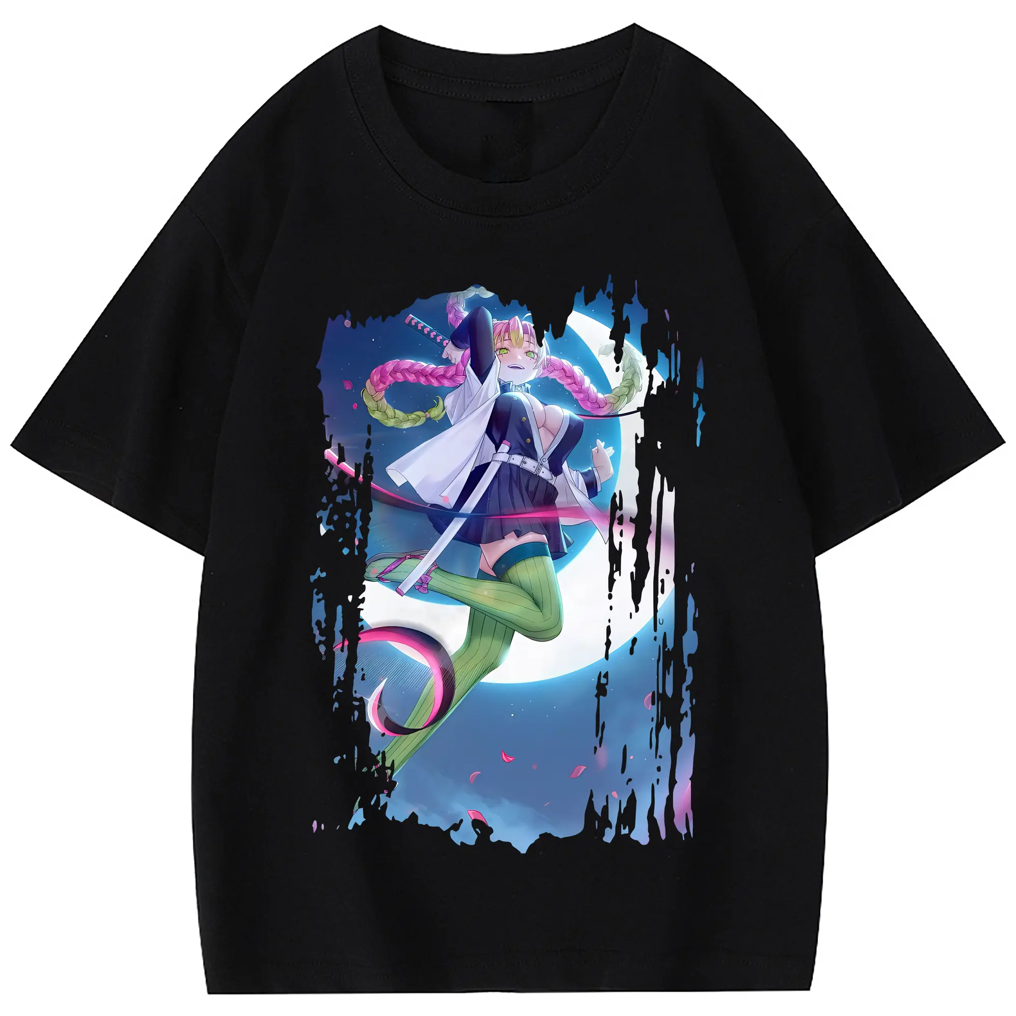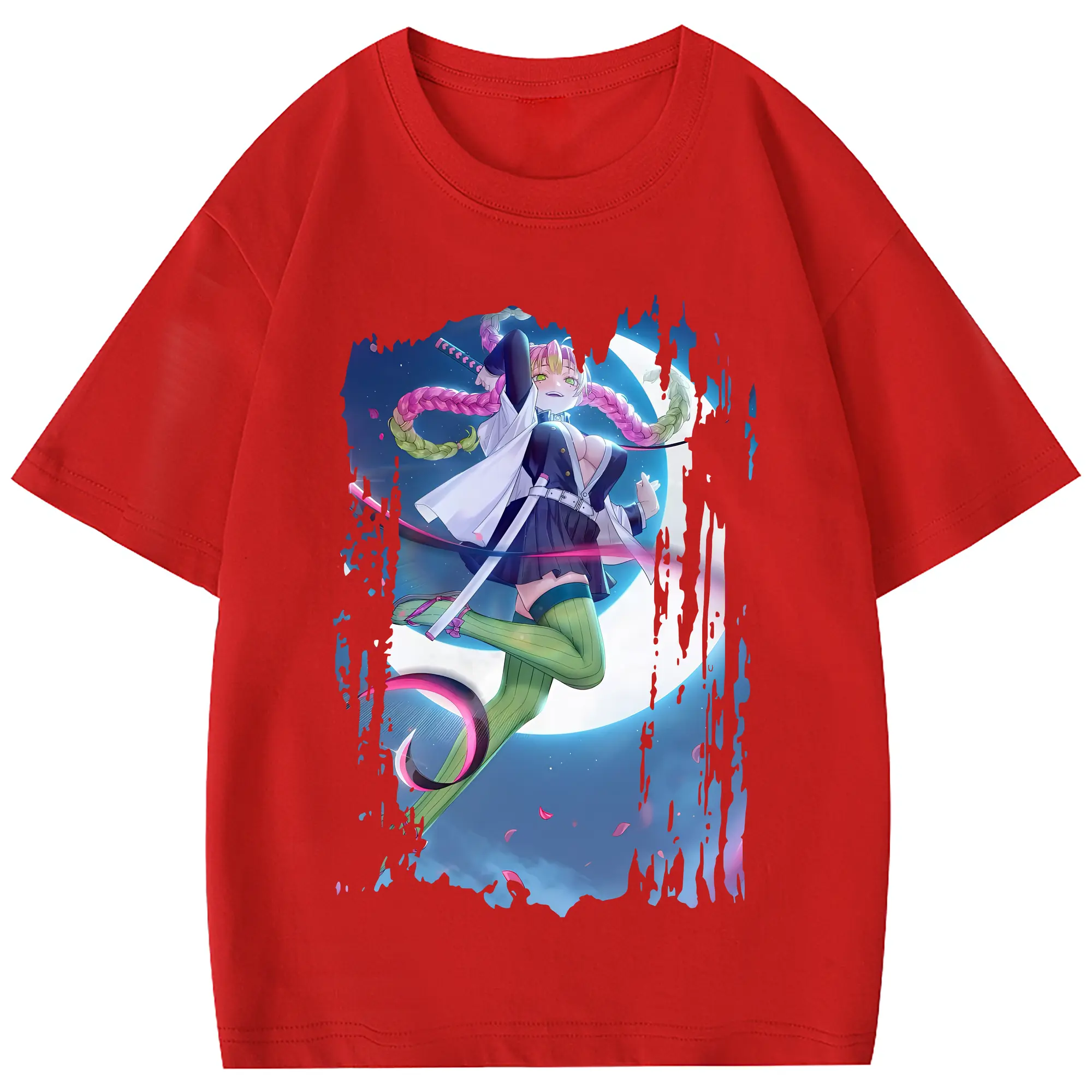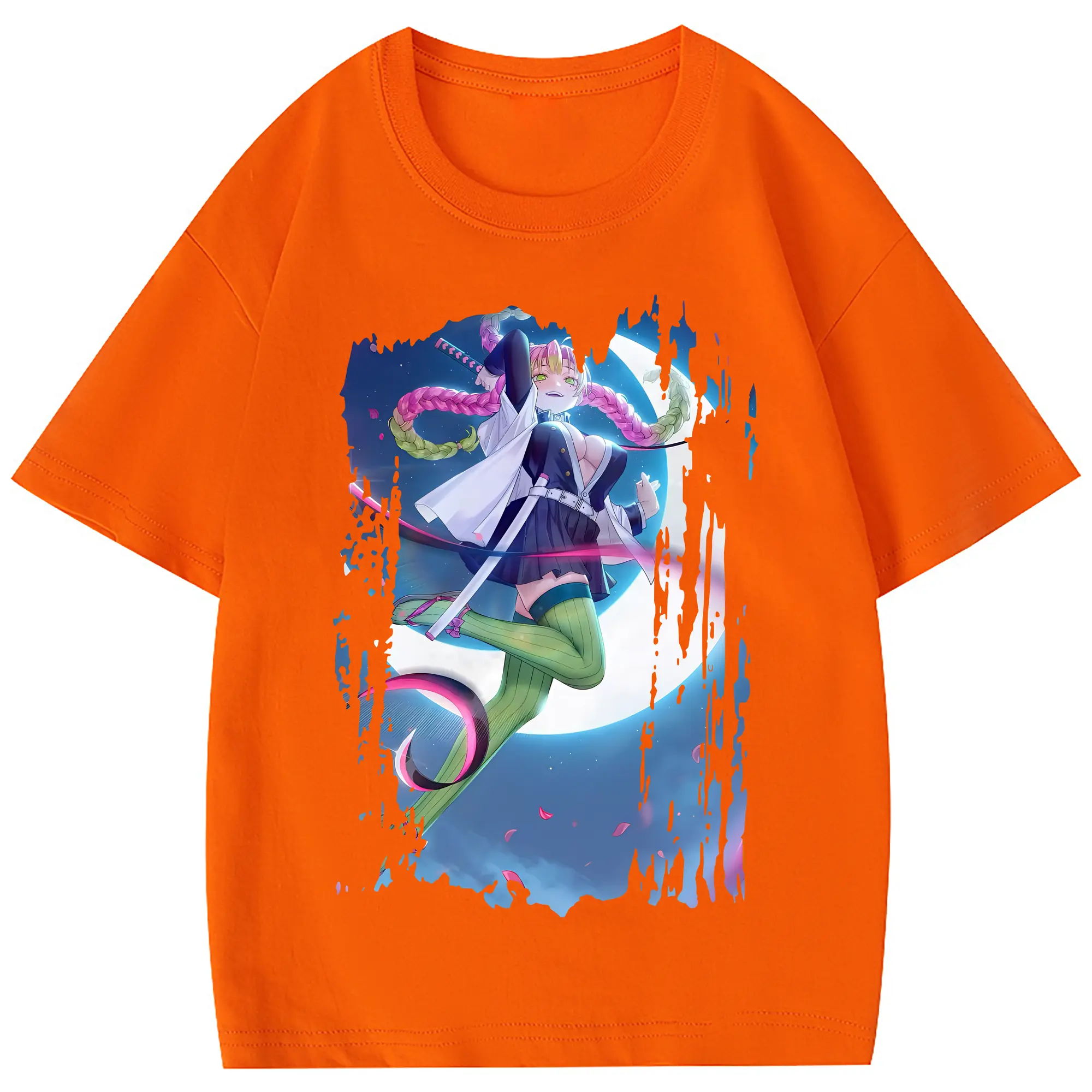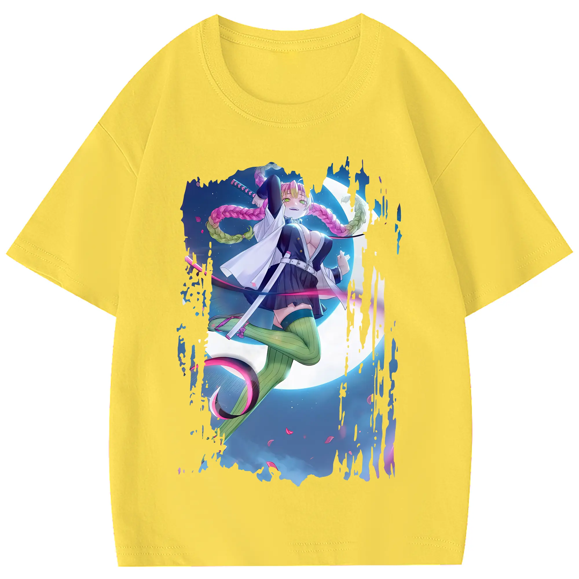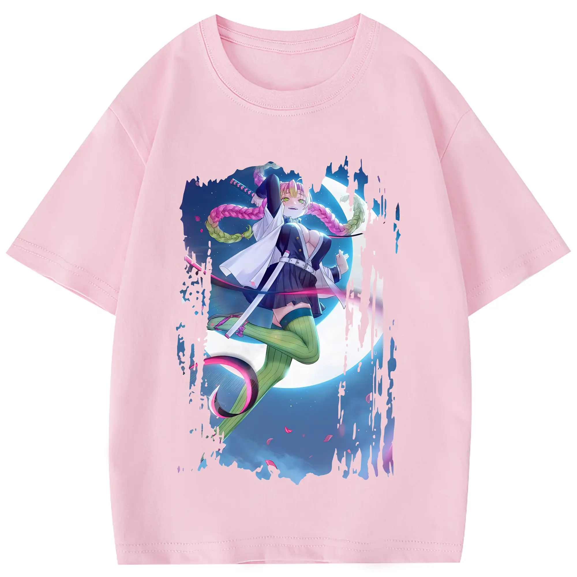 鬼滅の刃 グッズ,甘露寺 蜜璃 - 綿100% 半袖Tシャツ ・ フロントプリント ・ 快適 通気性 ・ 日常使い 散歩 スポーツ用