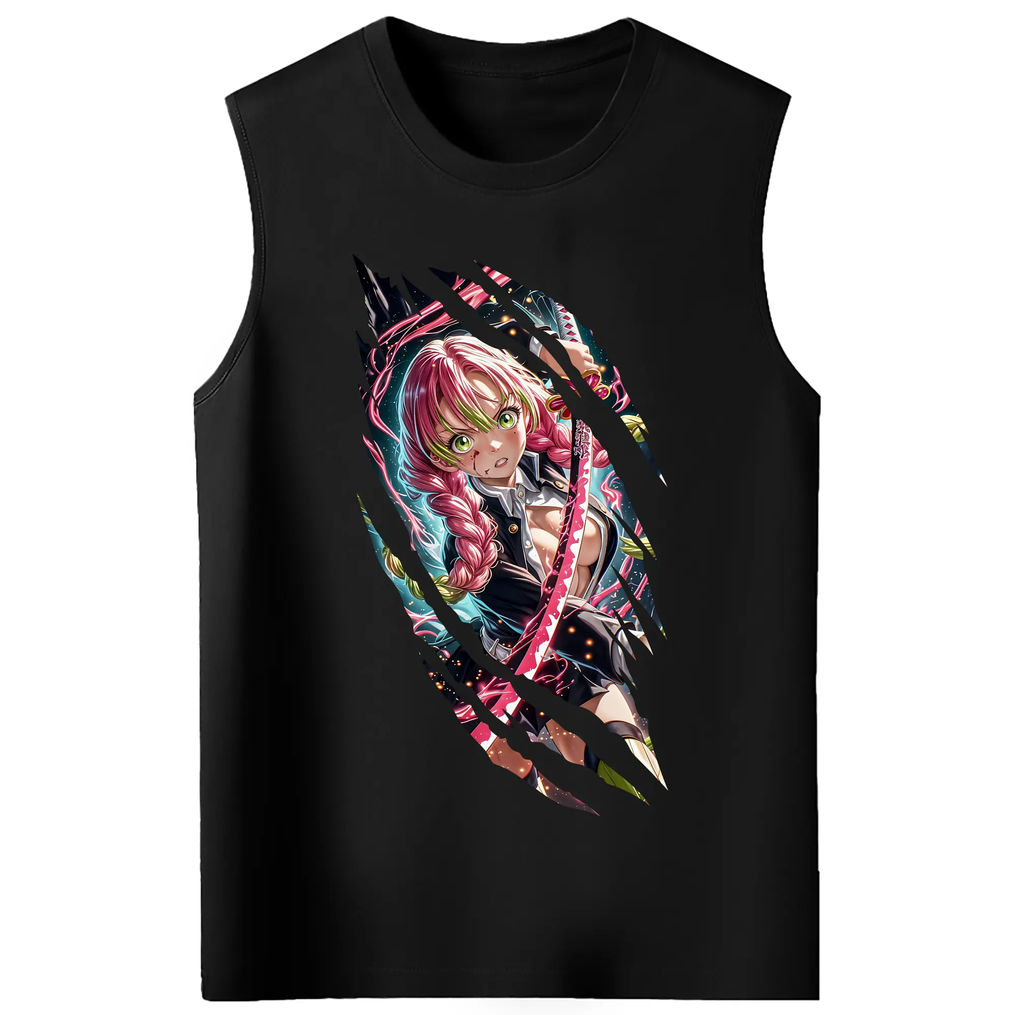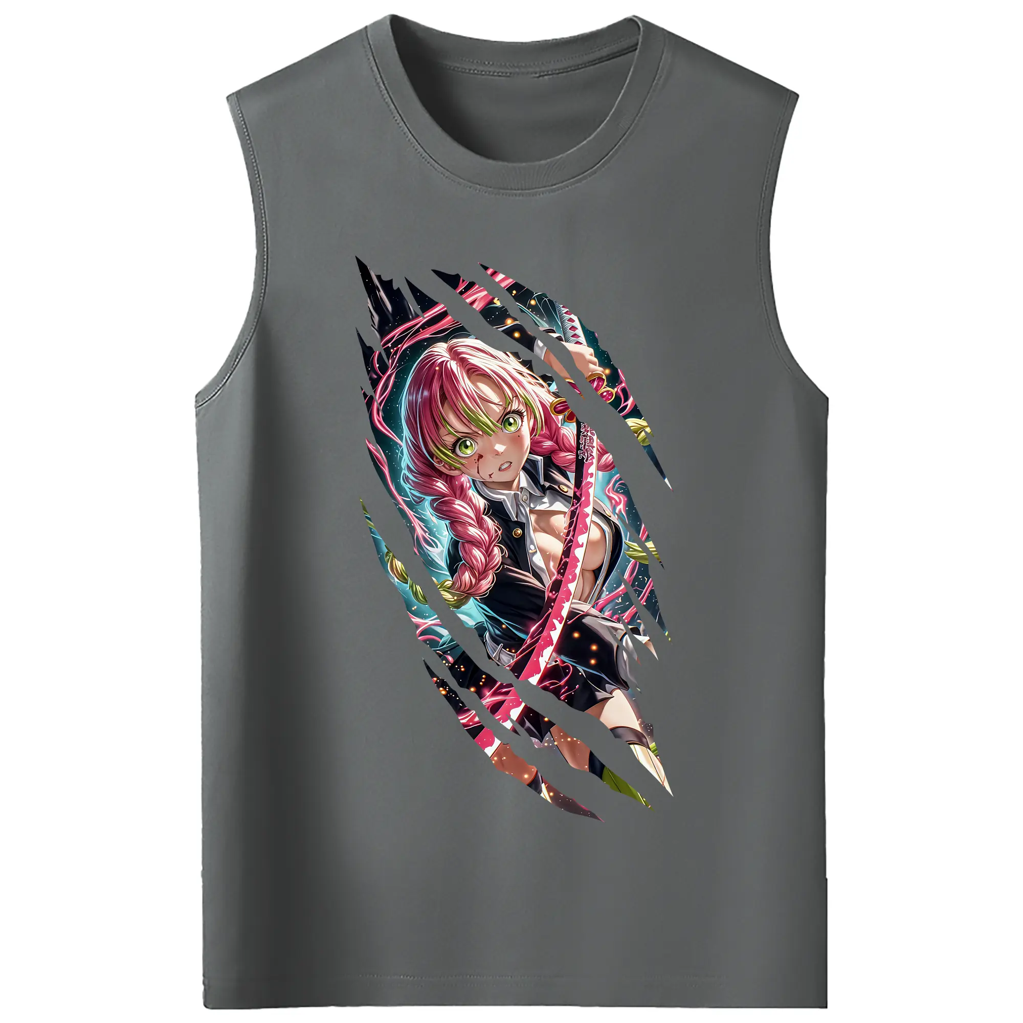 鬼滅の刃 グッズ,甘露寺 蜜璃 - コットン100% タンクトップ ・ フロントプリント ・ タイトフィット ・ 快適 通気性 ・ スポーツ カジュアル 散歩用