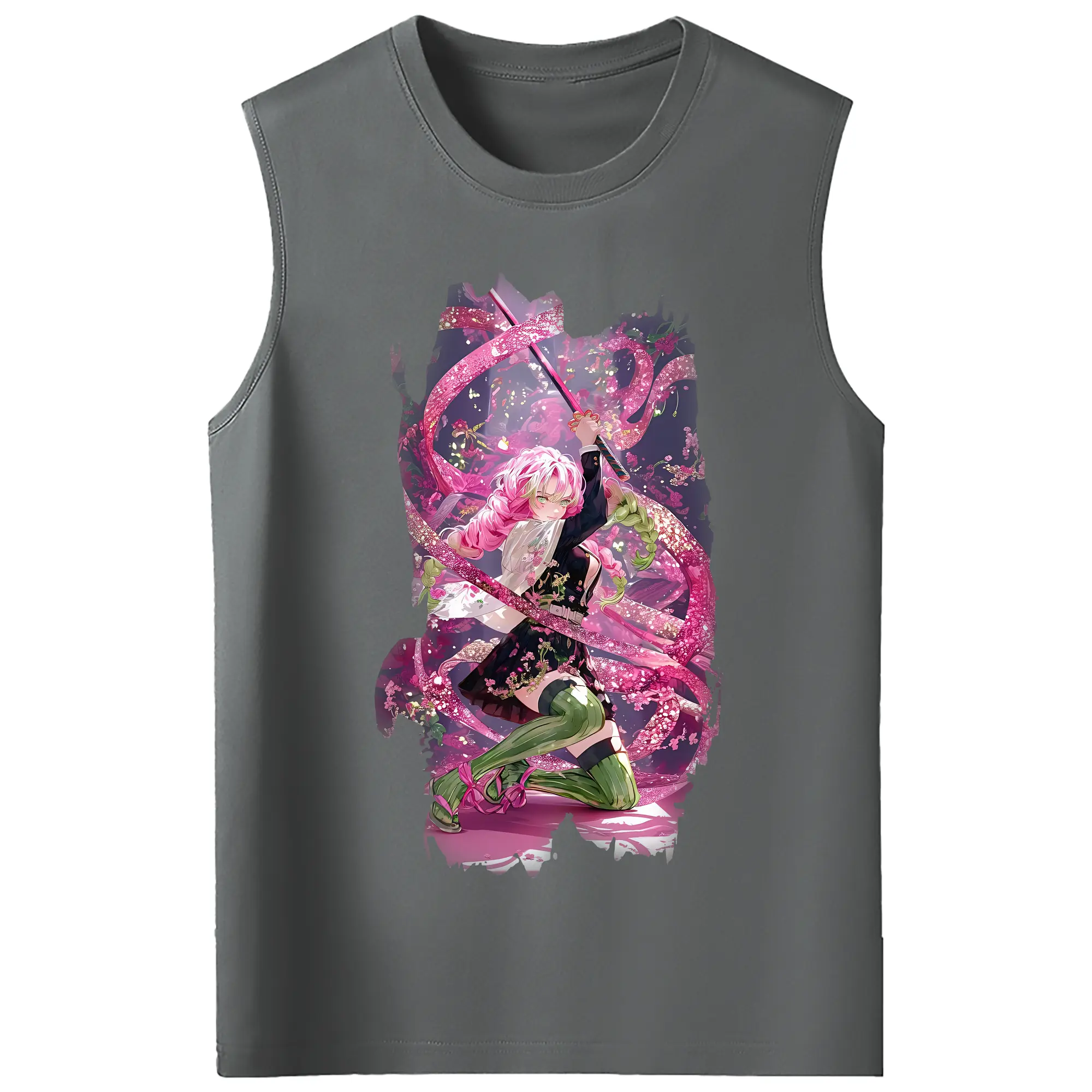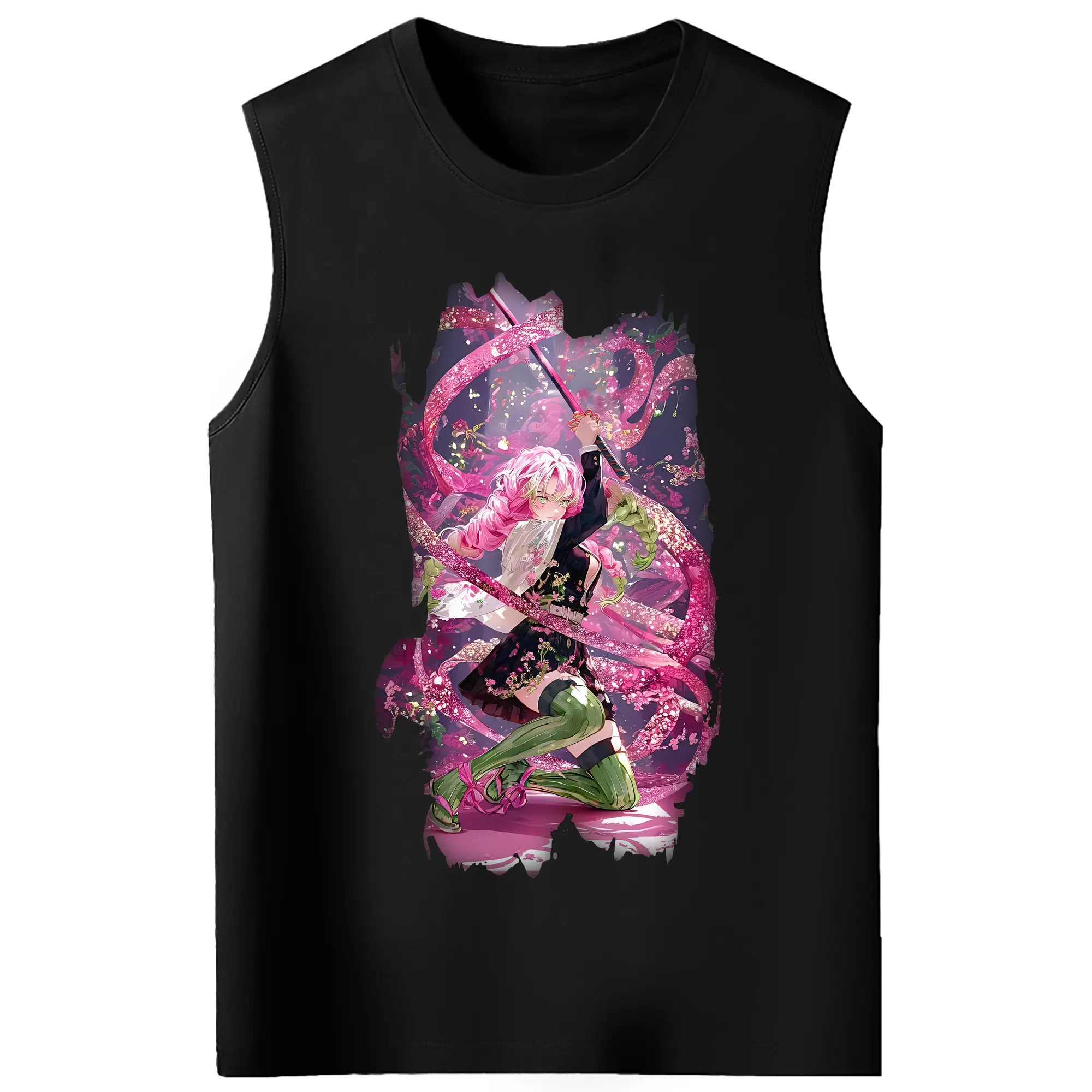 鬼滅の刃 グッズ,甘露寺 蜜璃 - コットン100% タンクトップ ・ フロントプリント ・ タイトフィット ・ 快適 通気性 ・ スポーツ カジュアル 散歩用
