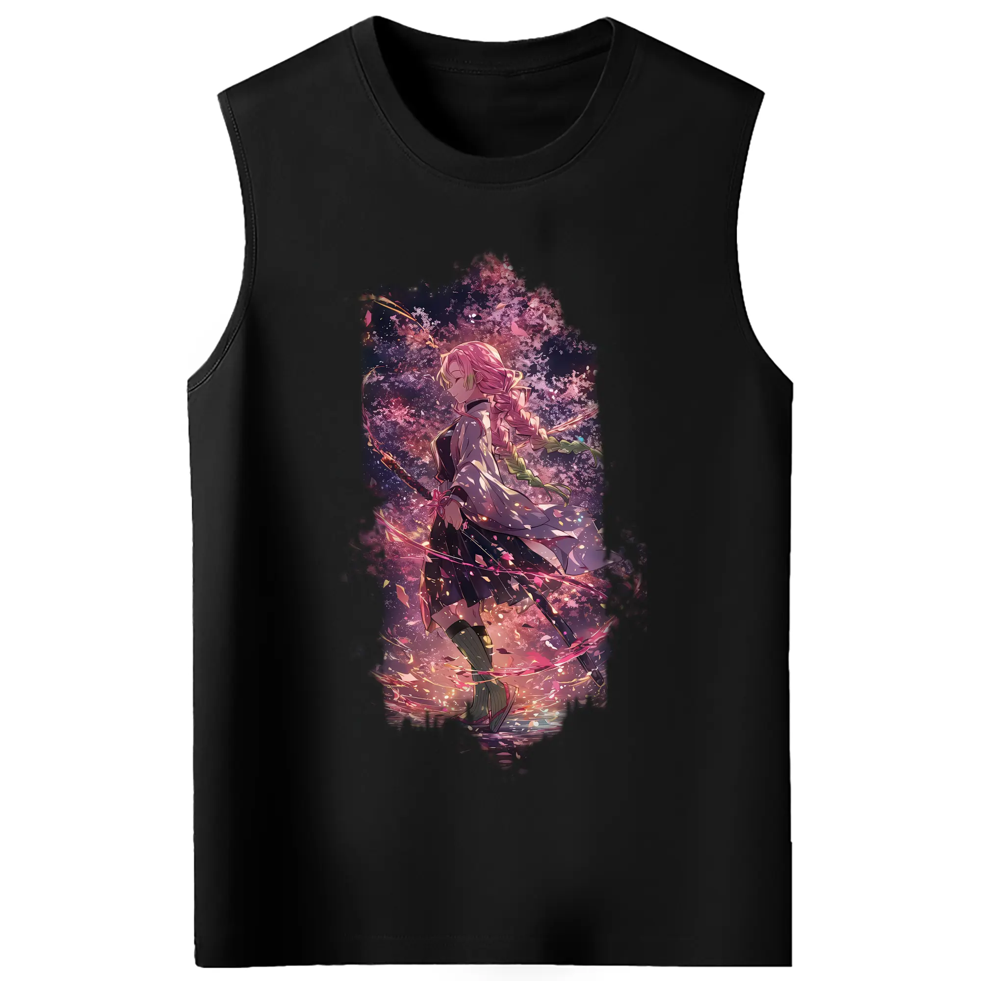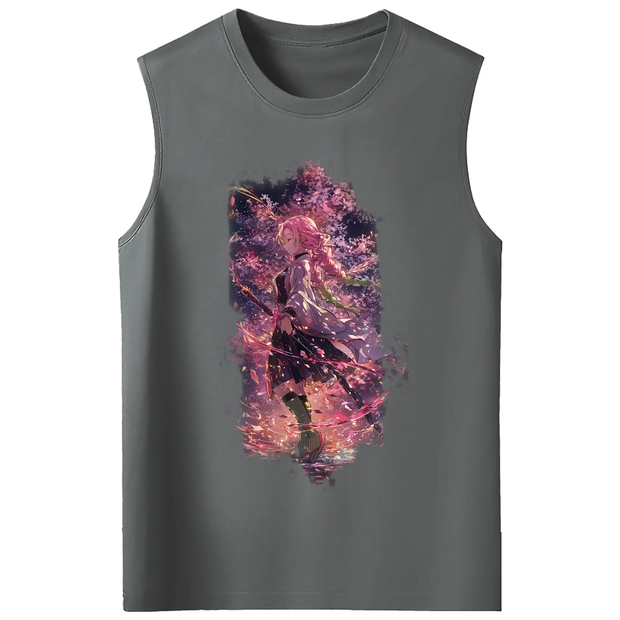 鬼滅の刃 グッズ,甘露寺 蜜璃 - コットン100% タンクトップ ・ フロントプリント ・ タイトフィット ・ 快適 通気性 ・ スポーツ カジュアル 散歩用