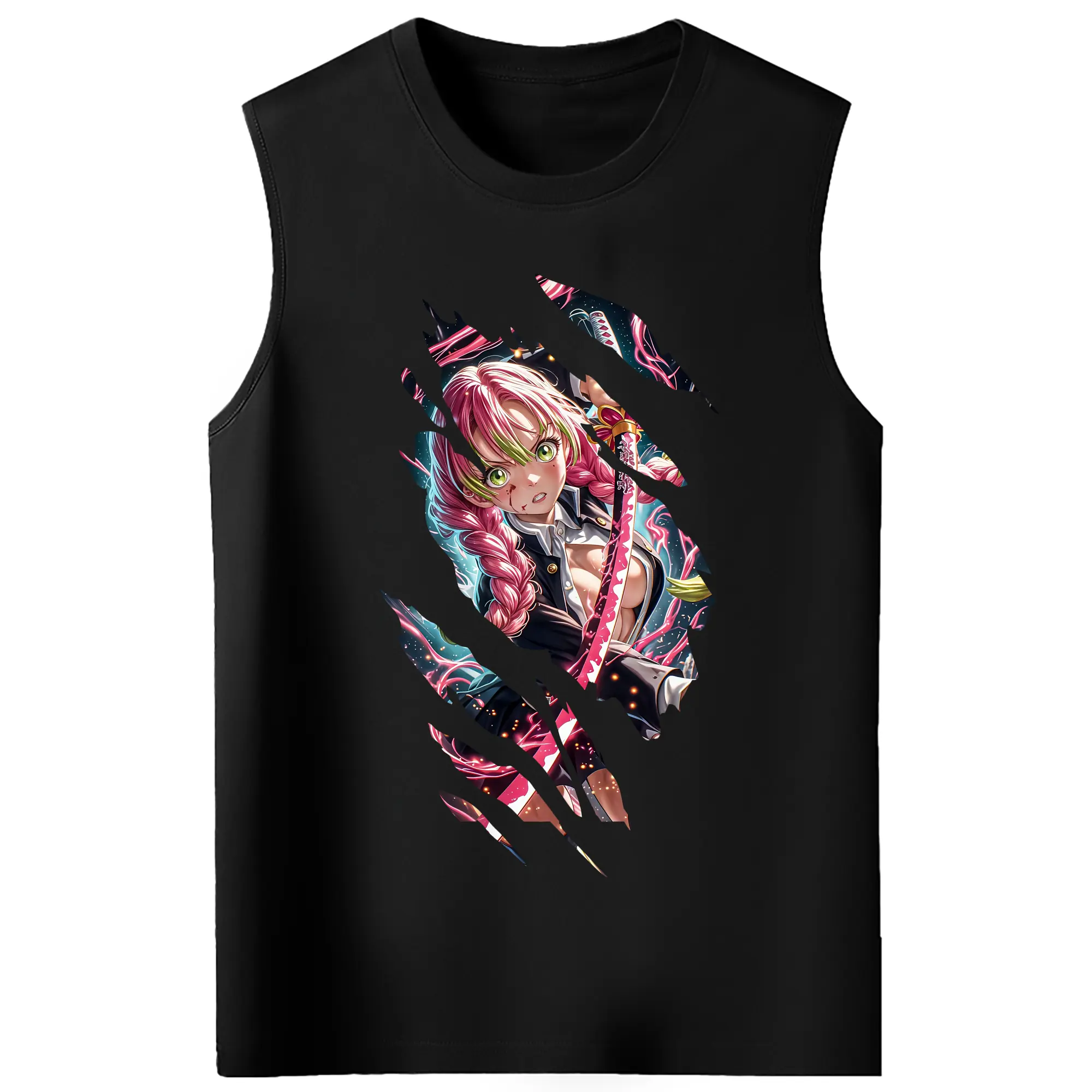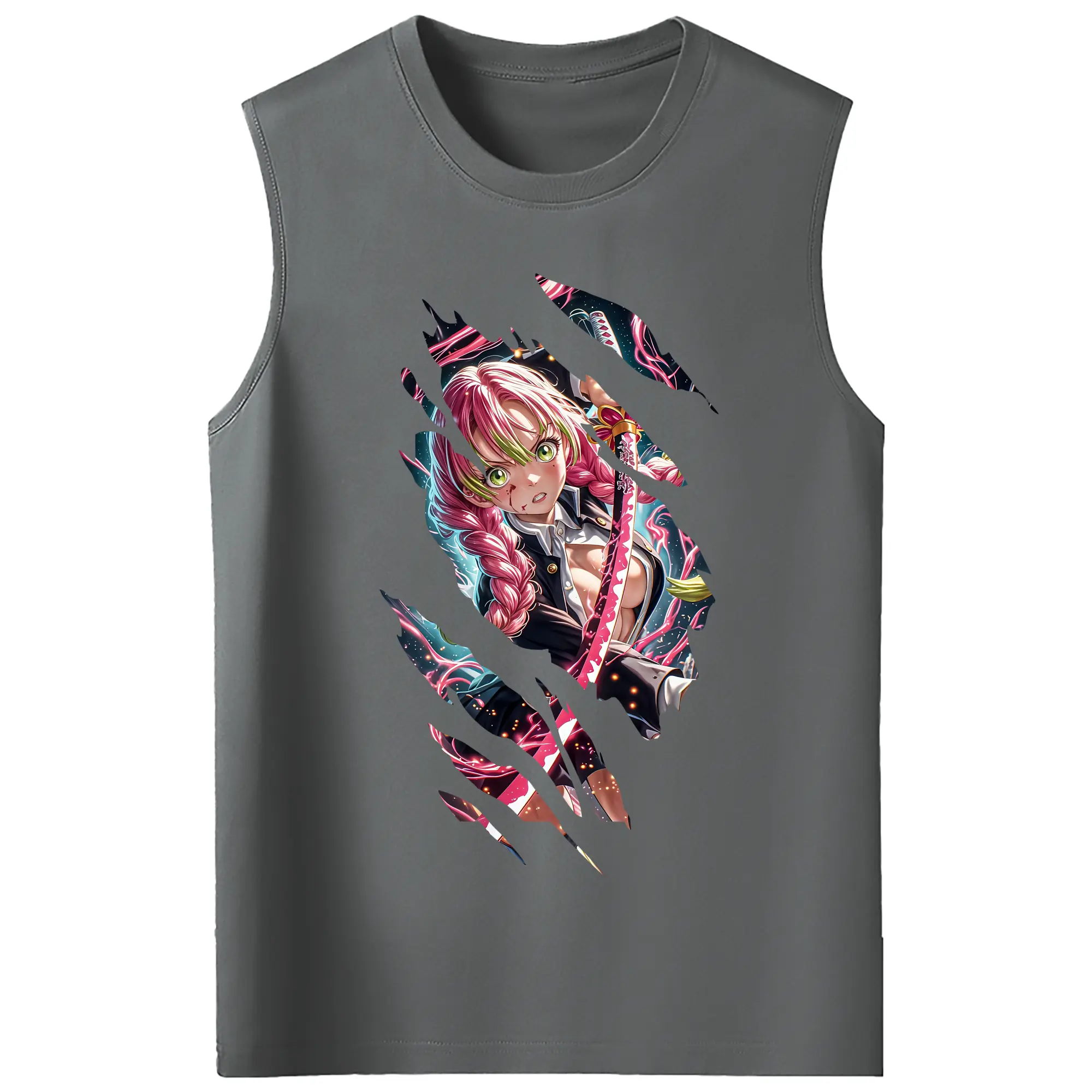 鬼滅の刃 グッズ,甘露寺 蜜璃 - コットン100% タンクトップ ・ フロントプリント ・ タイトフィット ・ 快適 通気性 ・ スポーツ カジュアル 散歩用