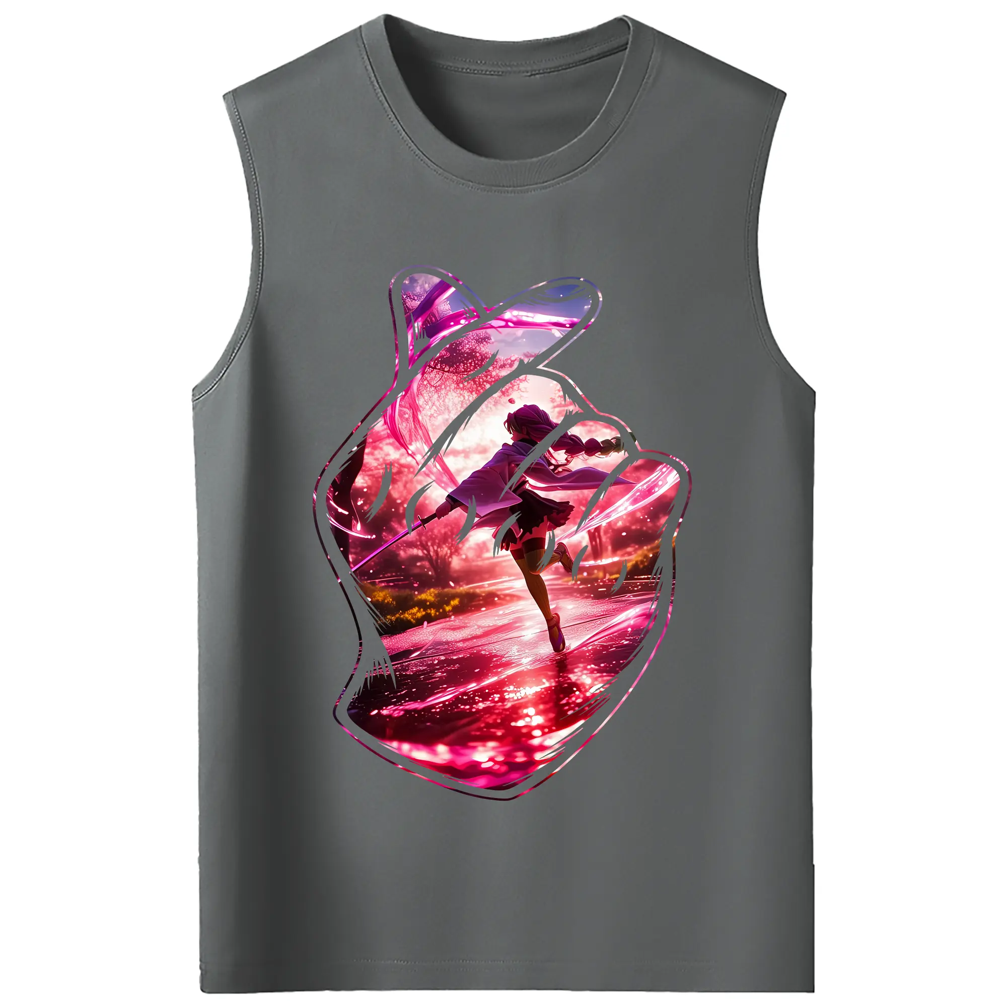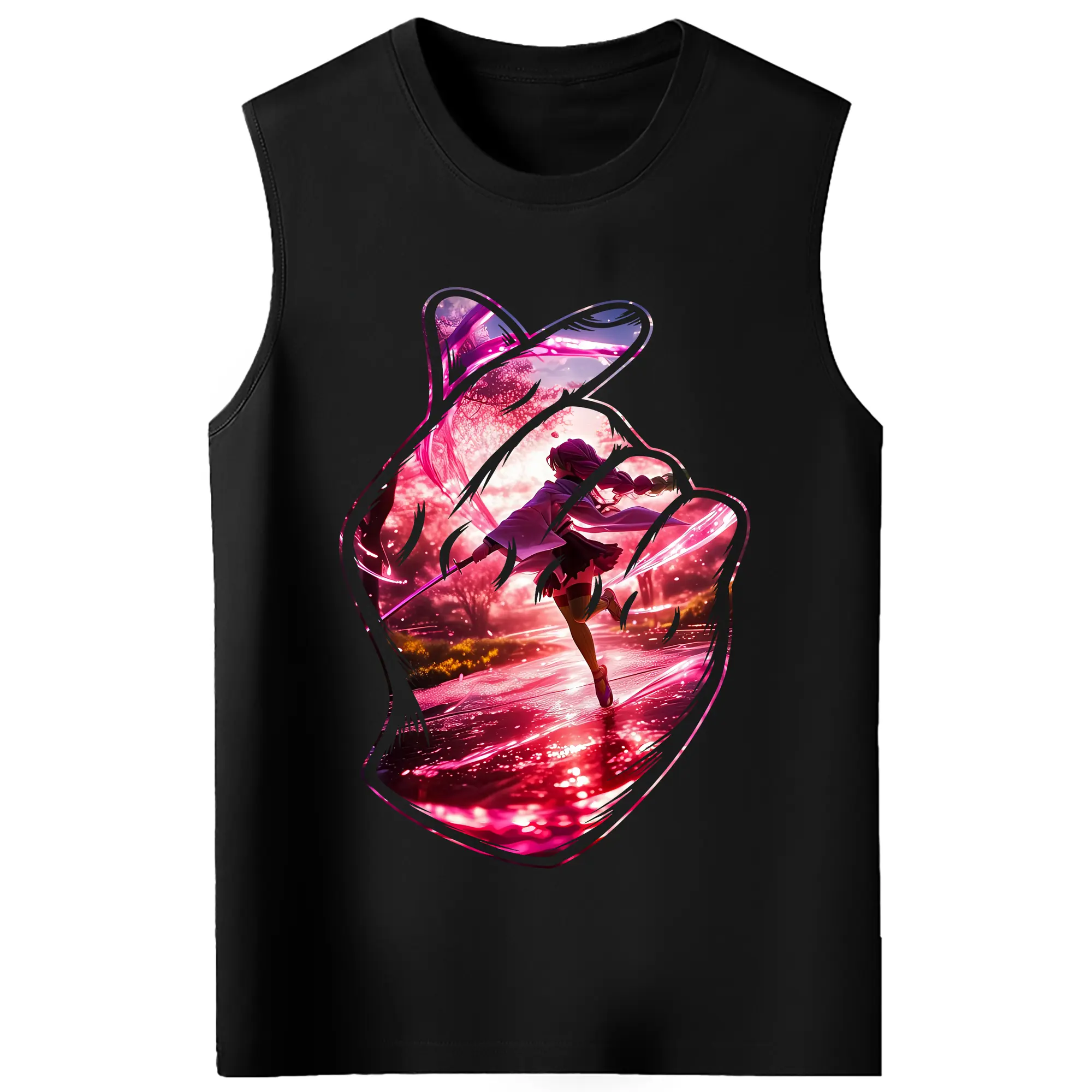鬼滅の刃 グッズ,甘露寺 蜜璃 - コットン100% タンクトップ ・ フロントプリント ・ タイトフィット ・ 快適 通気性 ・ スポーツ カジュアル 散歩用