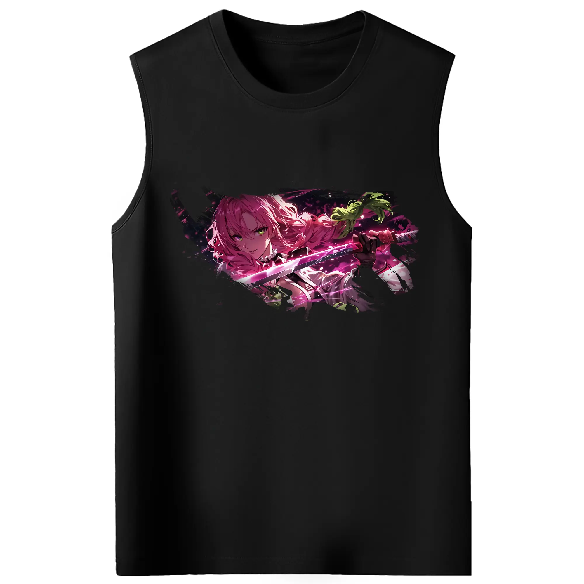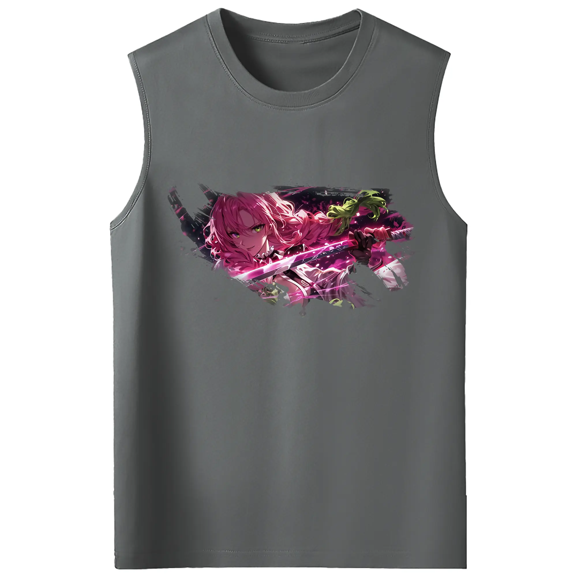 鬼滅の刃 グッズ,甘露寺 蜜璃 - コットン100% タンクトップ ・ フロントプリント ・ タイトフィット ・ 快適 通気性 ・ スポーツ カジュアル 散歩用