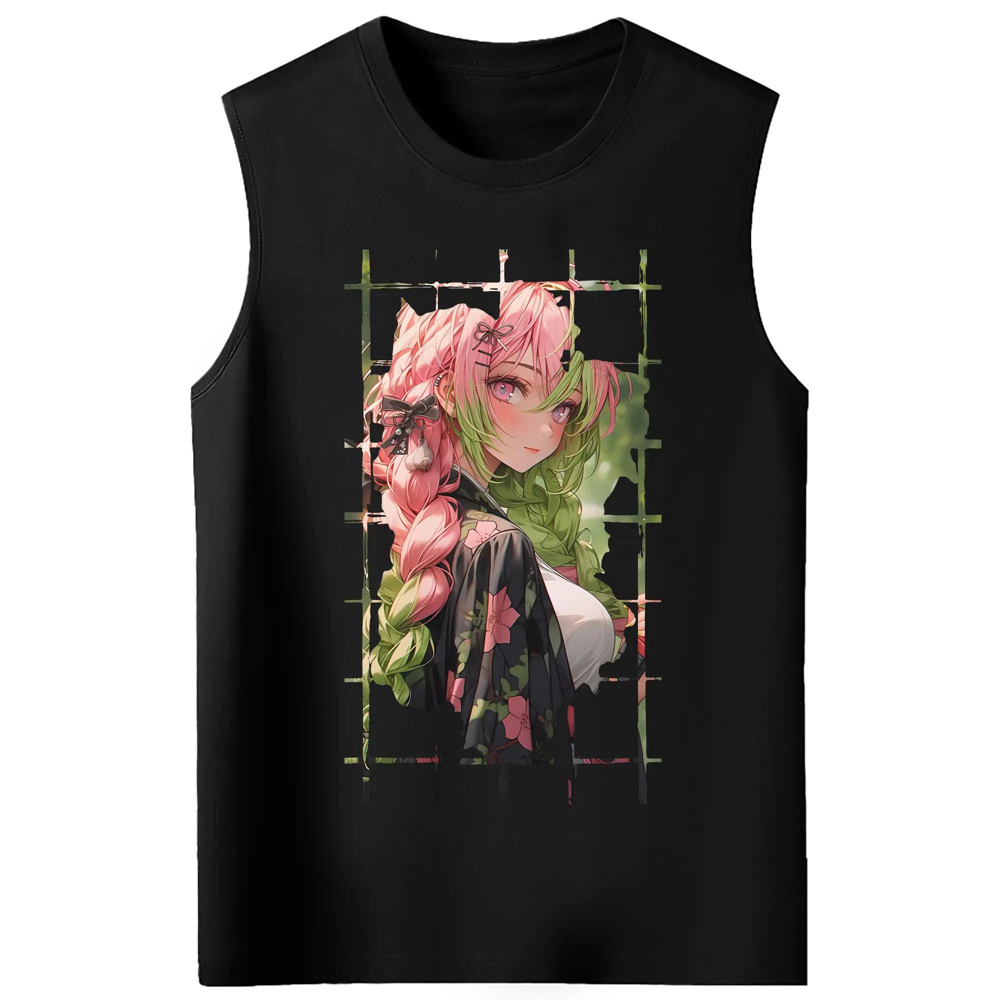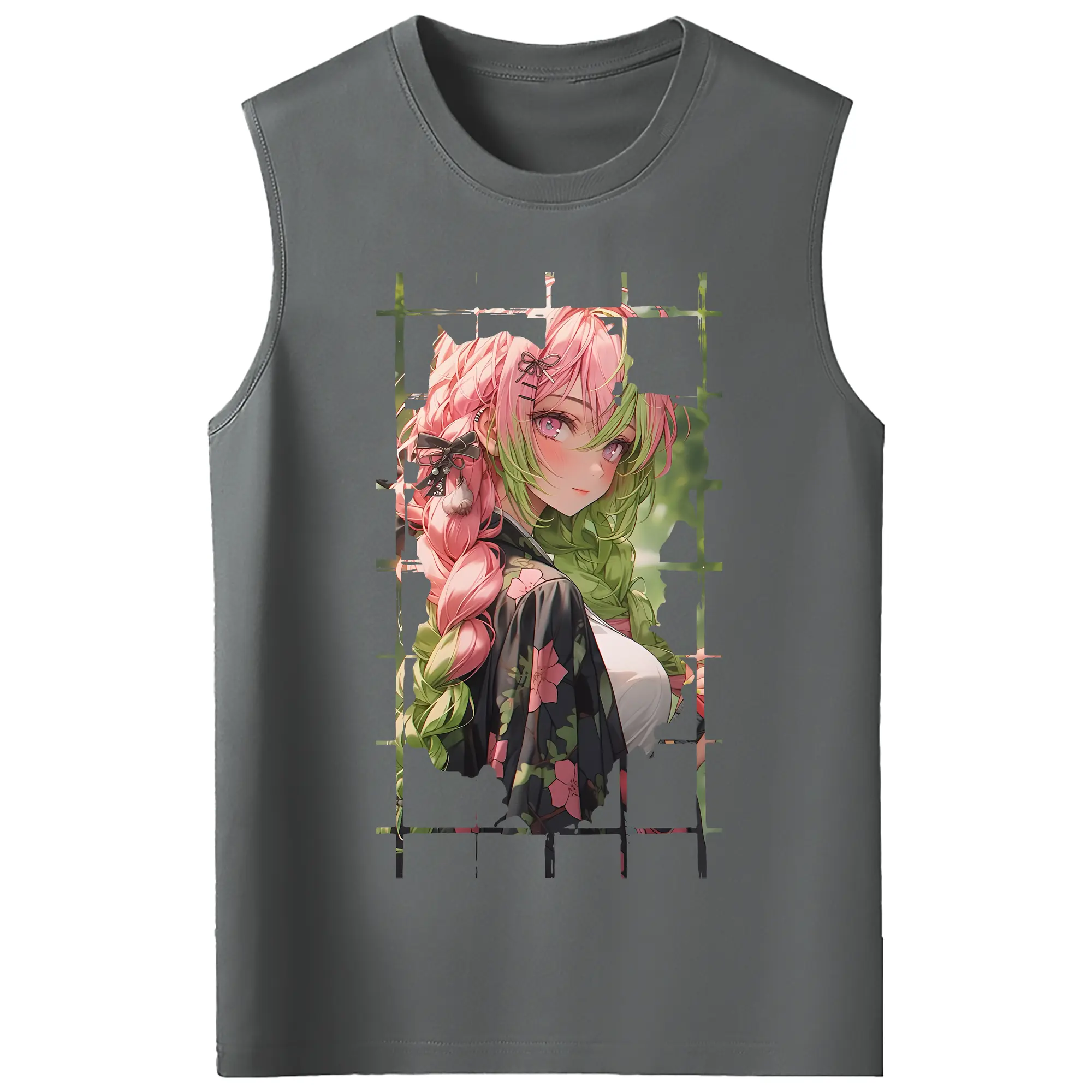 鬼滅の刃 グッズ,甘露寺 蜜璃 - コットン100% タンクトップ ・ フロントプリント ・ タイトフィット ・ 快適 通気性 ・ スポーツ カジュアル 散歩用