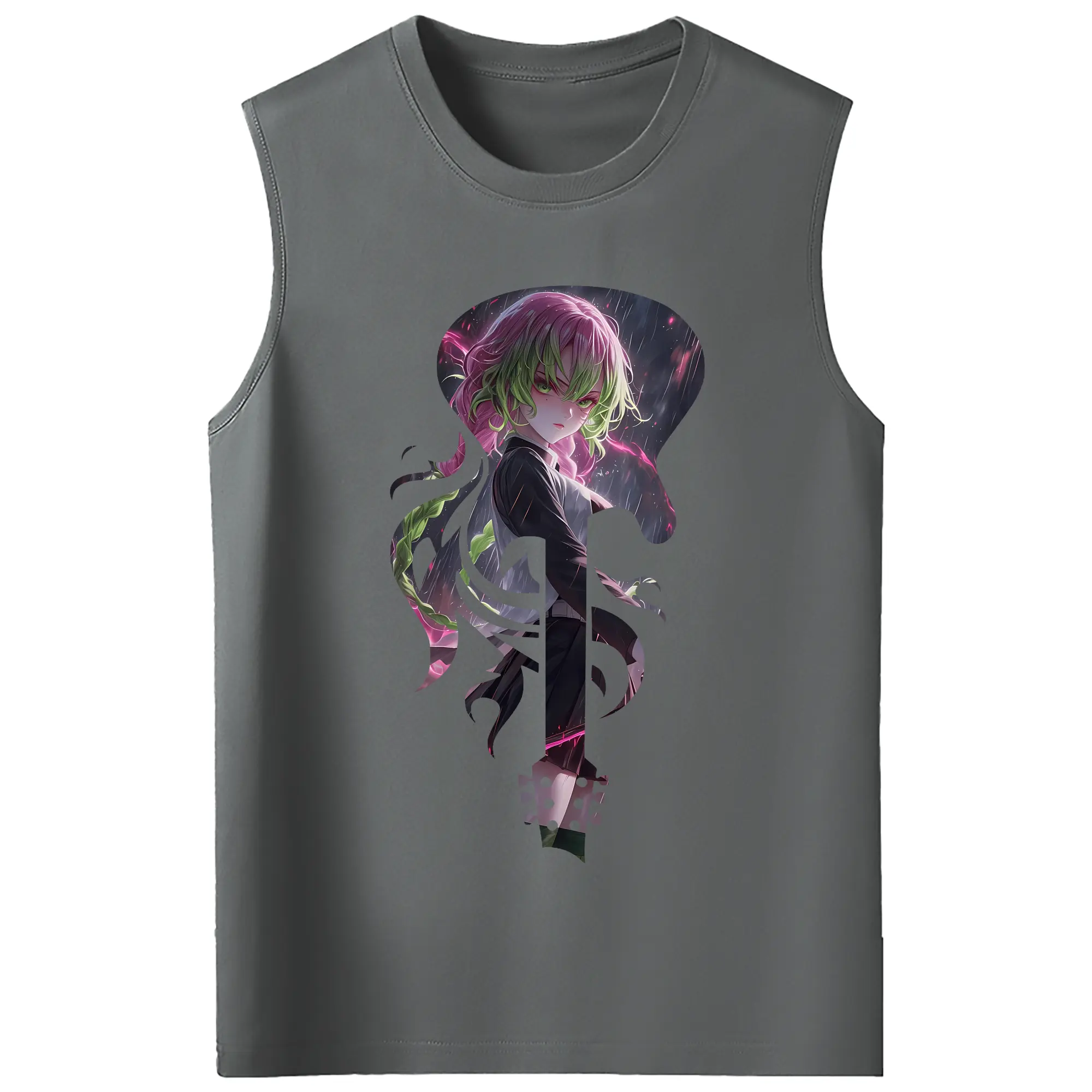 鬼滅の刃 グッズ,甘露寺 蜜璃 - コットン100% タンクトップ ・ フロントプリント ・ タイトフィット ・ 快適 通気性 ・ スポーツ カジュアル 散歩用