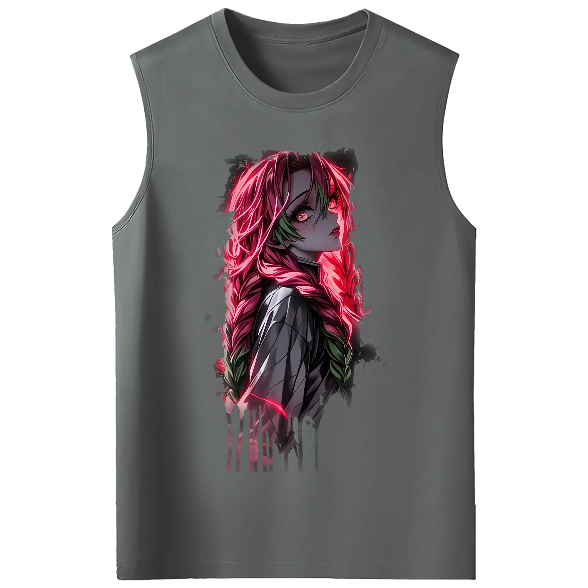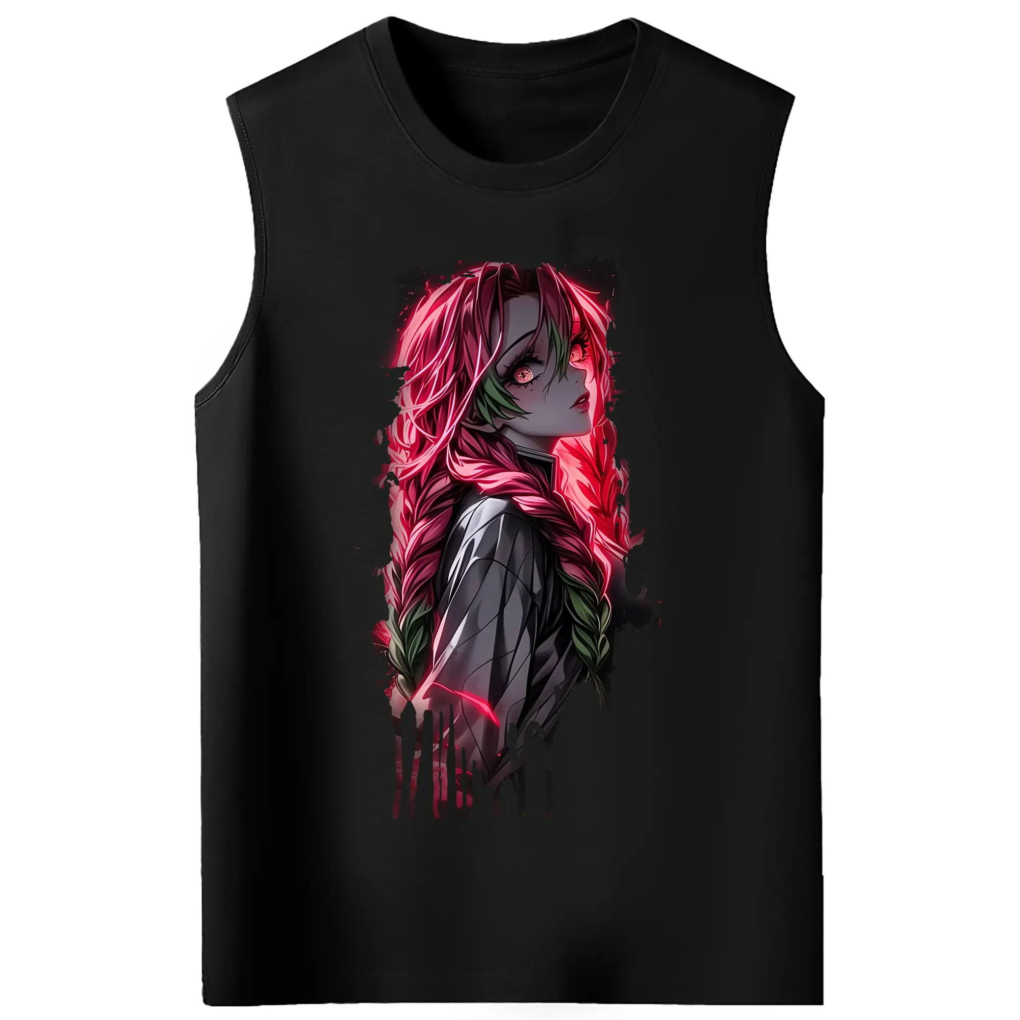 鬼滅の刃 グッズ,甘露寺 蜜璃 - コットン100% タンクトップ ・ フロントプリント ・ タイトフィット ・ 快適 通気性 ・ スポーツ カジュアル 散歩用