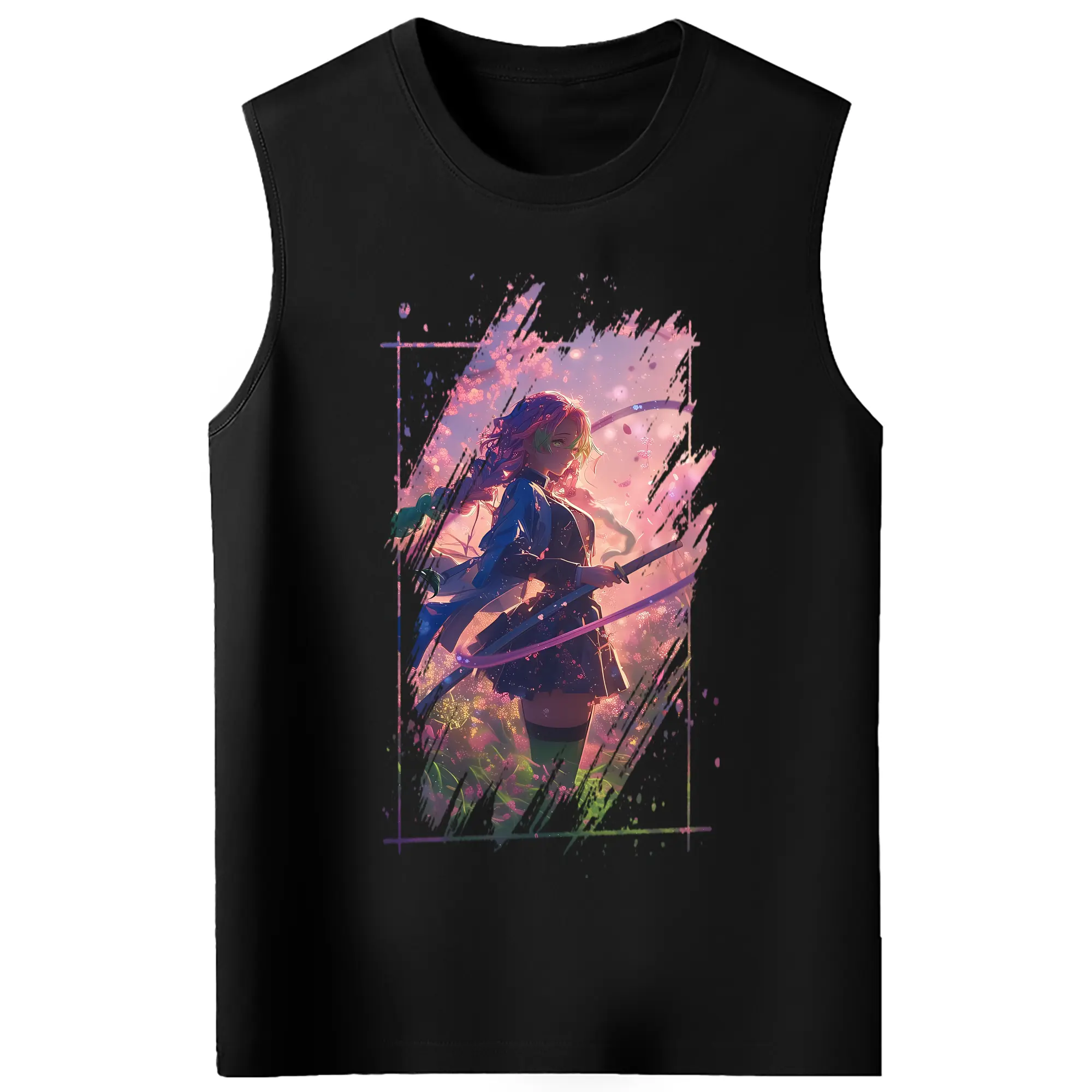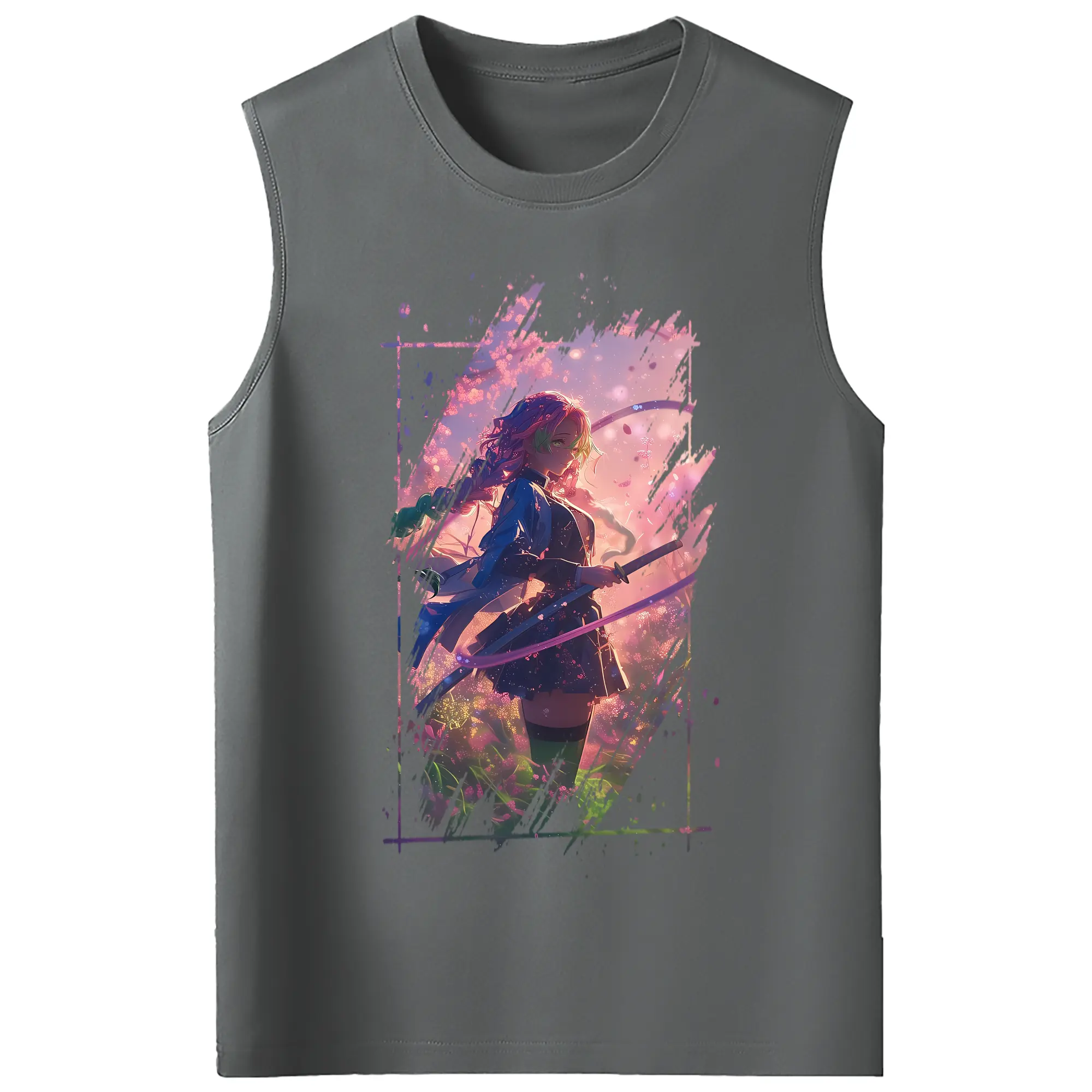 鬼滅の刃 グッズ,甘露寺 蜜璃 - コットン100% タンクトップ ・ フロントプリント ・ タイトフィット ・ 快適 通気性 ・ スポーツ カジュアル 散歩用